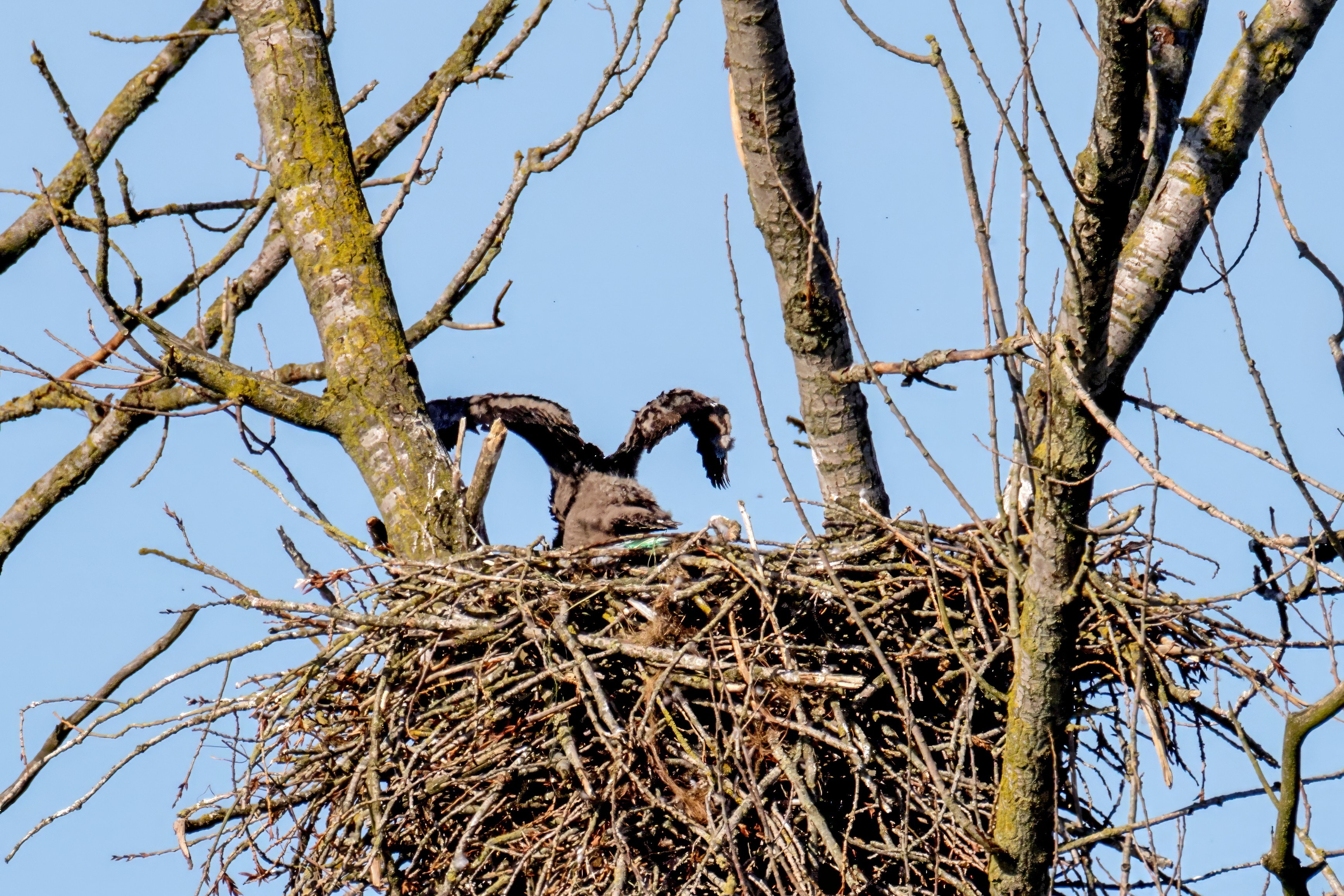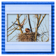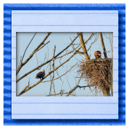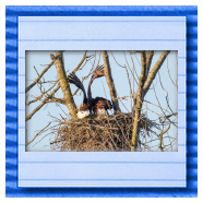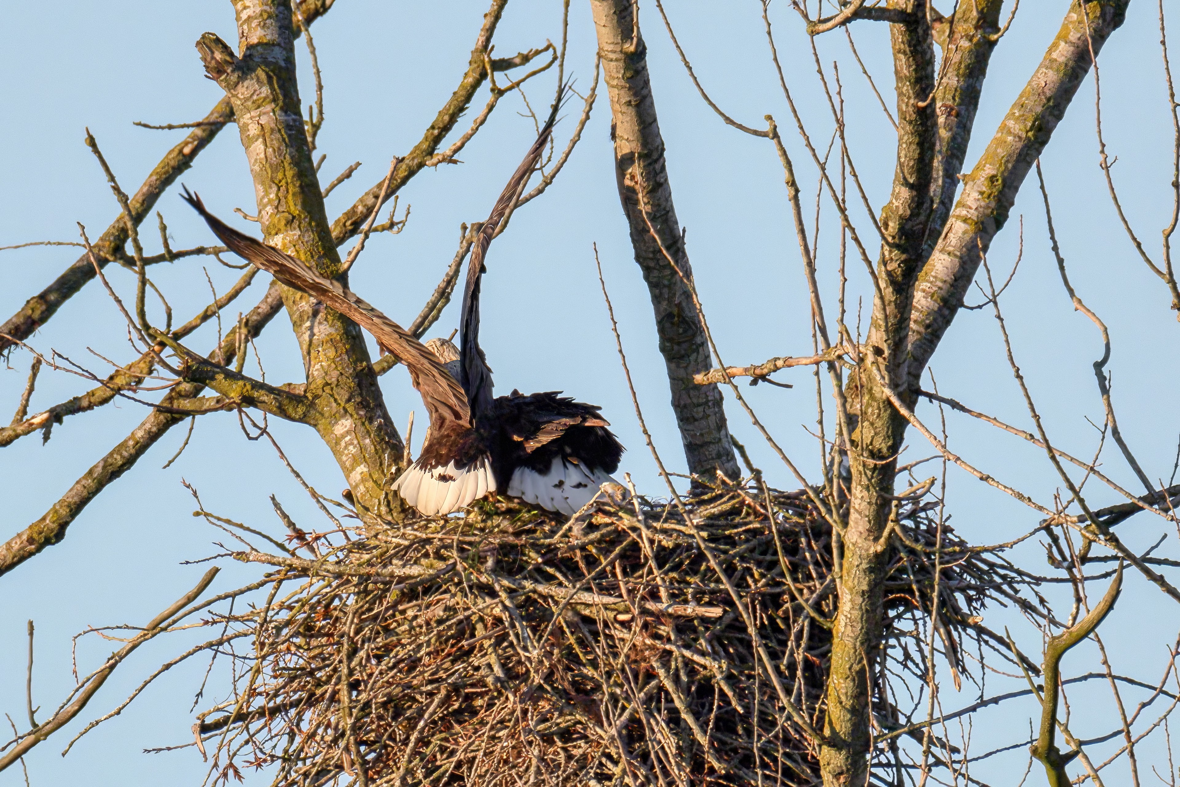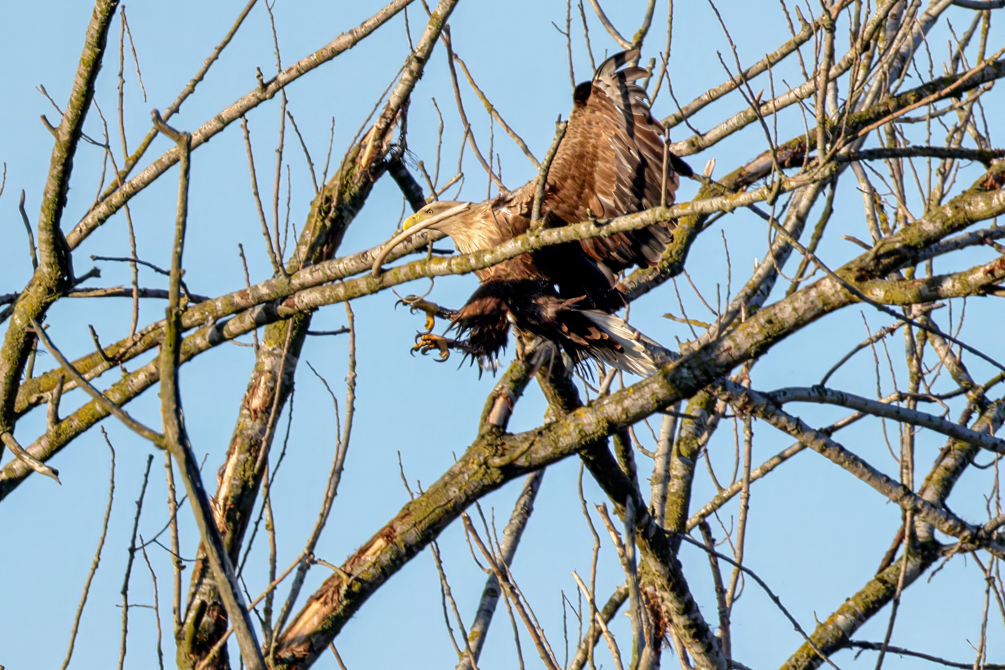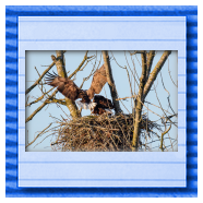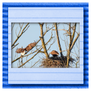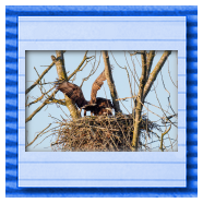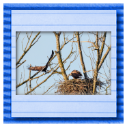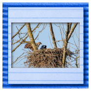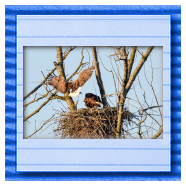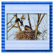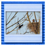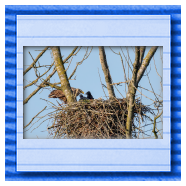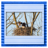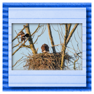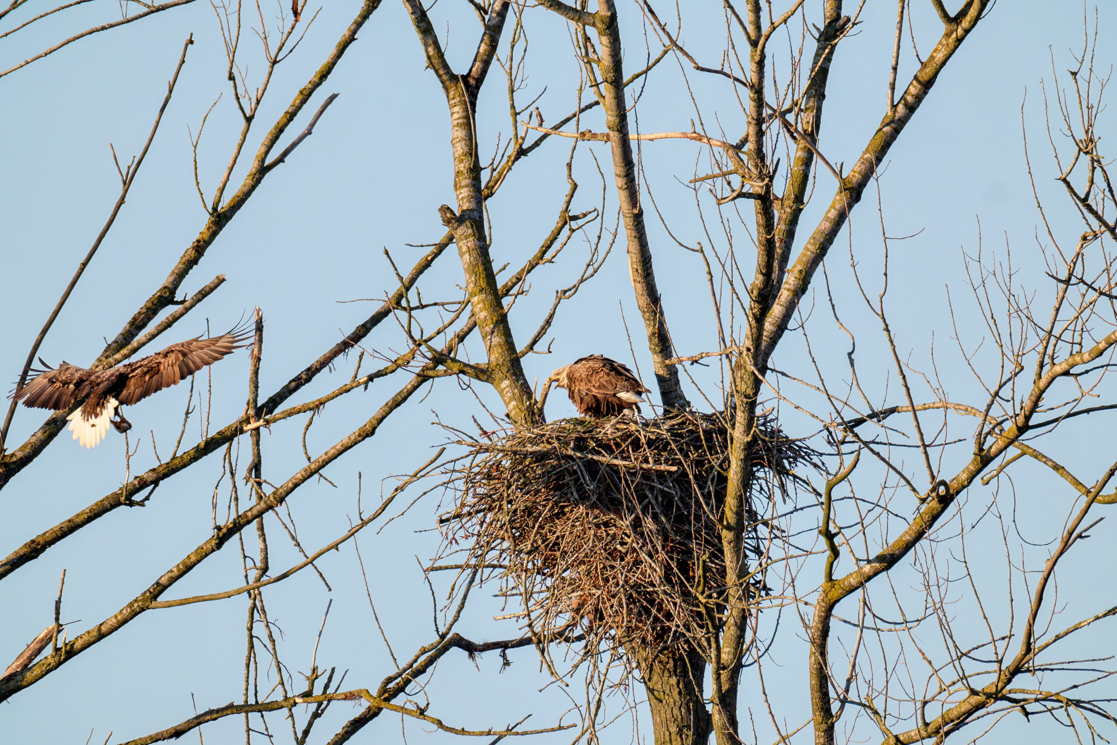 Die kleinen Nestlinge haben sich prächtig entwickelt. Die ständige Anwesenheit der Seeadler im Horst ist nun nicht mehr durchgehend erforderlich. Neben Aufmerksamkeit, Schutz und der Versorgung des Nachwuchses bleibt dem Seeadlerpaar jetzt auch etwas Zeit für sich. Häufig zeigen sie sich gemeinsam in der Nähe des Horstes und lassen dabei ihre enge Verbundenheit und den Stolz als Eltern erkennen.