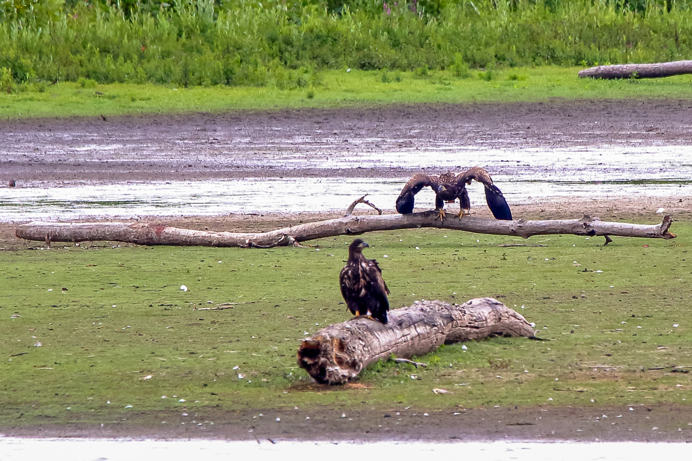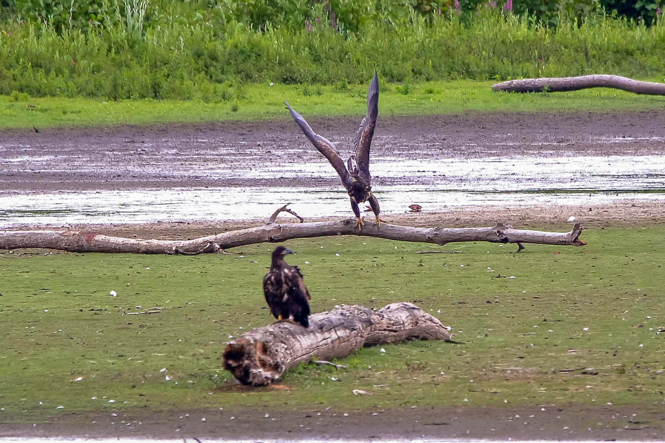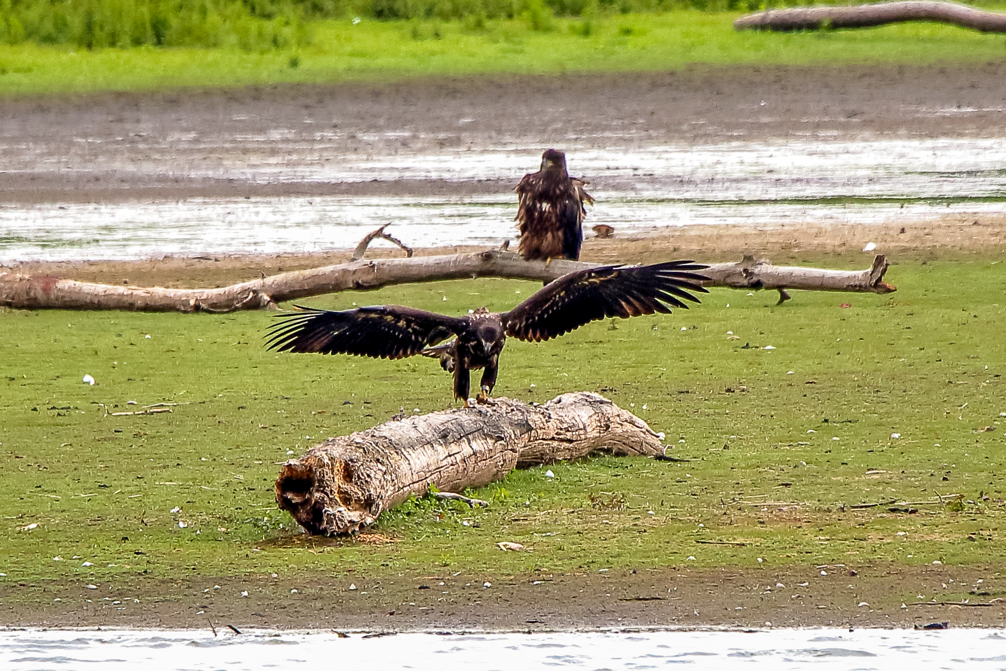 Die jungen Jungseeadler erkunden ihren zukünftigen Futterplatz