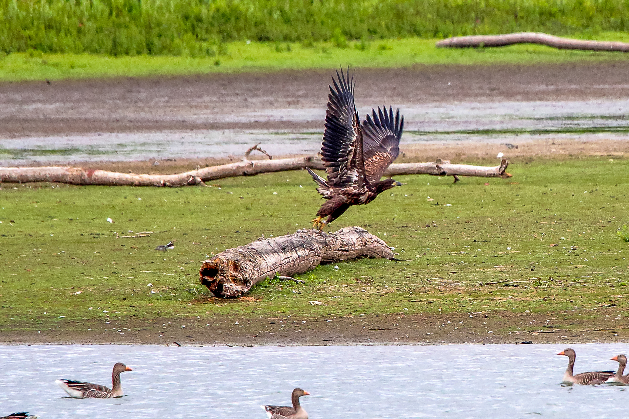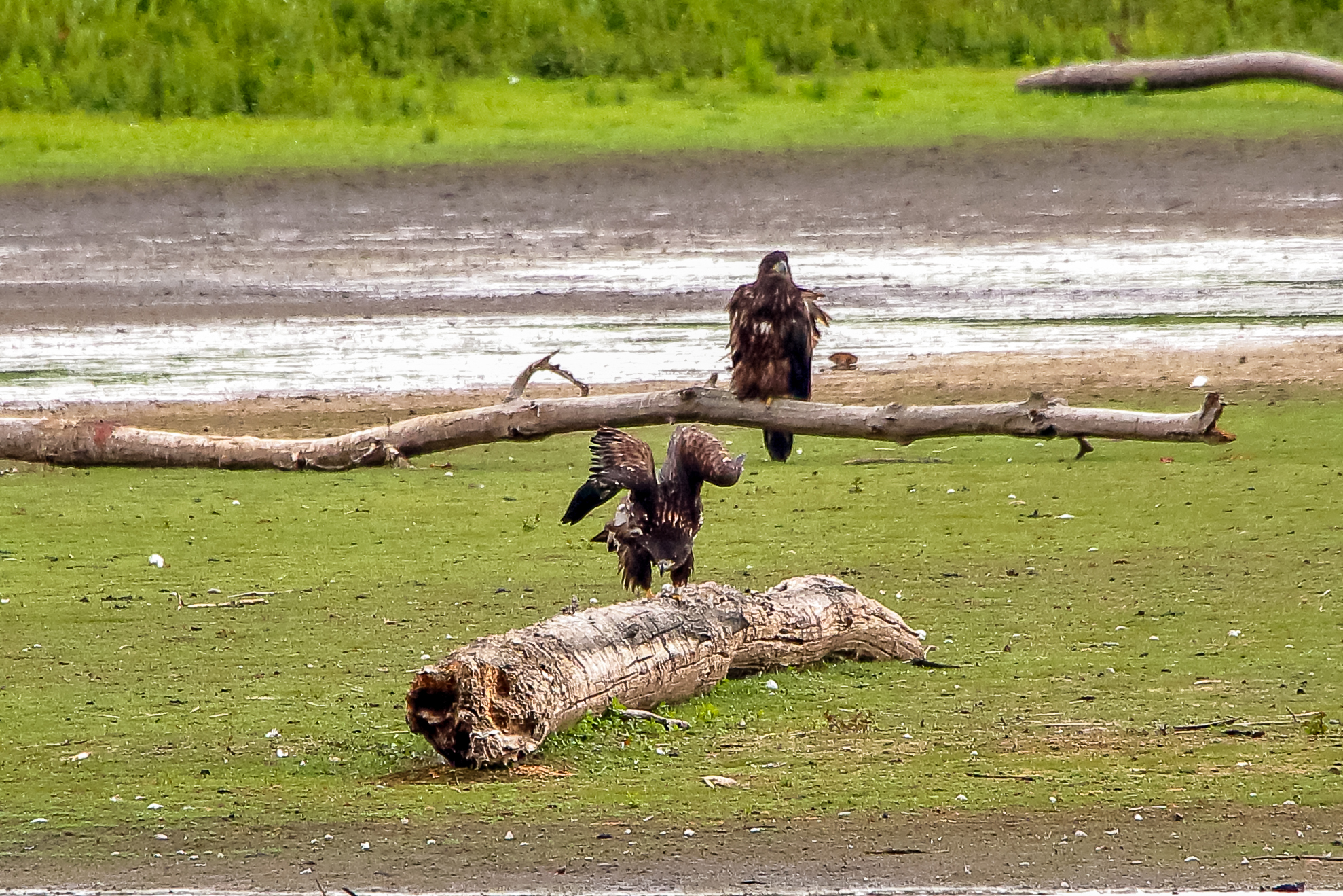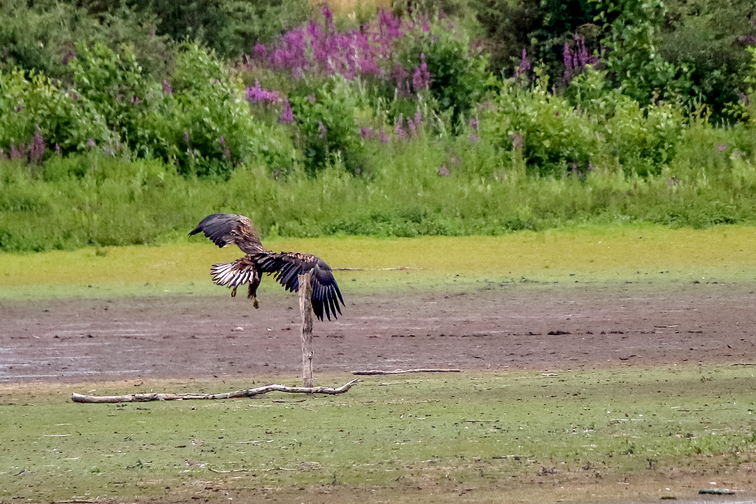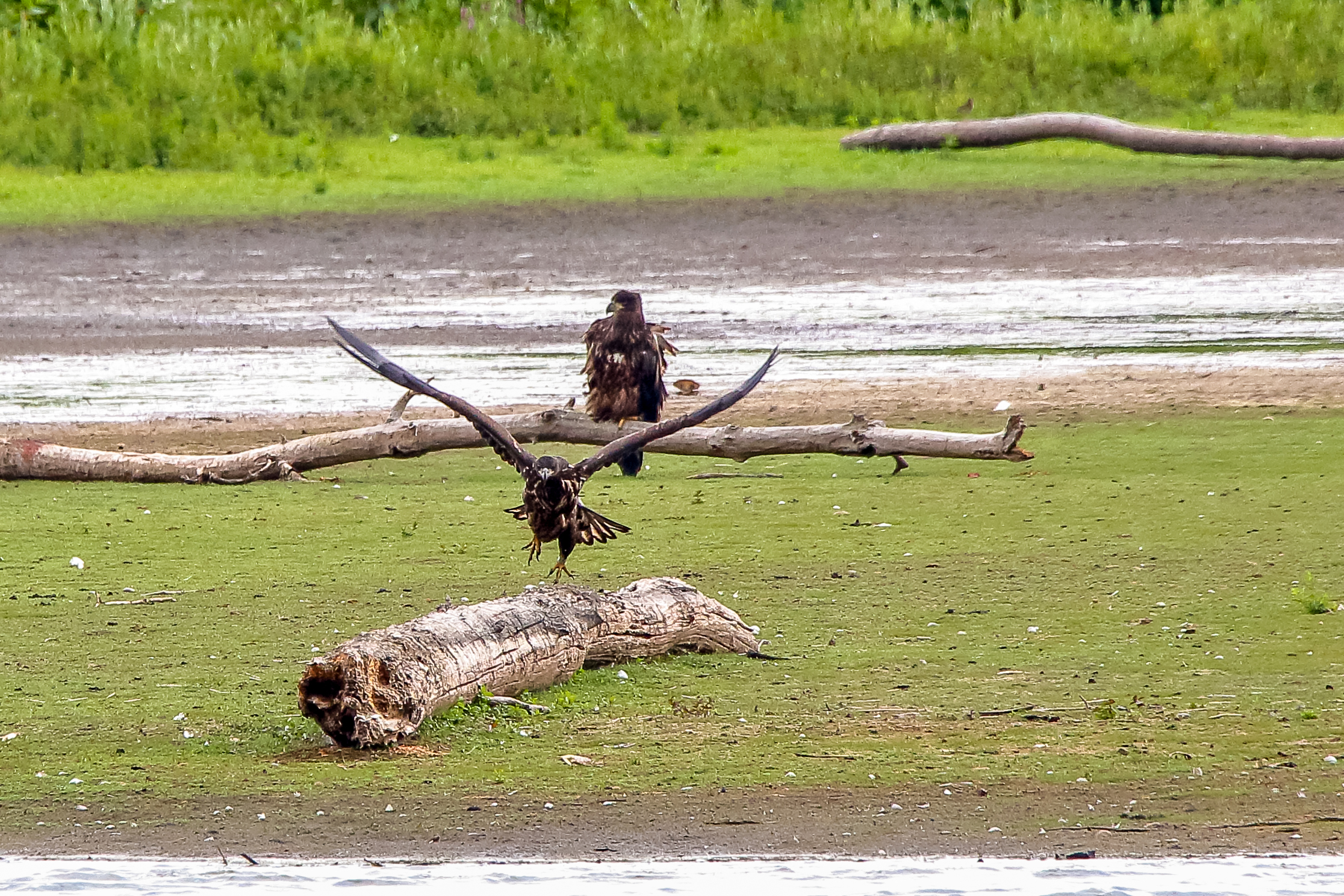 Die jungen Jungseeadler erkunden ihren zukünftigen Futterplatz