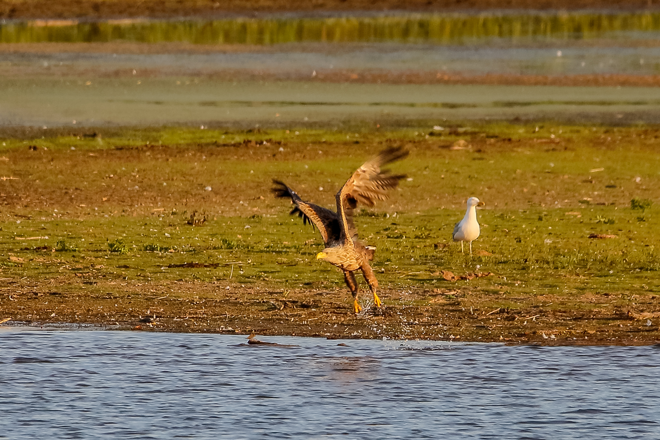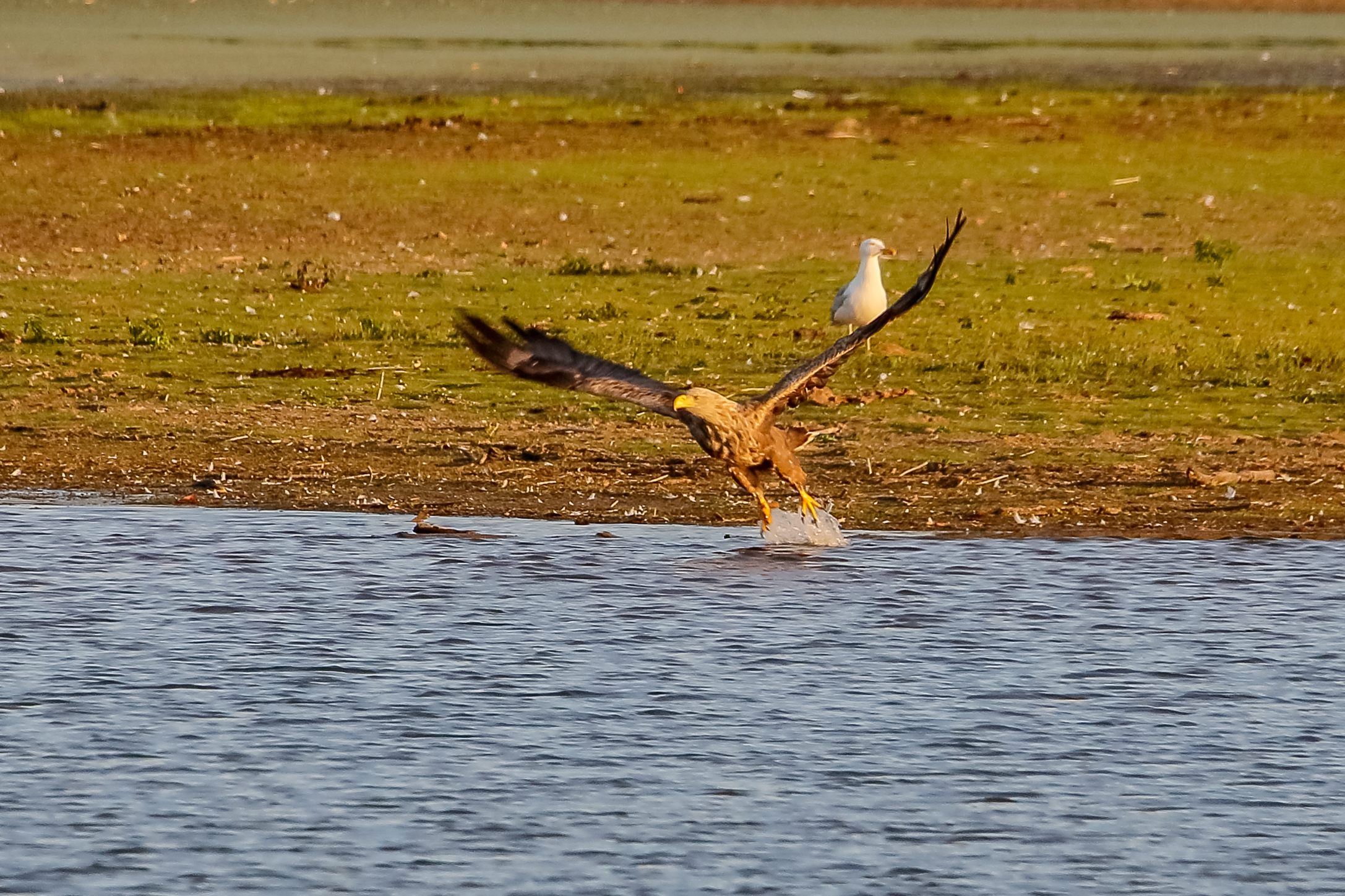 Abendstimmung mit dem Seeadler und der gescheiterten Mitnahme eines Fisches
