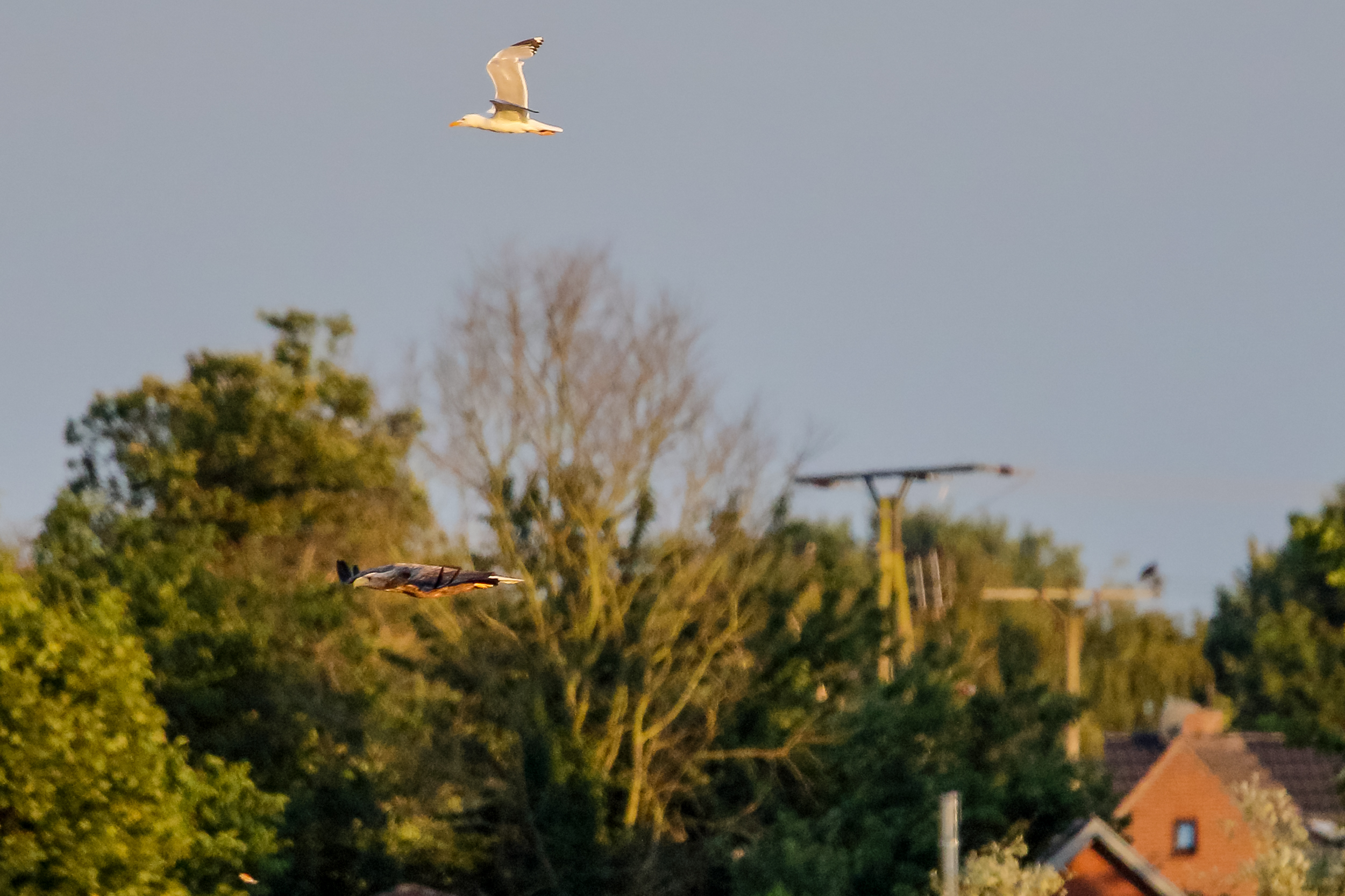 Rohrweihe und junger Rotmilan
