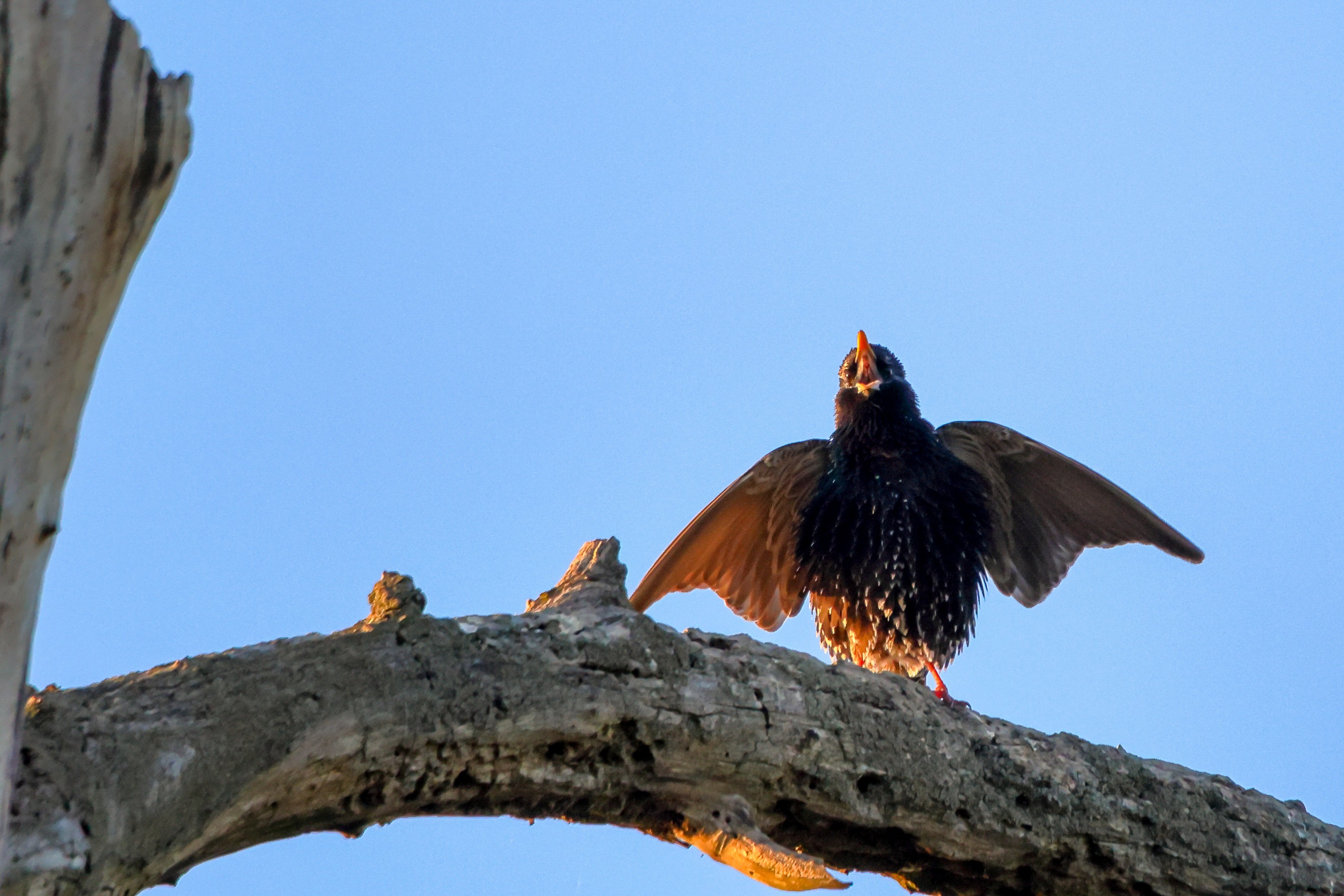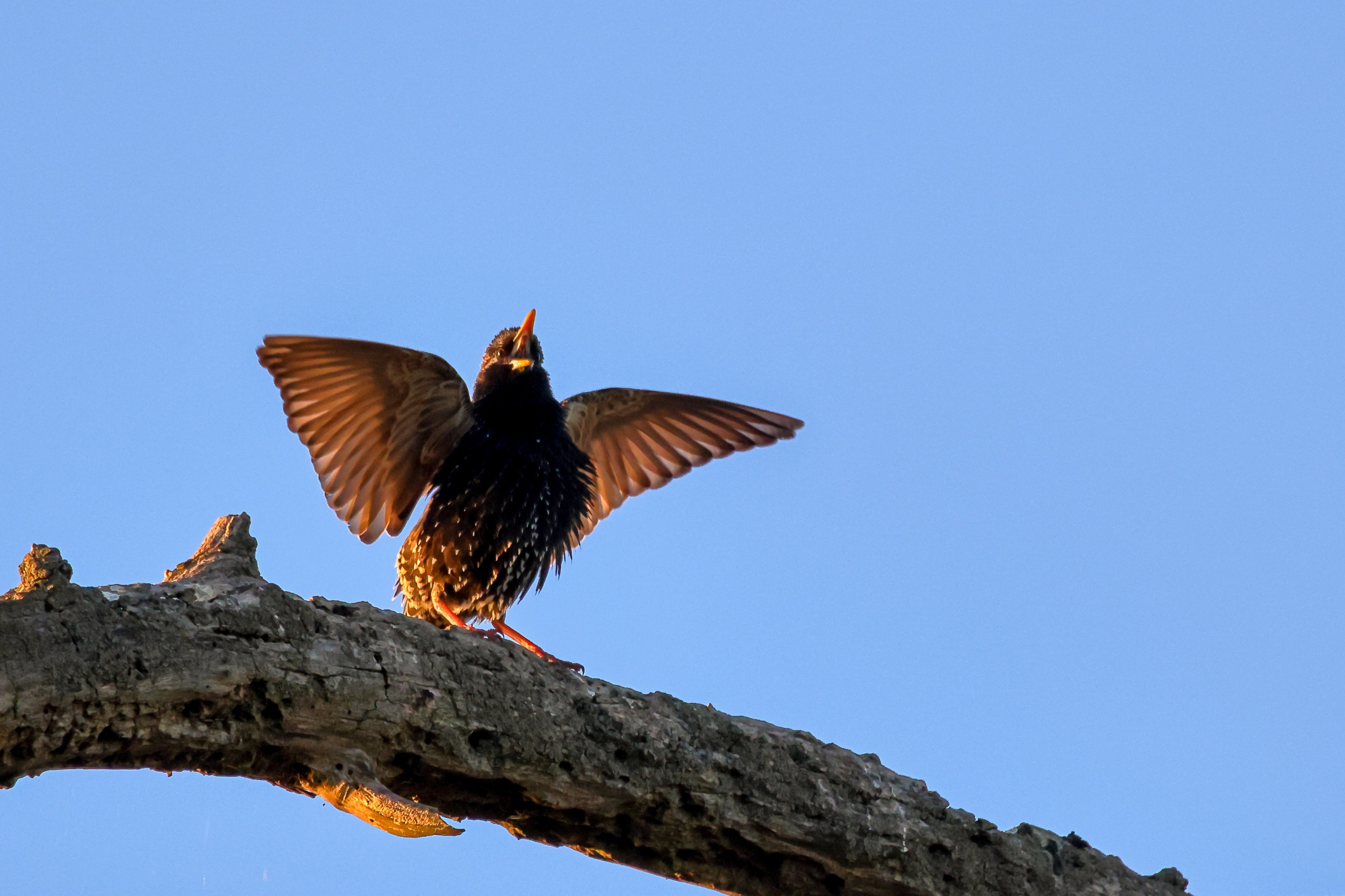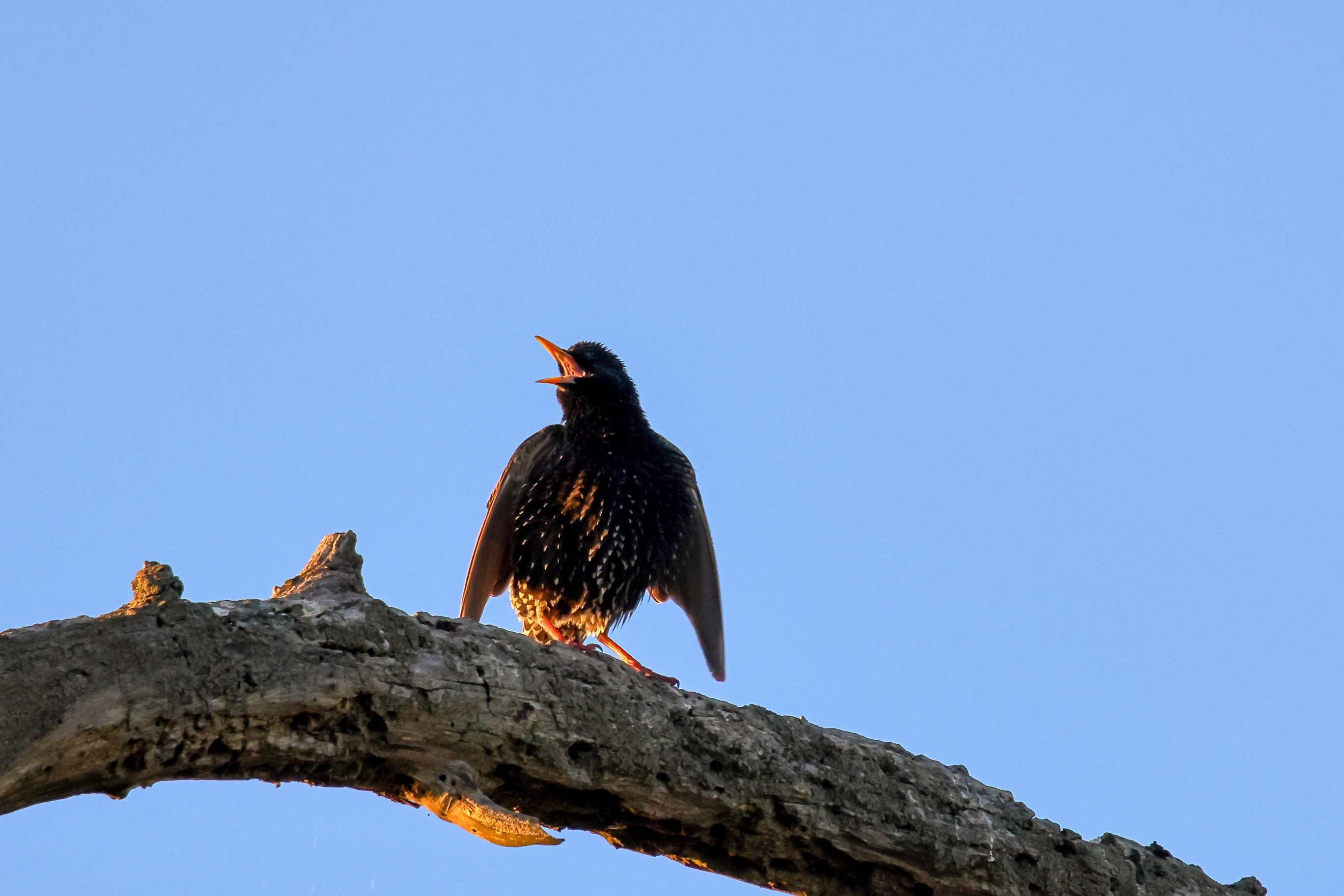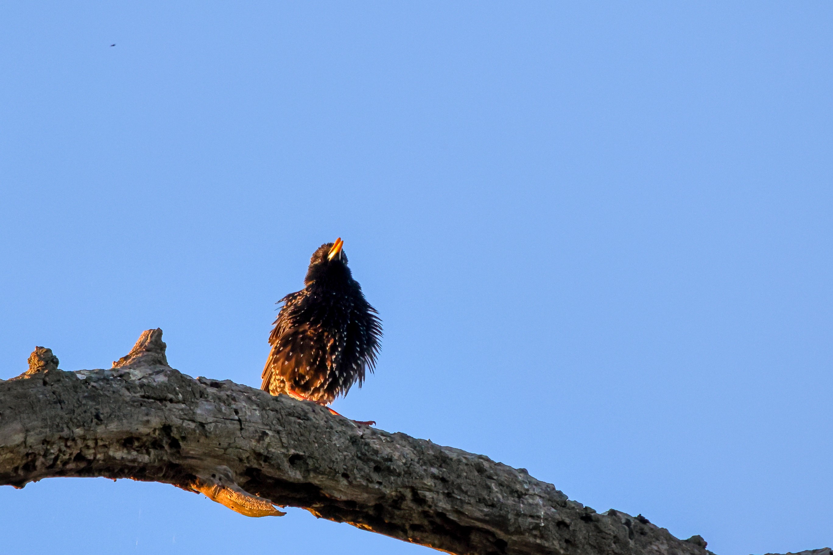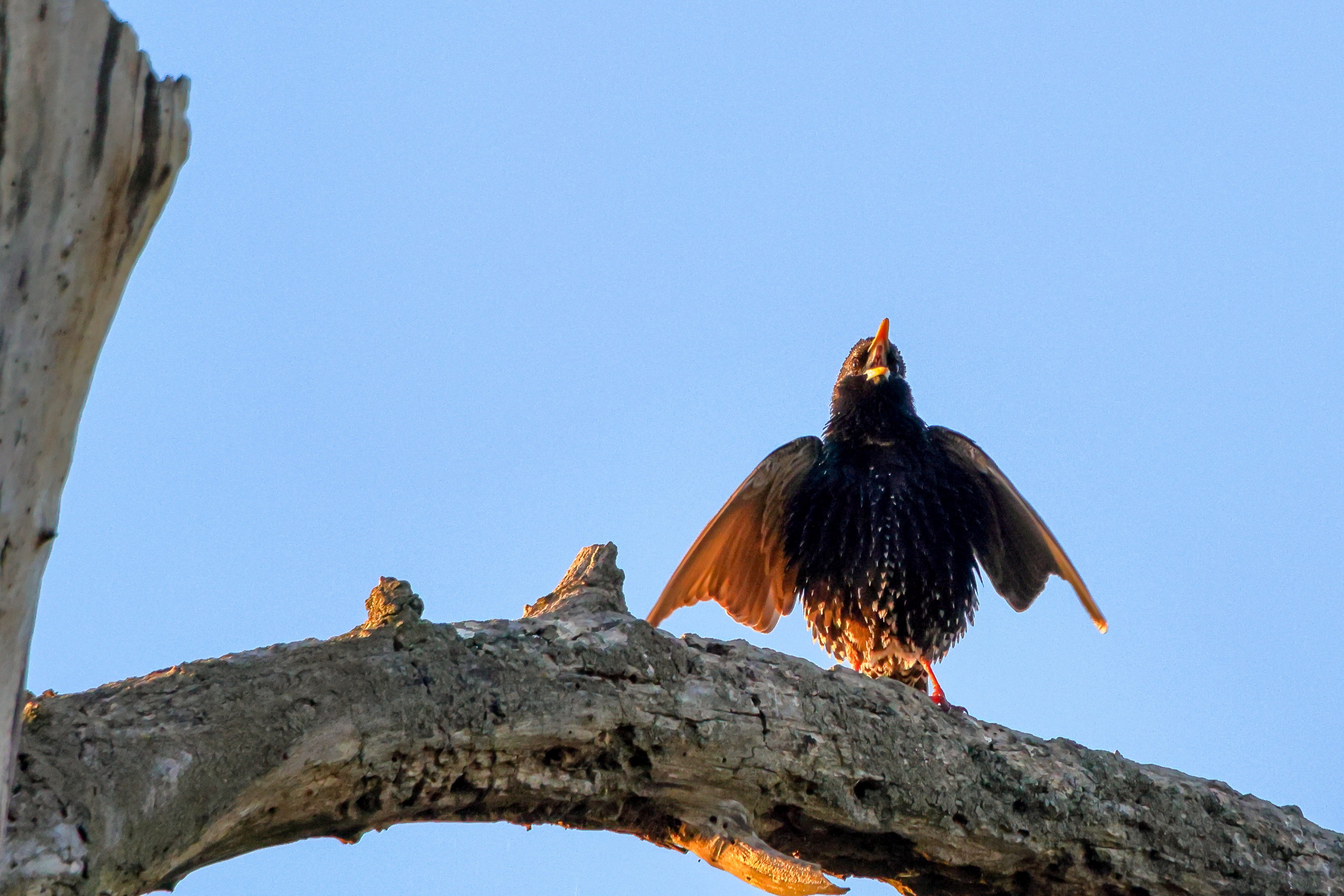Das letzte Sonnenlicht kleidet die Vogelwelt stimmungsvoll