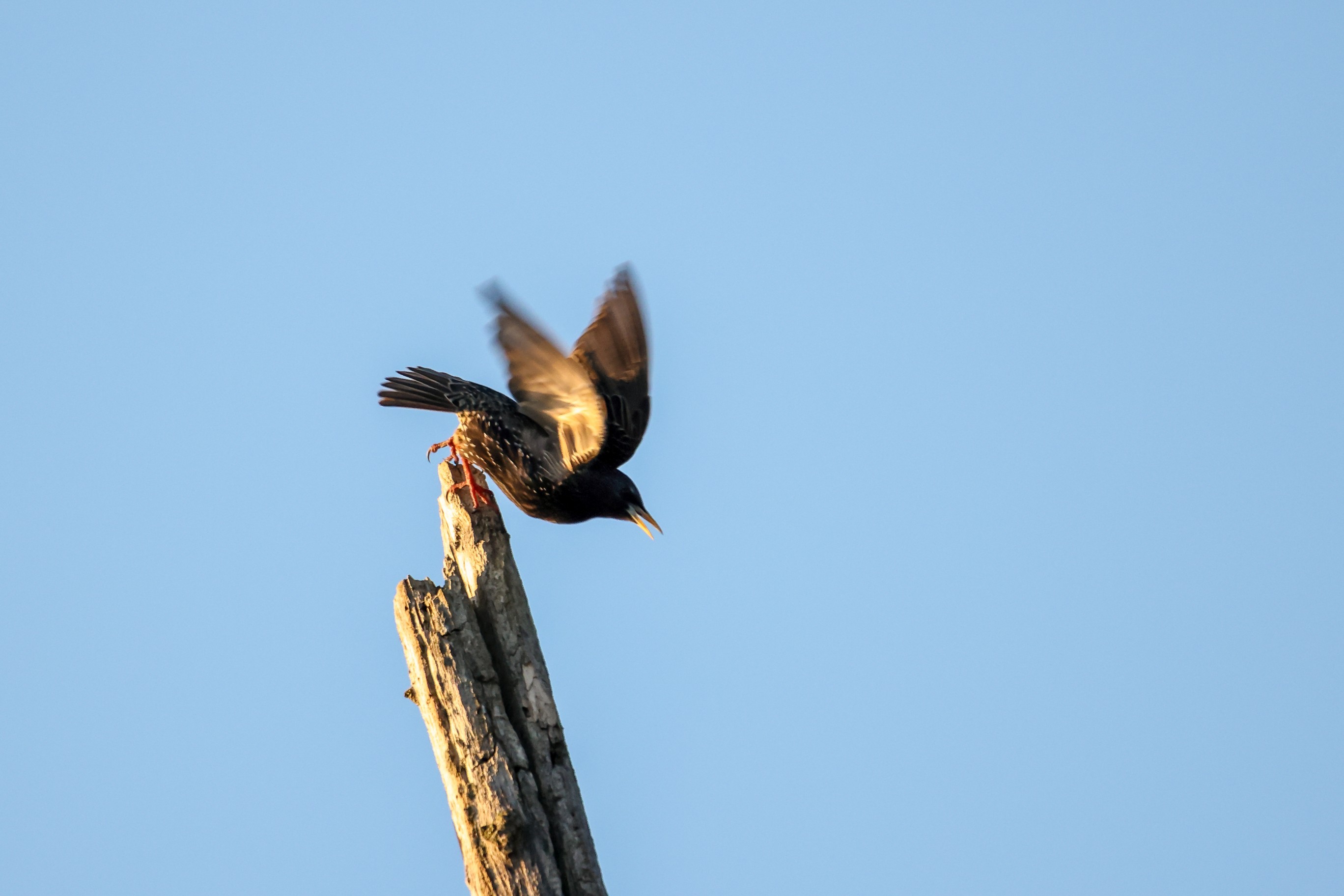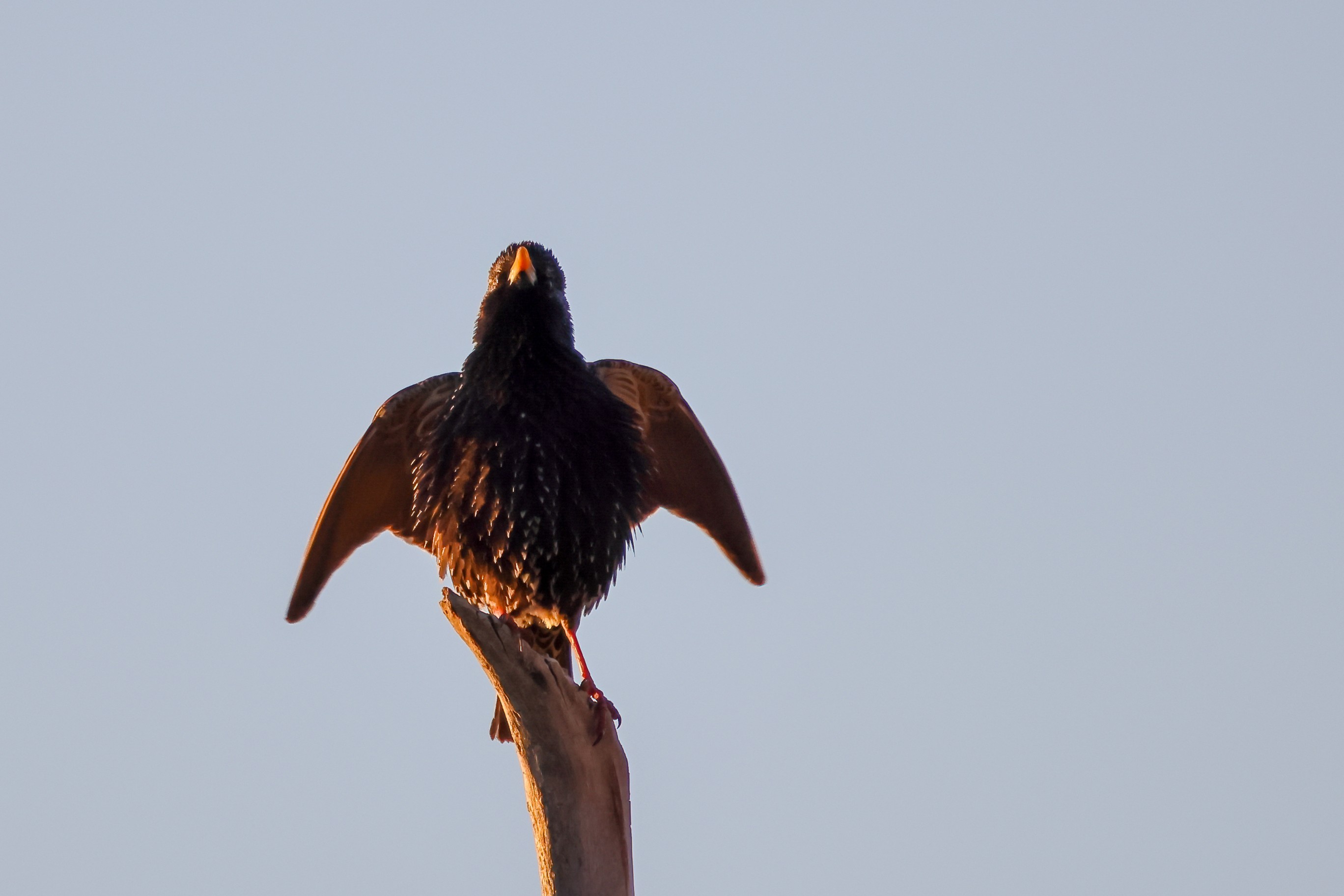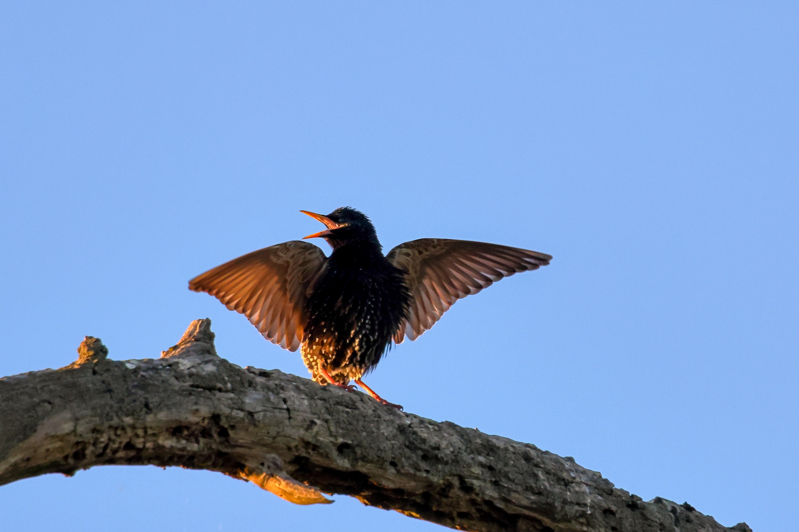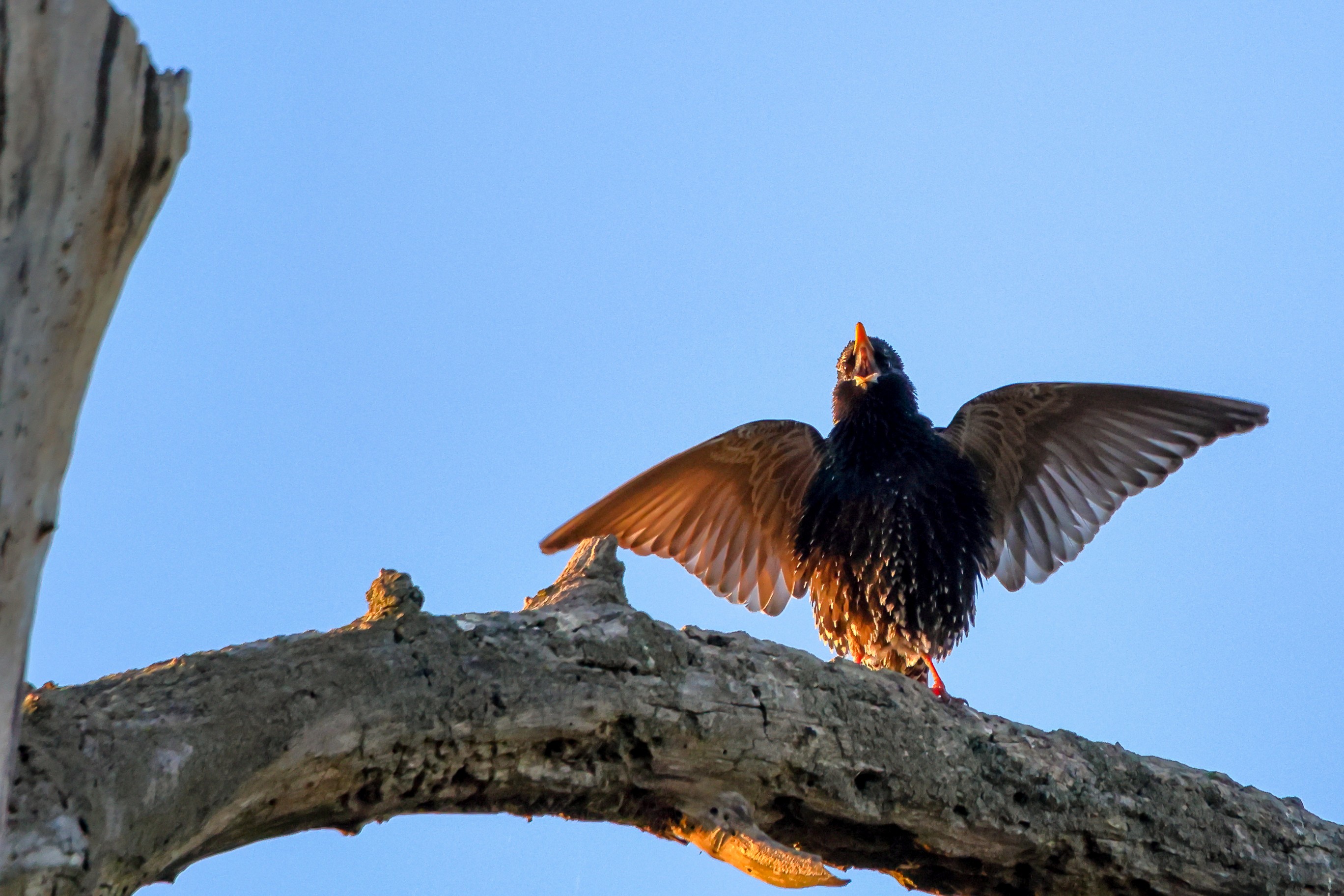 Das letzte Sonnenlicht kleidet die Vogelwelt stimmungsvoll