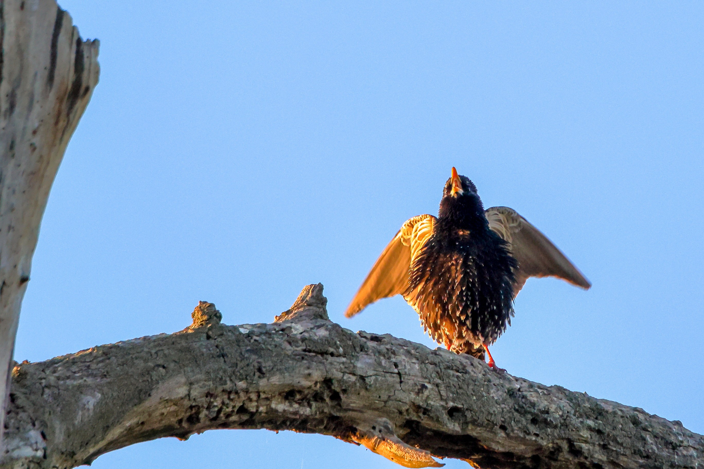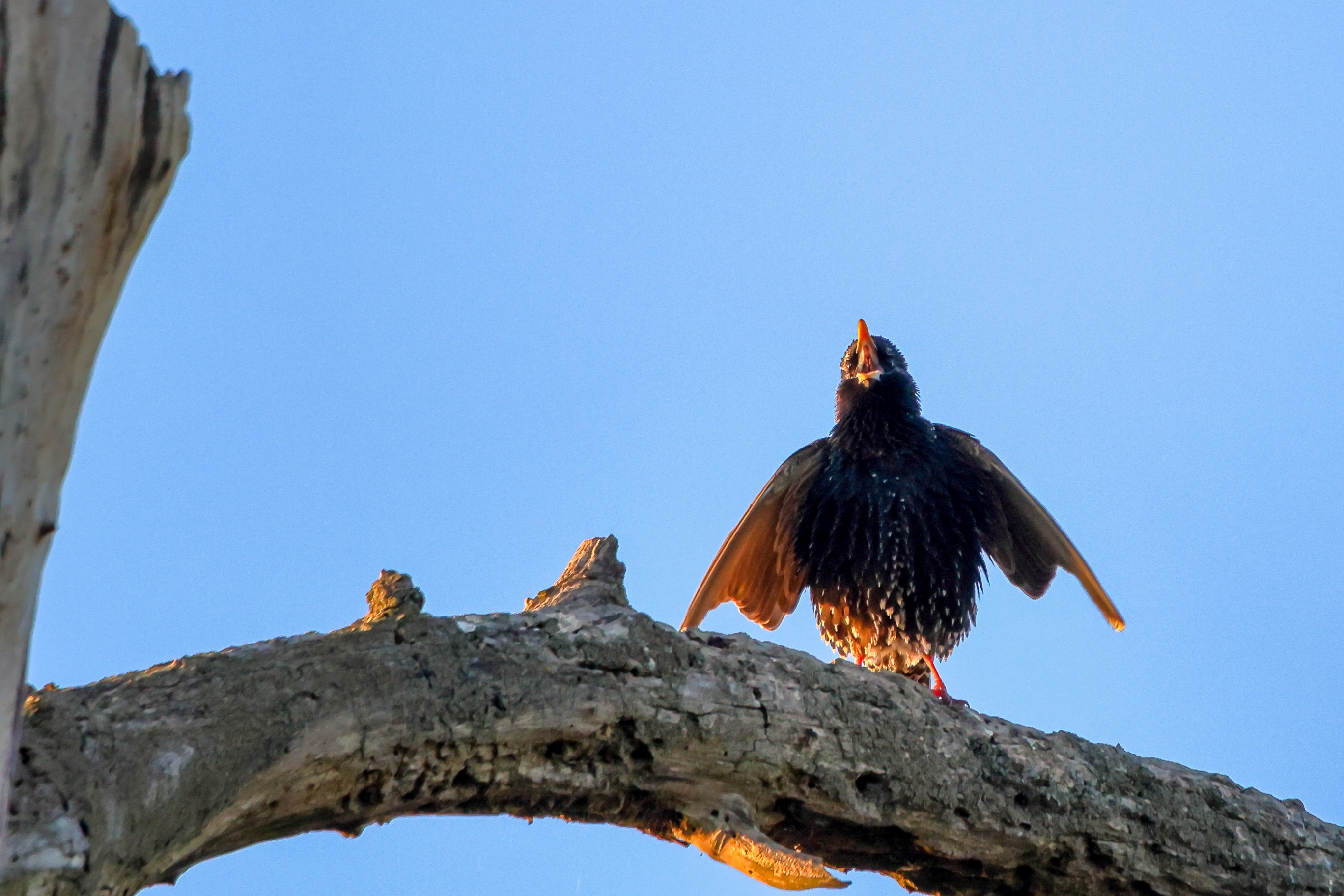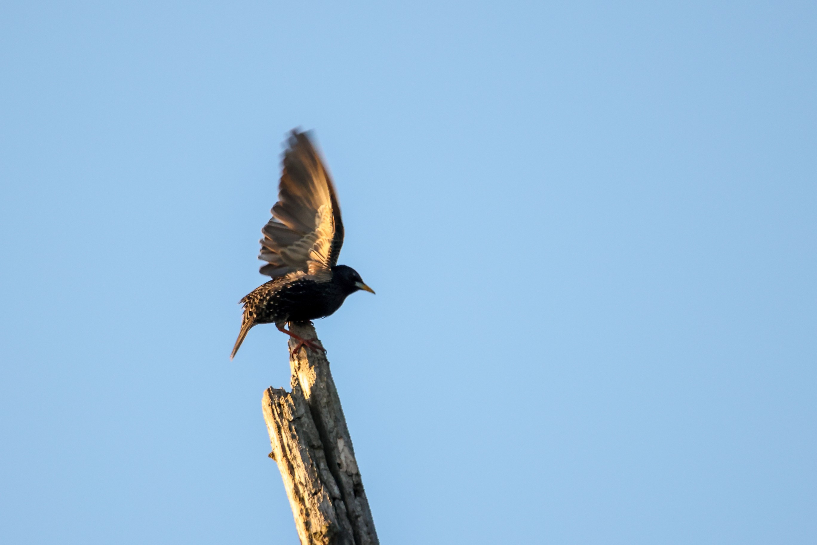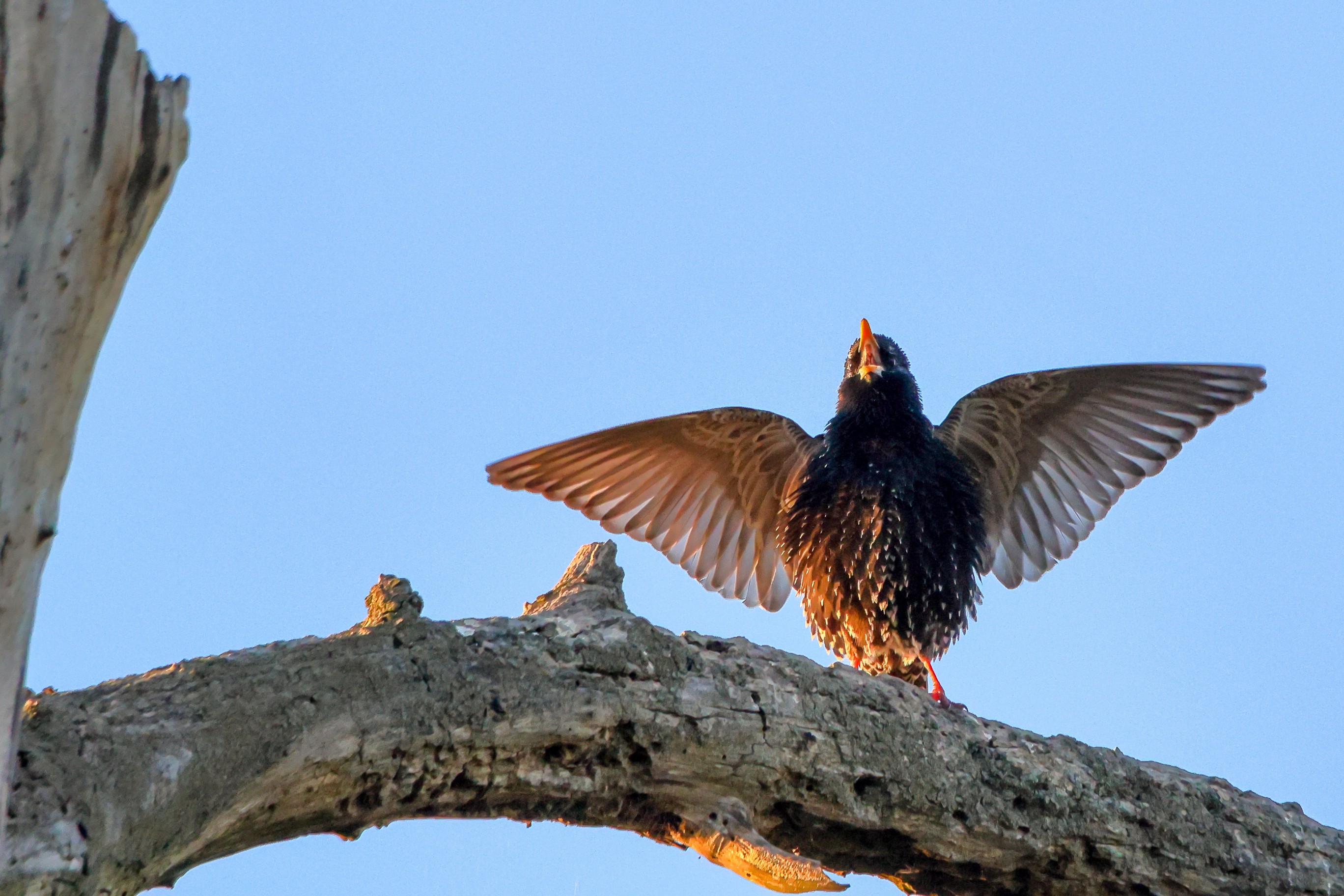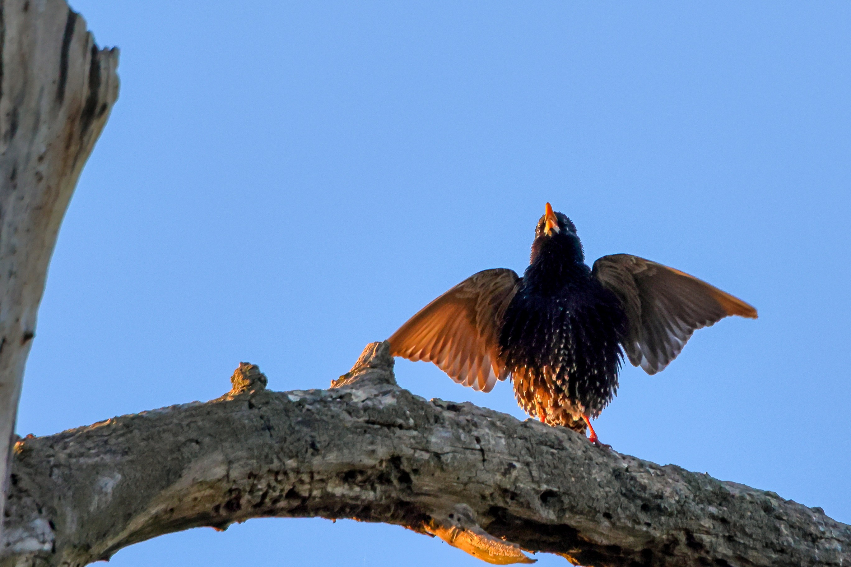 Das letzte Sonnenlicht kleidet die Vogelwelt stimmungsvoll
