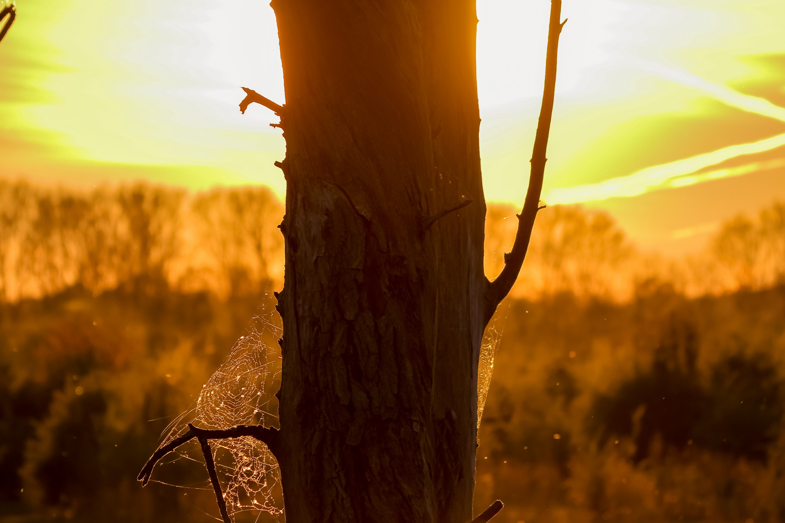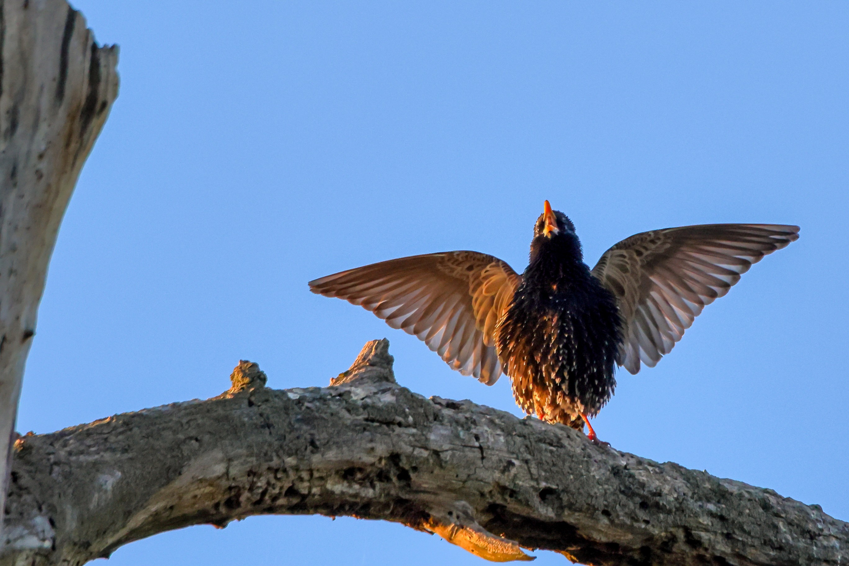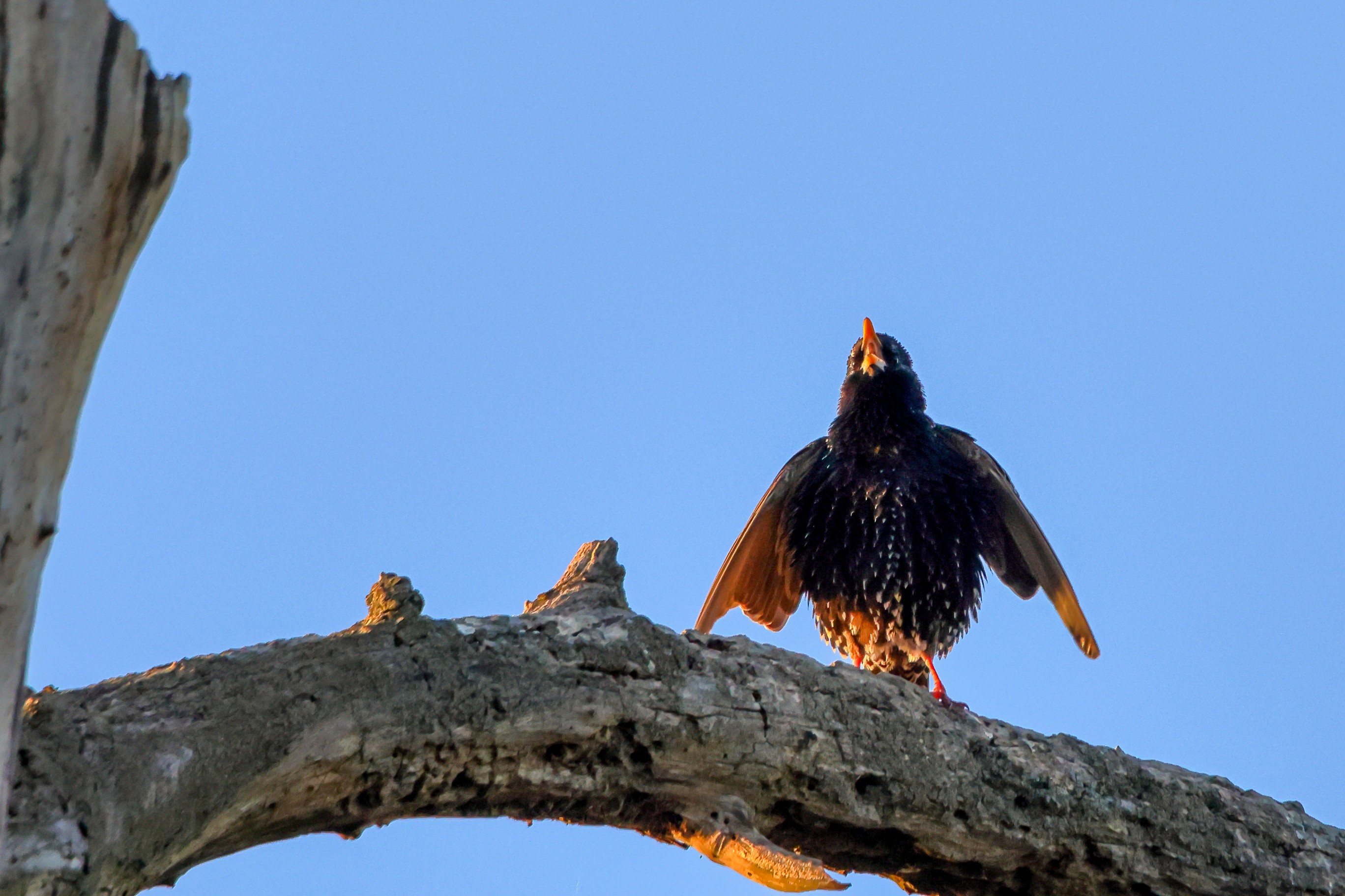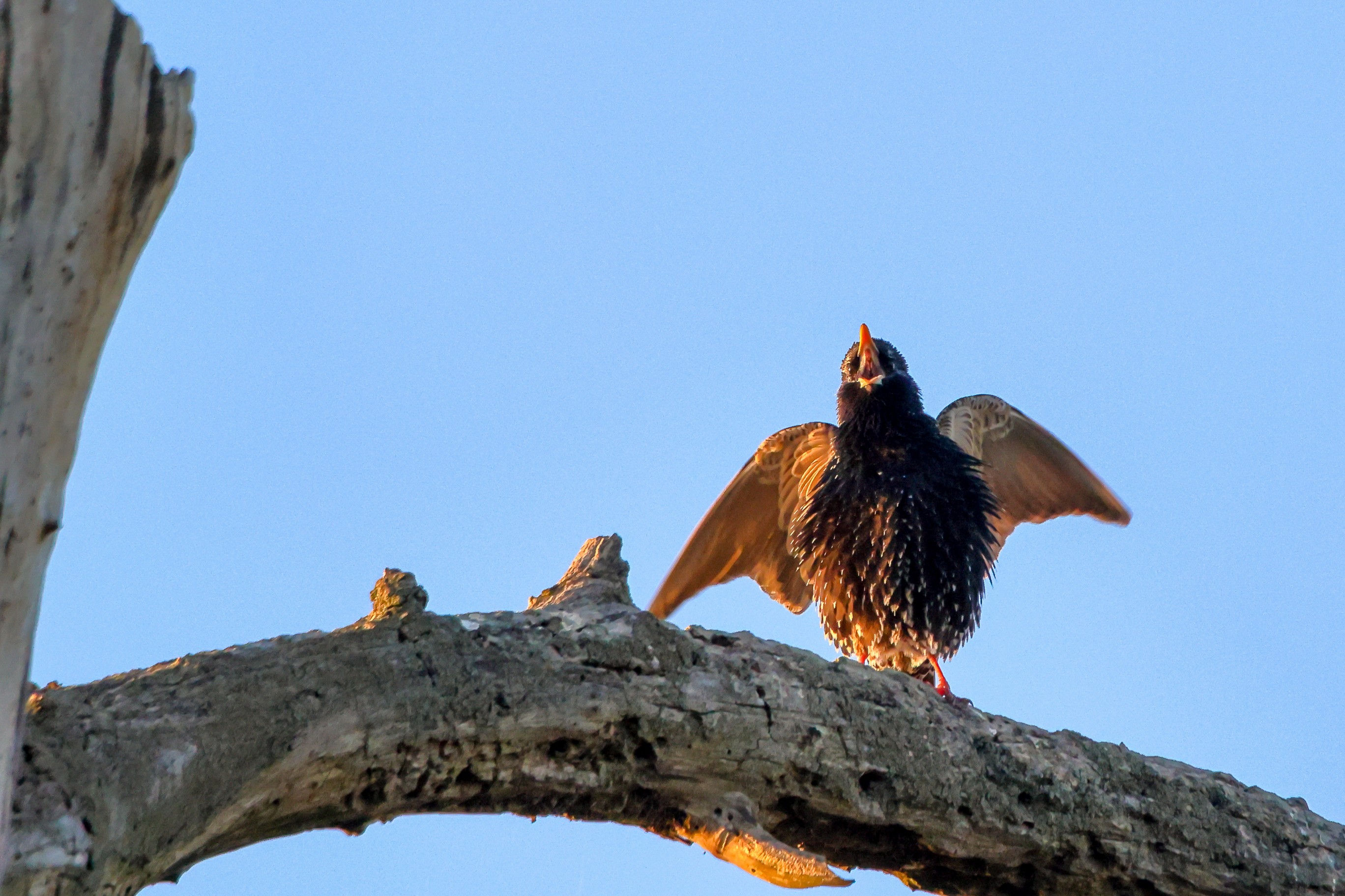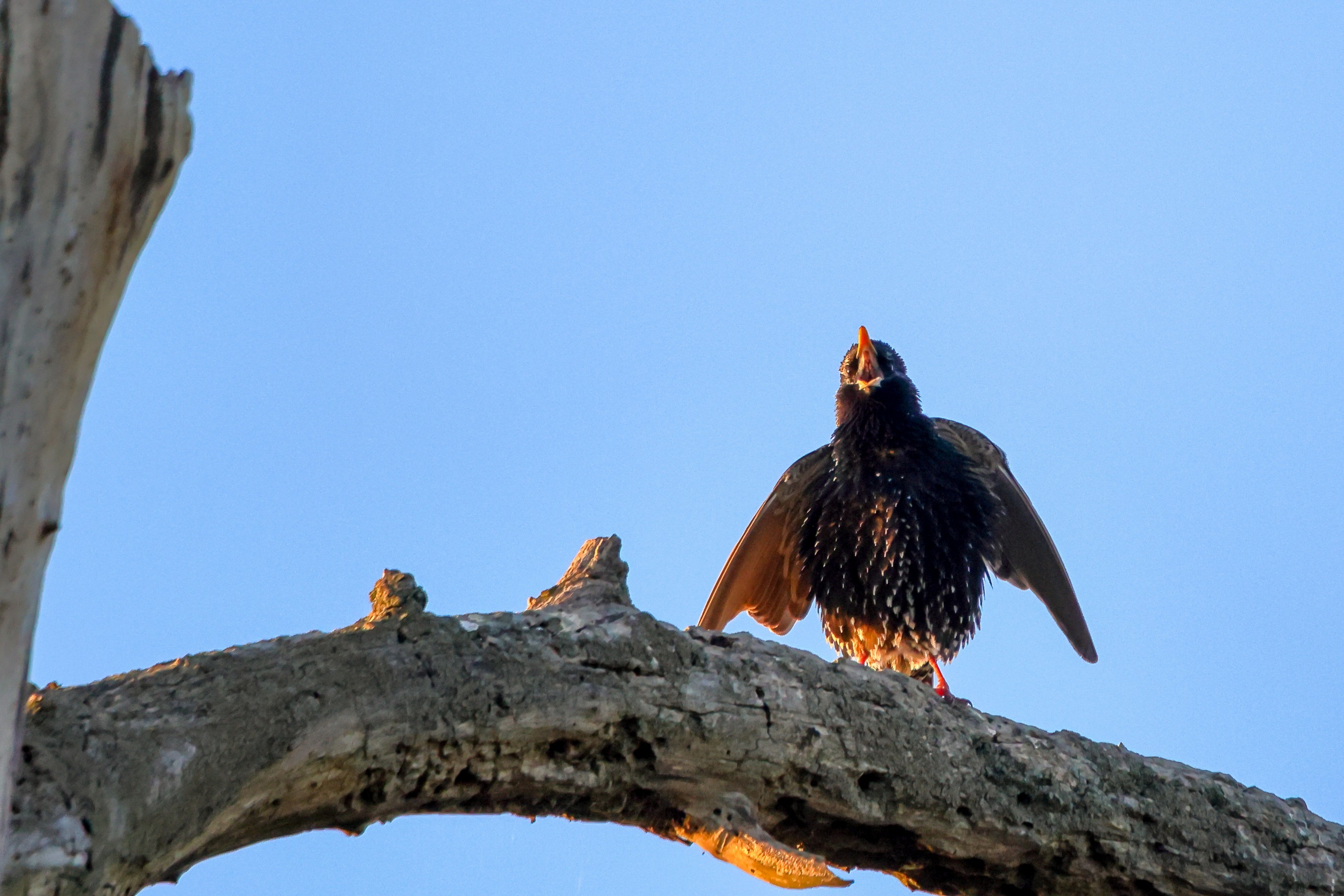 Das letzte Sonnenlicht kleidet die Vogelwelt stimmungsvoll