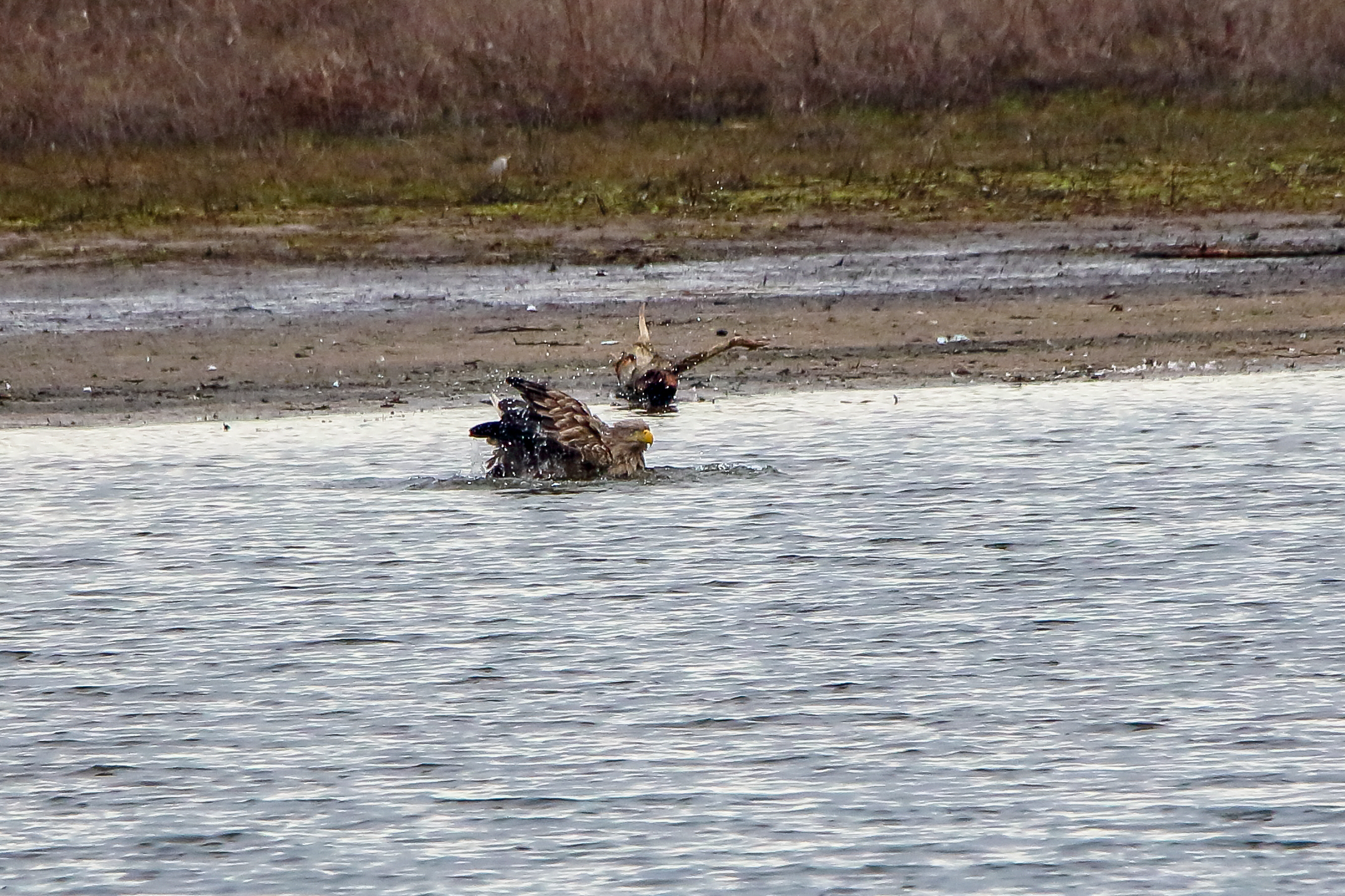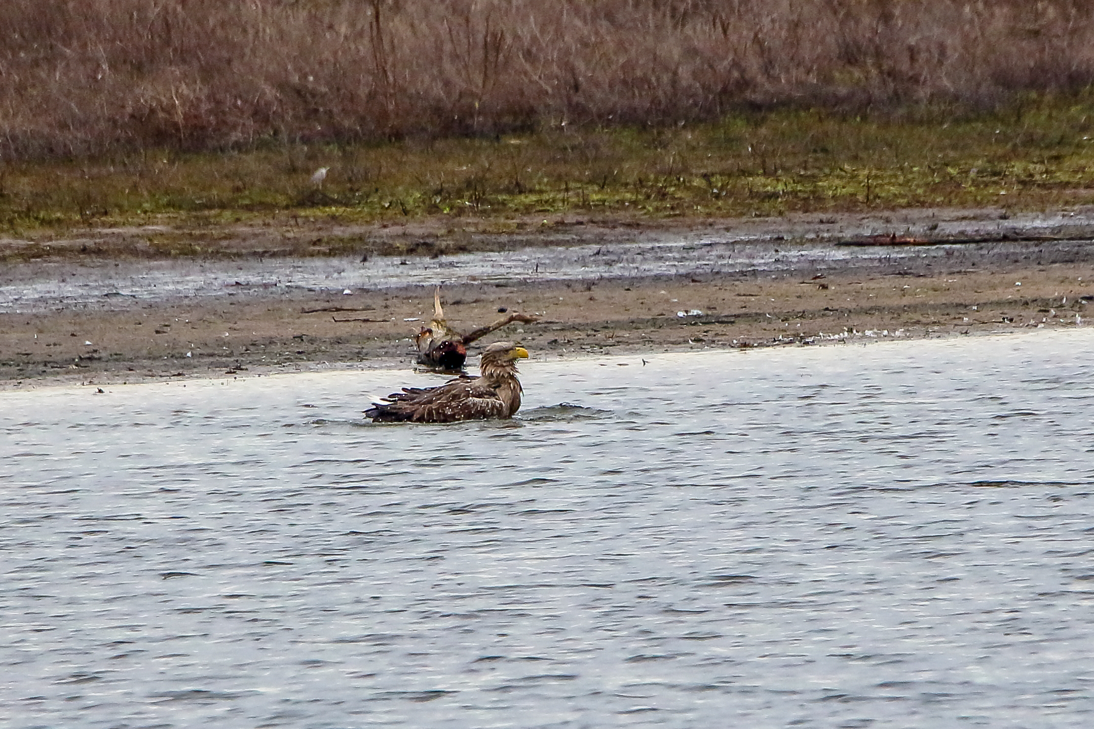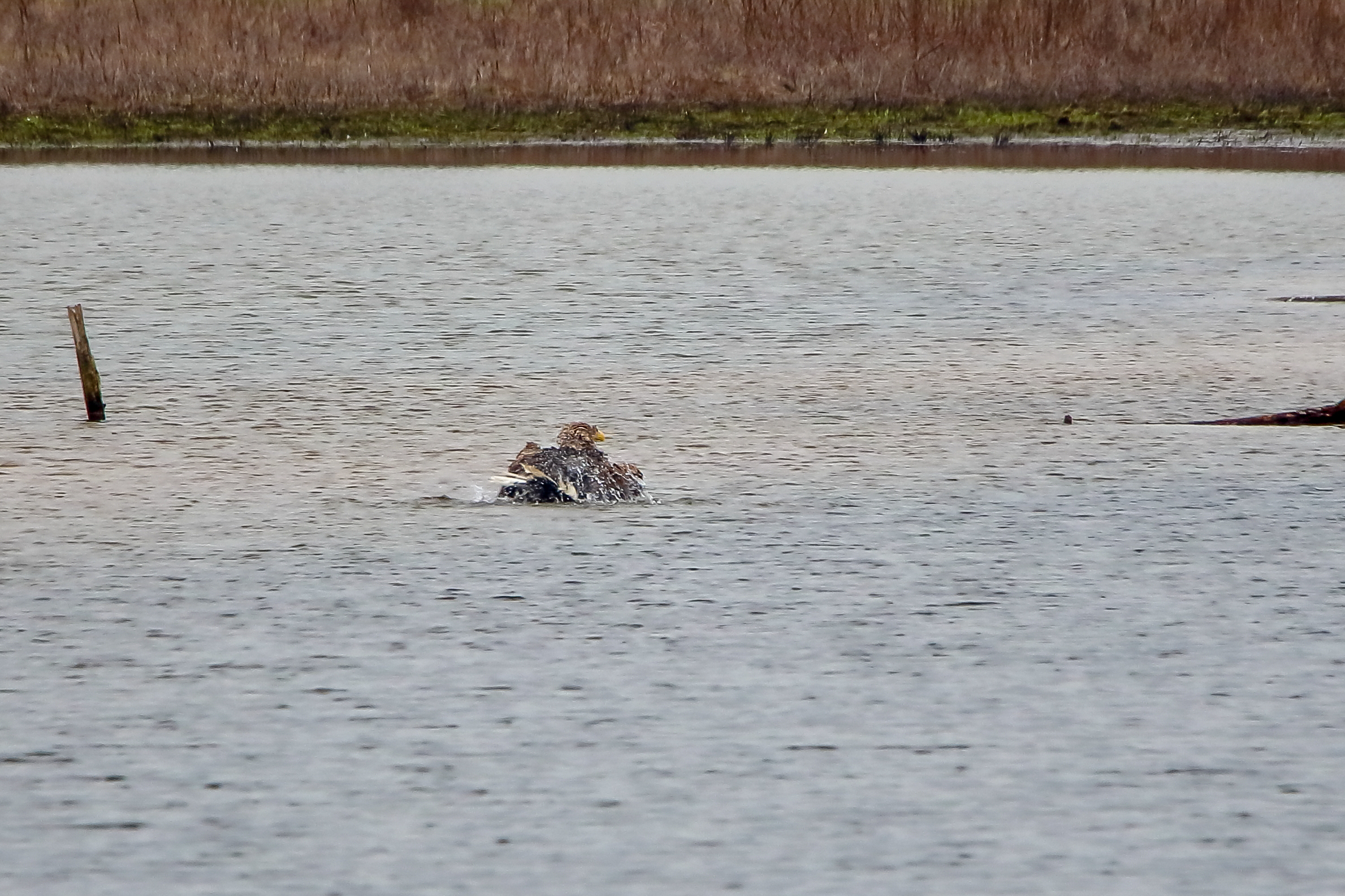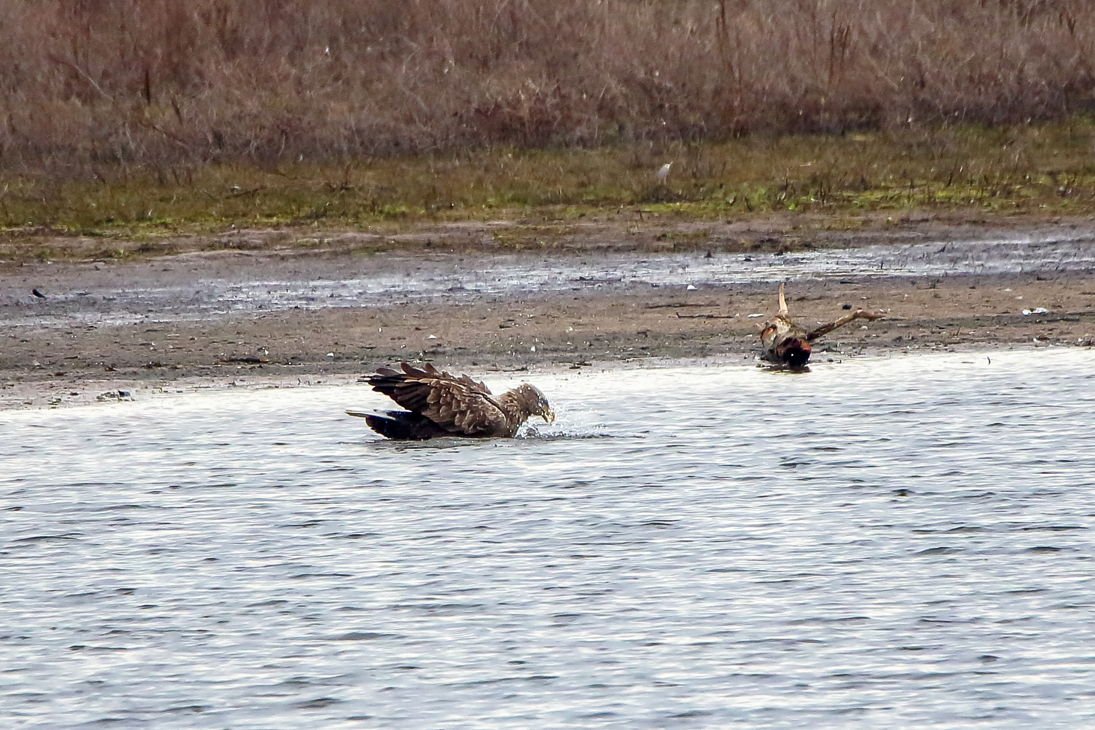 Ein ausgiebiges Bad beider adulten Seeadler läßt die anstehende dritte Brut vermuten