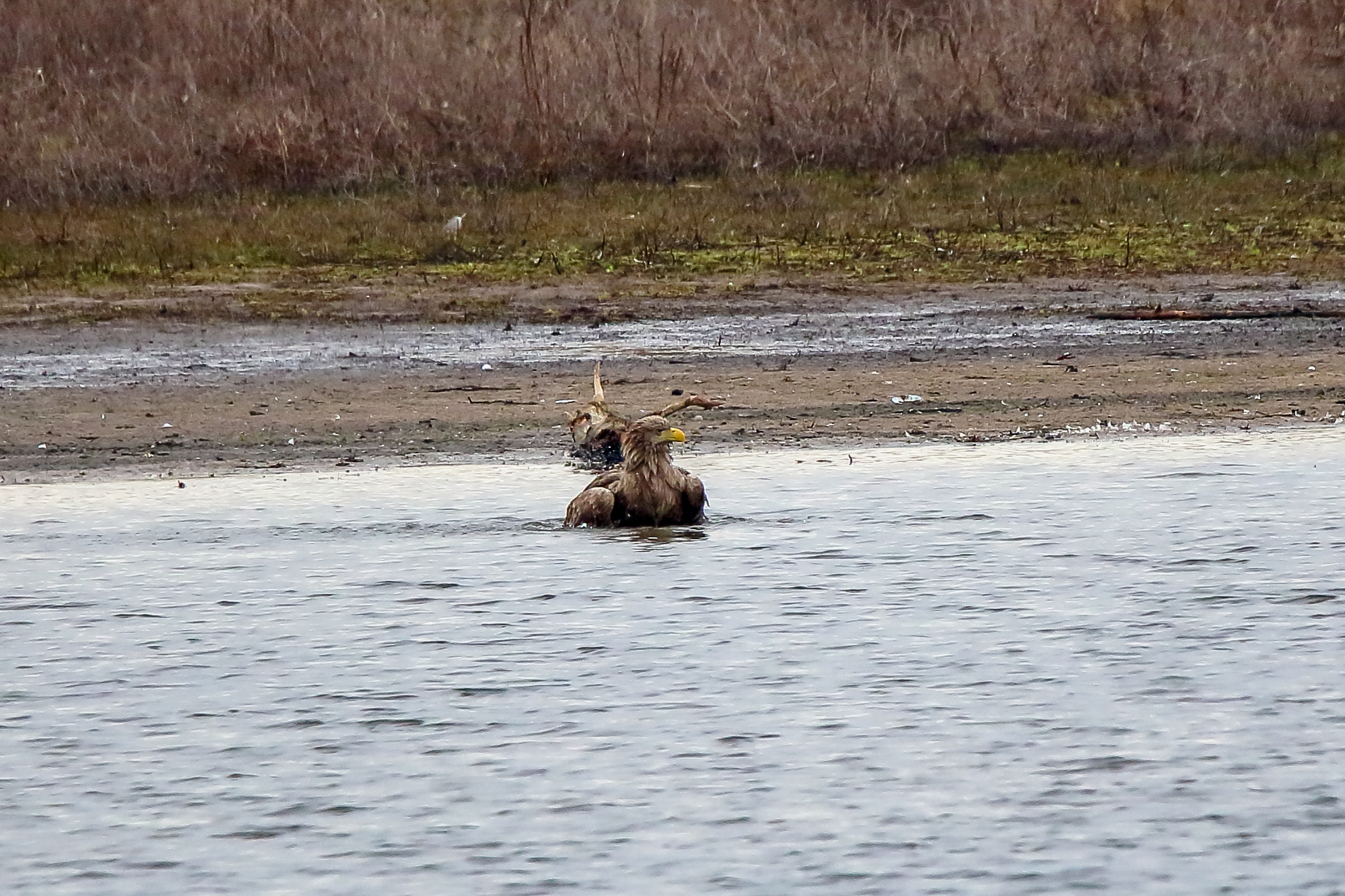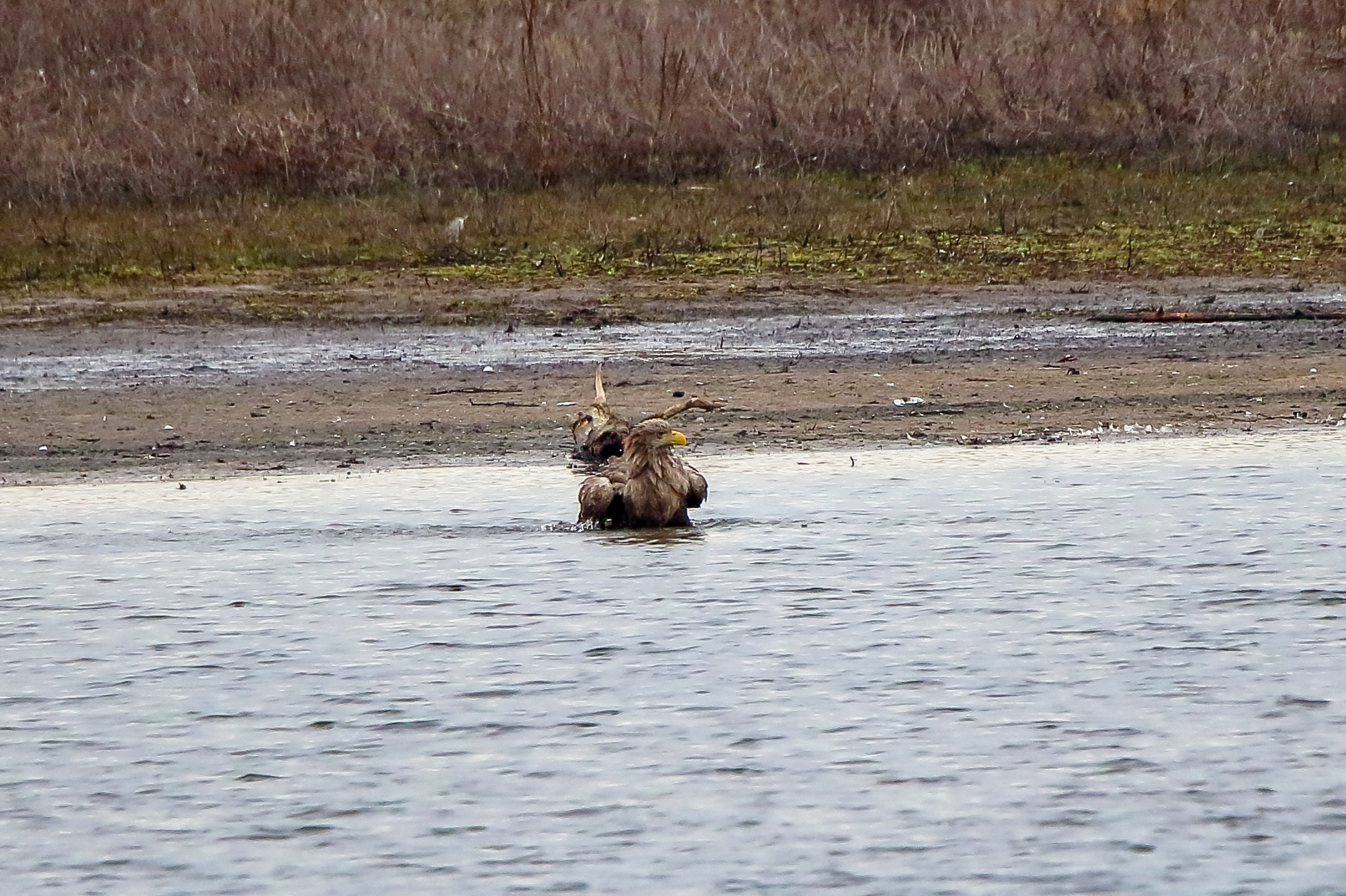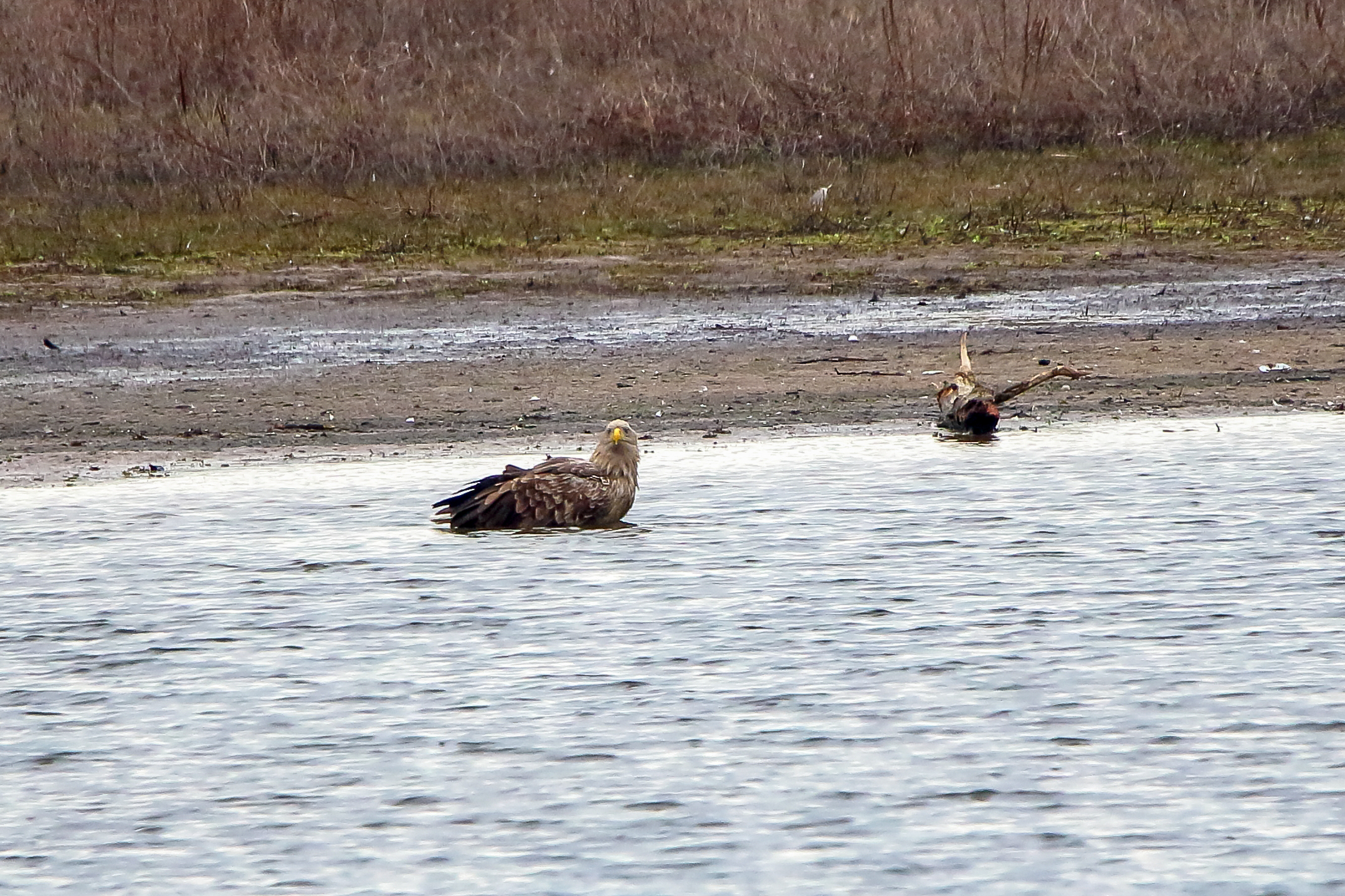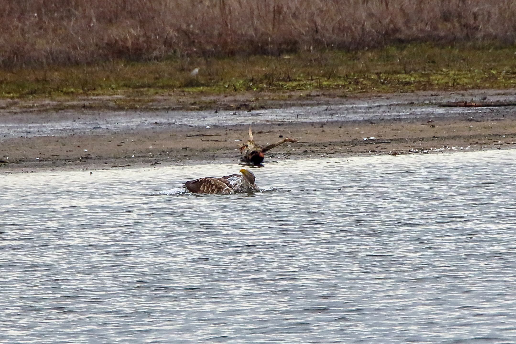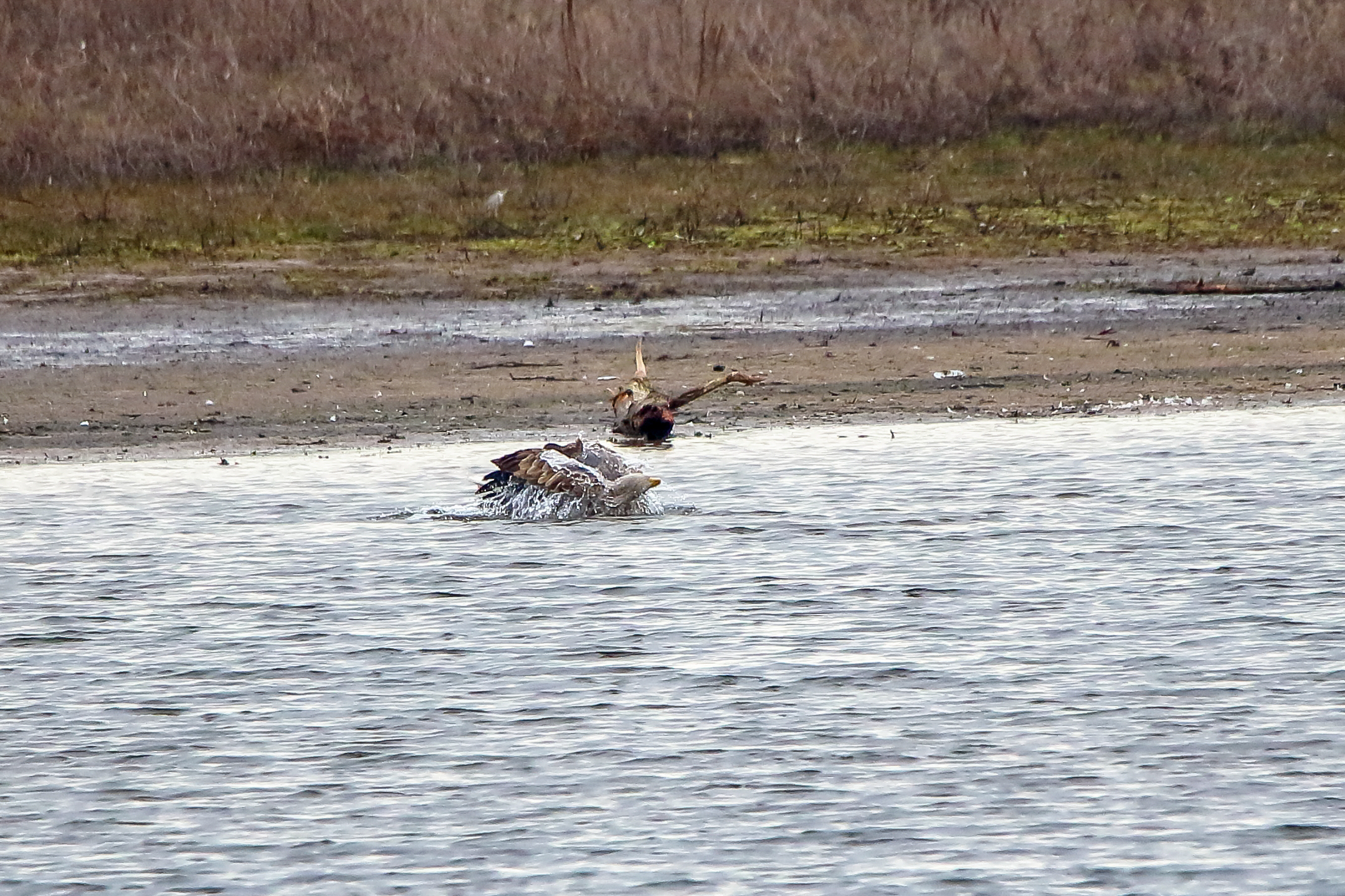 Ein ausgiebiges Bad beider adulten Seeadler läßt die anstehende dritte Brut vermuten