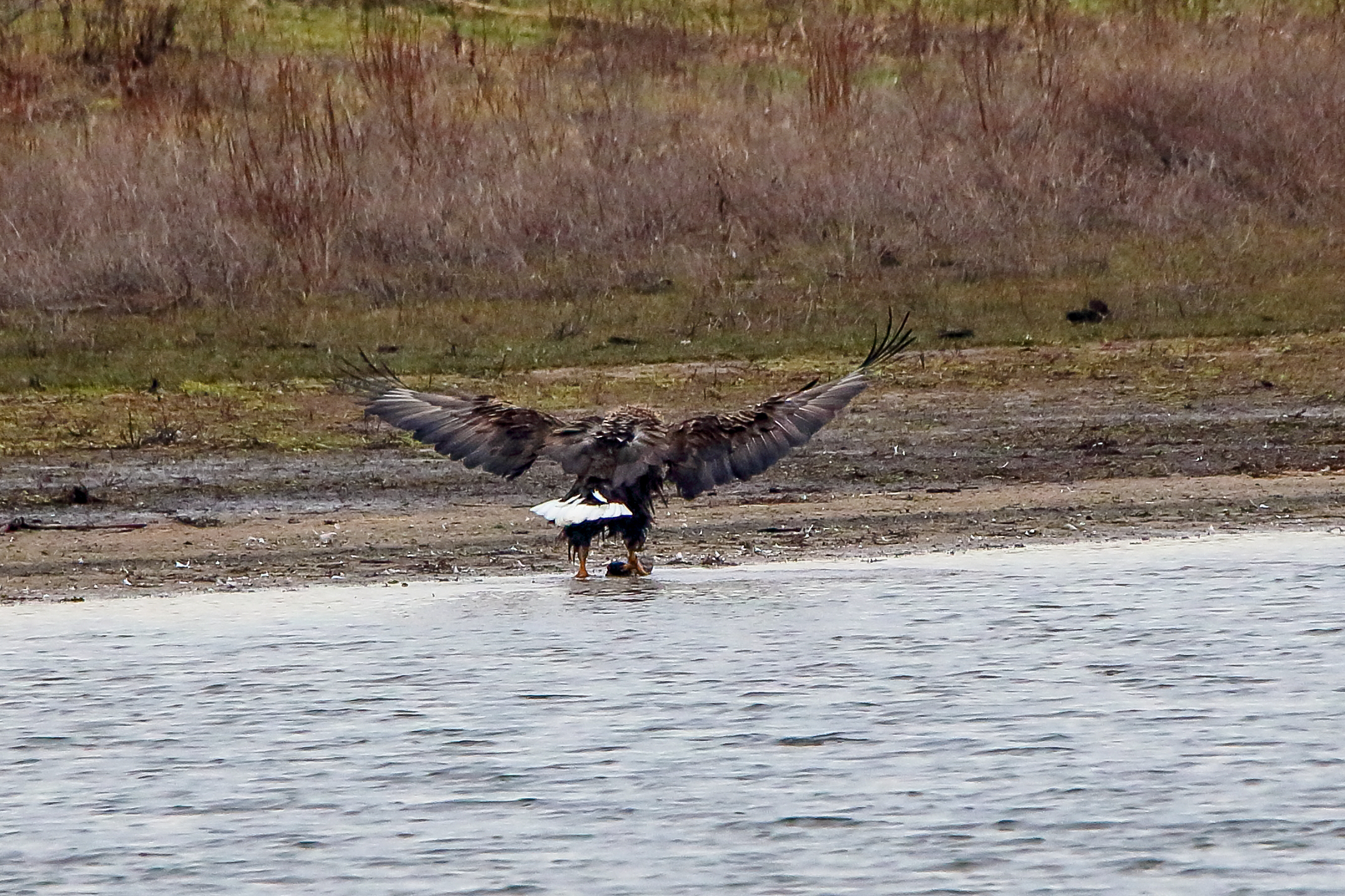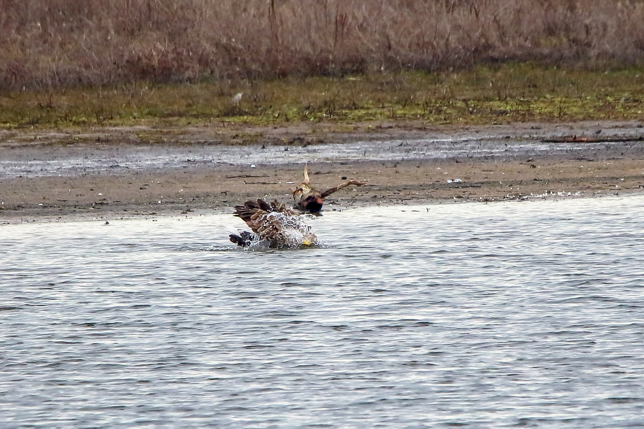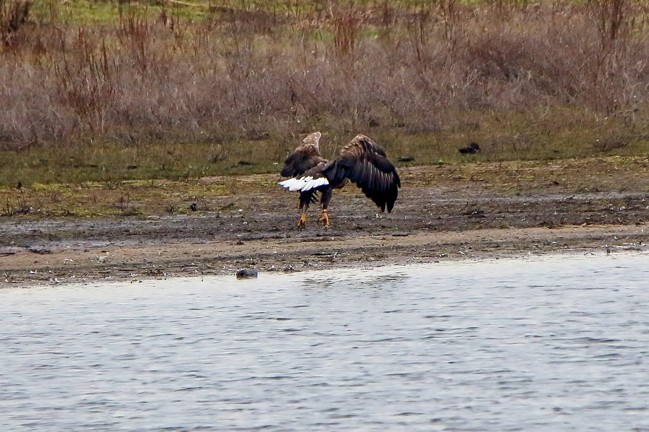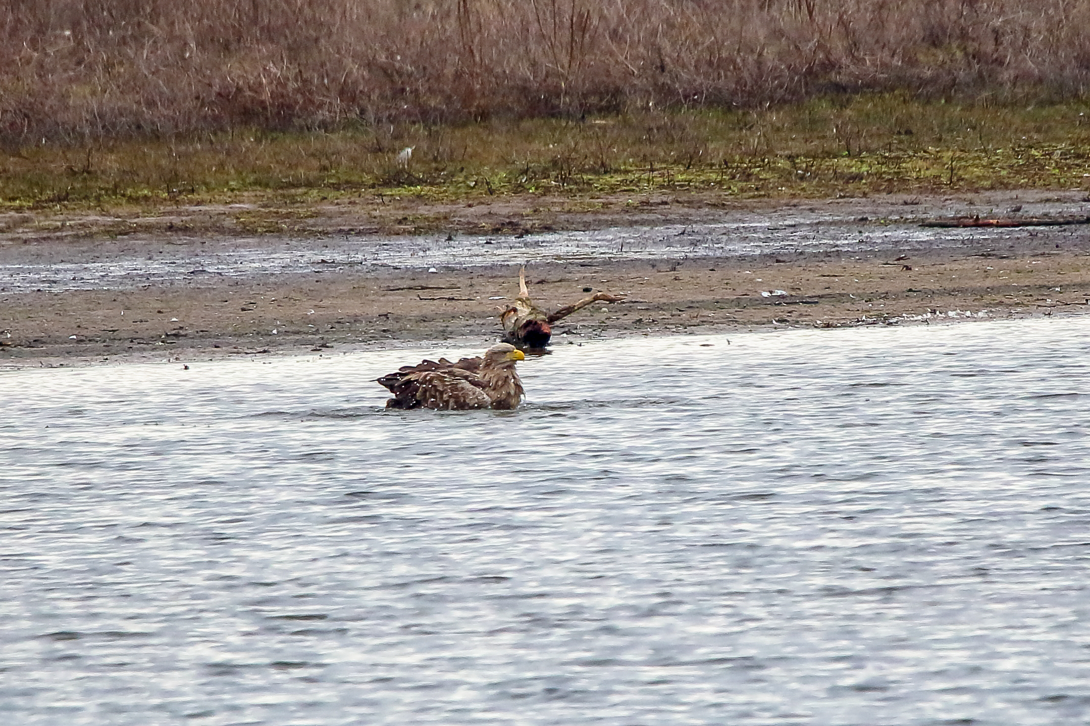 Ein ausgiebiges Bad beider adulten Seeadler läßt die anstehende dritte Brut vermuten