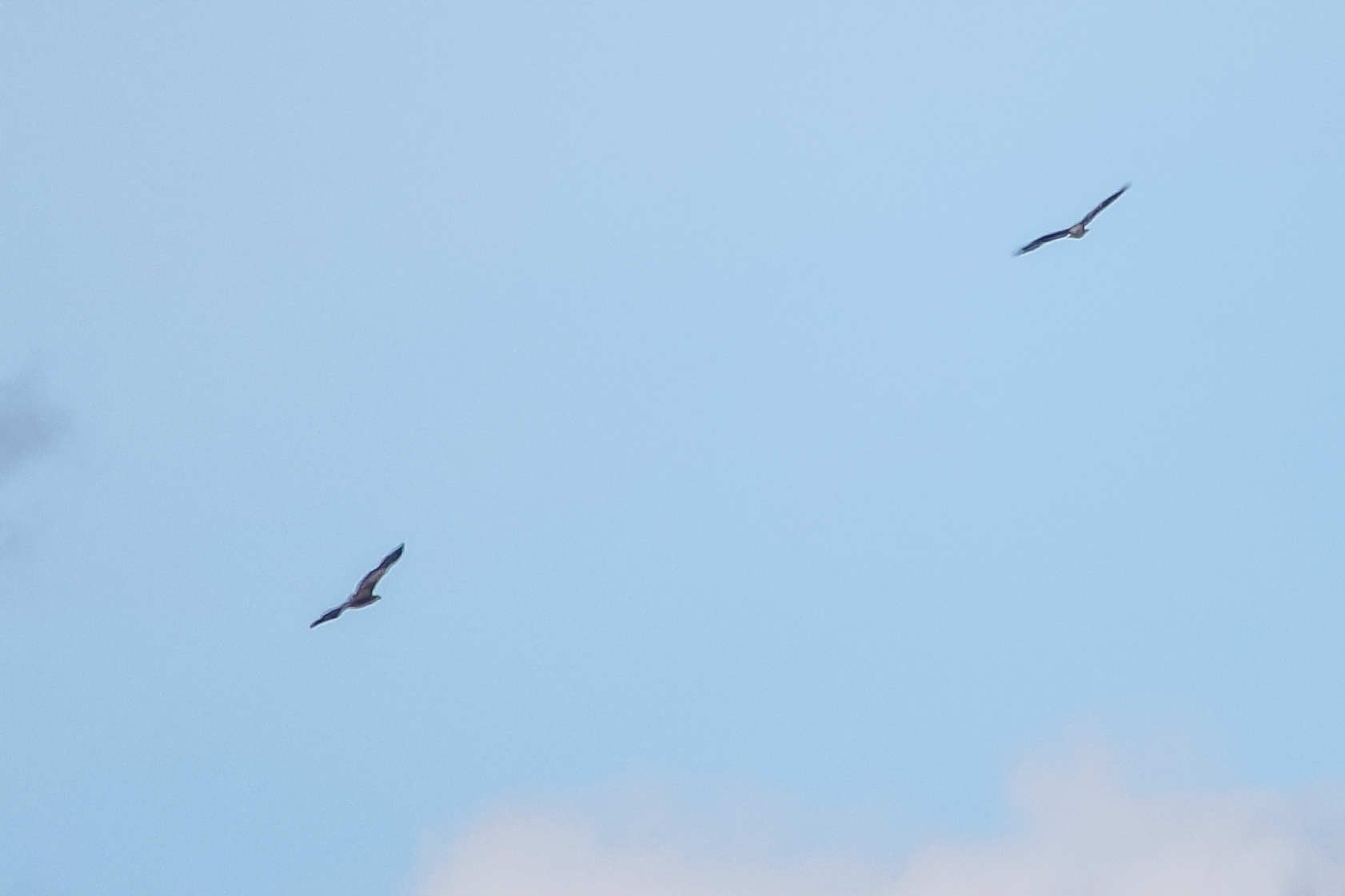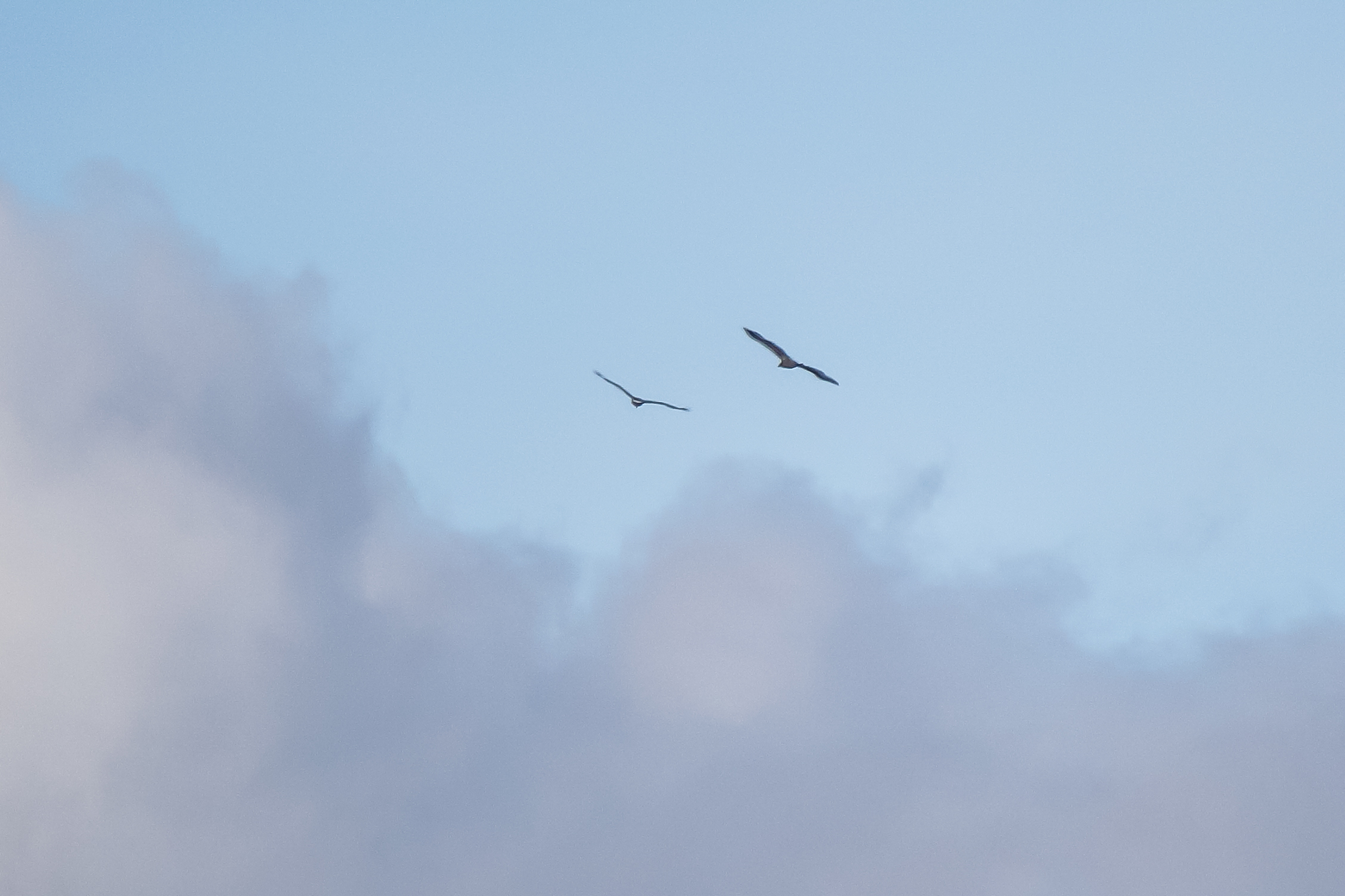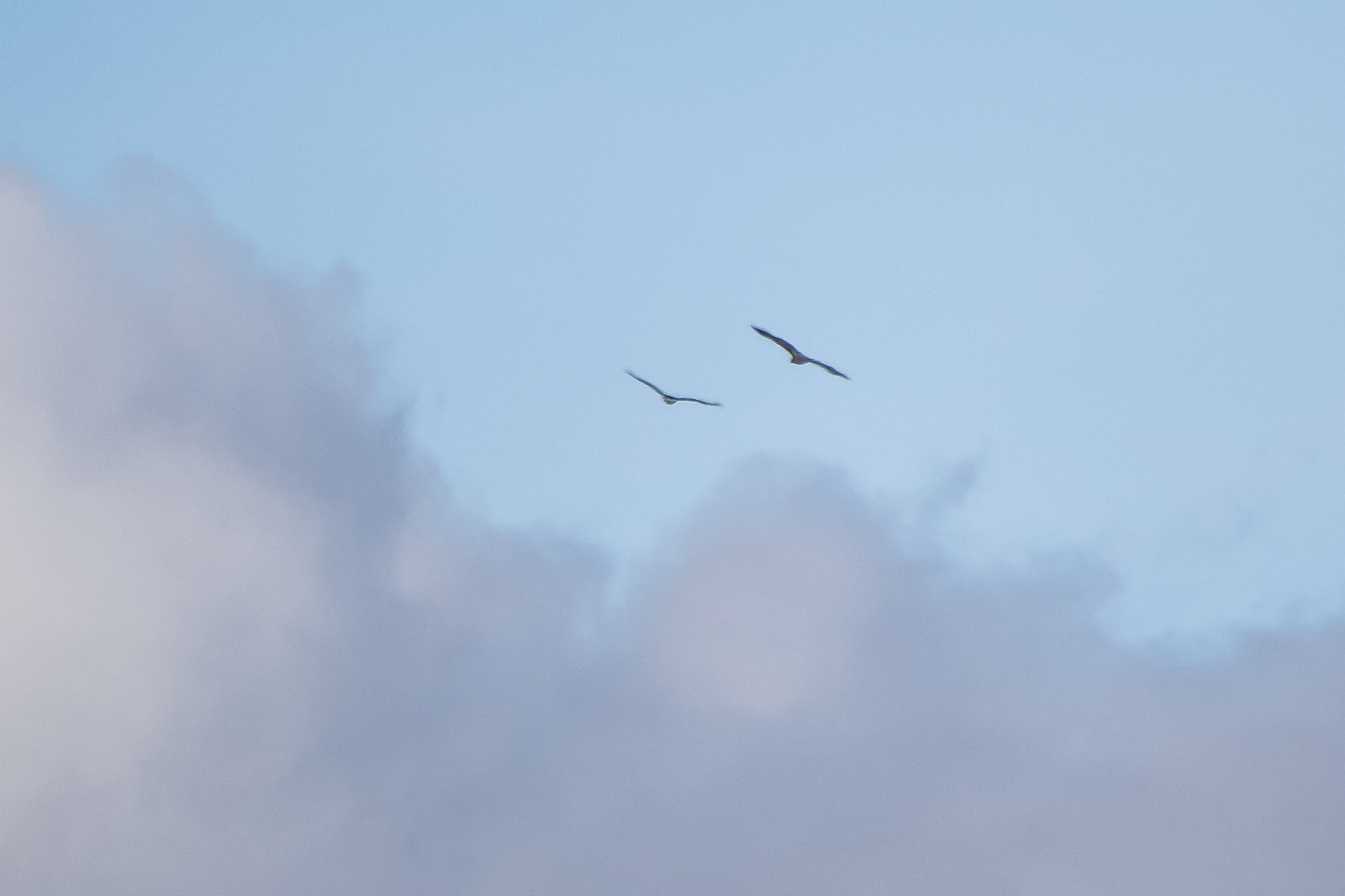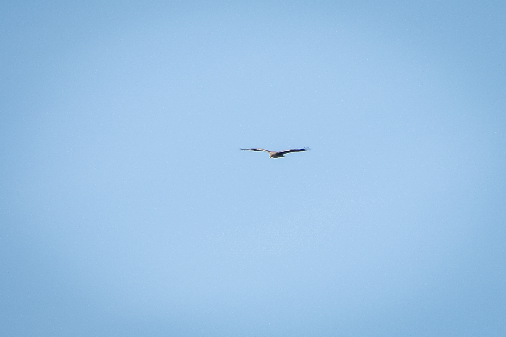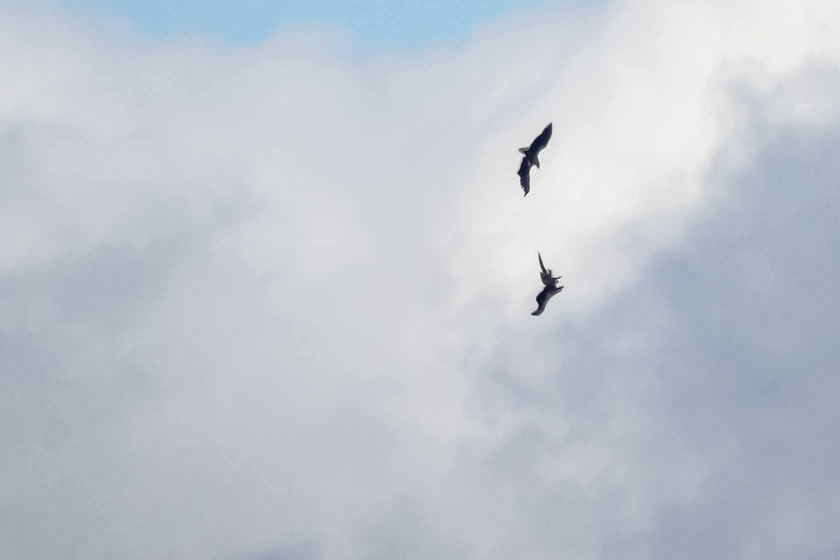 Zwischen dem 03. und 04. März zeigte das Seeadlerweib lange Sitzfolgen im Horst. Vermutlich begann zu diesem Zeitpunkt schon die Eiablage. Nun am 06. März verlässt das Seeadlerweib nicht mehr den Horst und der männliche Seeadler bringt Beute in den Horst. Nach kurzen Beuteflügen des Seeadlermännchens verweilt er ständig in unmittelbarer Nähe des Horstes. Eine freudige Beobachtung, die uns Naturfreunden die Hoffnung auf eine weitere Reproduktion der Seeadler auf der Bislicher Insel schenkt. Somit wird nach dem traurig verlaufenden Jahr 2020 nunmehr ein erlebnisreiches Jahr für die Besucher auf der Bislicher Insel anstehen. In ca. 38 Tagen wird der erste Nachwuchs im Horst schlüpfen und nach weiteren drei Wochen werden die Seeadlerküken, falls Blätter nicht die Sicht versperren, zu sichten sein. Im Alter von ca. 70-75 Tagen werden die Nesthocker sich zu Ästlingen entwickeln und ihre Flugfähigkeit mit ca. 95 Tagen nach dem Schlupf erreichen. Ein spannendes Jahr steht an. Am Vormittag des 06. März beobachtete ich den Anflug eines aus dem zweiten Kalenderjahr stammenden Jungseeadlers, der unbesendert ins Habitat einflog. Seine Höhe war fast unerreichbar für mein Objektiv, aus diesem Grund ließen sich nur Belegaufnahmen fertigen. Wahrscheinlich handelte es sich um einen Jungseeadler des letzten Jahres aus den Niederlanden. Unser Seeadler ließ nicht lange auf sich warten und zeigte dem Jungseeadler unmissverständlich wer der Chef im Habitat ist.