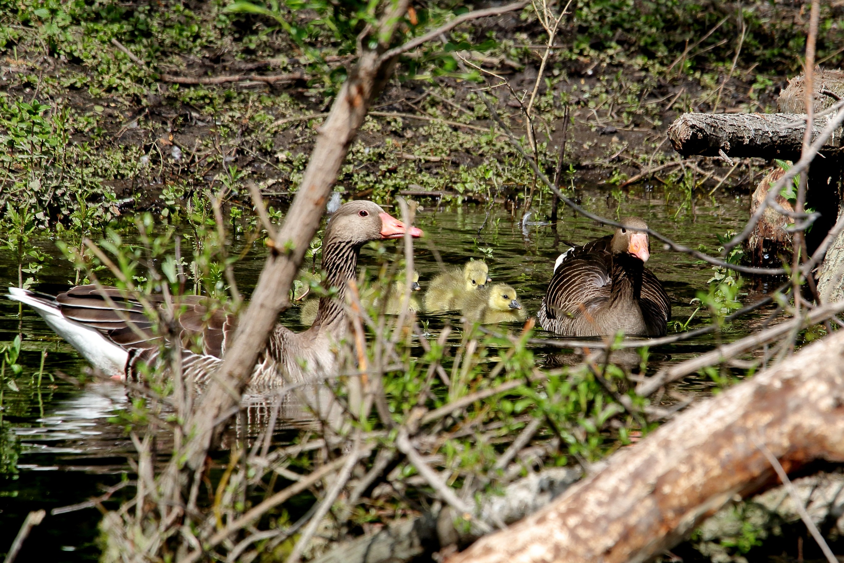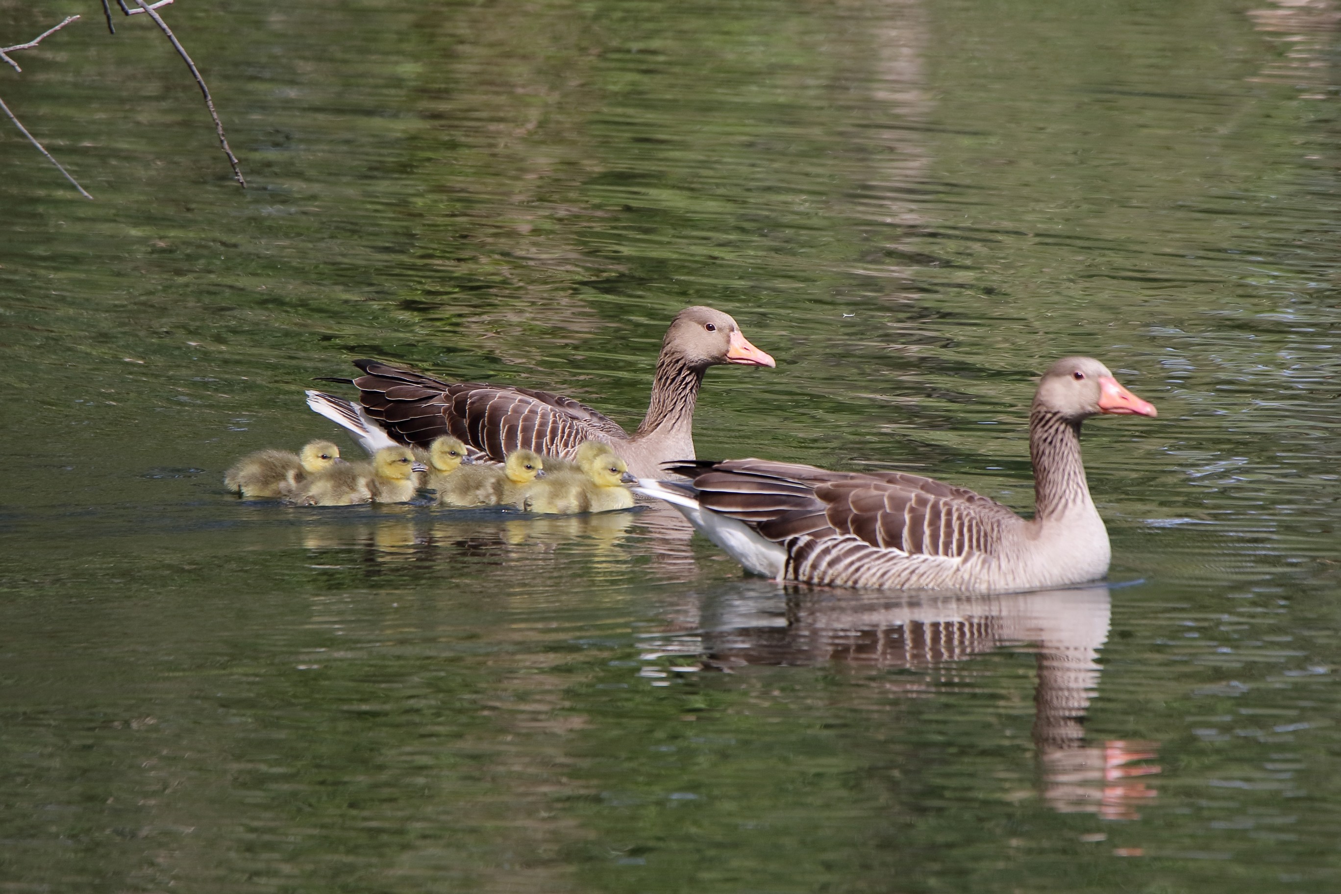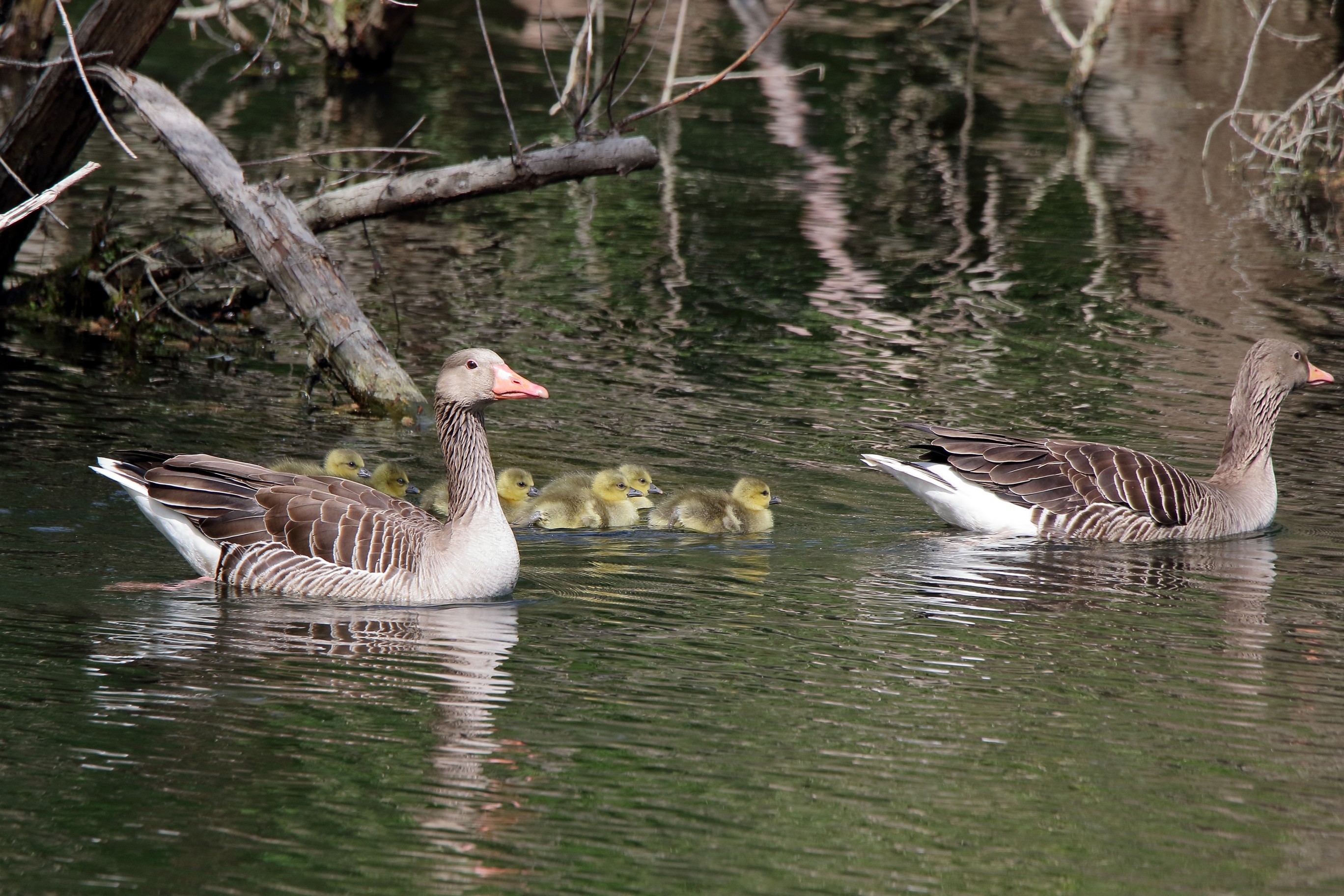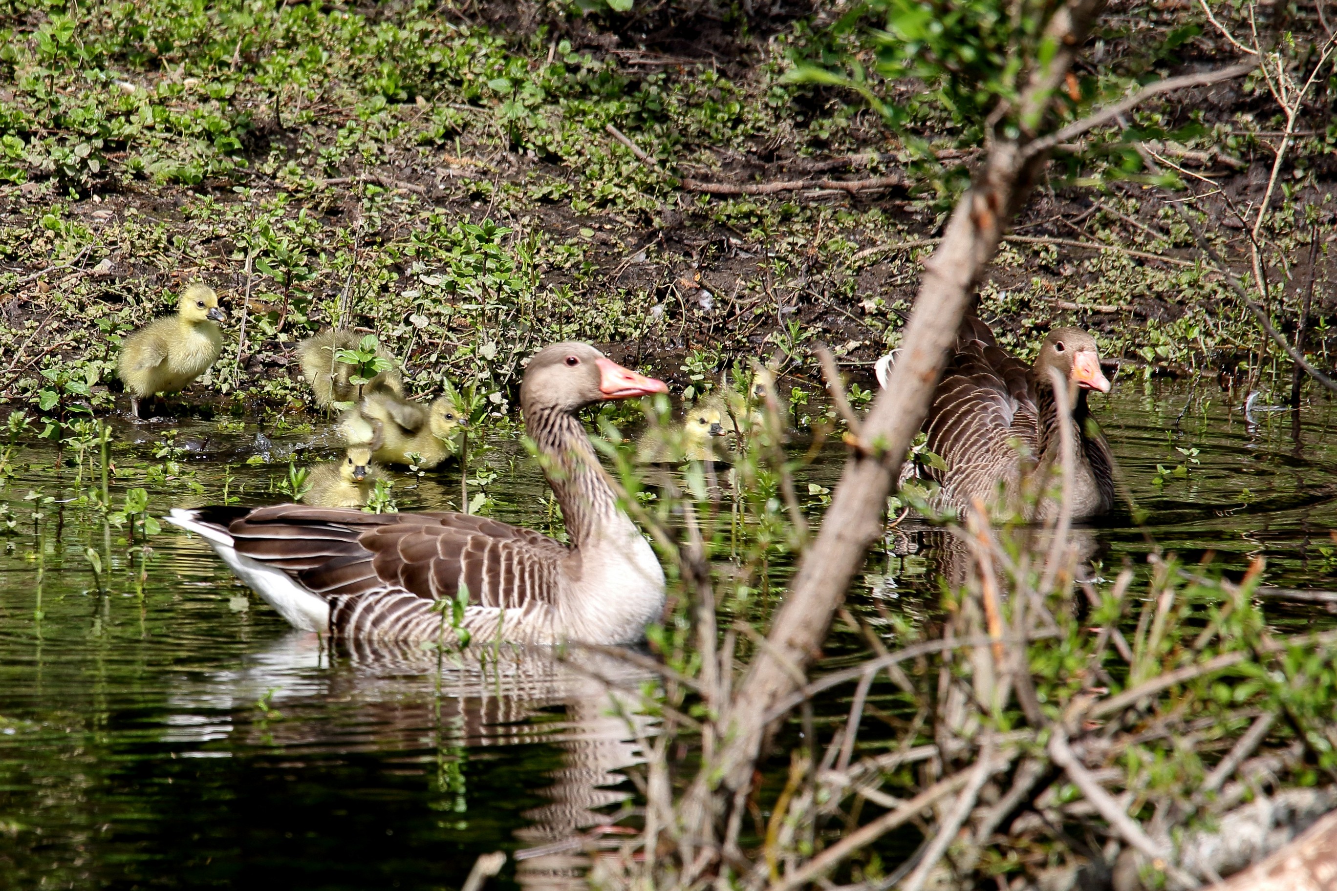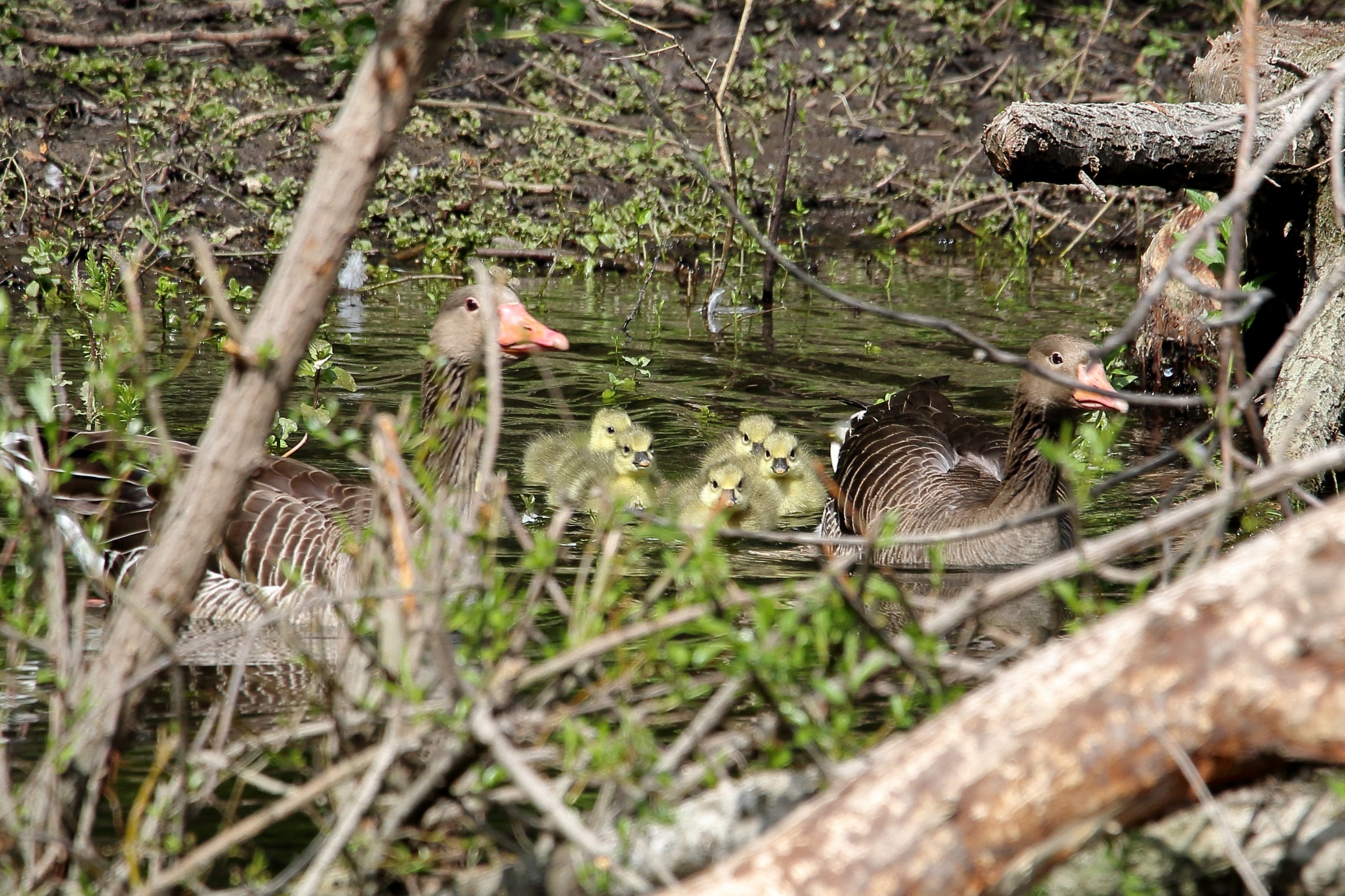 Erste Sichtung des Graugansnachwuchses an der Beobachtungshütte II