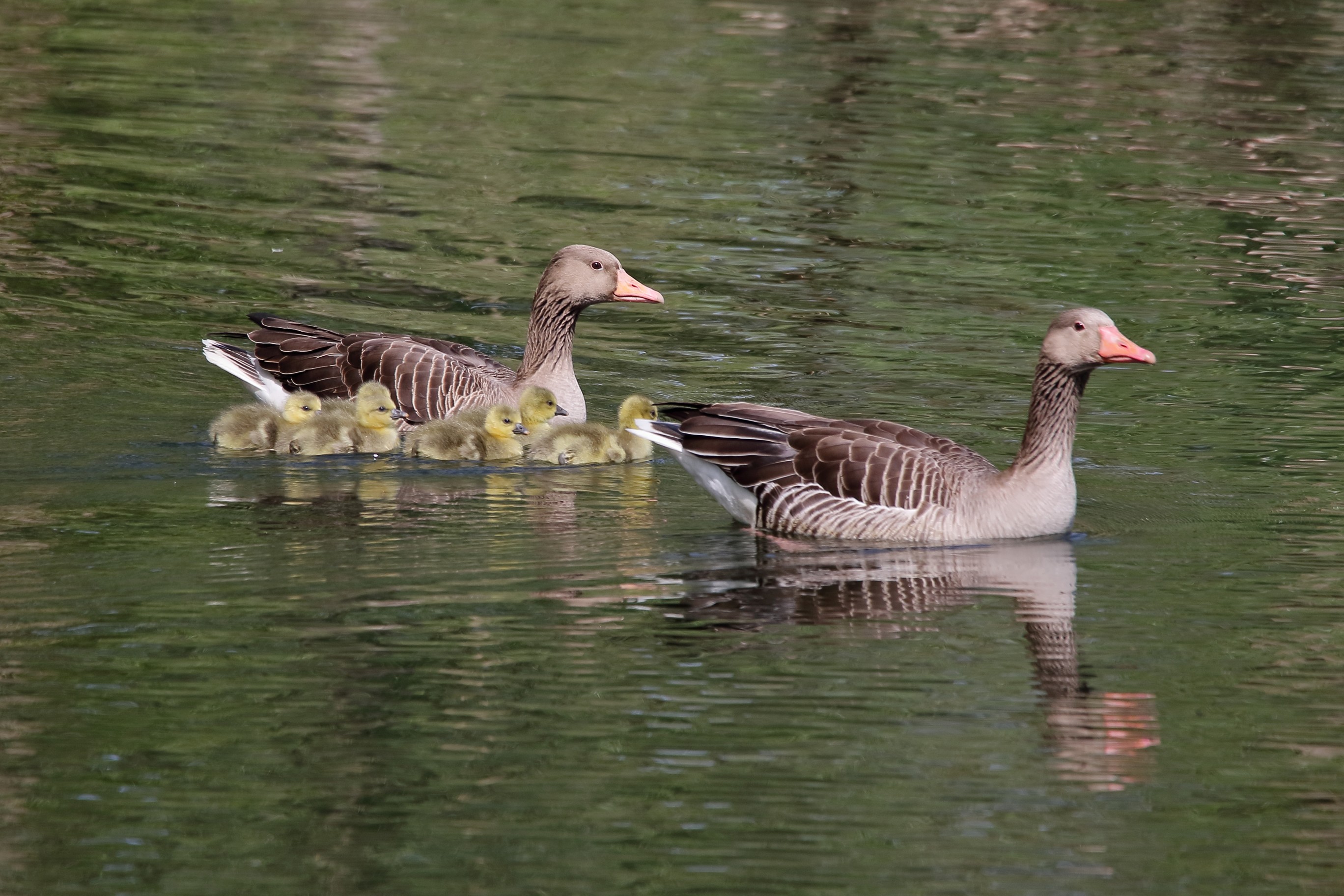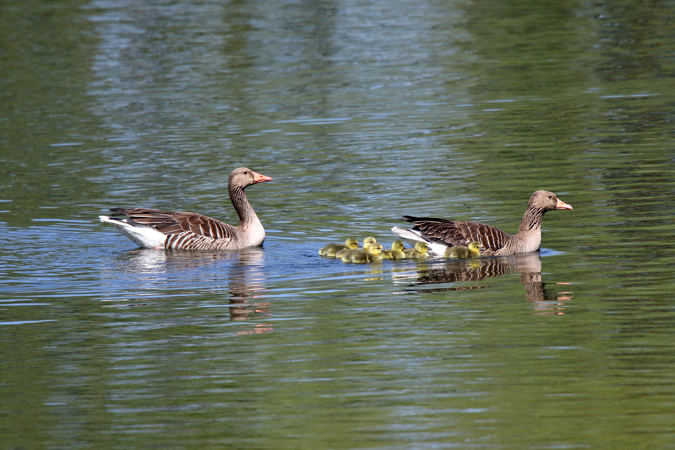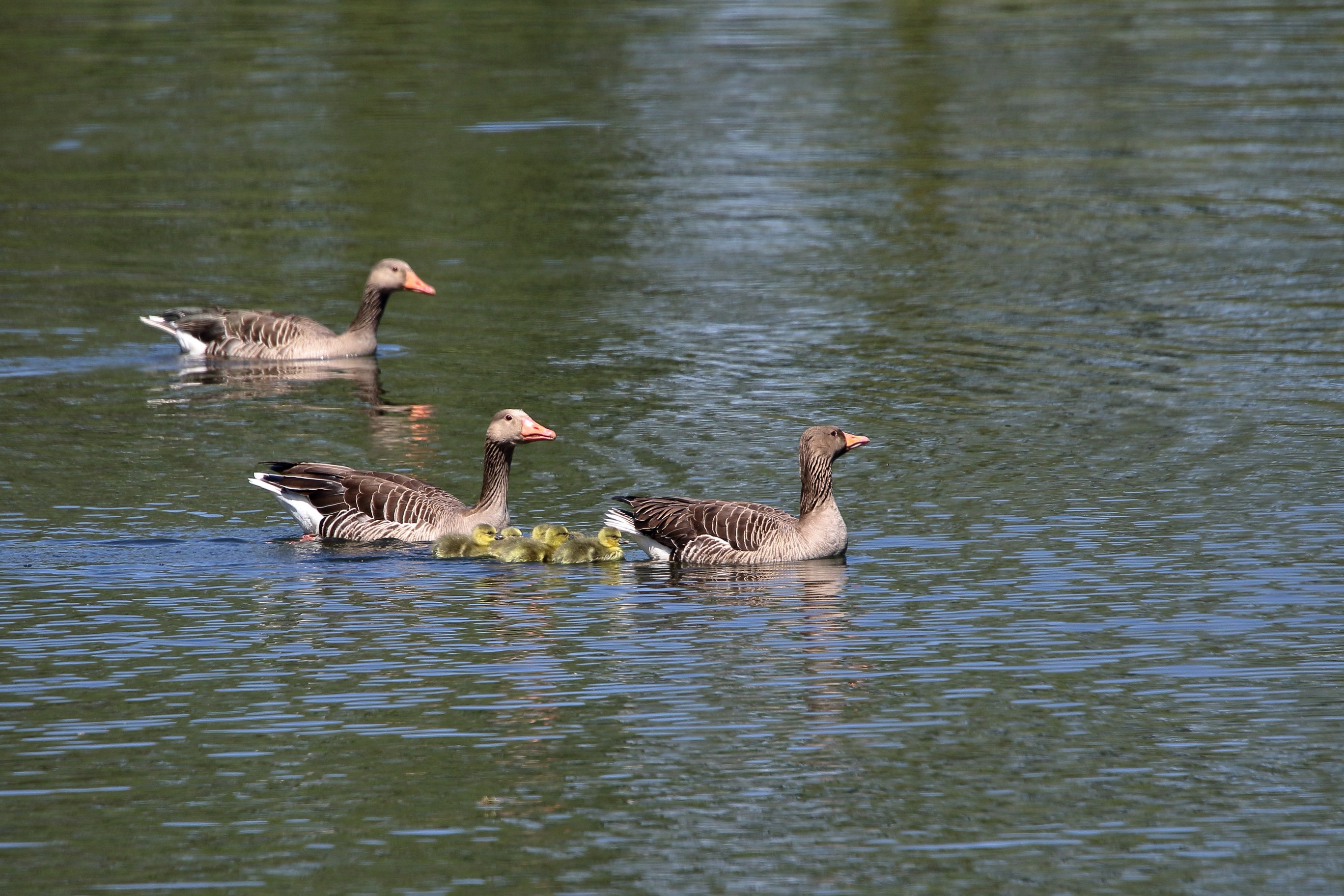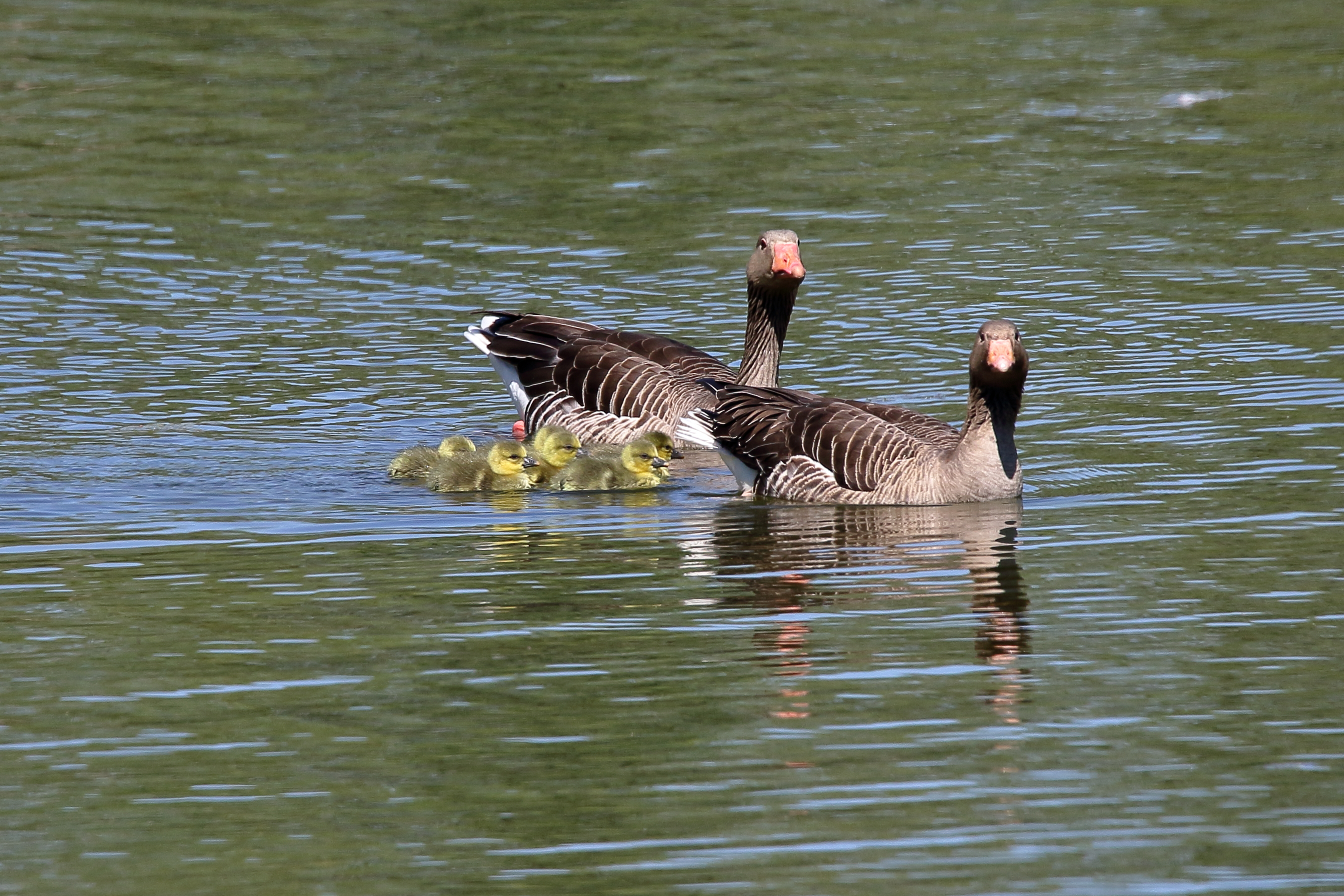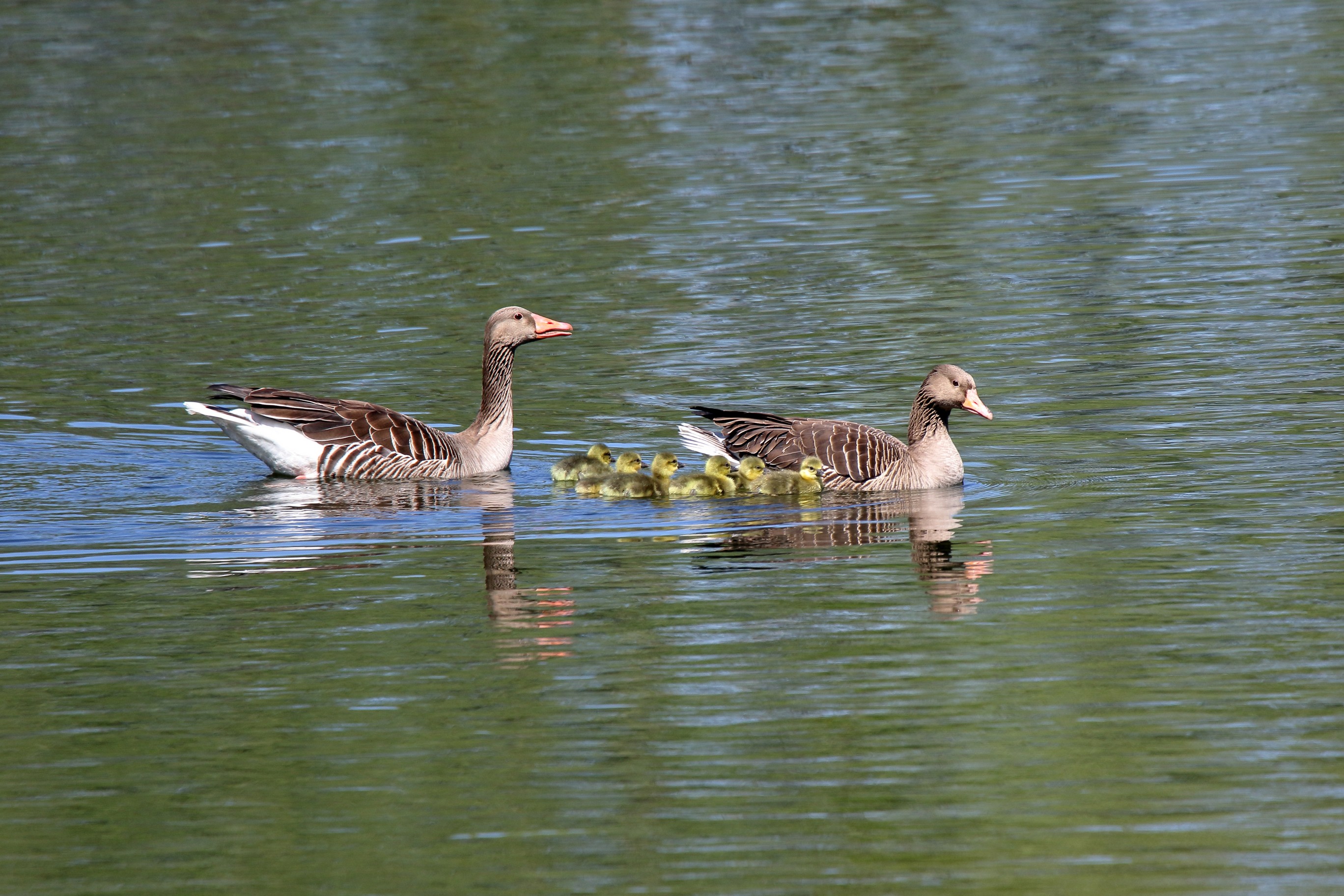 Erste Sichtung des Graugansnachwuchses an der Beobachtungshütte II
