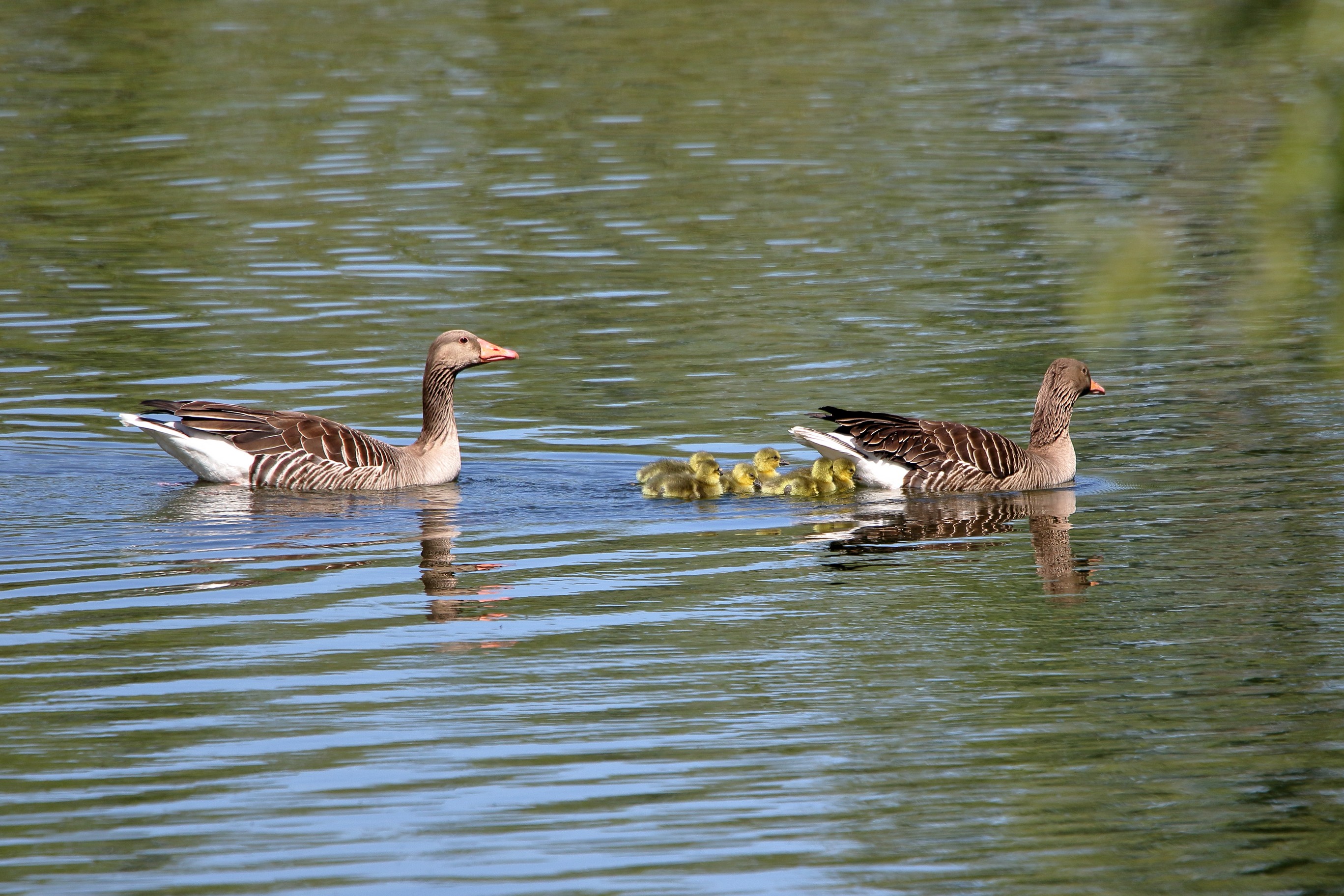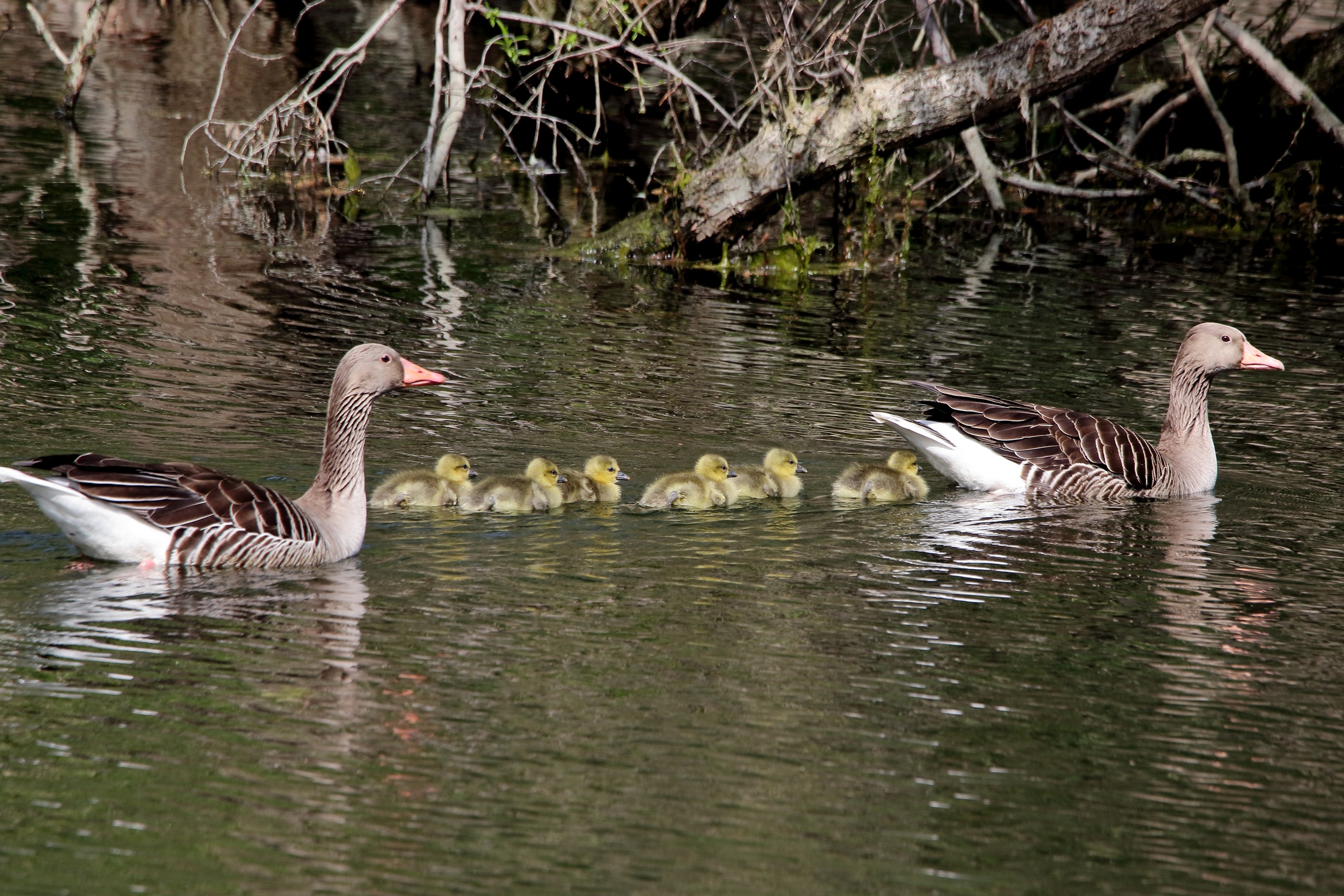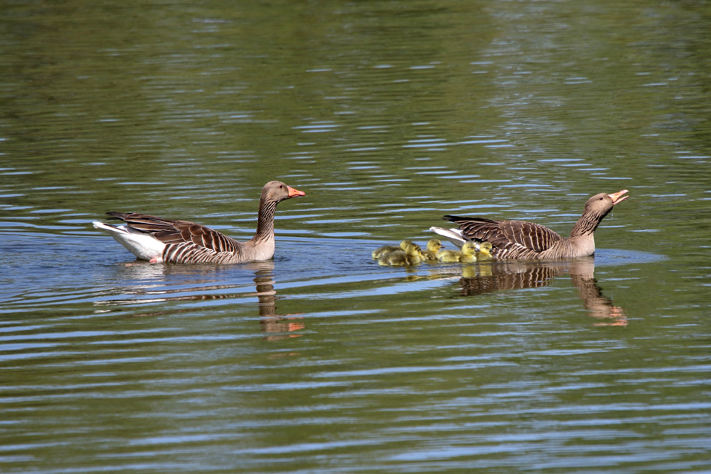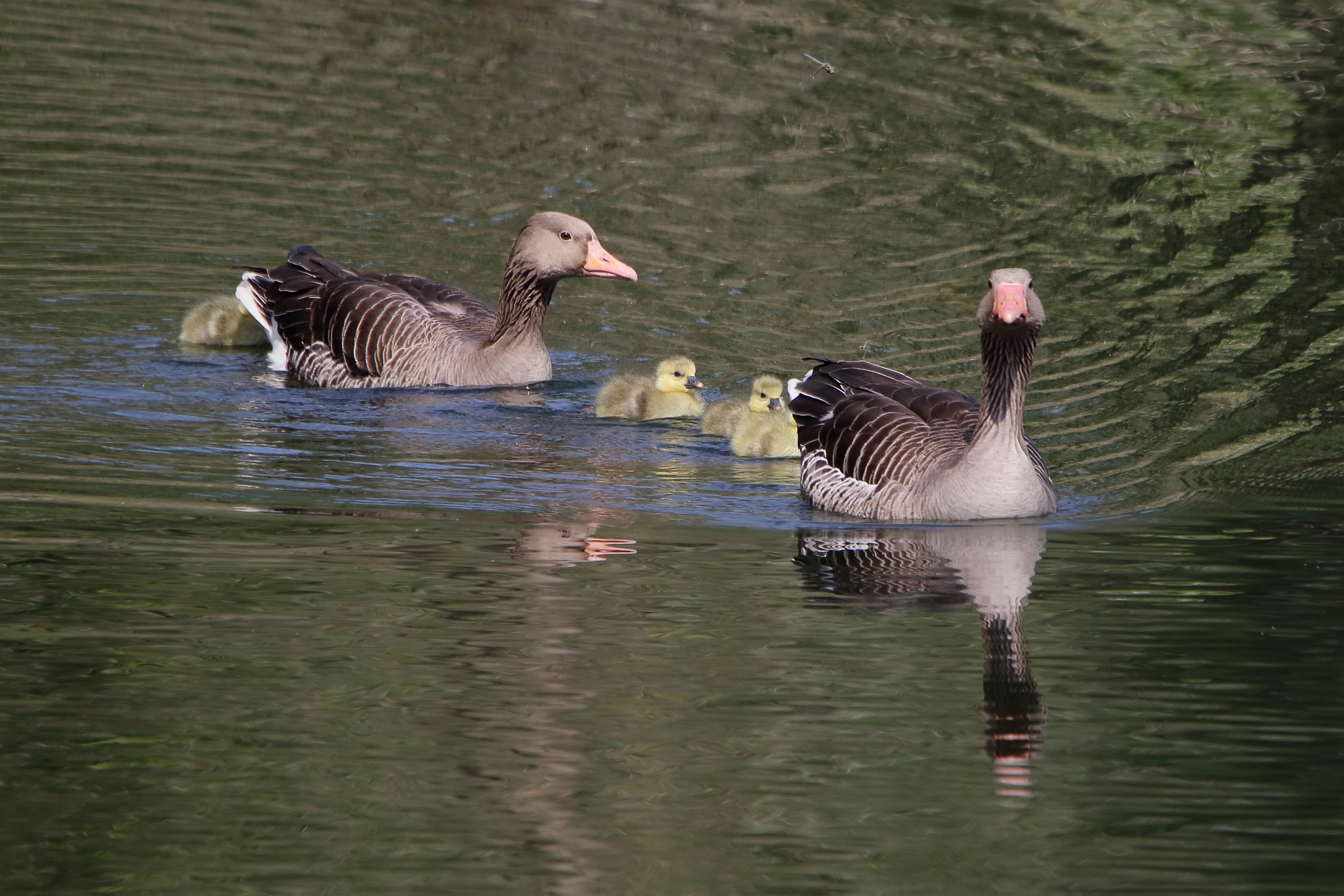Erste Sichtung des Graugansnachwuchses an der Beobachtungshütte II