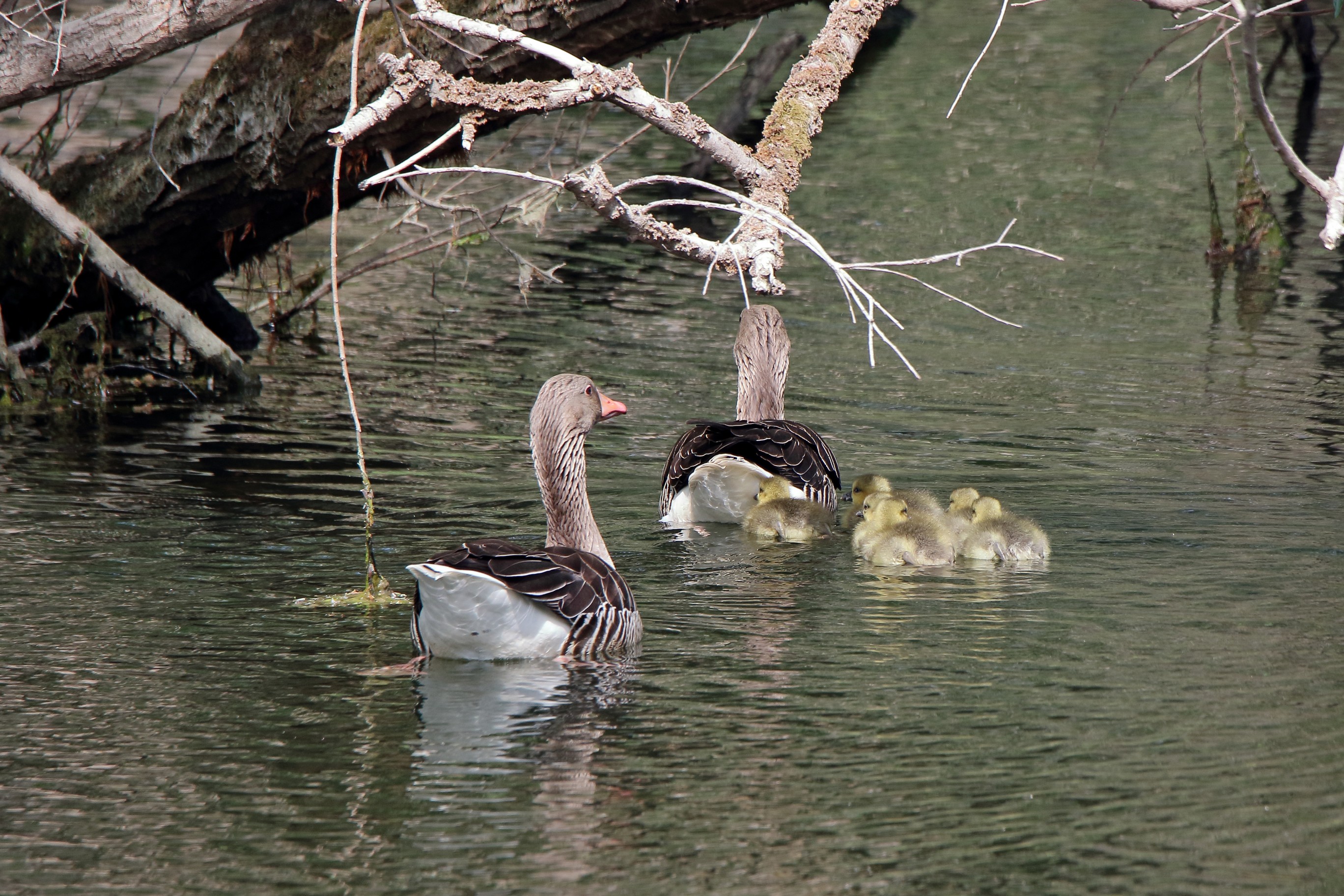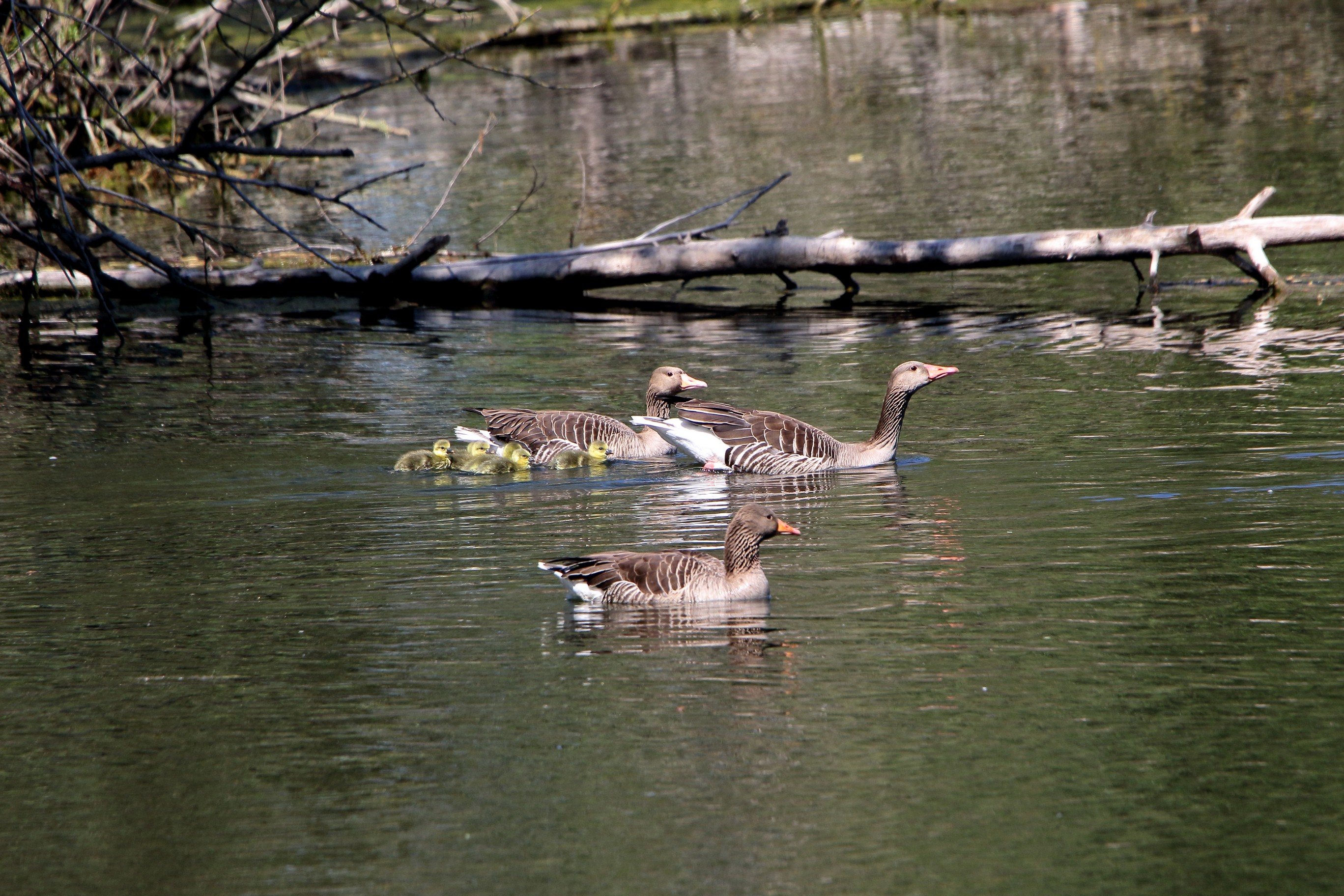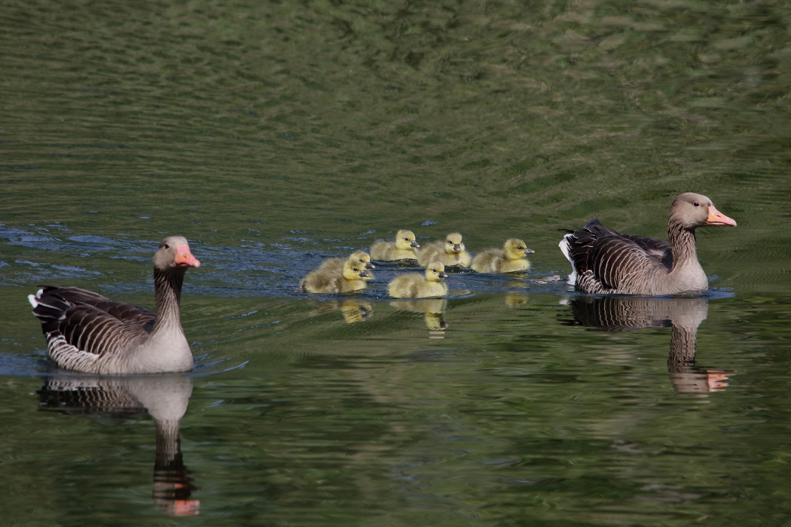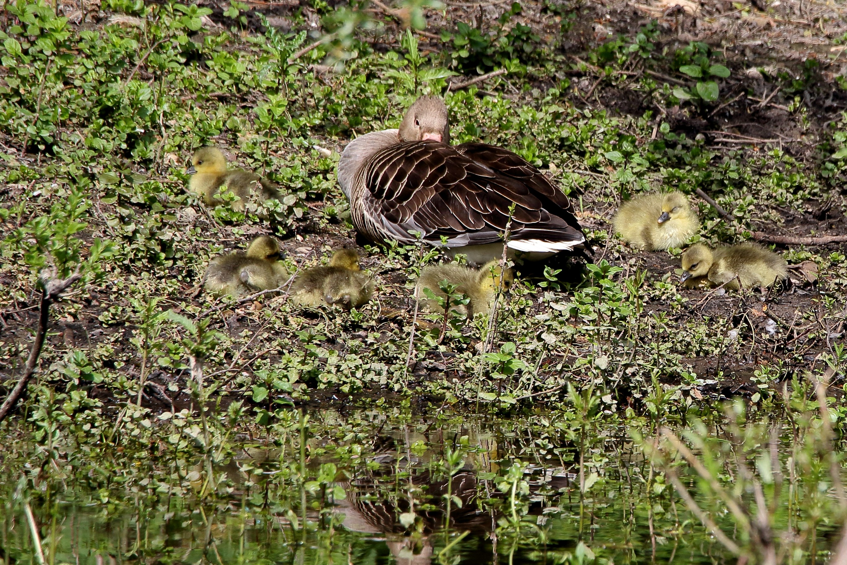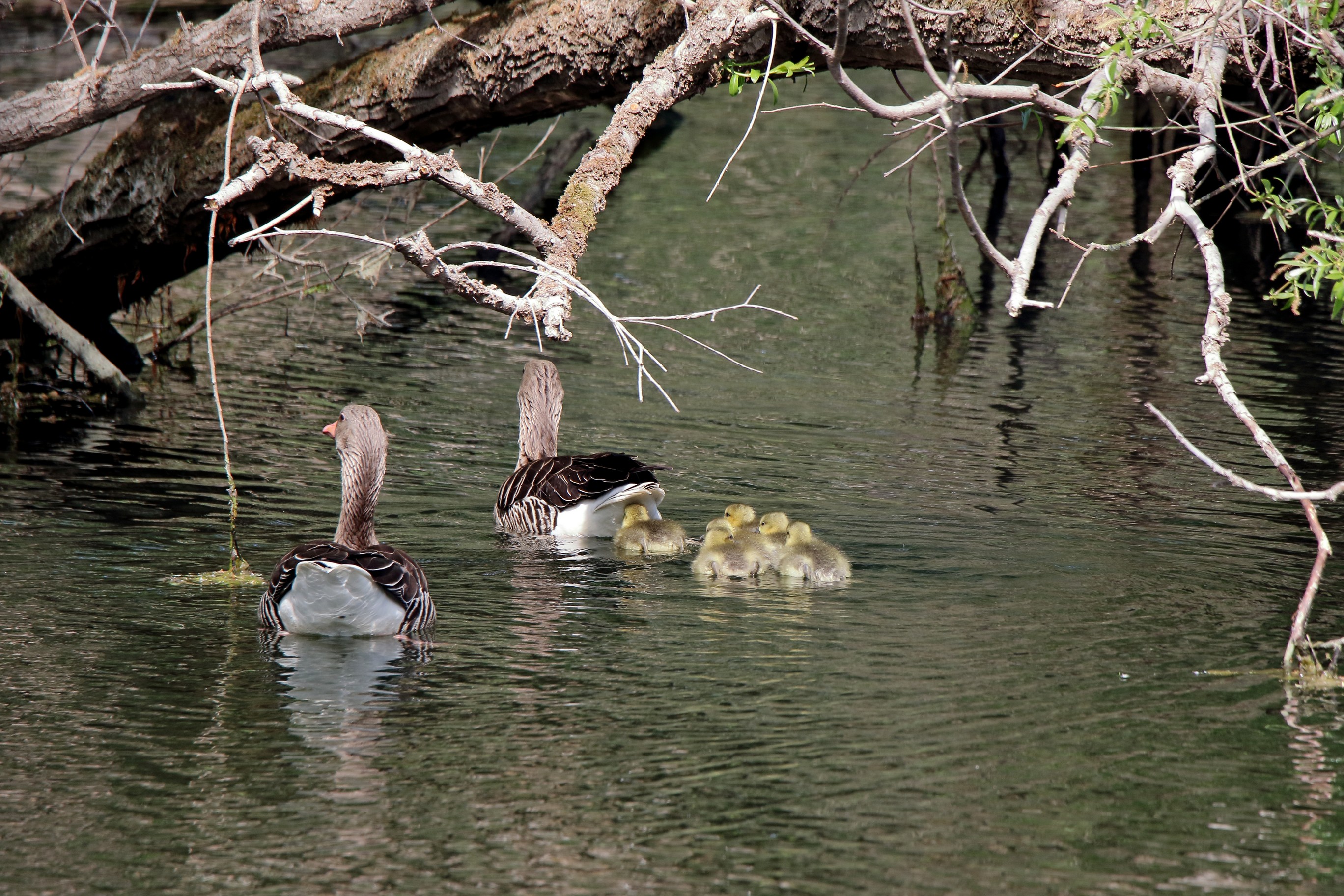 Erste Sichtung des Graugansnachwuchses an der Beobachtungshütte II