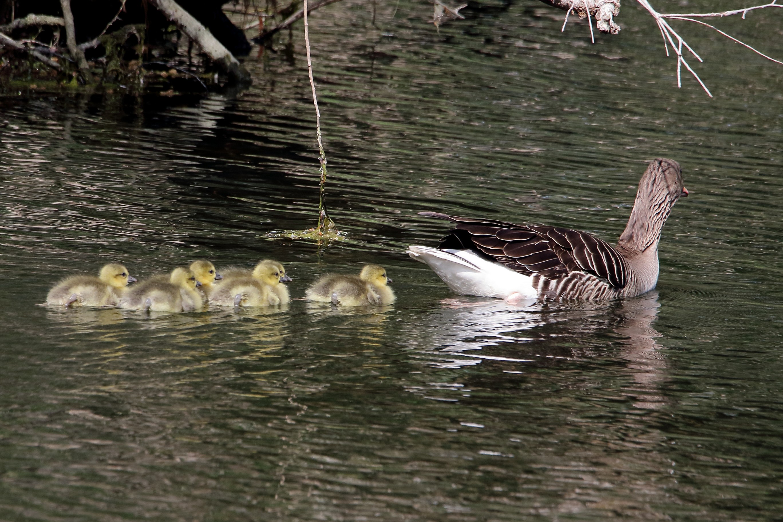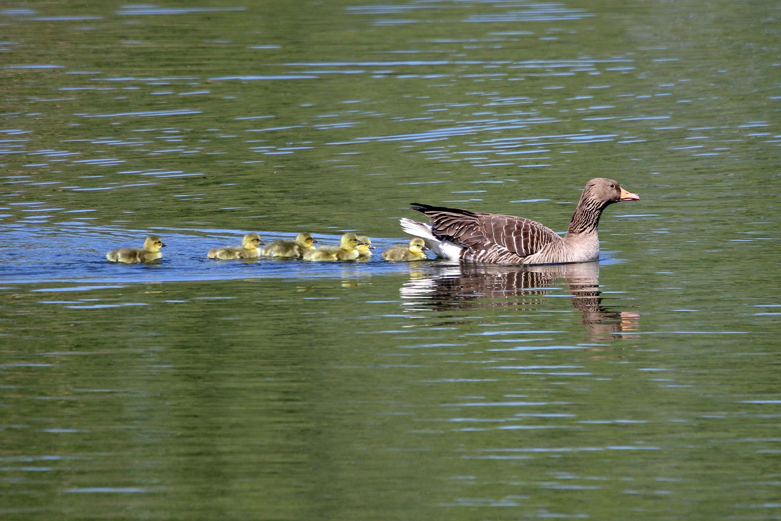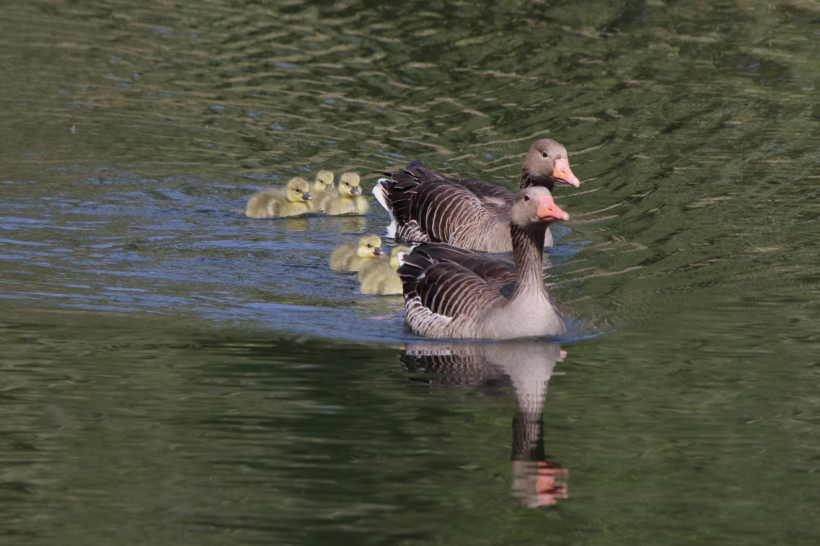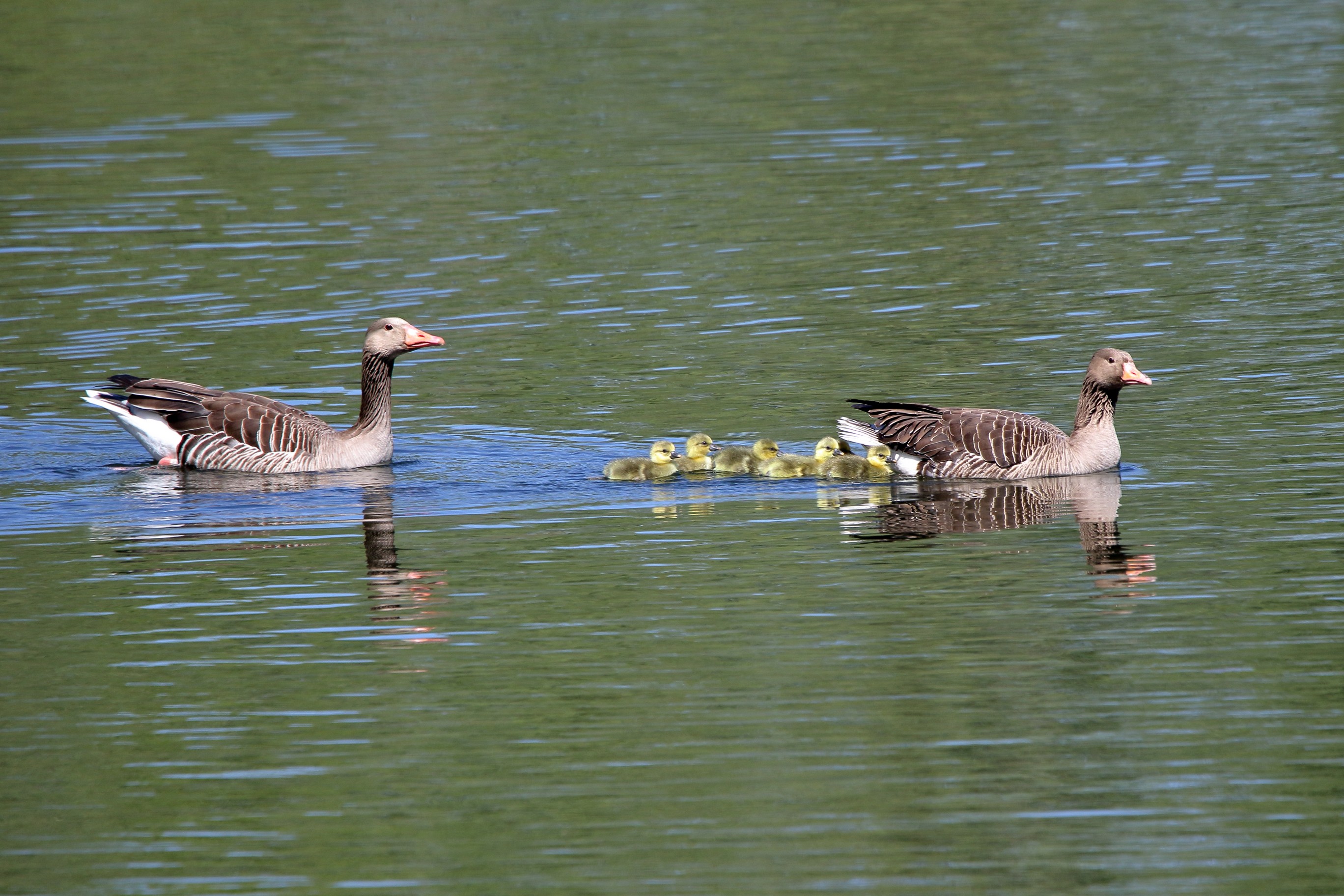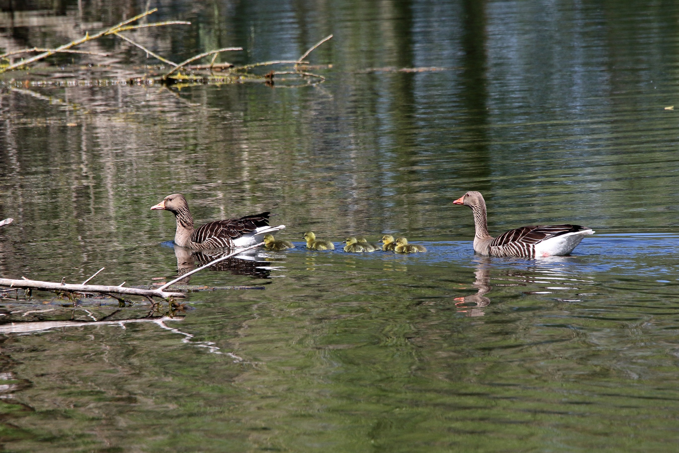 Erste Sichtung des Graugansnachwuchses an der Beobachtungshütte II