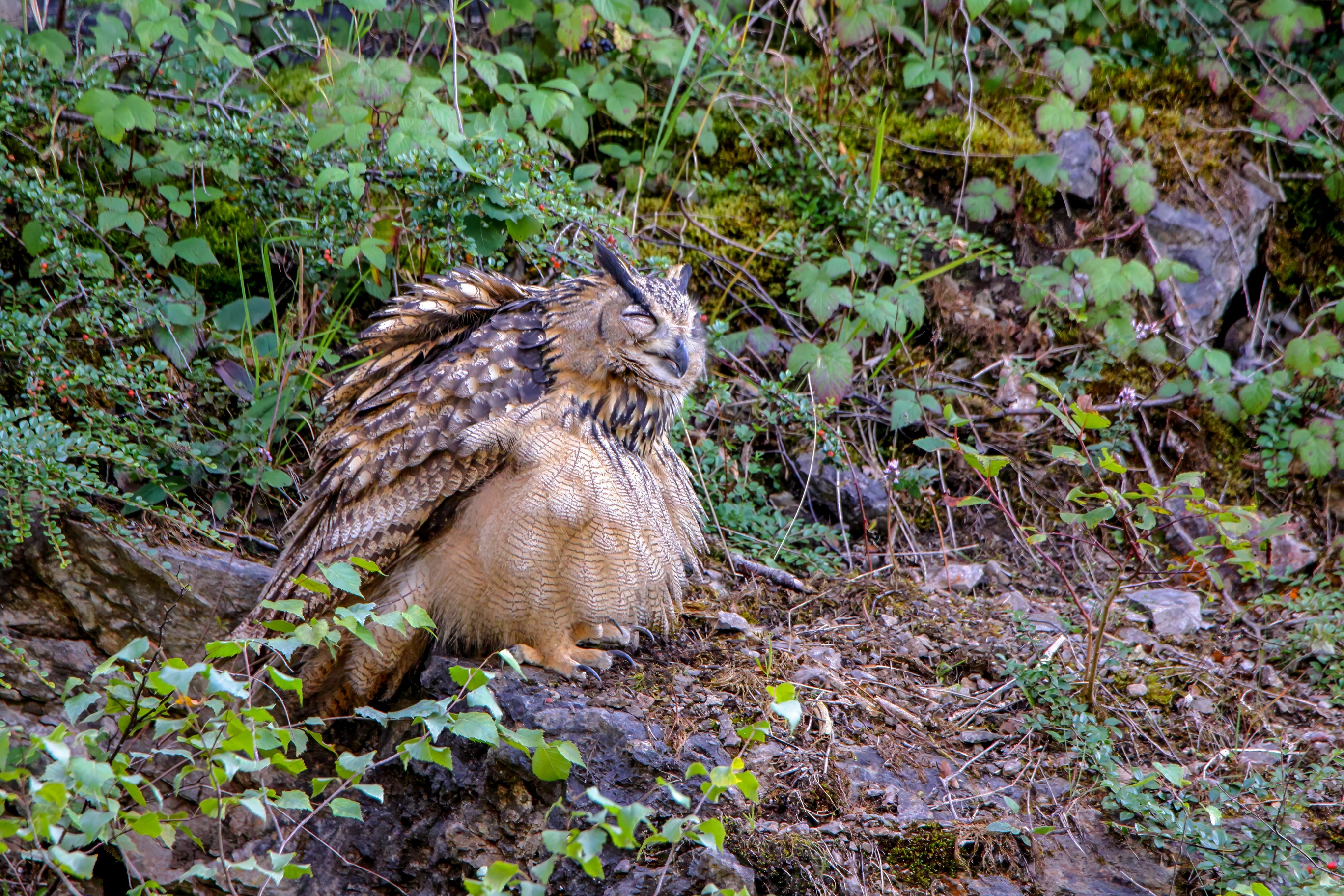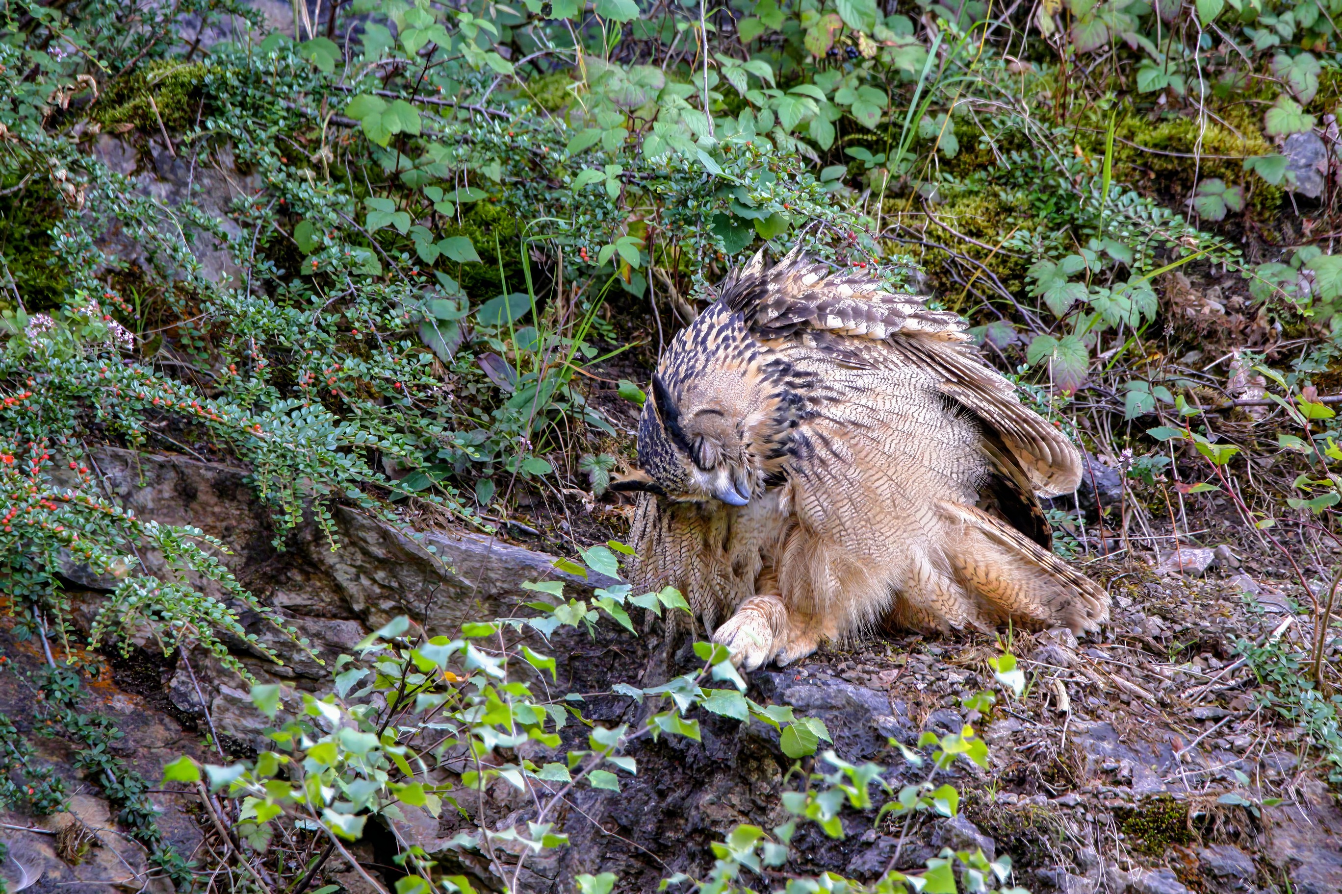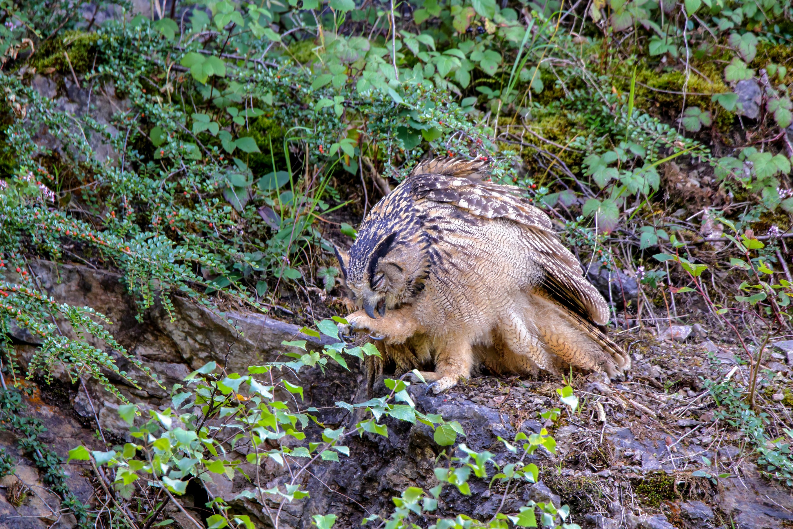 Der Uhu bereitet sich auf die anstehende Nacht vor