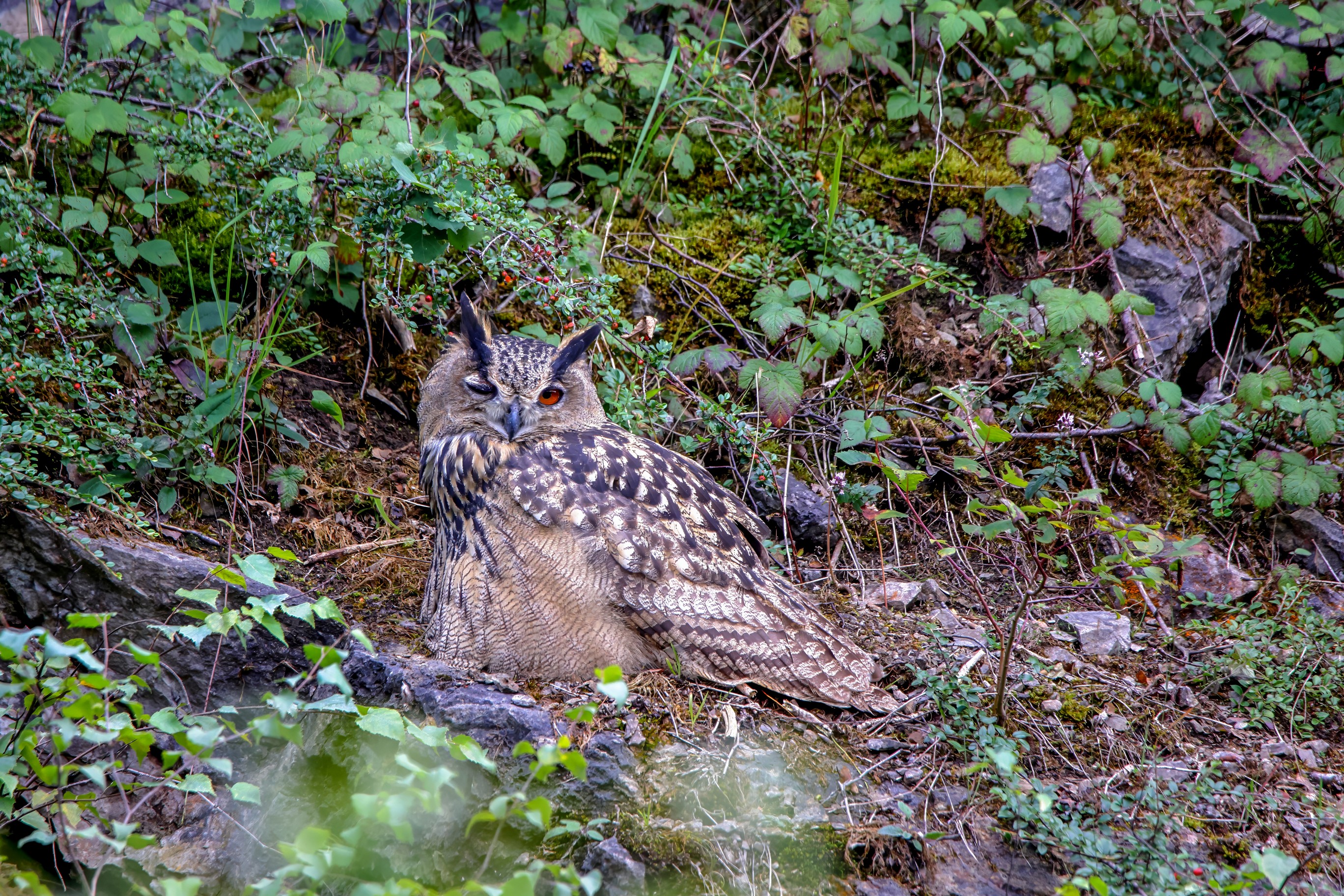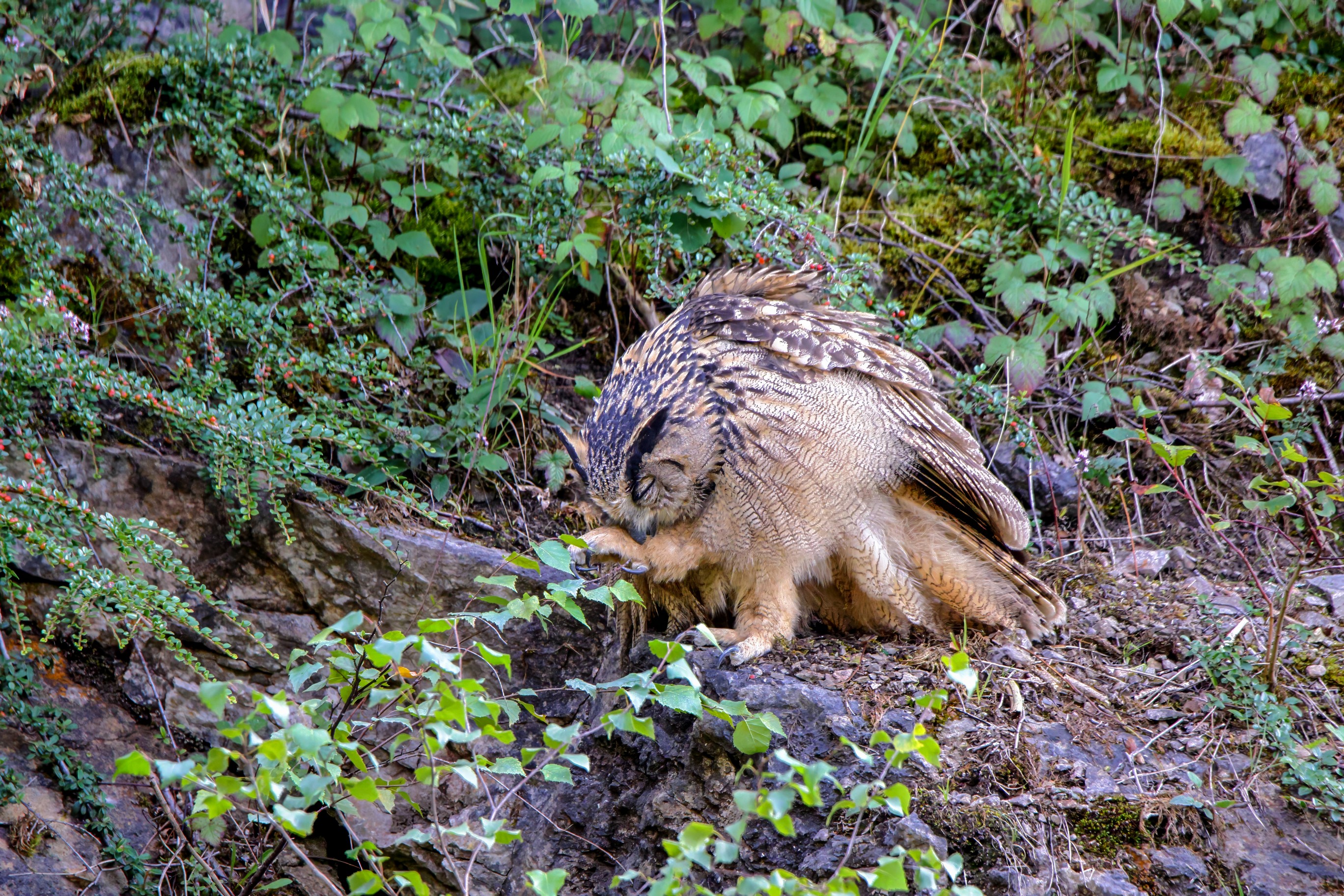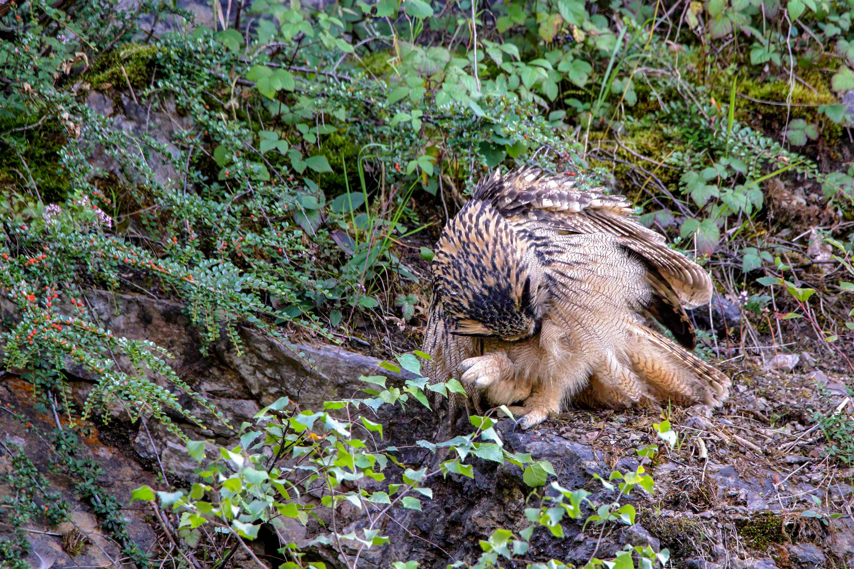 Der Uhu bereitet sich auf die anstehende Nacht vor