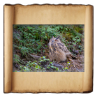 Langsam erwacht der Uhu und bereitet sich auf seine nächtliche Aktivität vor. Sein Handicap, dem Verlust eines Auges, hindert ihn nicht seiner Fähigkeit als Nachtgreifer nachzukommen.