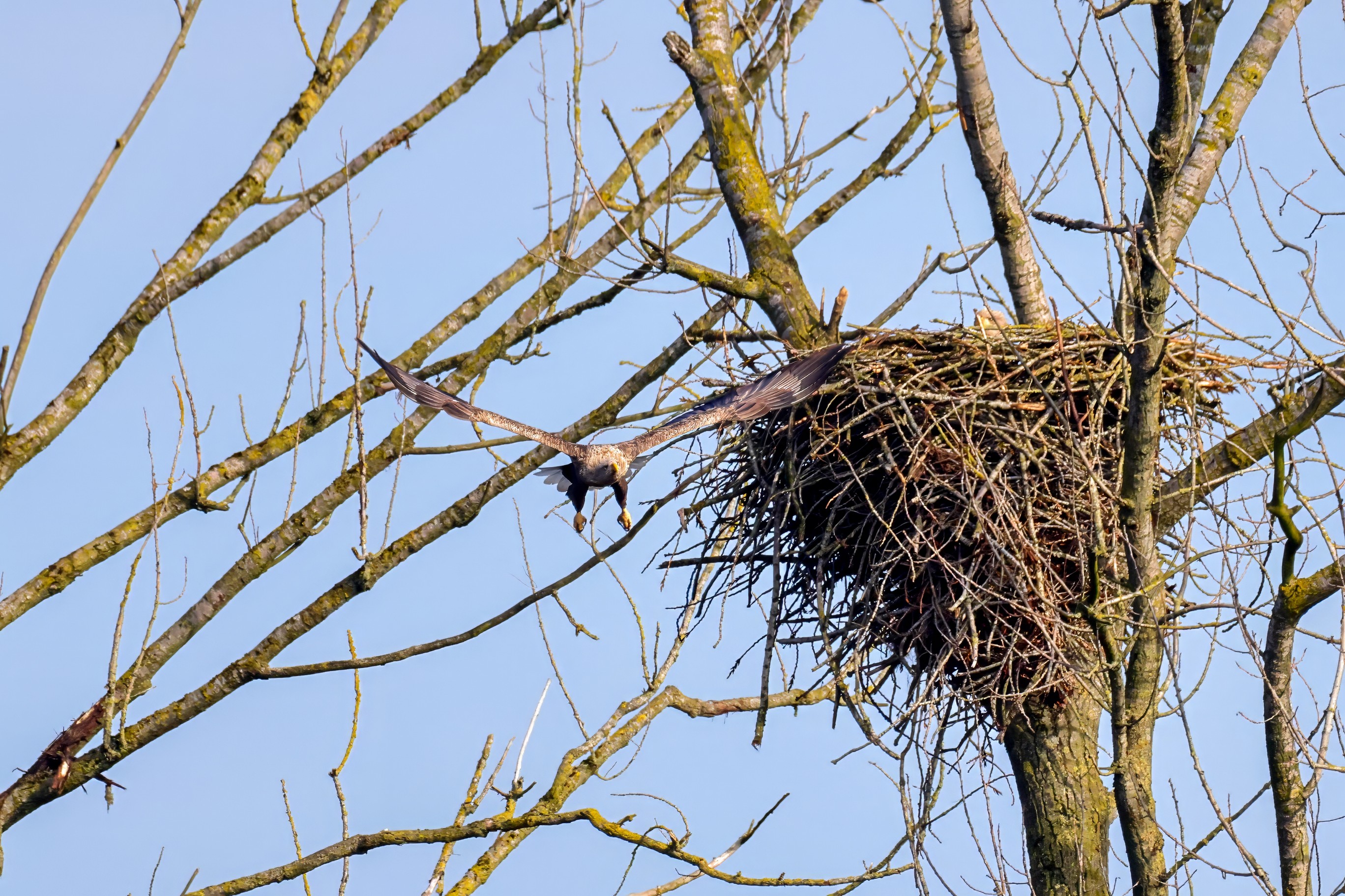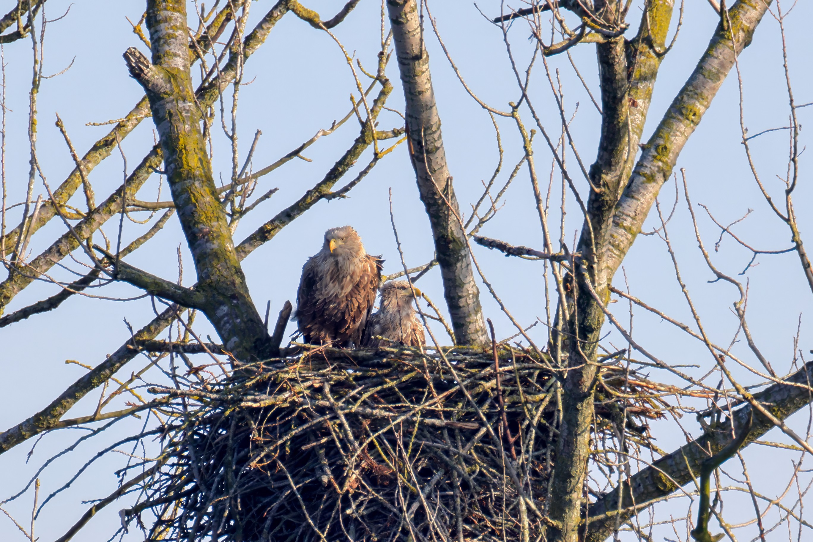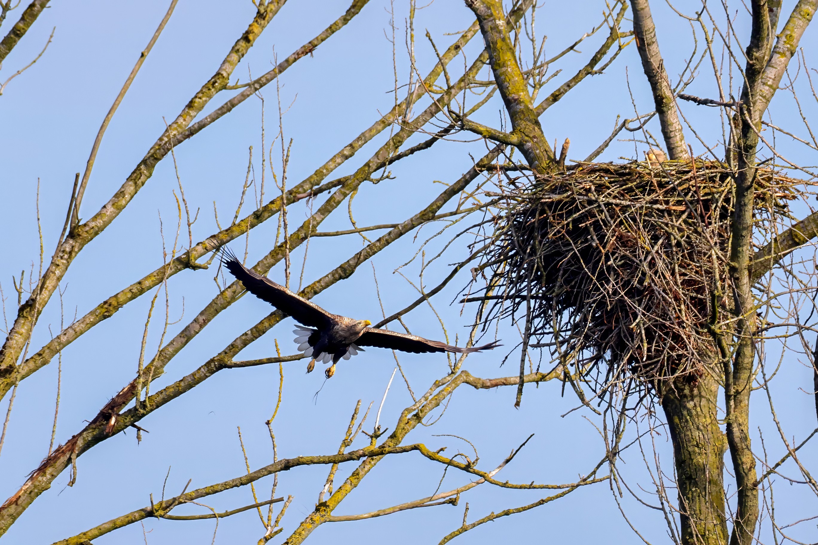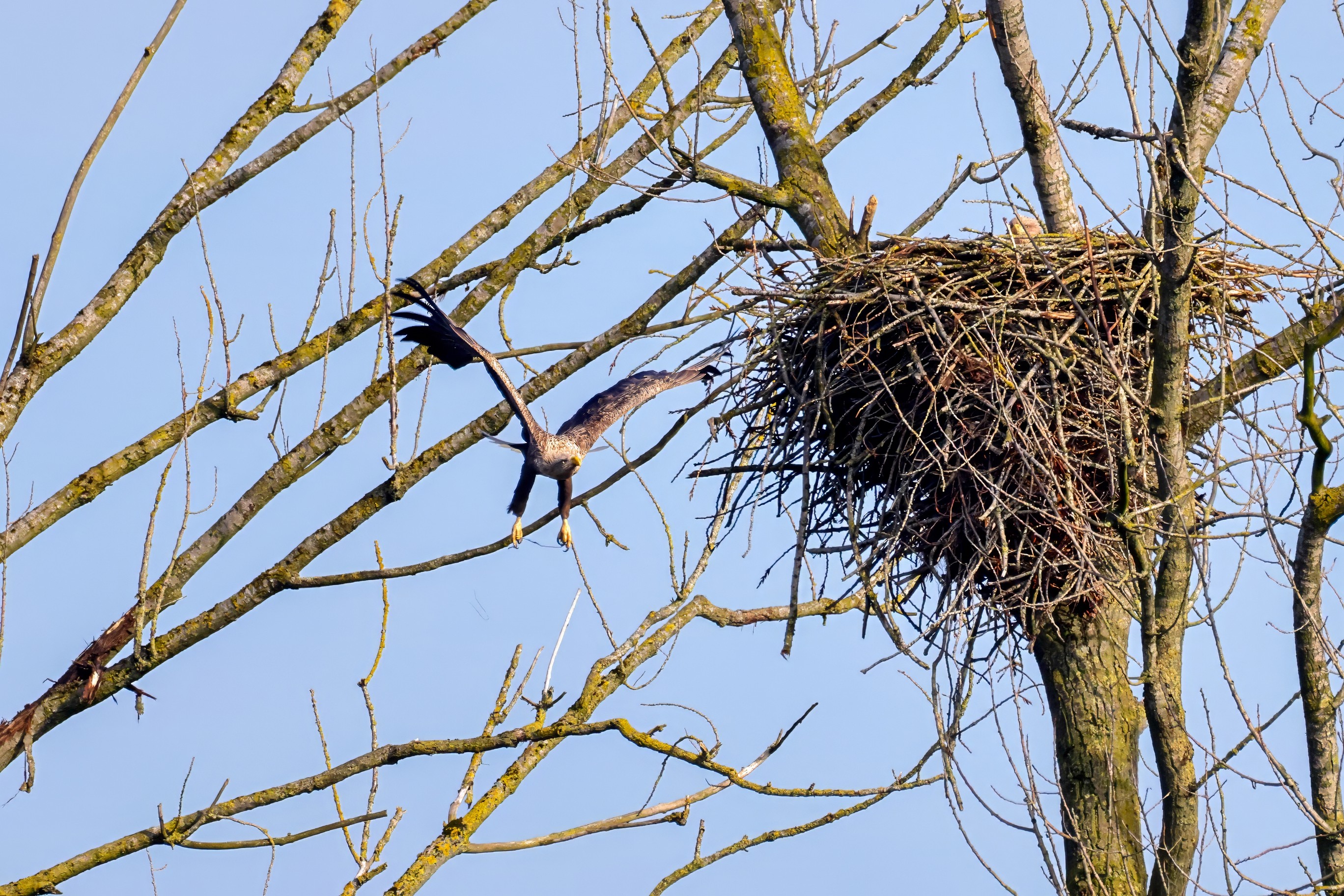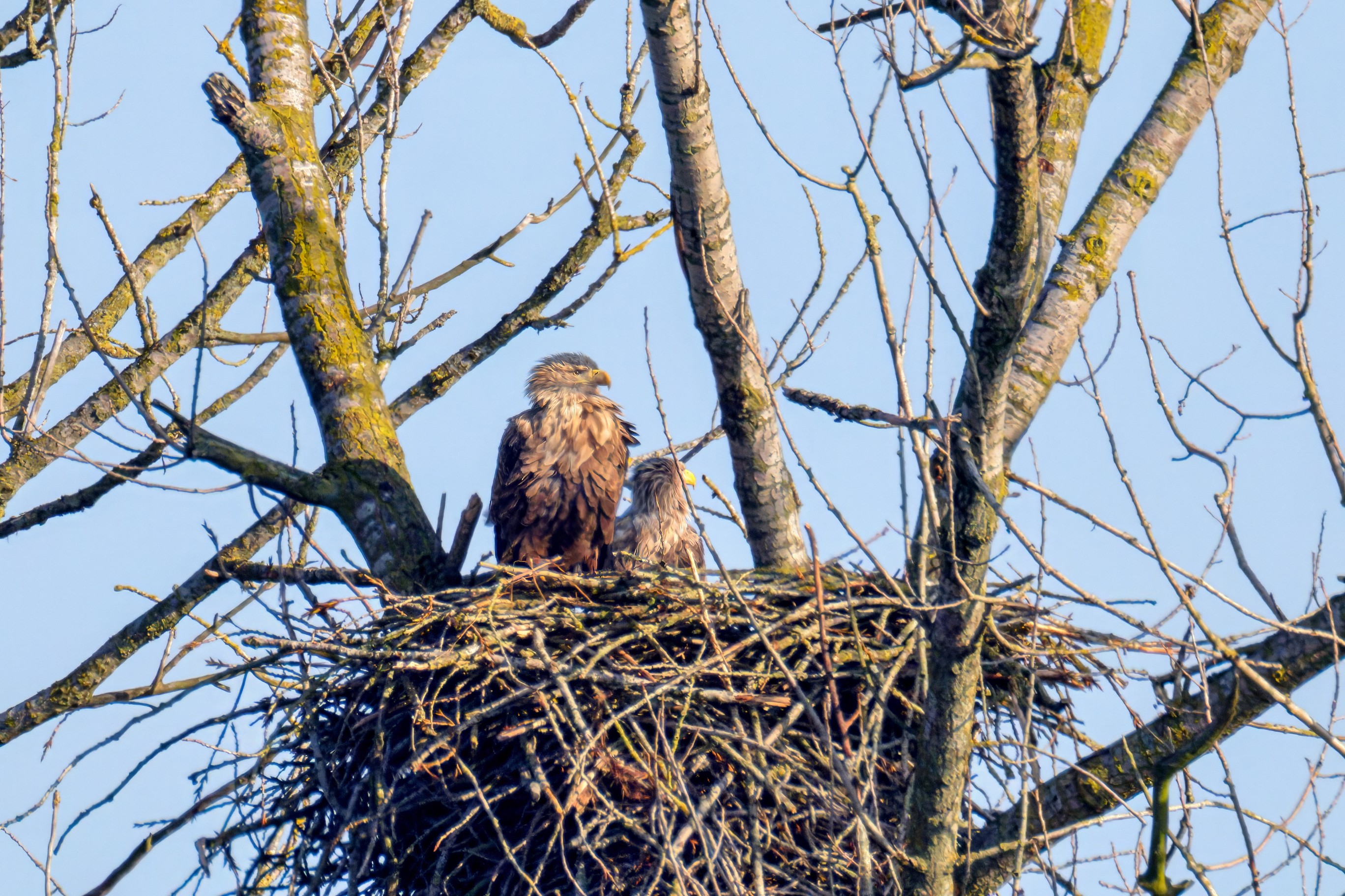 Auf der Bislicher Insel zeigt das Seeadlerpaar derzeit ein deutlich verändertes Verhalten: Der Horst wird nur noch verlassen, wenn ein Partner zurückbleibt und aufmerksam wacht. Dieses abgestimmte Verhalten spricht dafür, dass das Weibchen am Wochenende des 14./15. Februar ein Gelege produziert hat und damit die Brutphase 2026 eröffnet.
