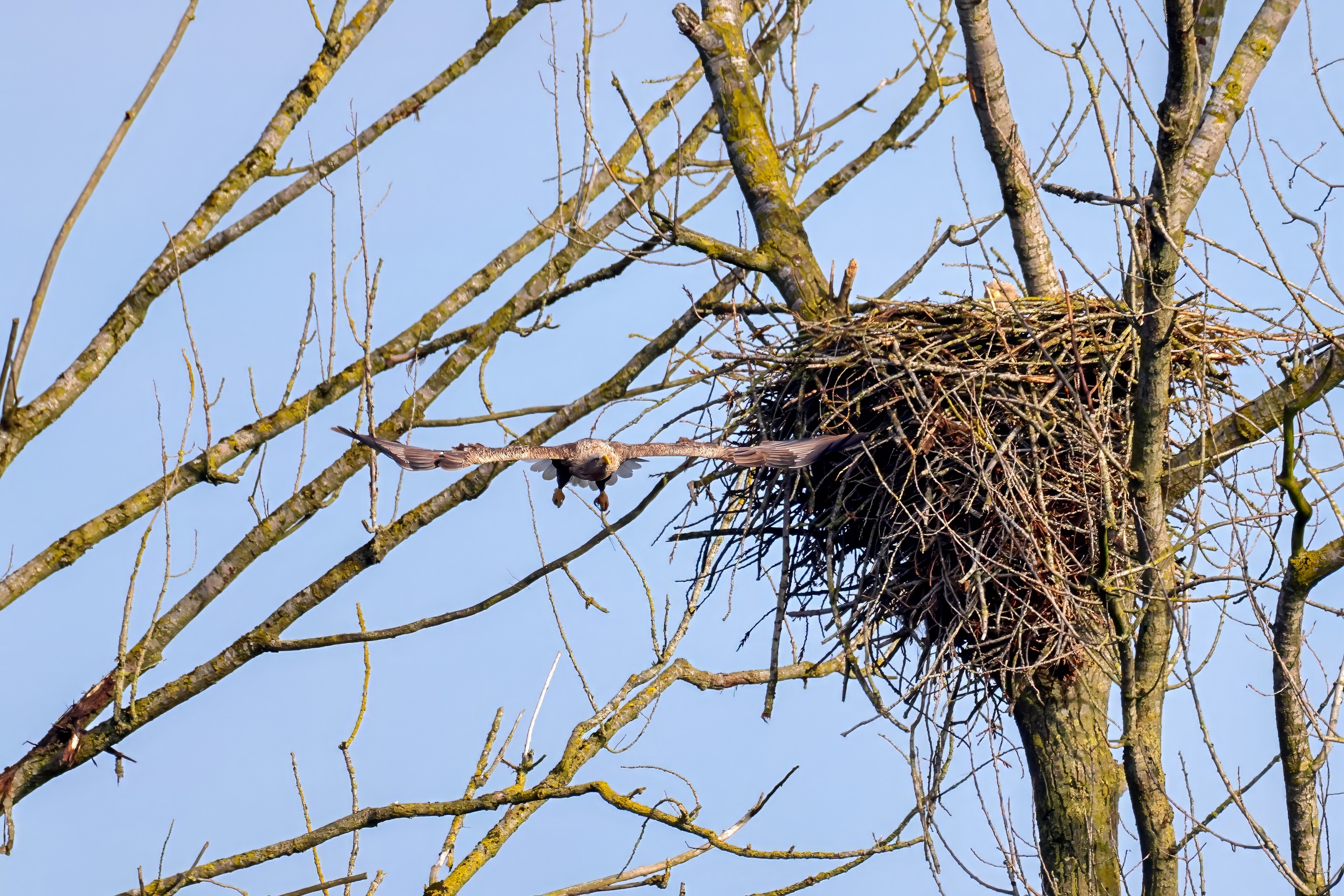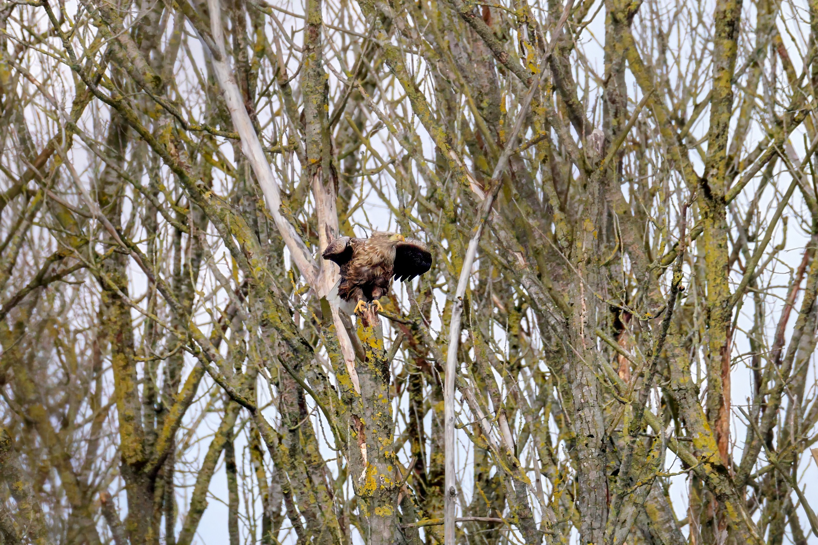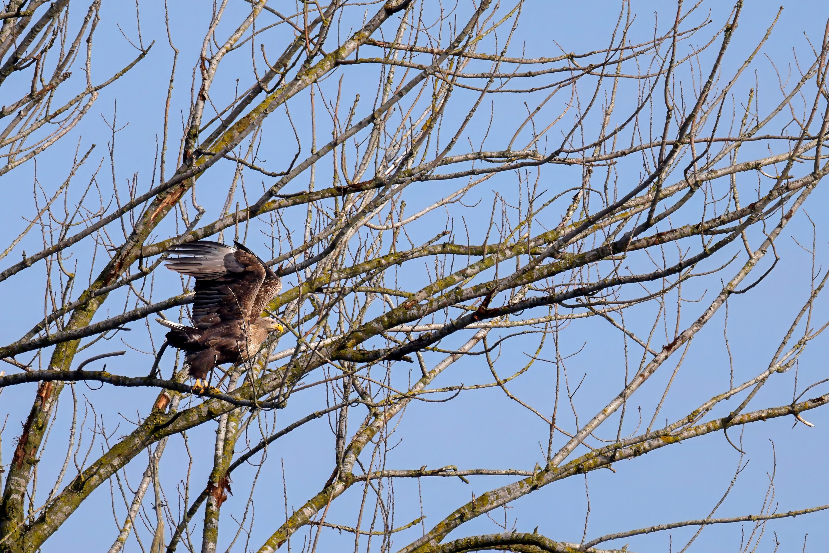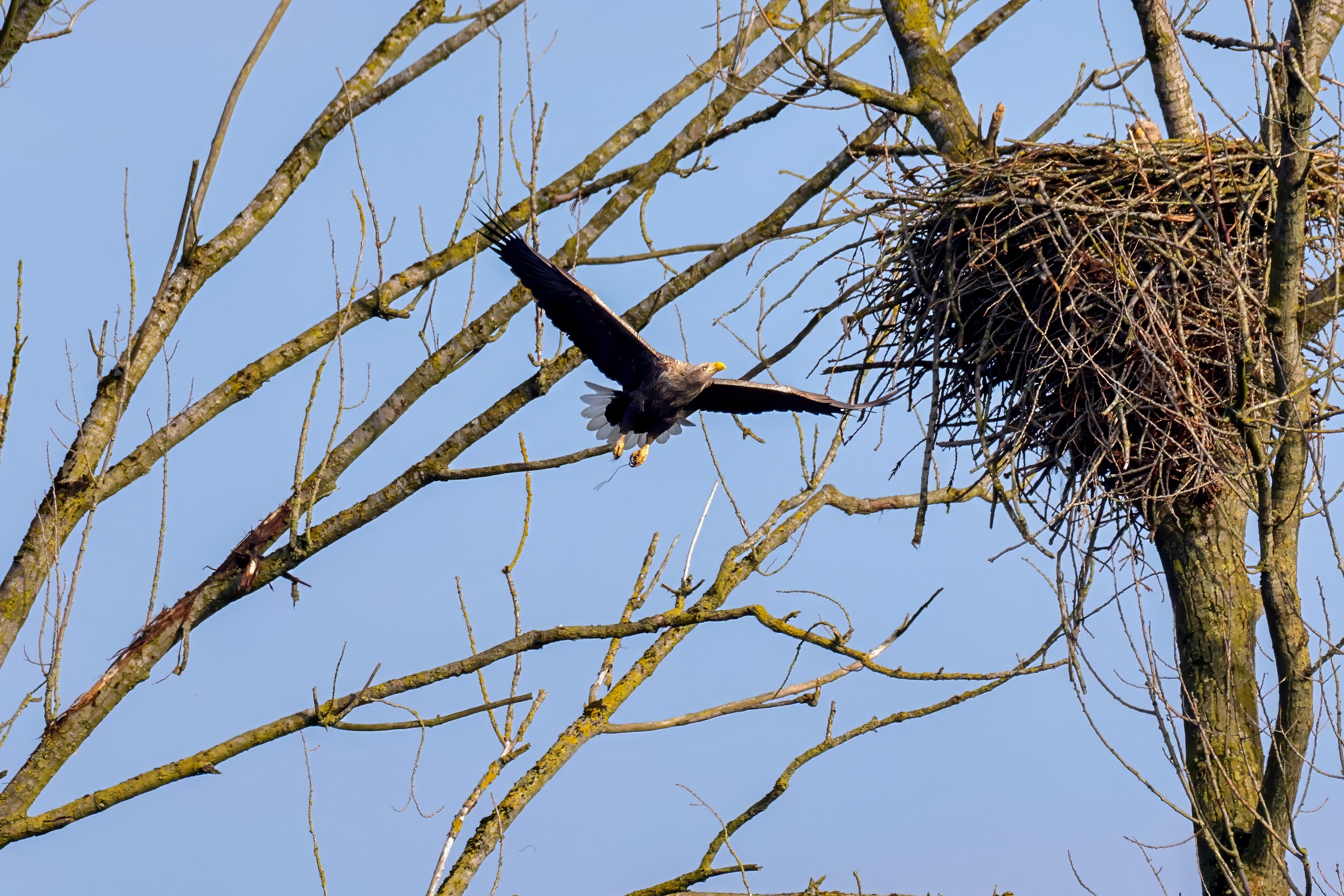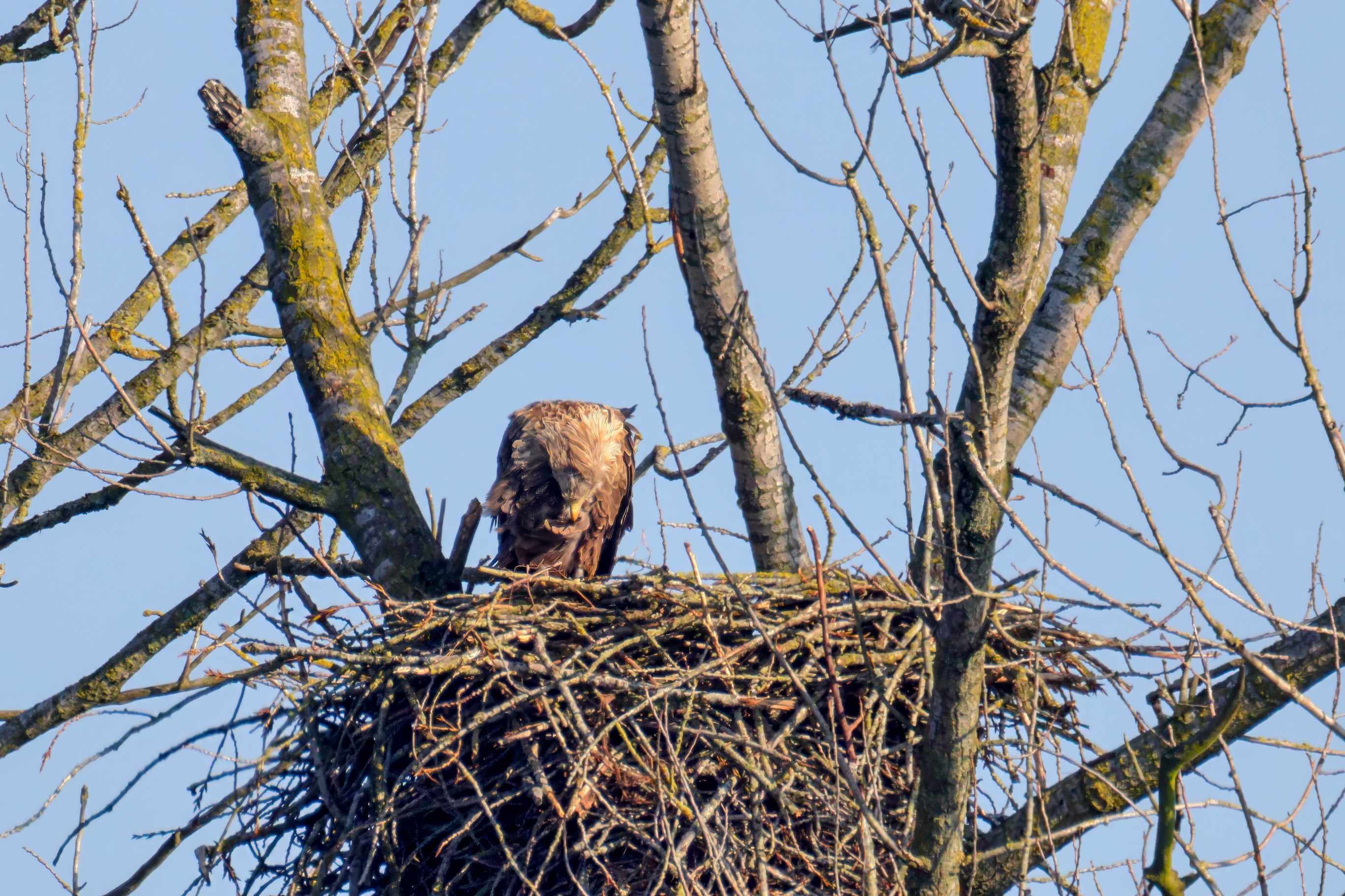 Auf der Bislicher Insel zeigt das Seeadlerpaar derzeit ein deutlich verändertes Verhalten: Der Horst wird nur noch verlassen, wenn ein Partner zurückbleibt und aufmerksam wacht. Dieses abgestimmte Verhalten spricht dafür, dass das Weibchen am Wochenende des 14./15. Februar ein Gelege produziert hat und damit die Brutphase 2026 eröffnet.