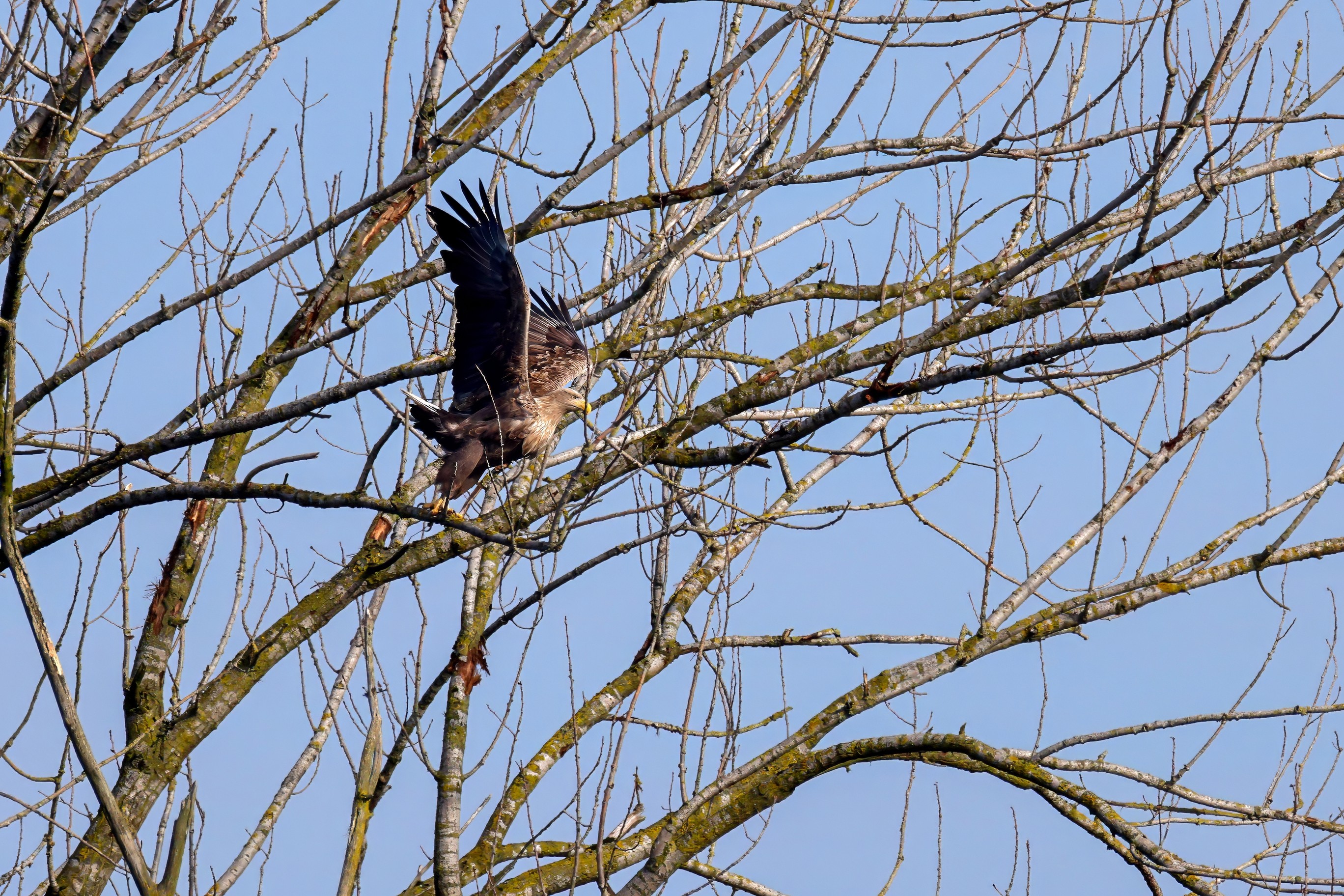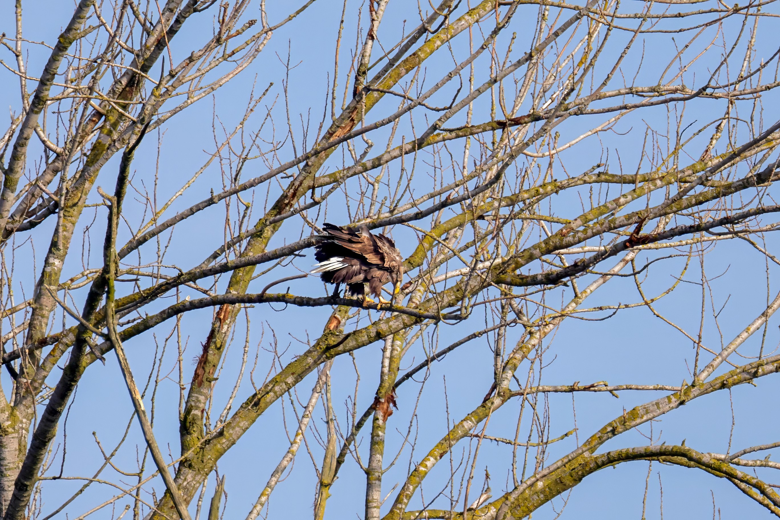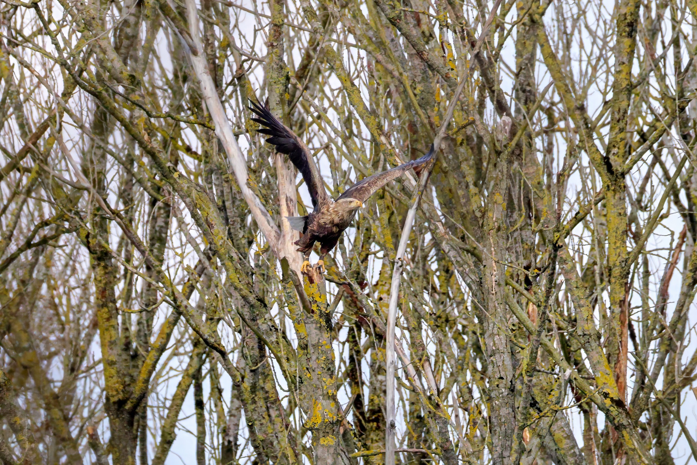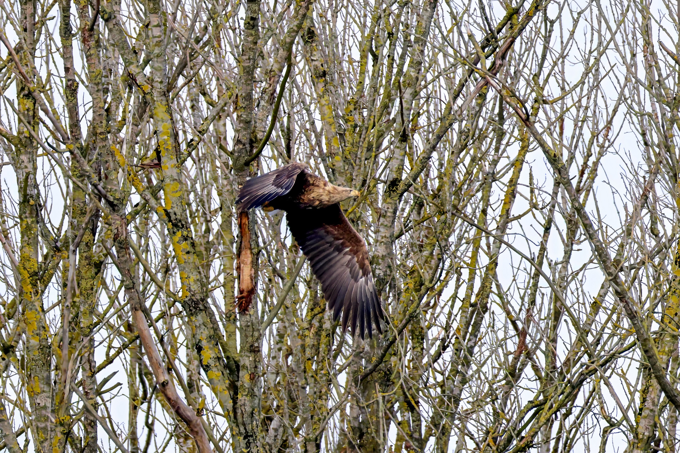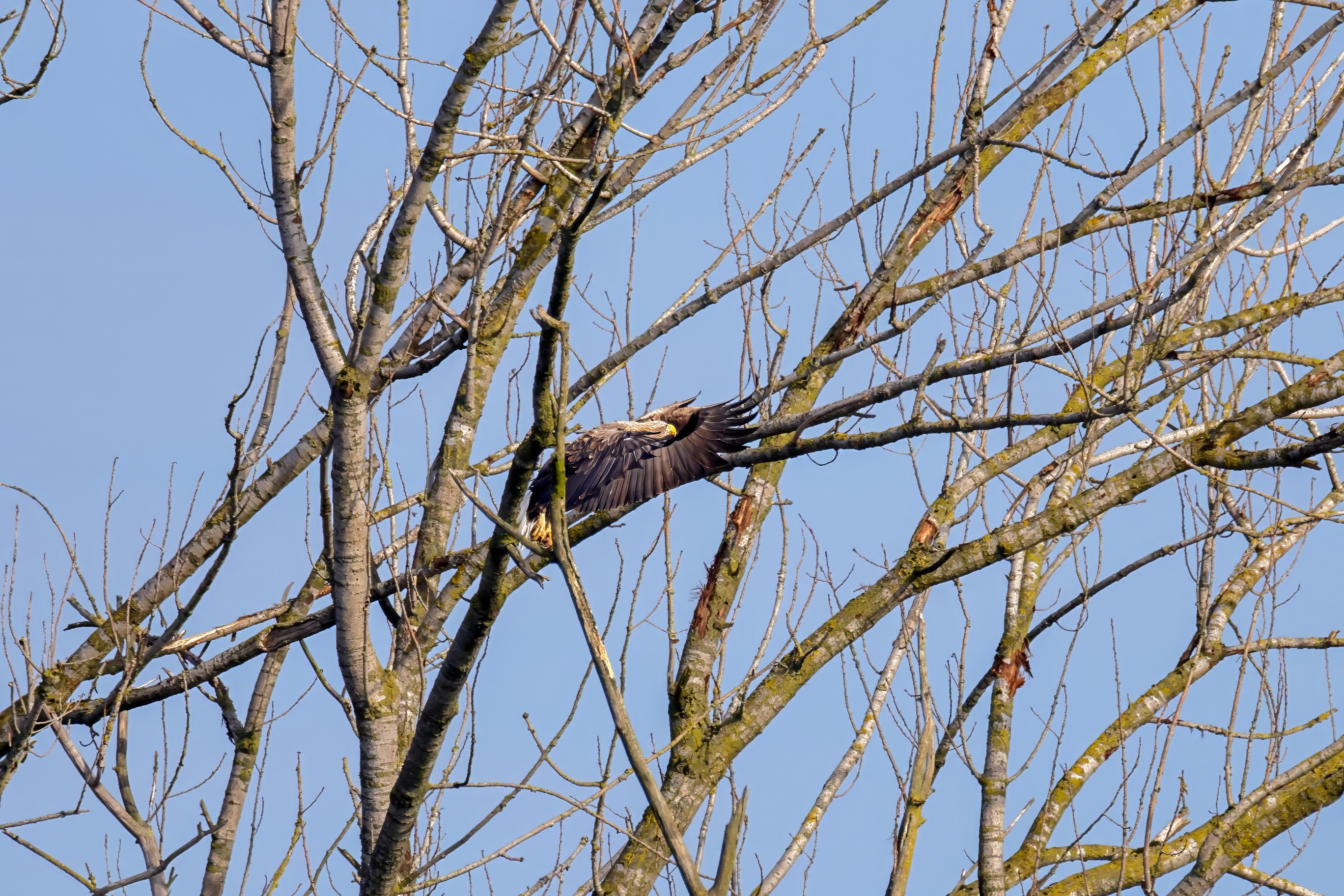 Auf der Bislicher Insel zeigt das Seeadlerpaar derzeit ein deutlich verändertes Verhalten: Der Horst wird nur noch verlassen, wenn ein Partner zurückbleibt und aufmerksam wacht. Dieses abgestimmte Verhalten spricht dafür, dass das Weibchen am Wochenende des 14./15. Februar ein Gelege produziert hat und damit die Brutphase 2026 eröffnet.