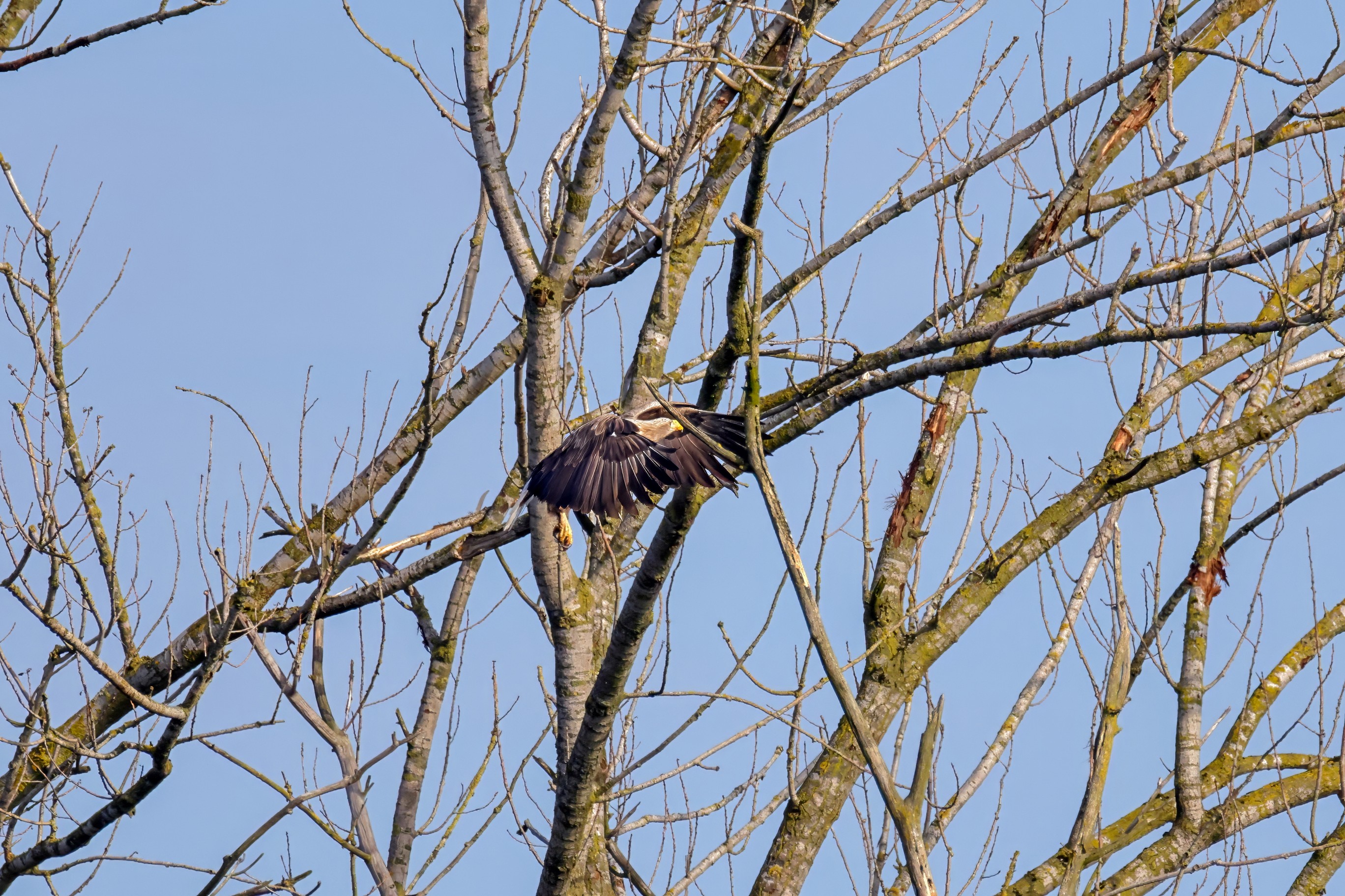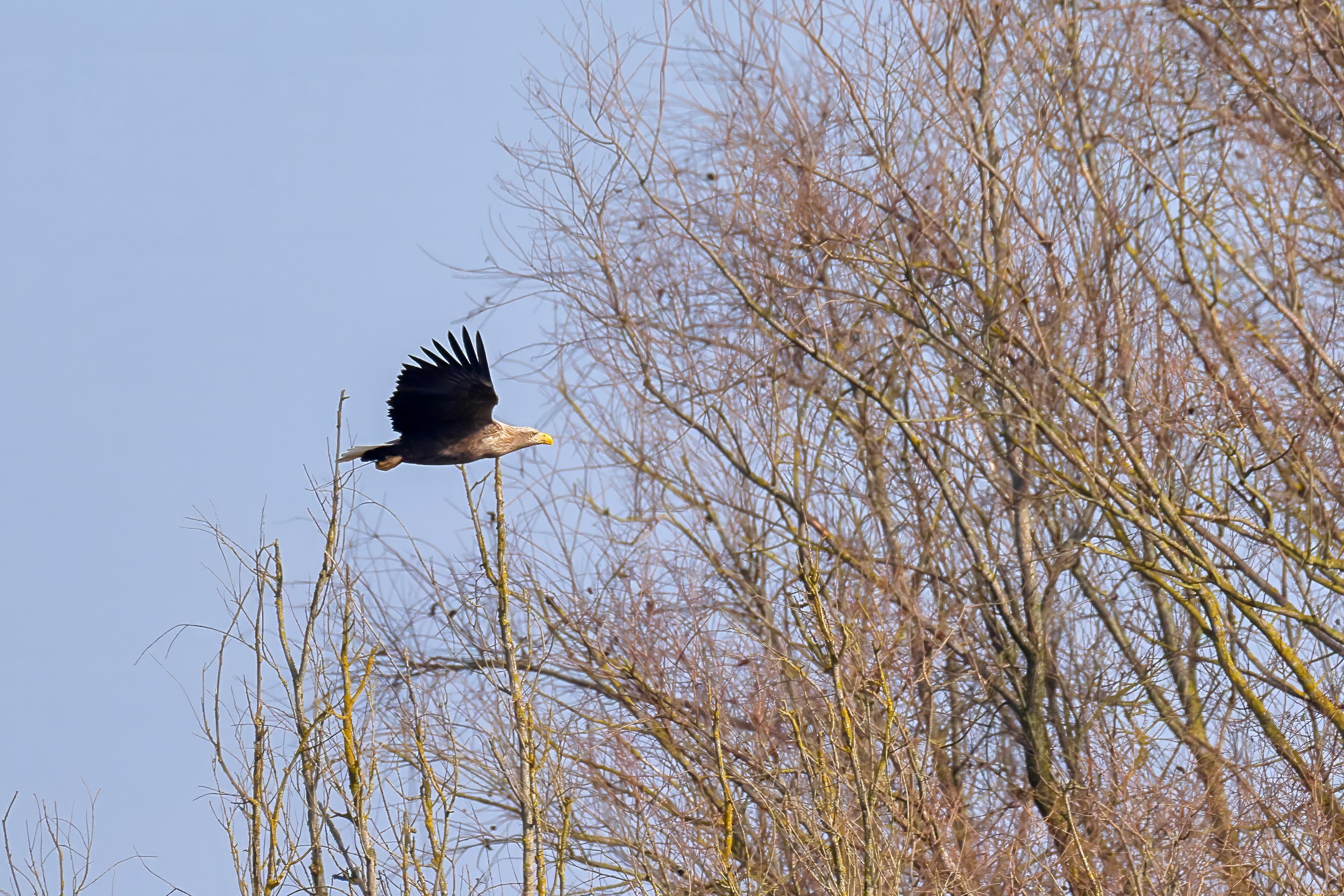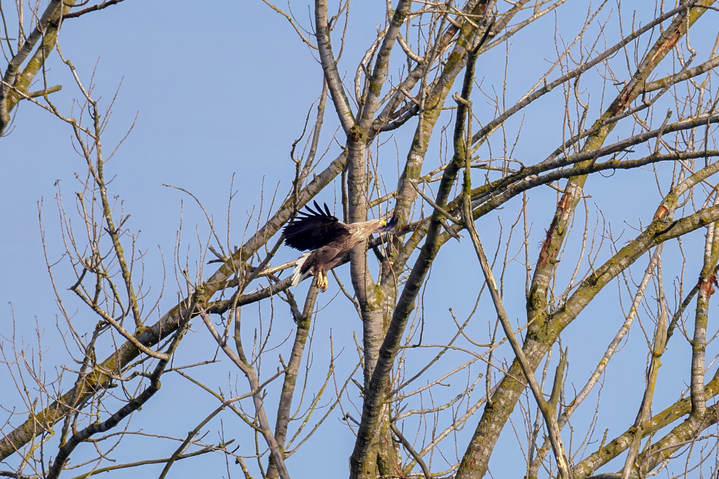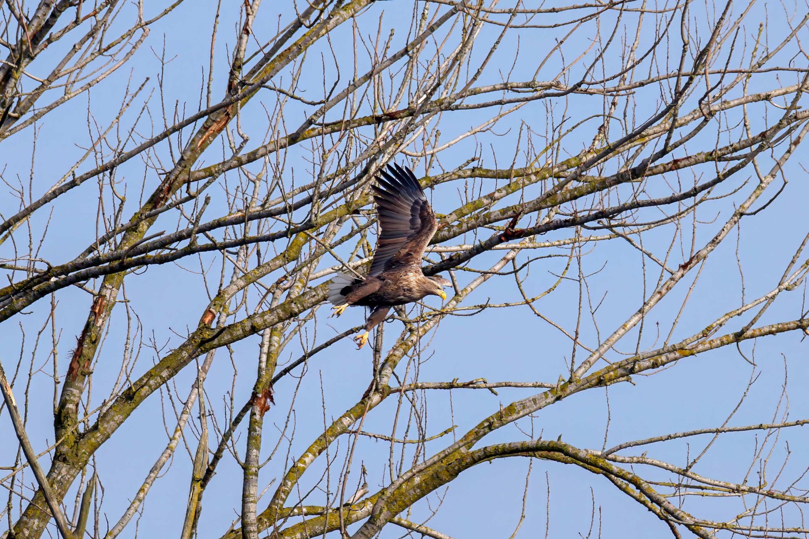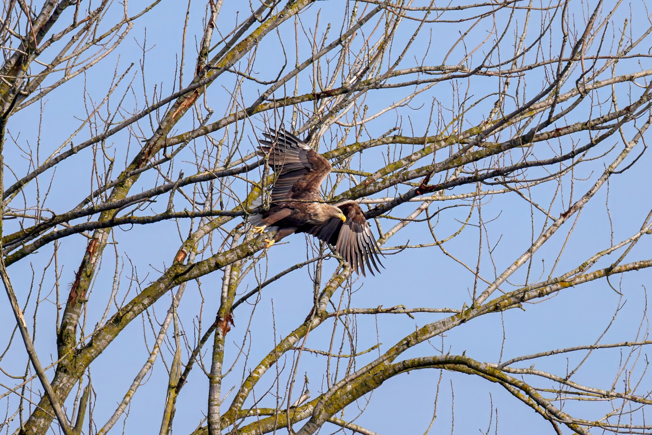 Auf der Bislicher Insel zeigt das Seeadlerpaar derzeit ein deutlich verändertes Verhalten: Der Horst wird nur noch verlassen, wenn ein Partner zurückbleibt und aufmerksam wacht. Dieses abgestimmte Verhalten spricht dafür, dass das Weibchen am Wochenende des 14./15. Februar ein Gelege produziert hat und damit die Brutphase 2026 eröffnet.
