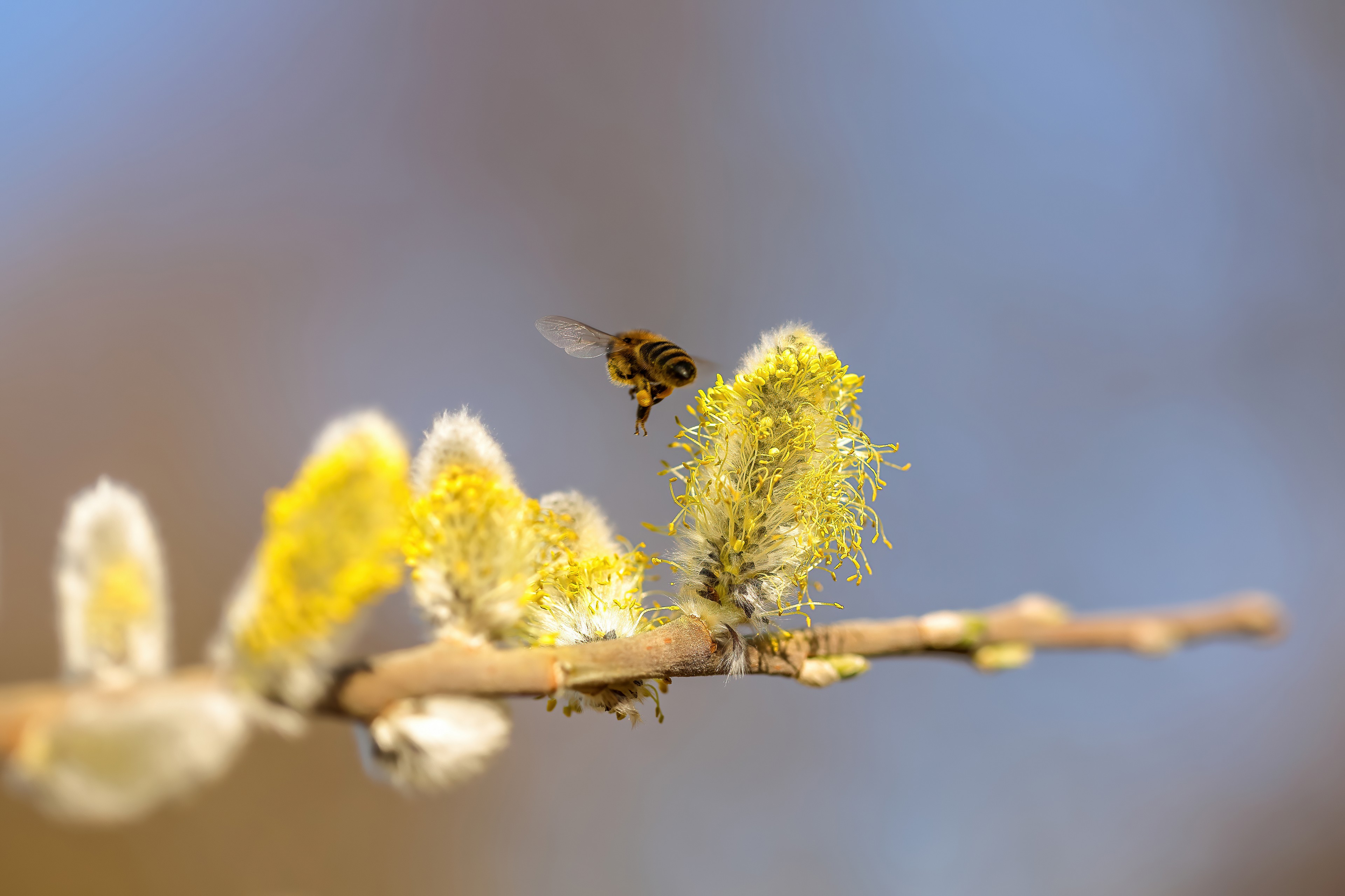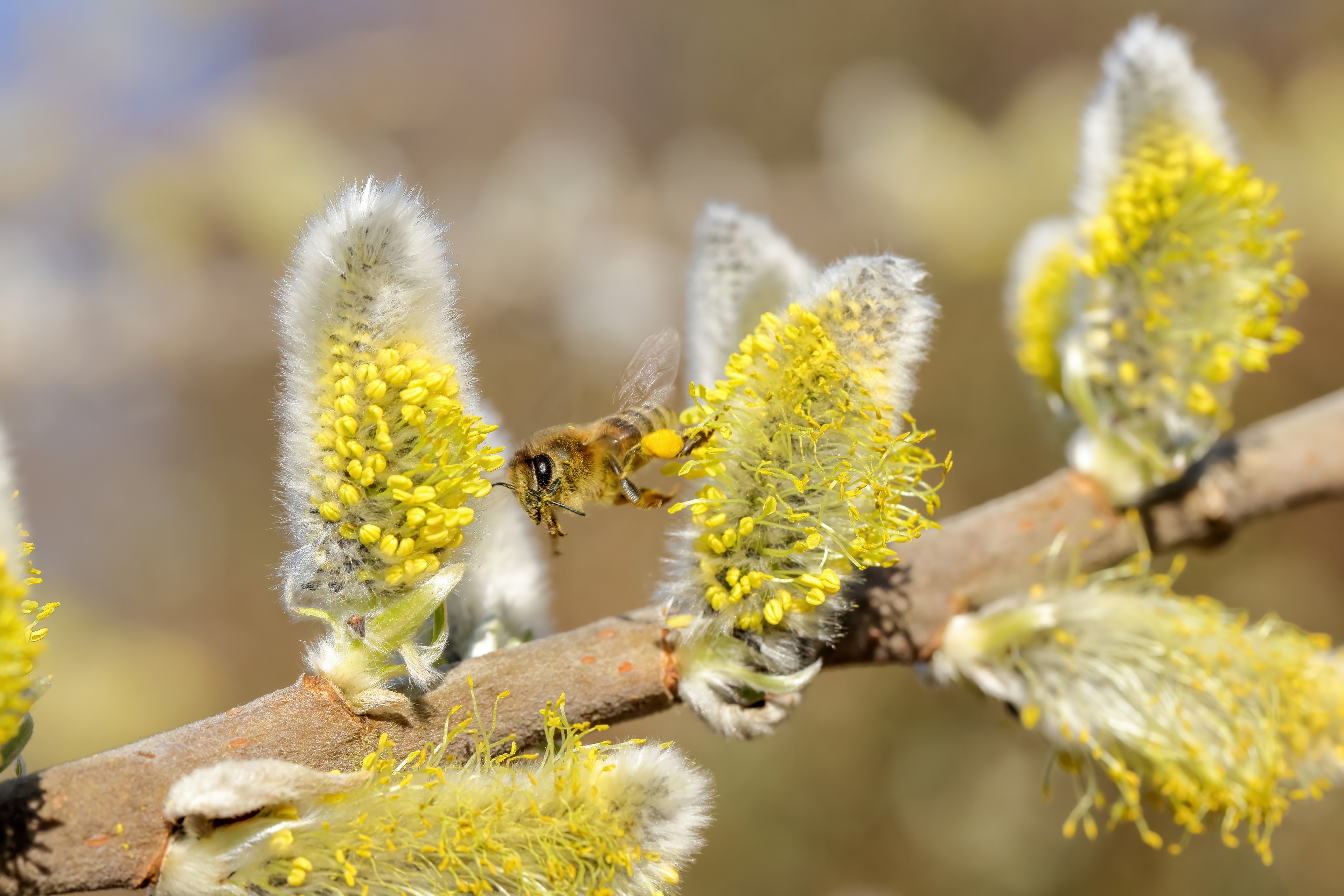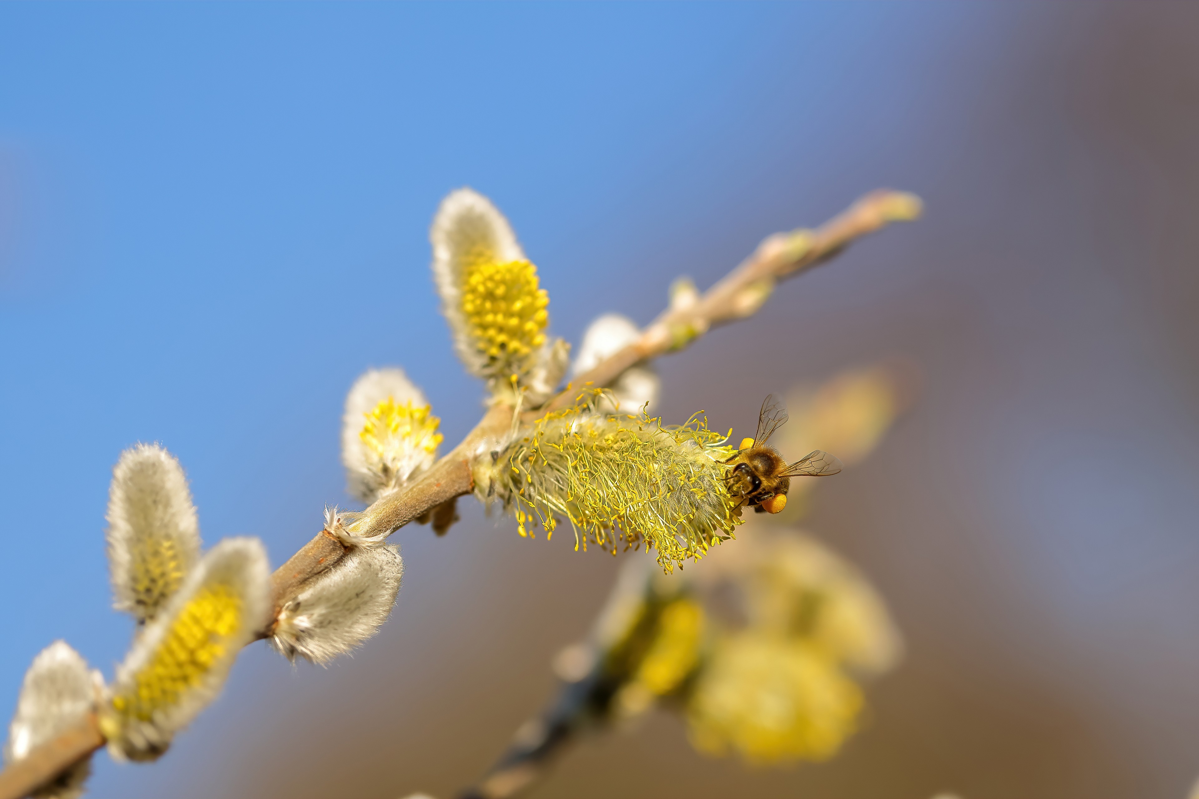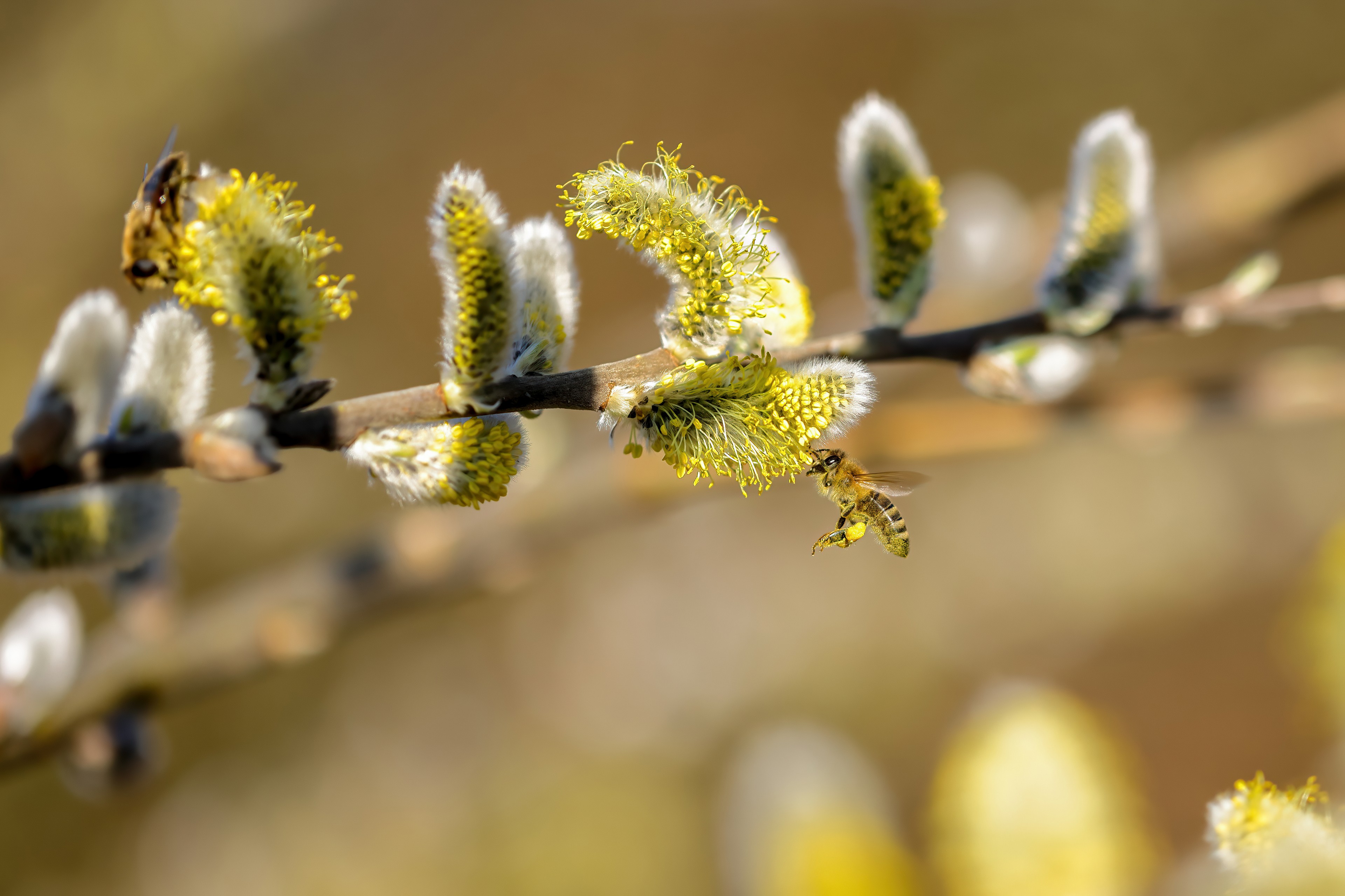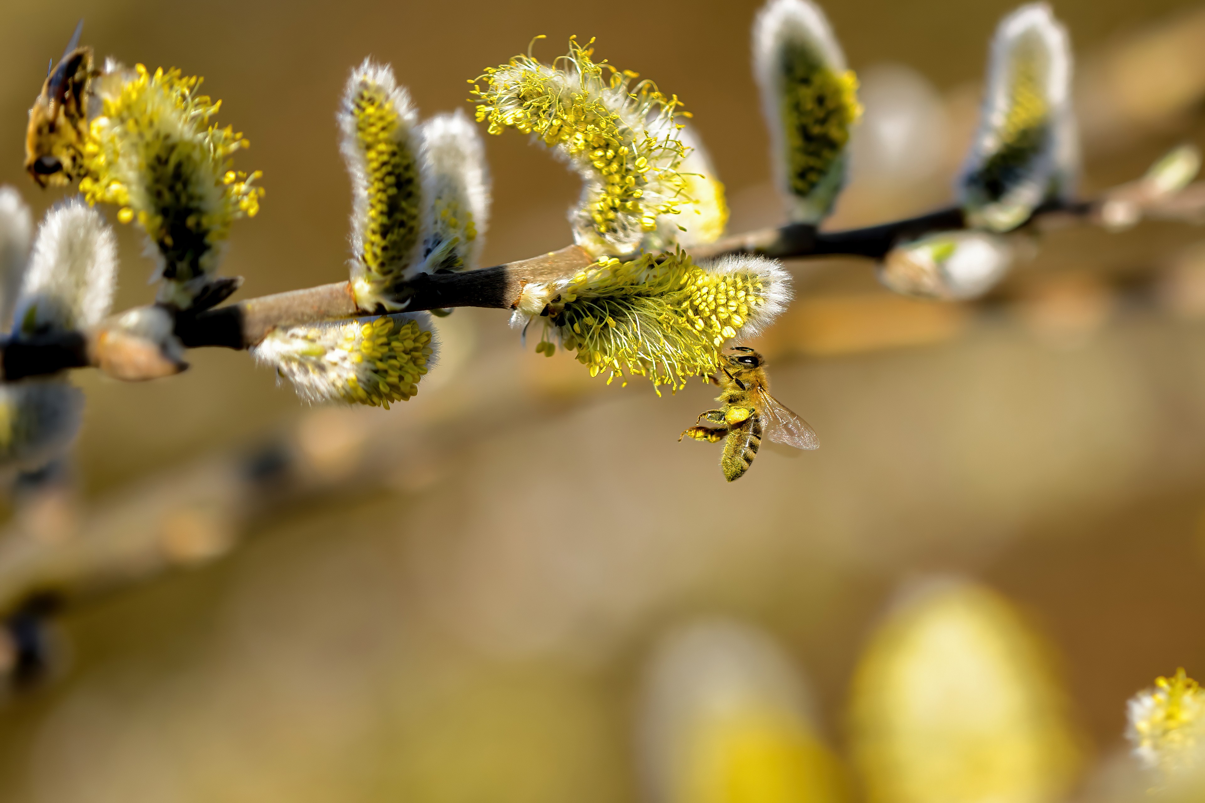 Die ersten Weidenkätzchen werden von den Bienen aufgesucht