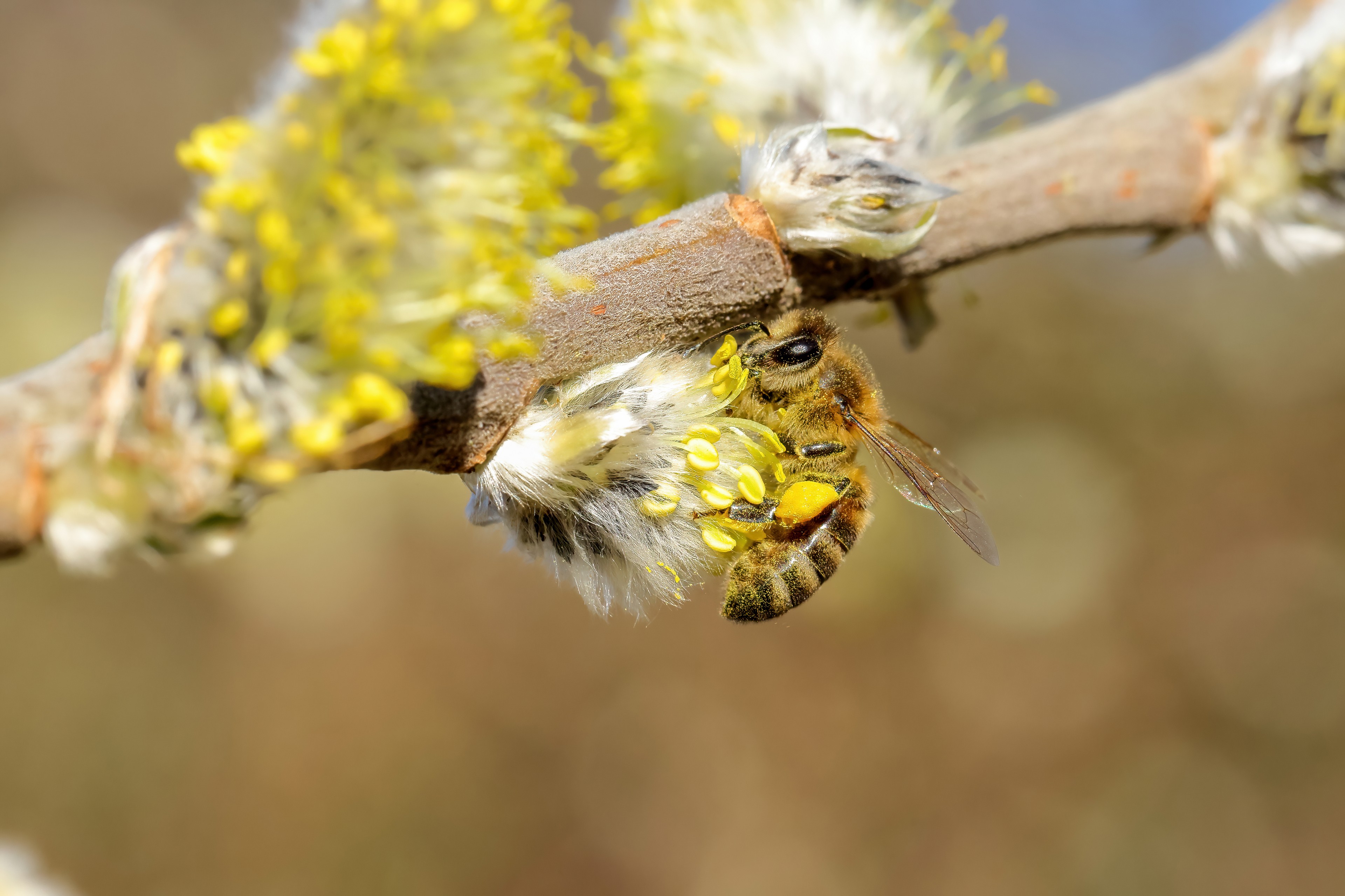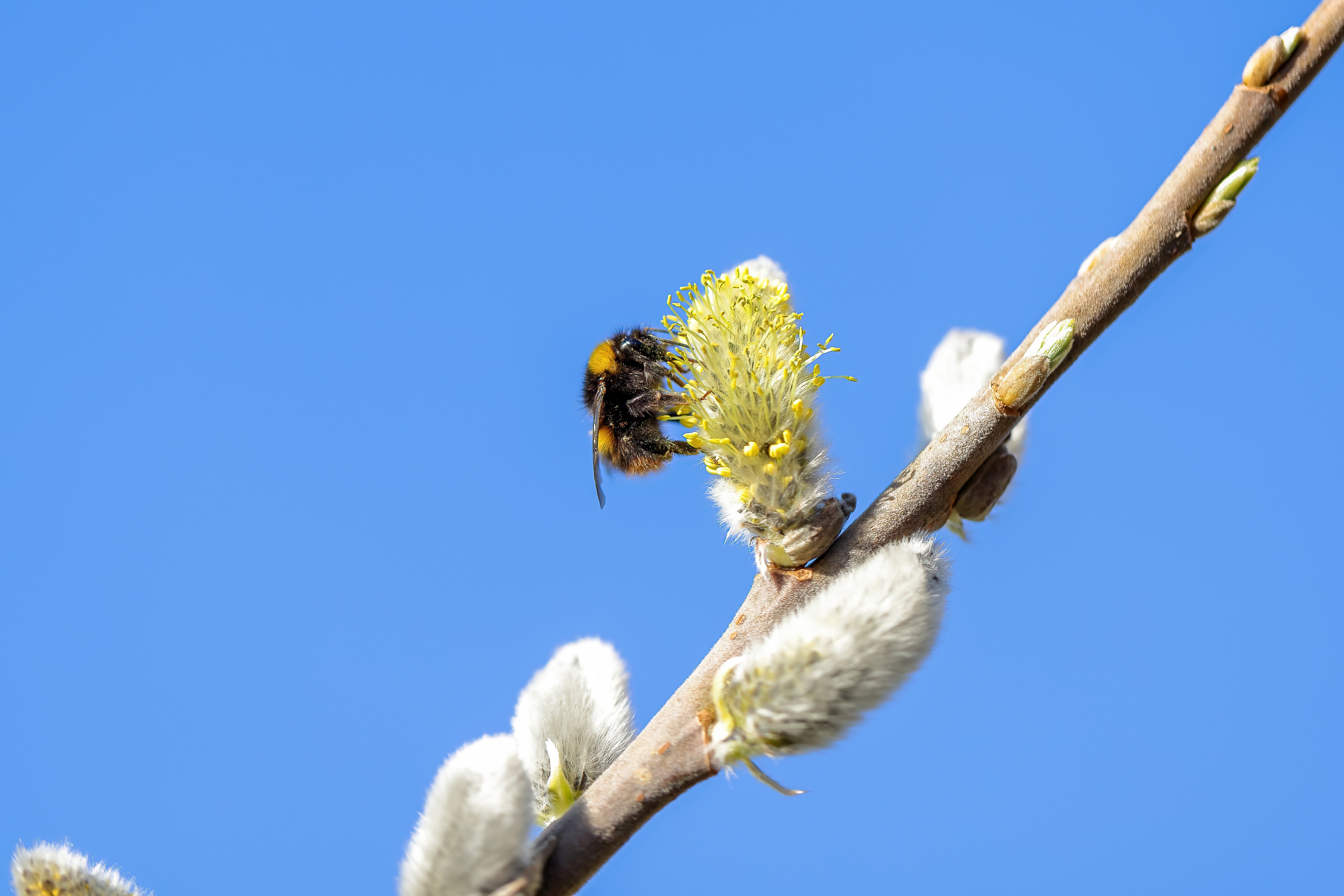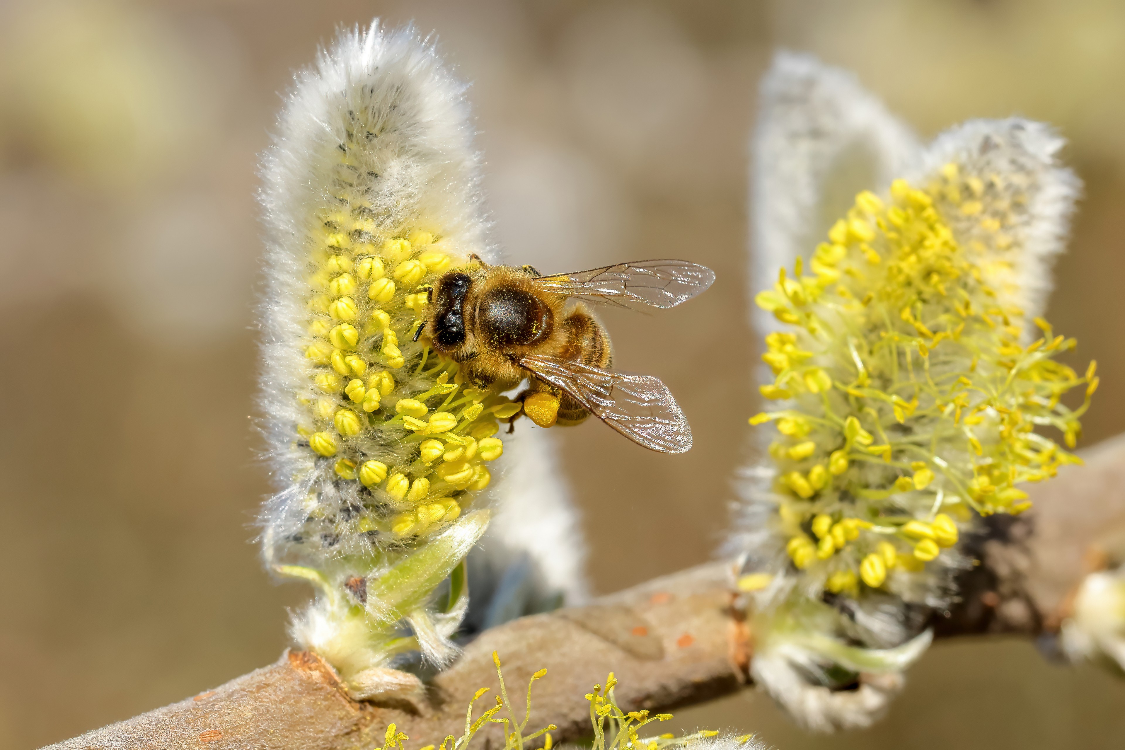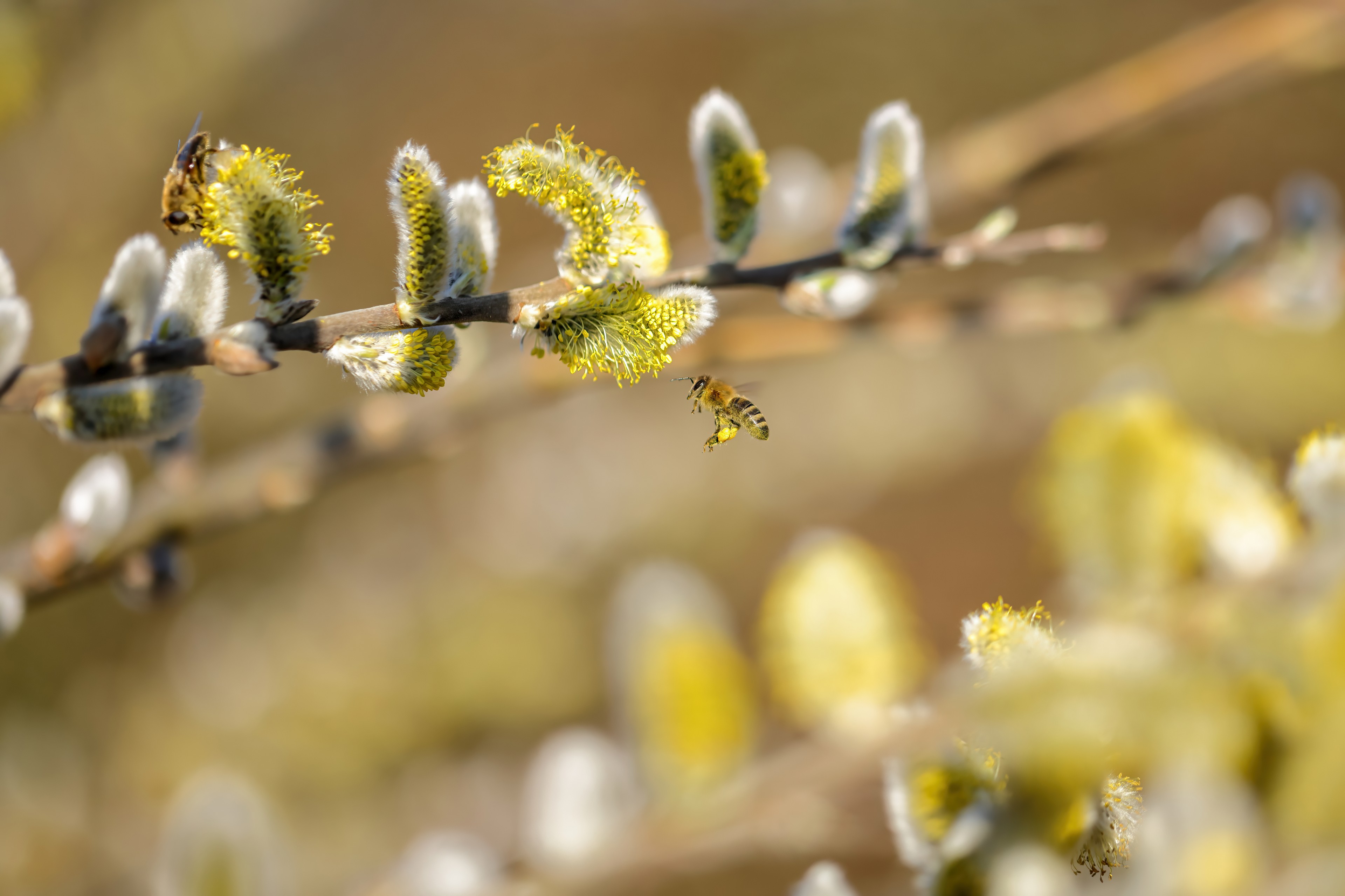Die ersten Weidenkätzchen werden von den Bienen aufgesucht