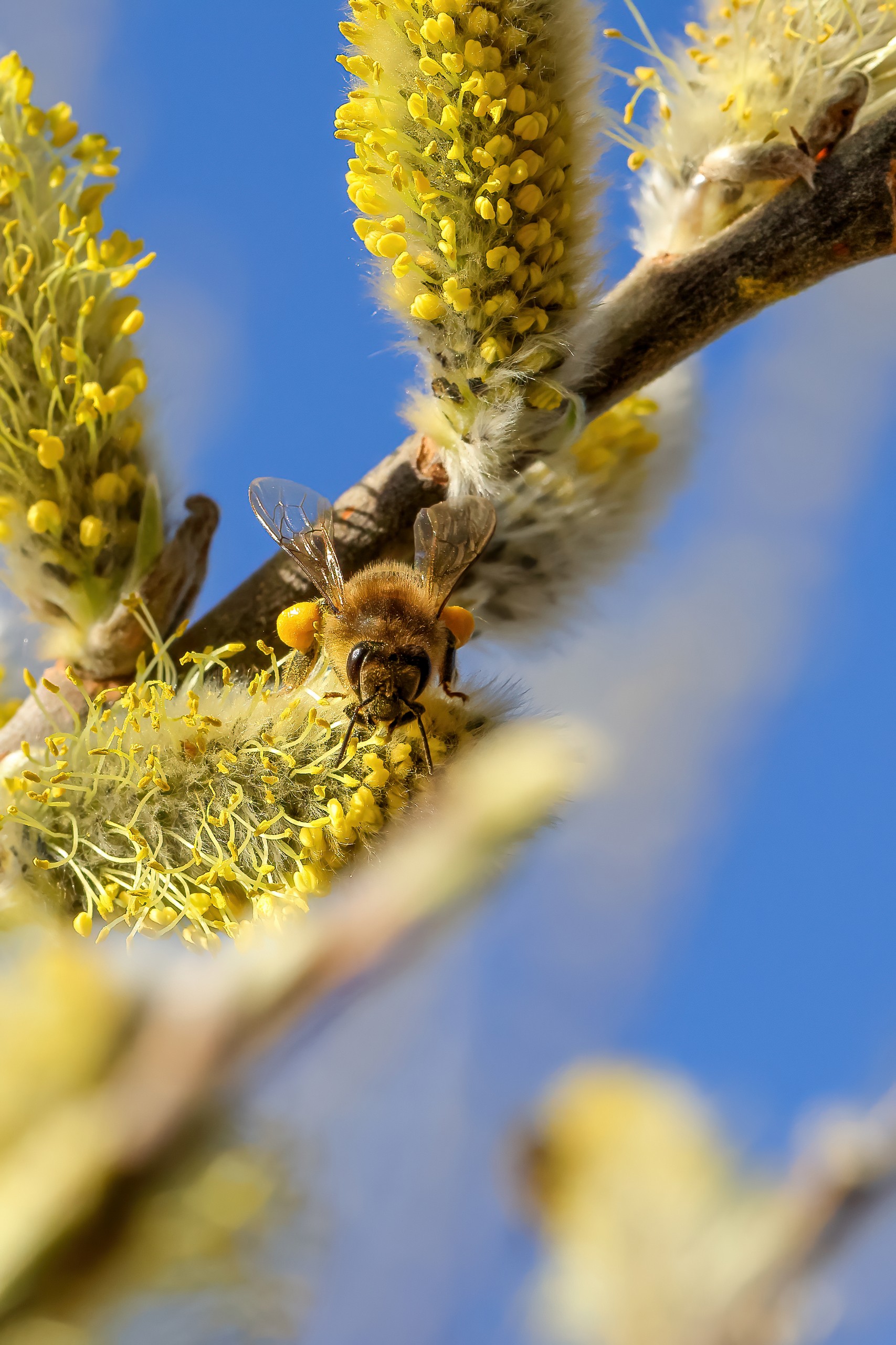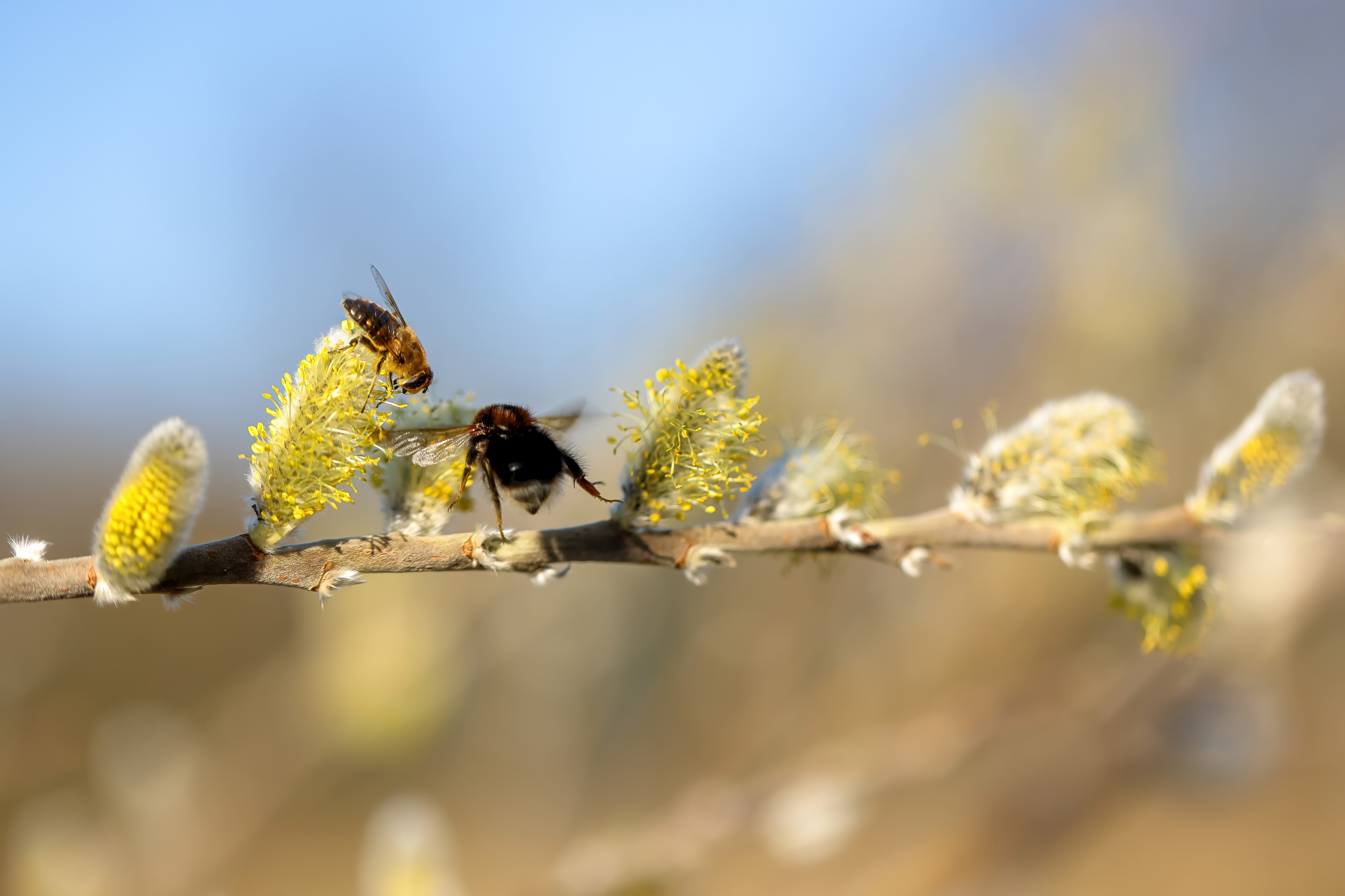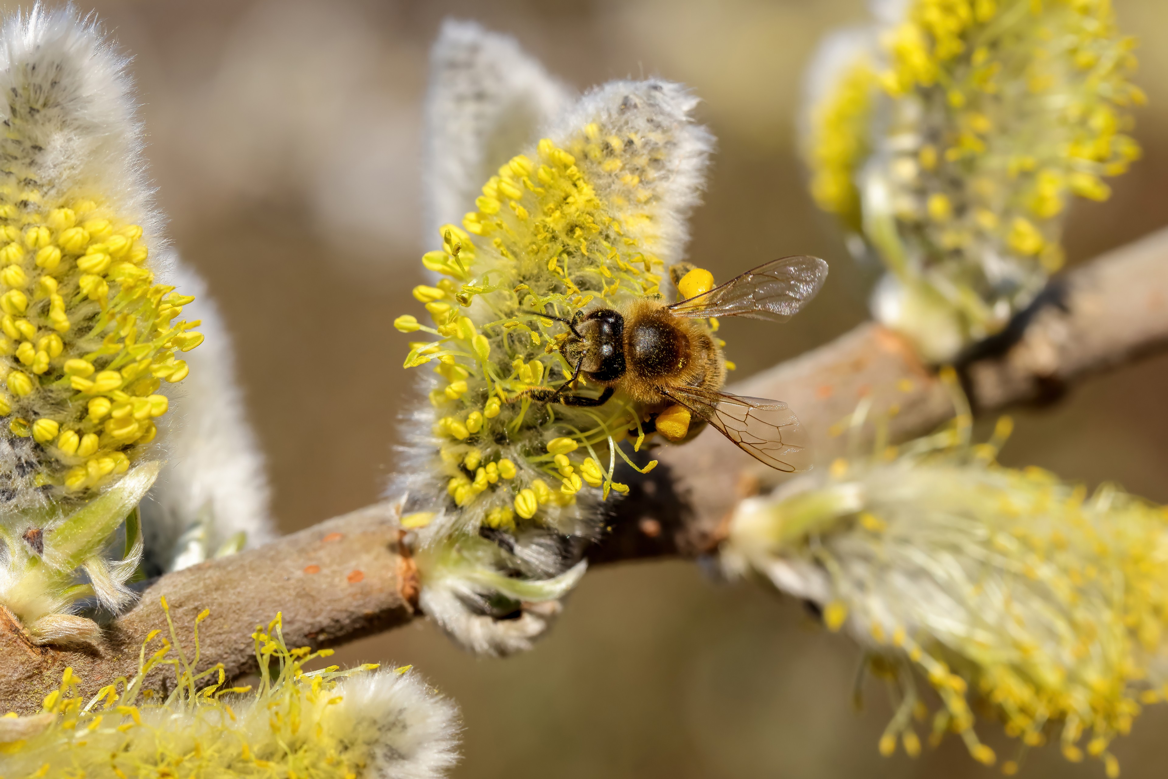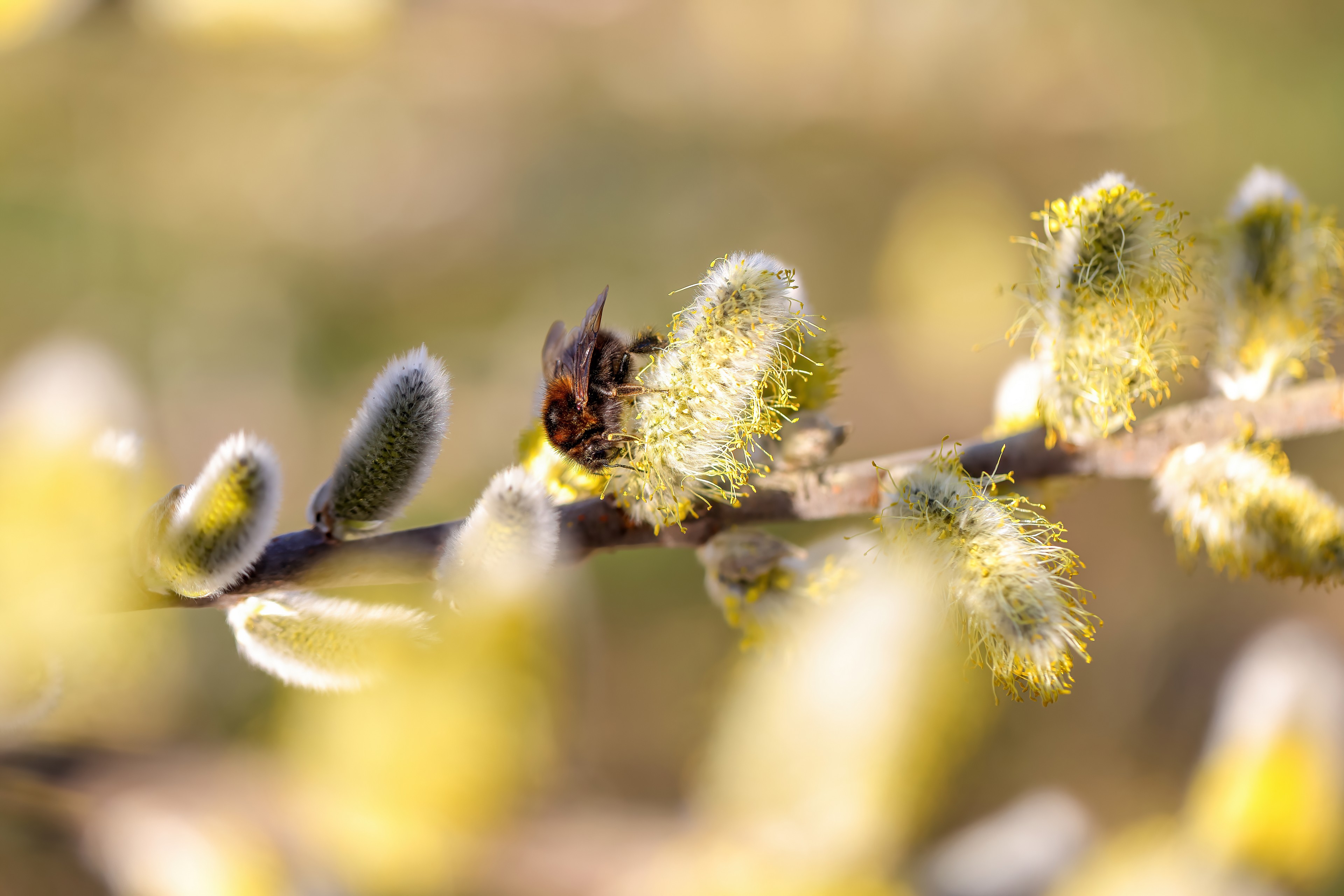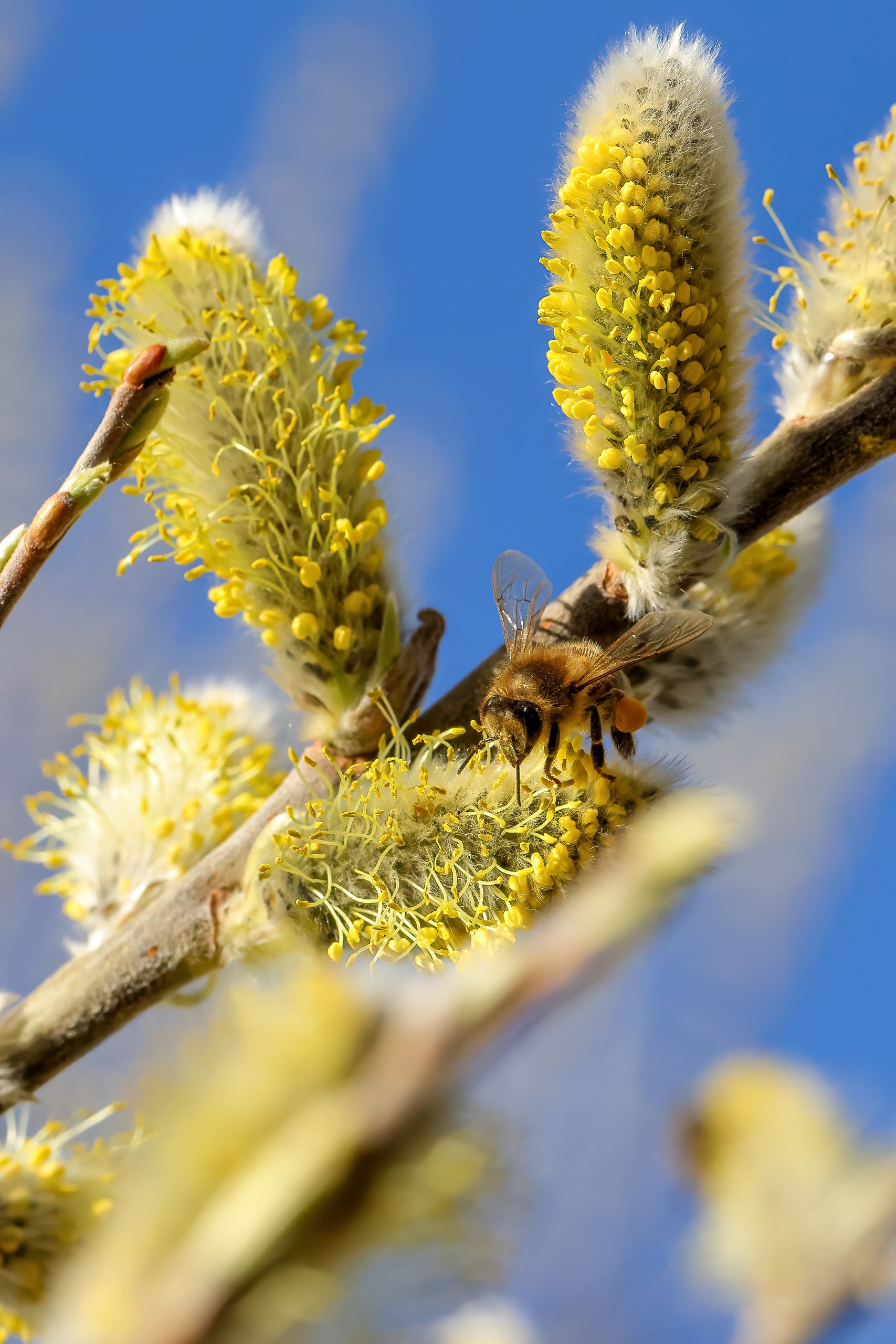 Die ersten Weidenkätzchen werden von den Bienen aufgesucht