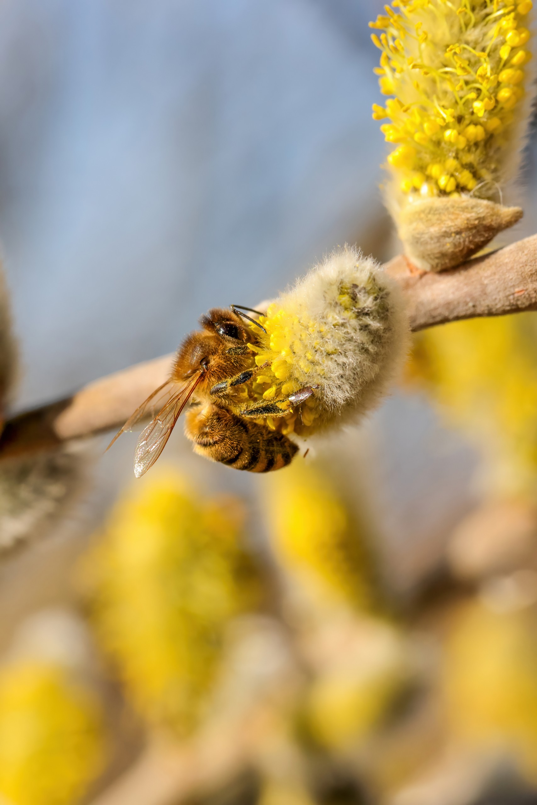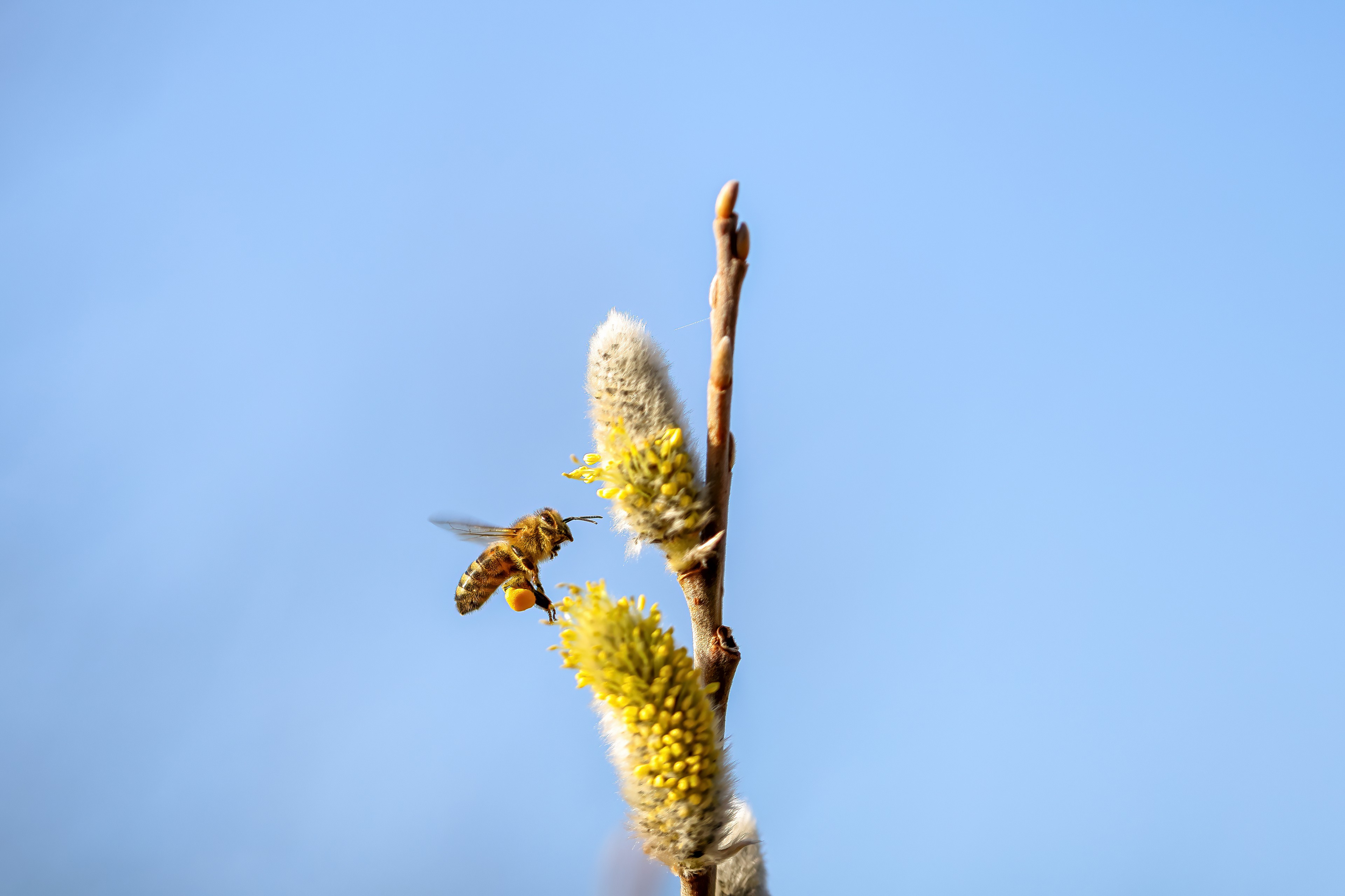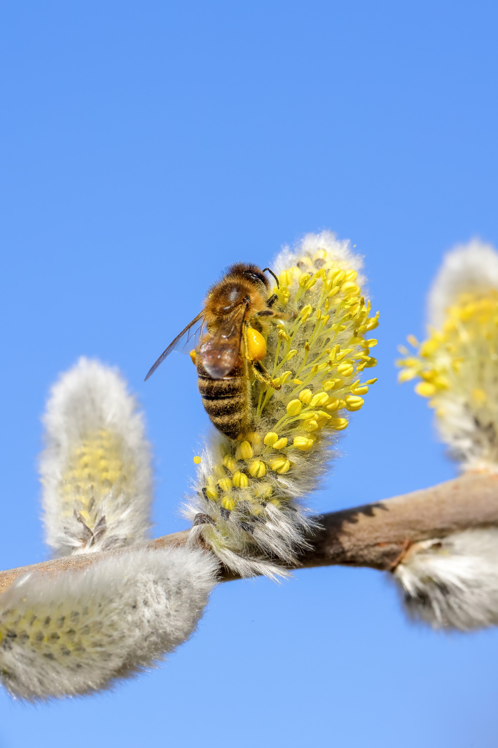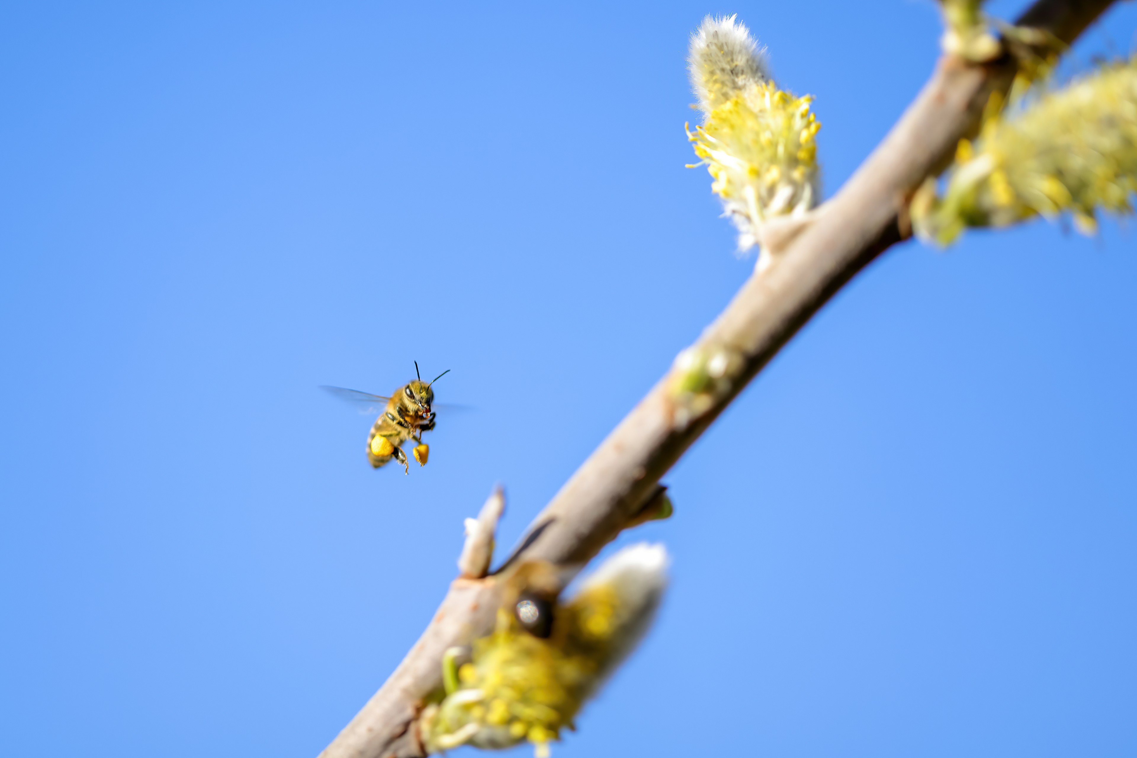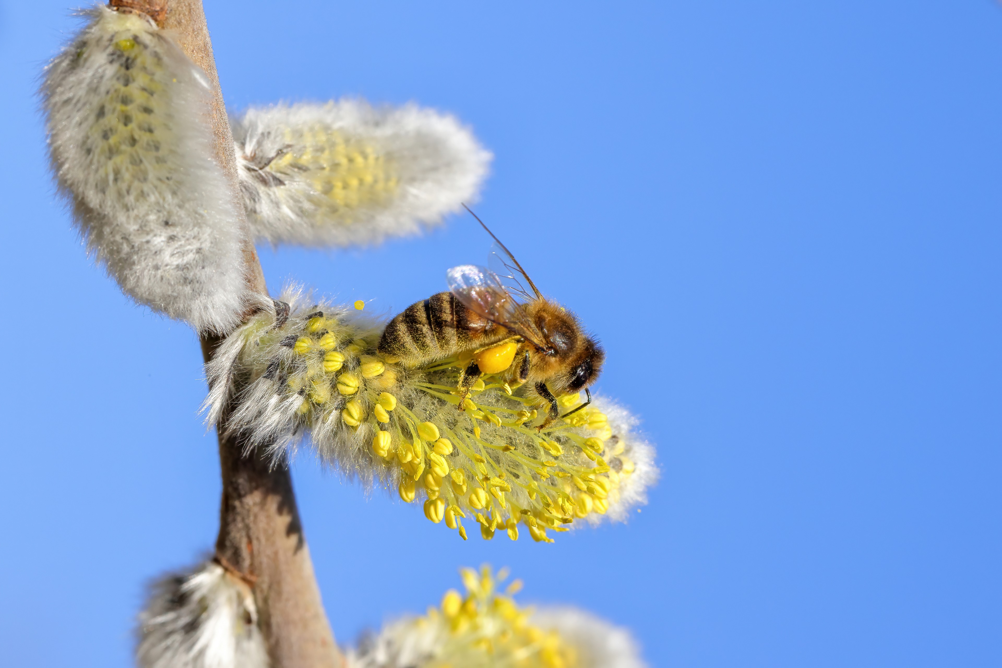 Die ersten Weidenkätzchen werden von den Bienen aufgesucht