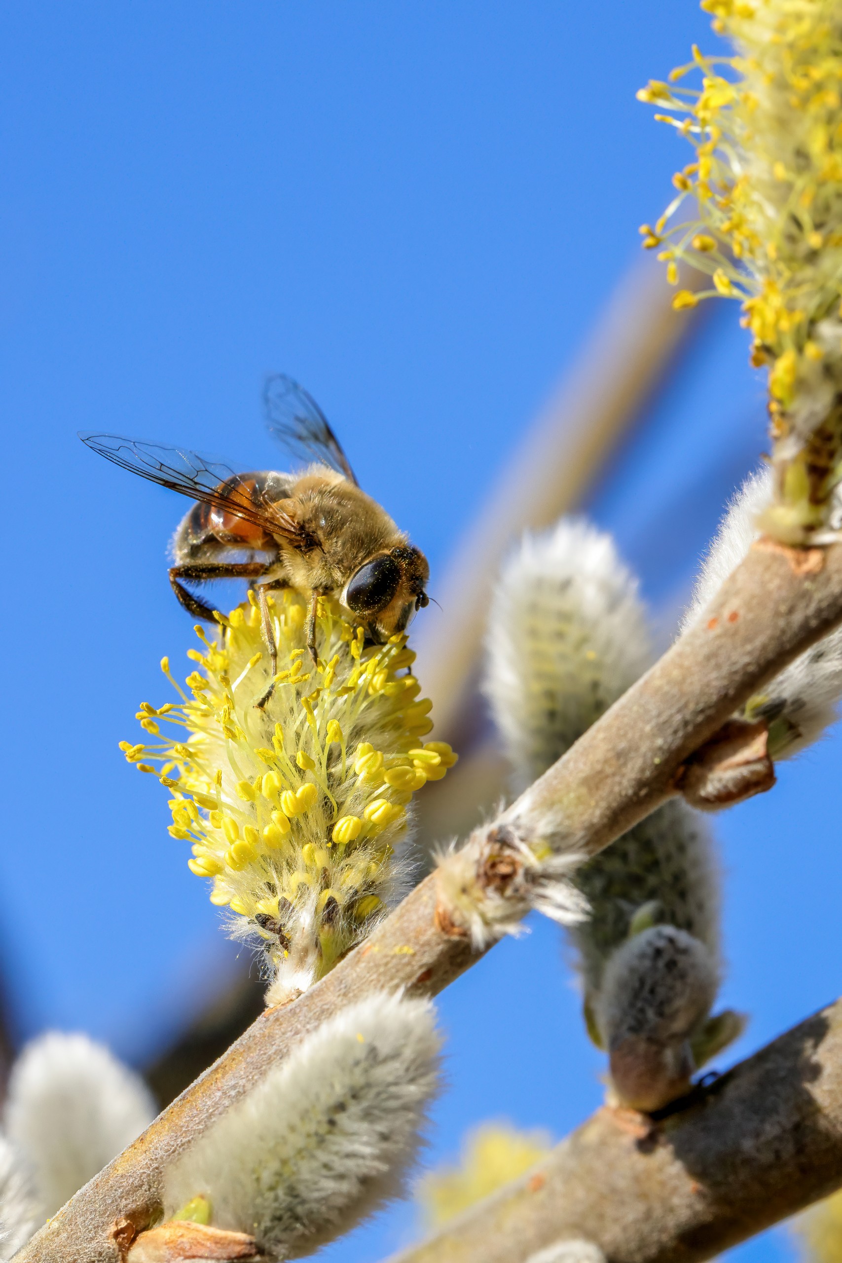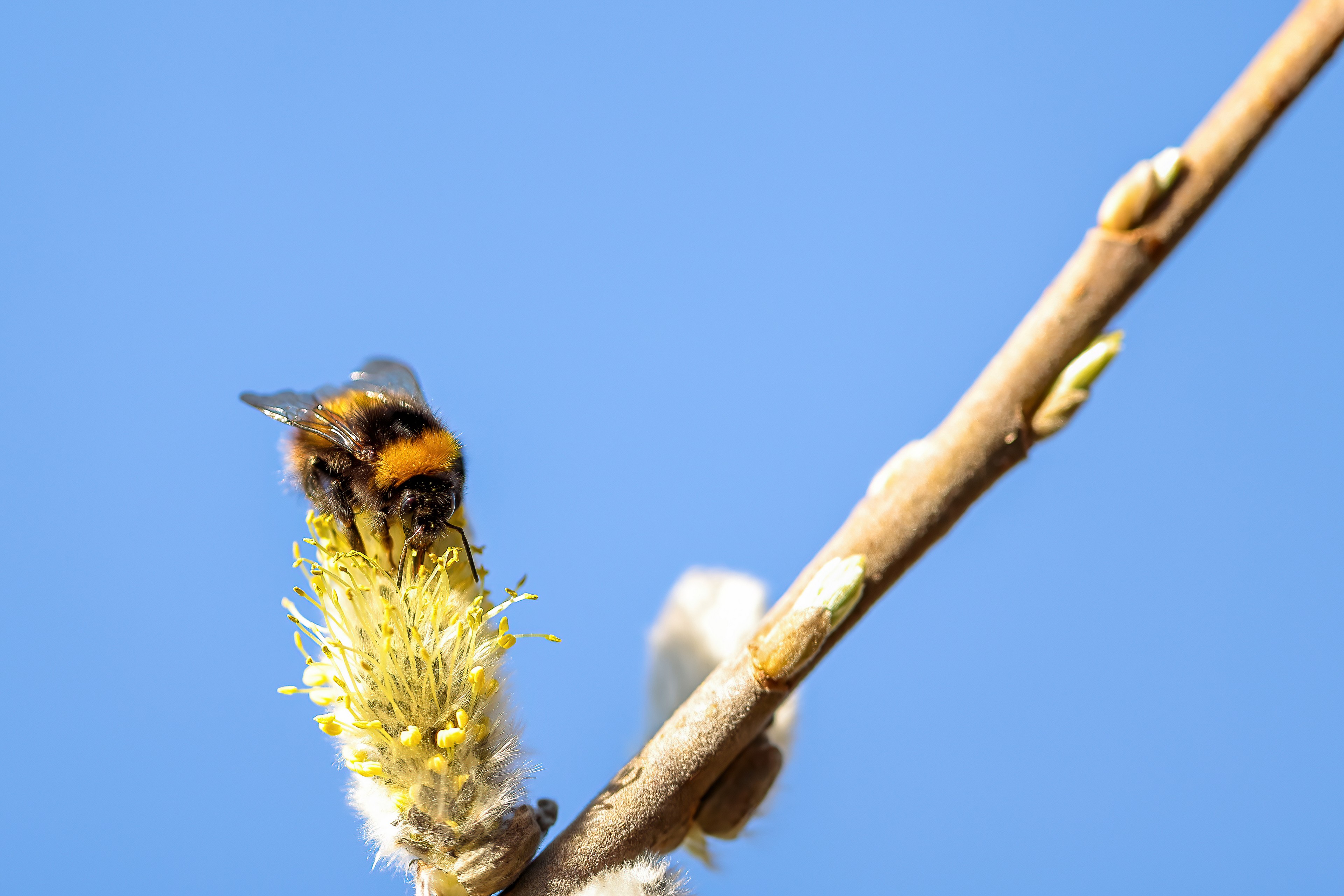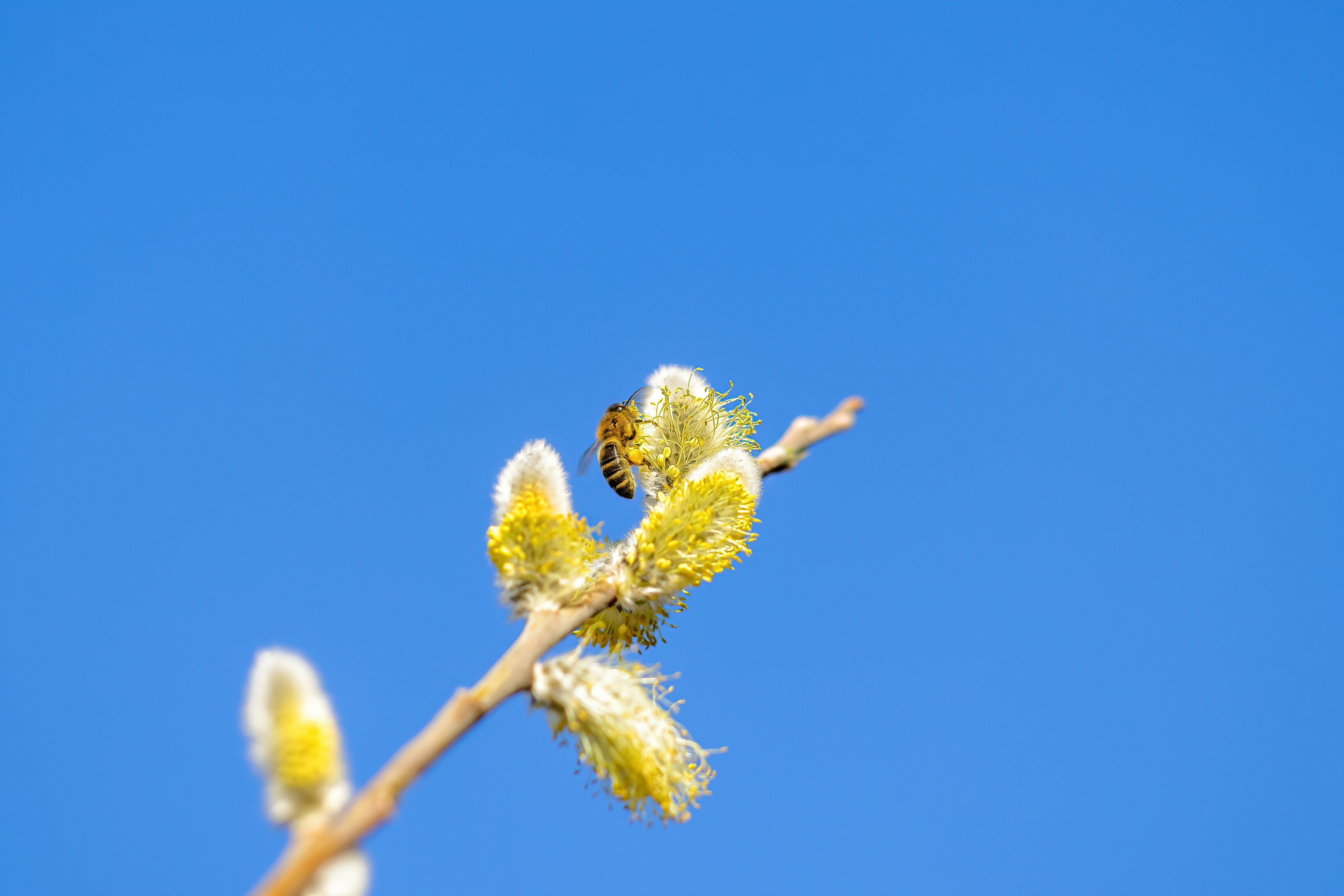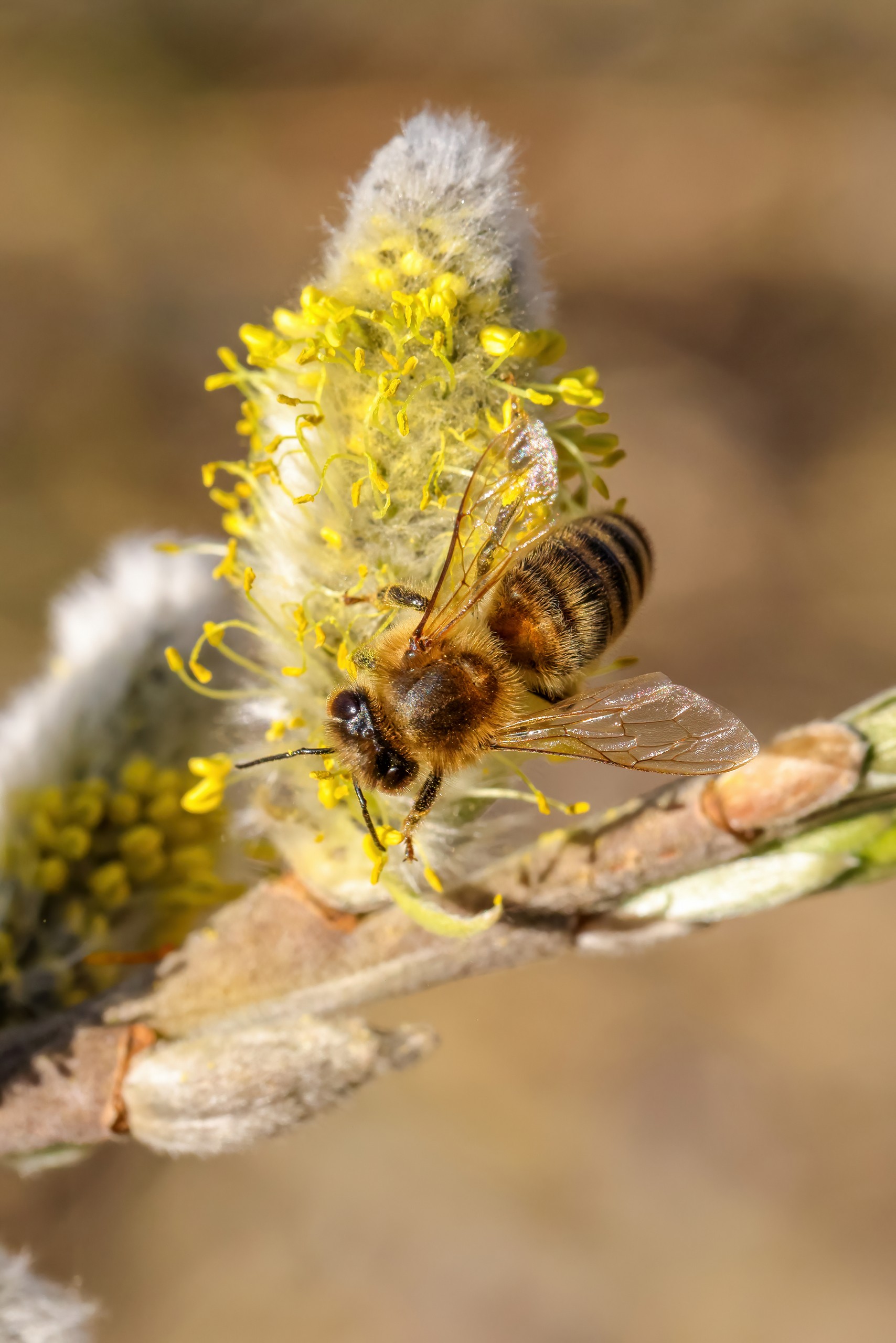 Die ersten Weidenkätzchen werden von den Bienen aufgesucht
