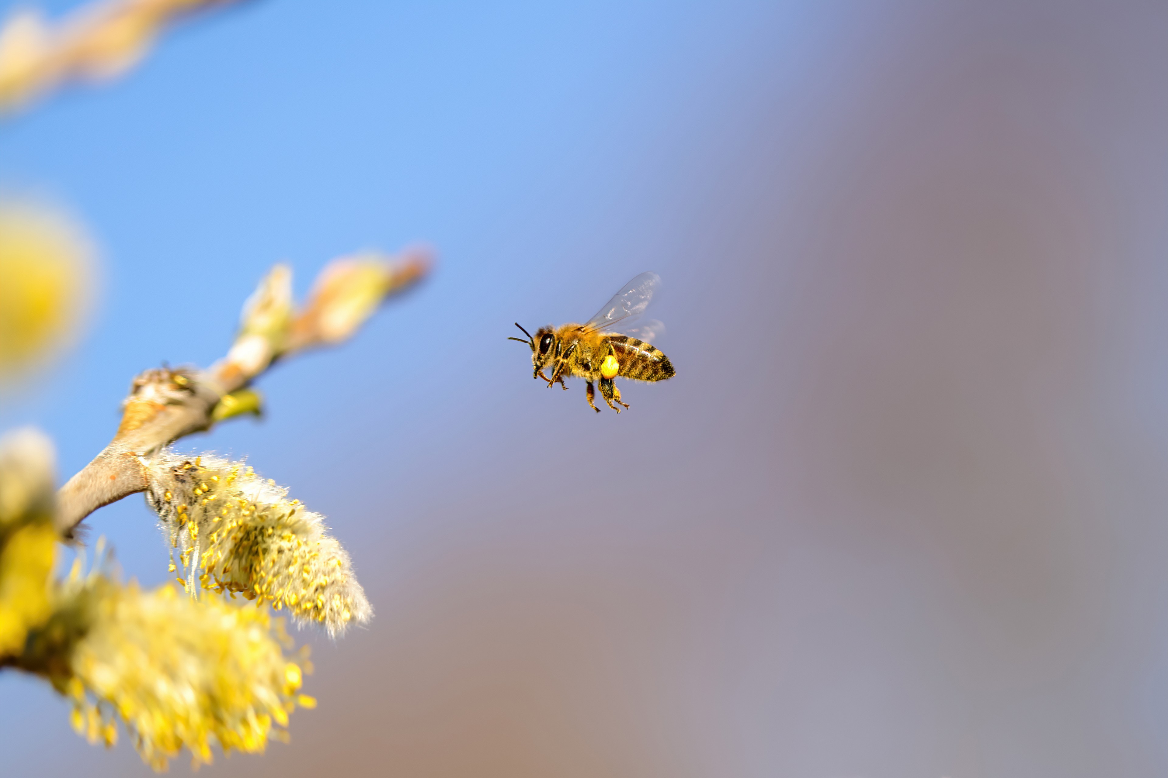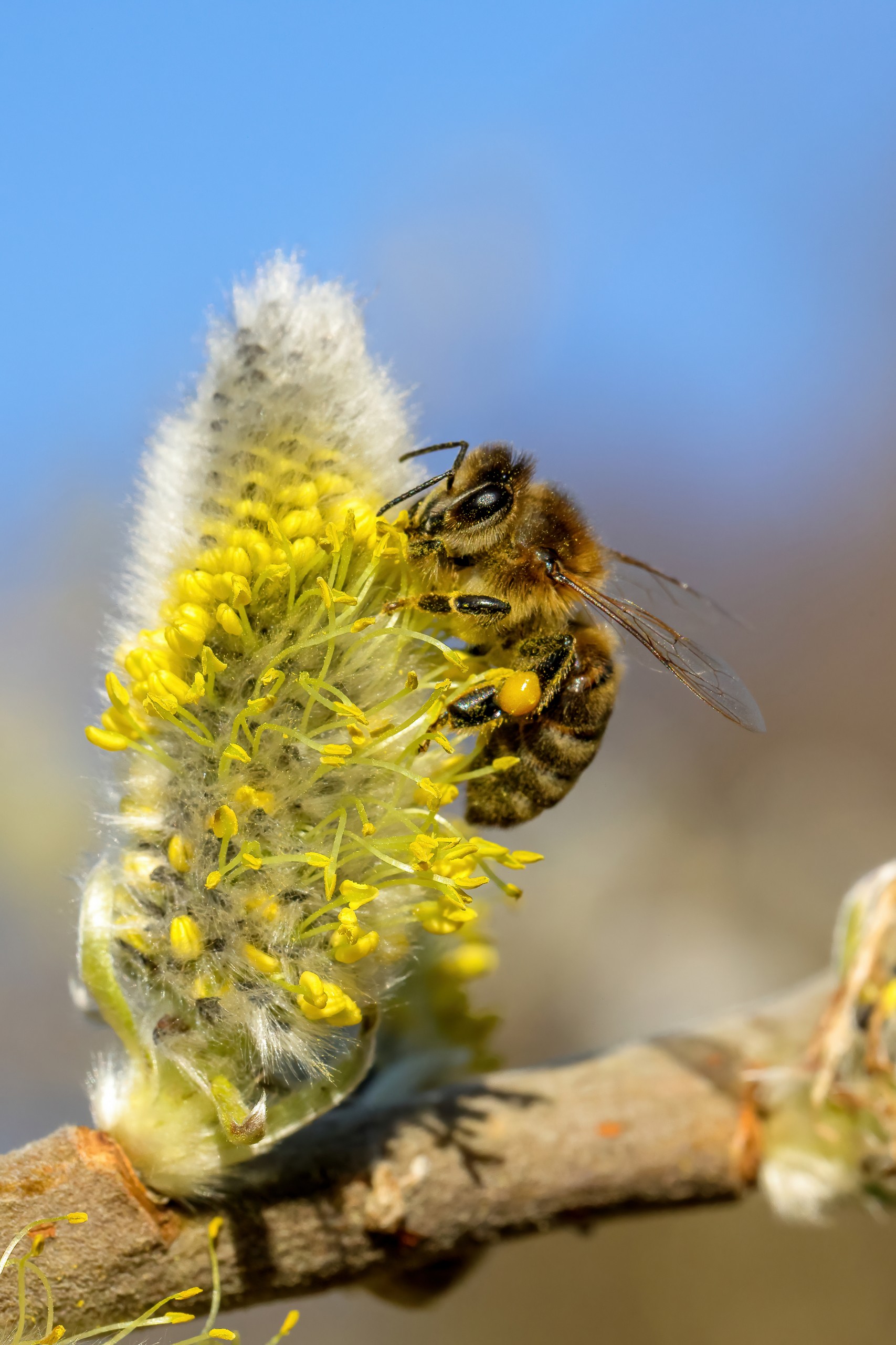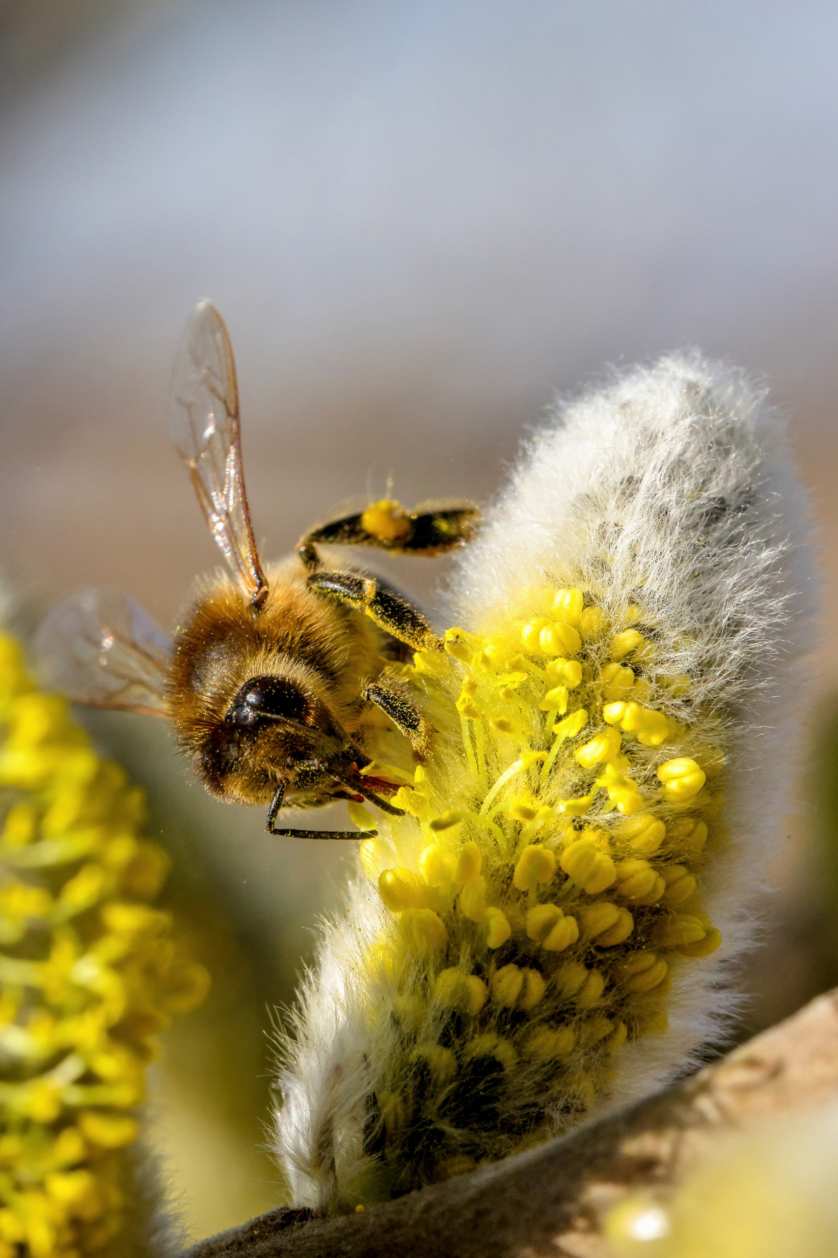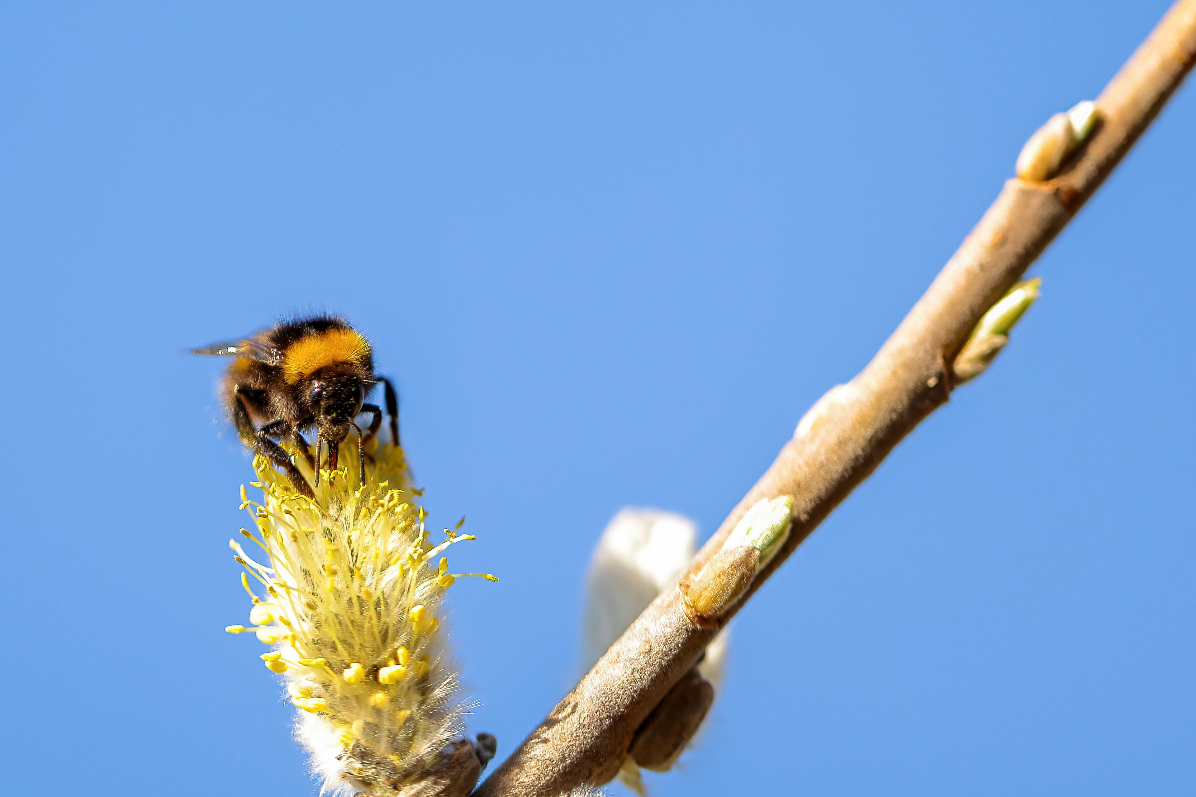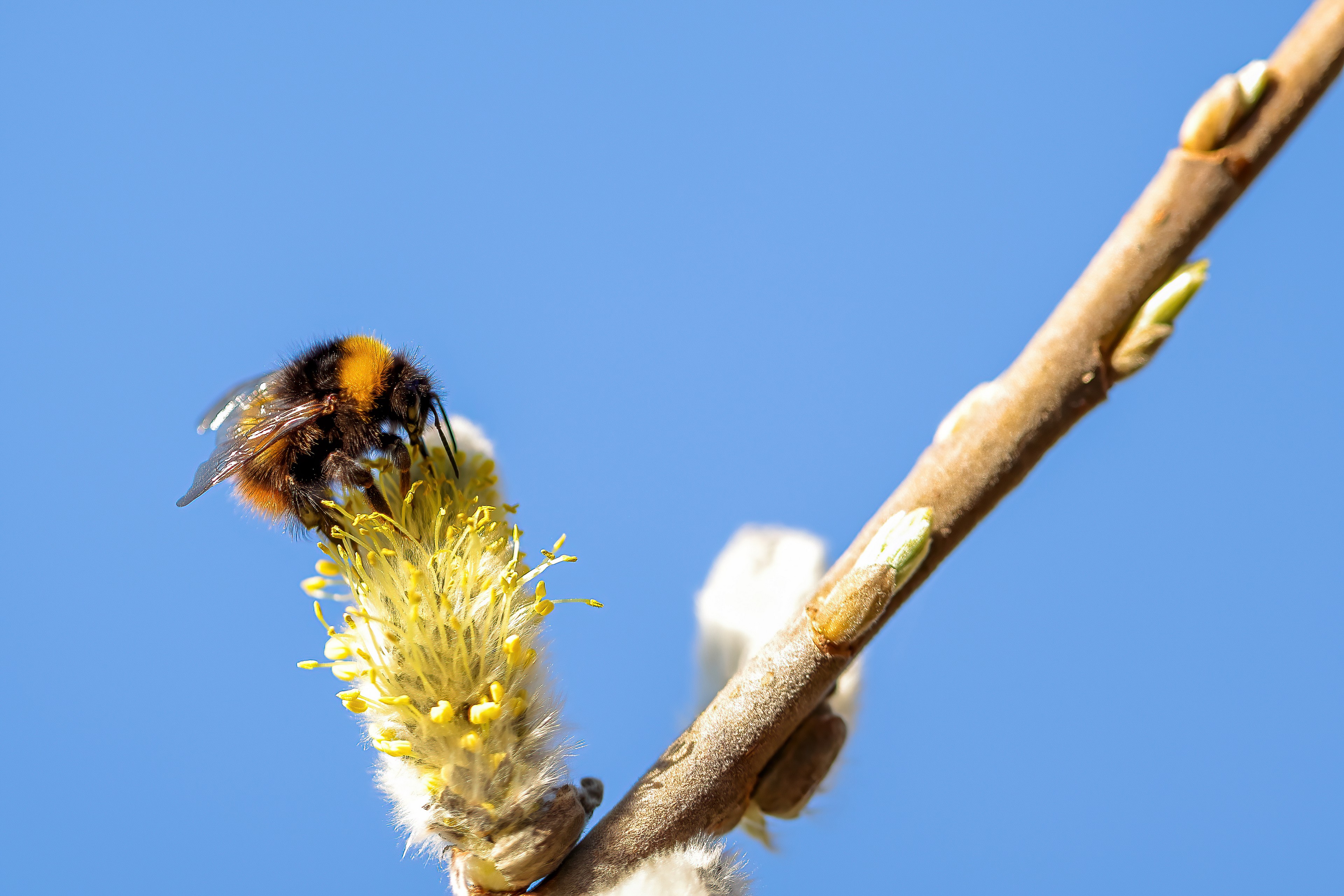 Die ersten Weidenkätzchen werden von den Bienen aufgesucht