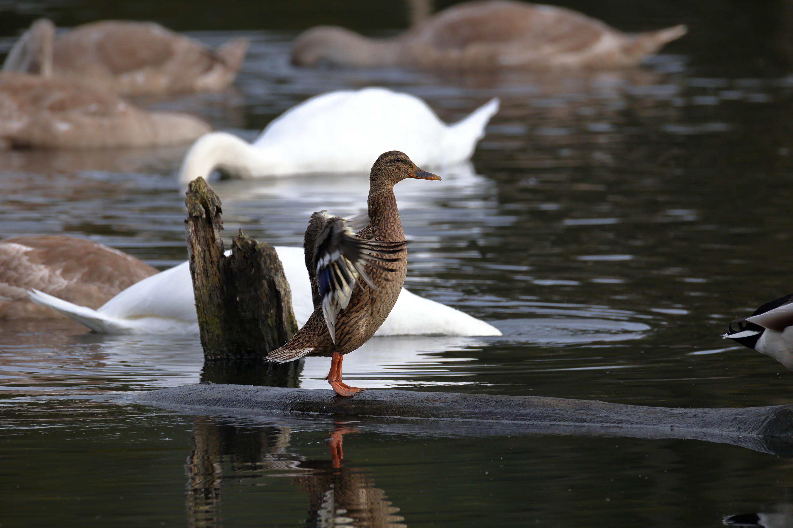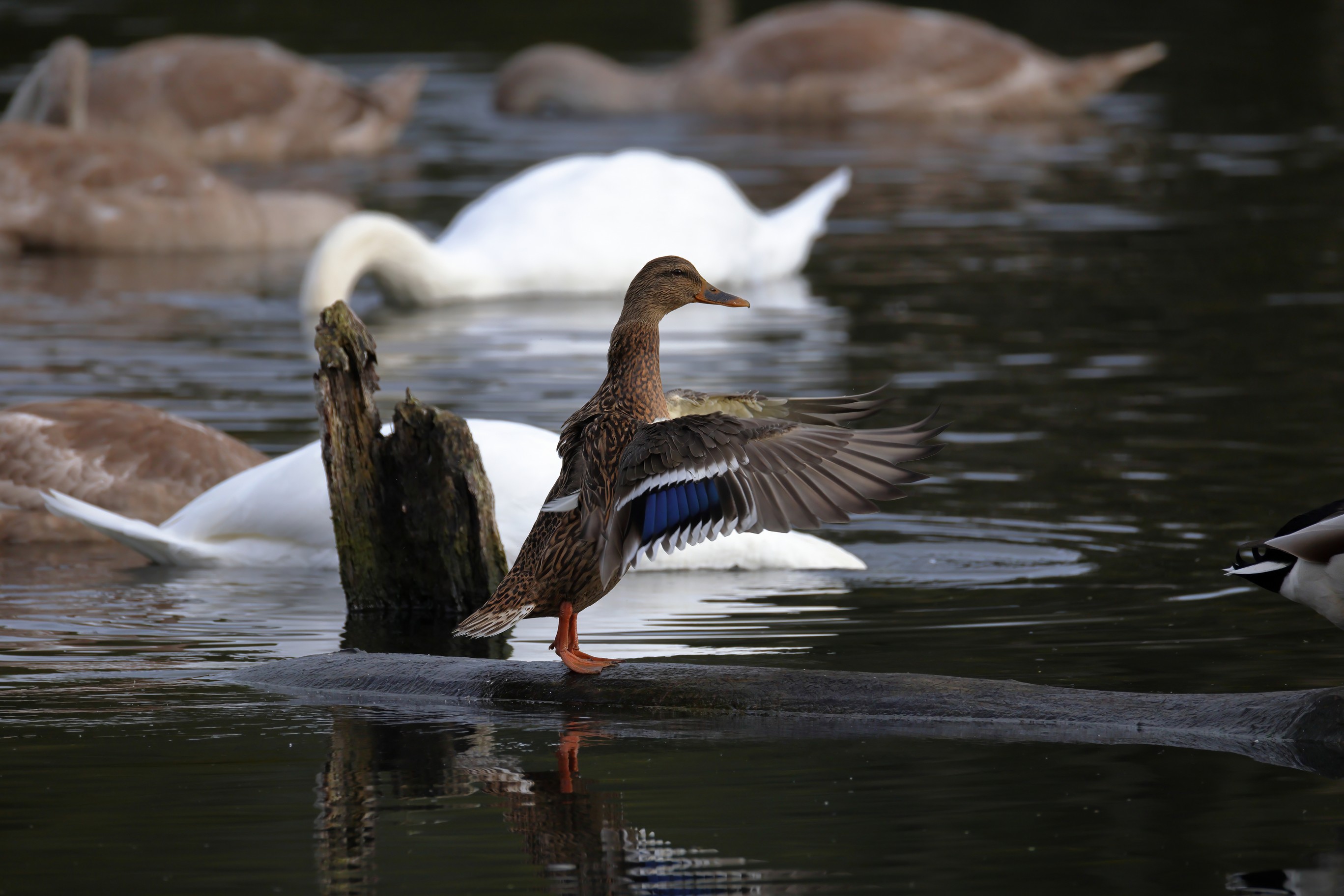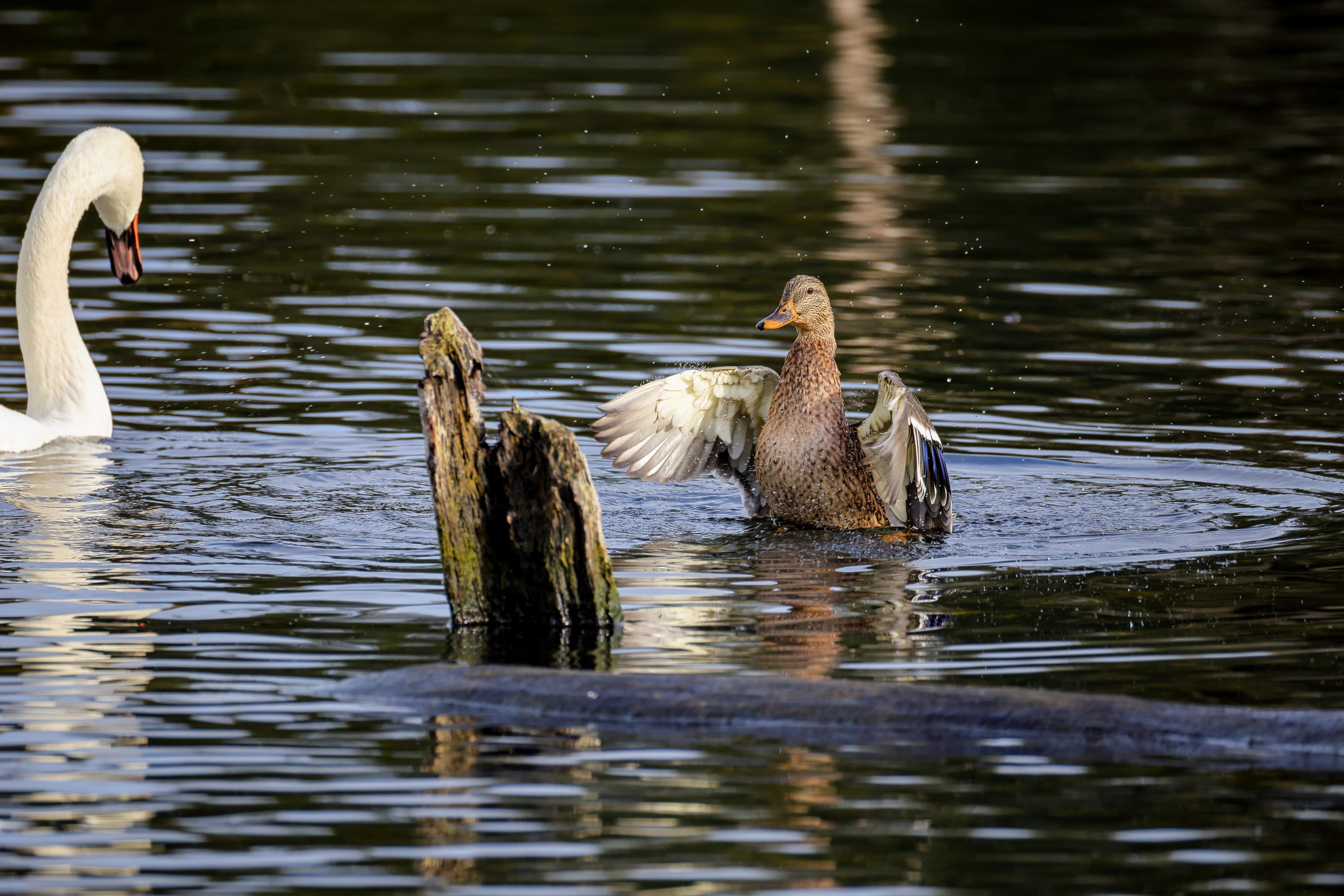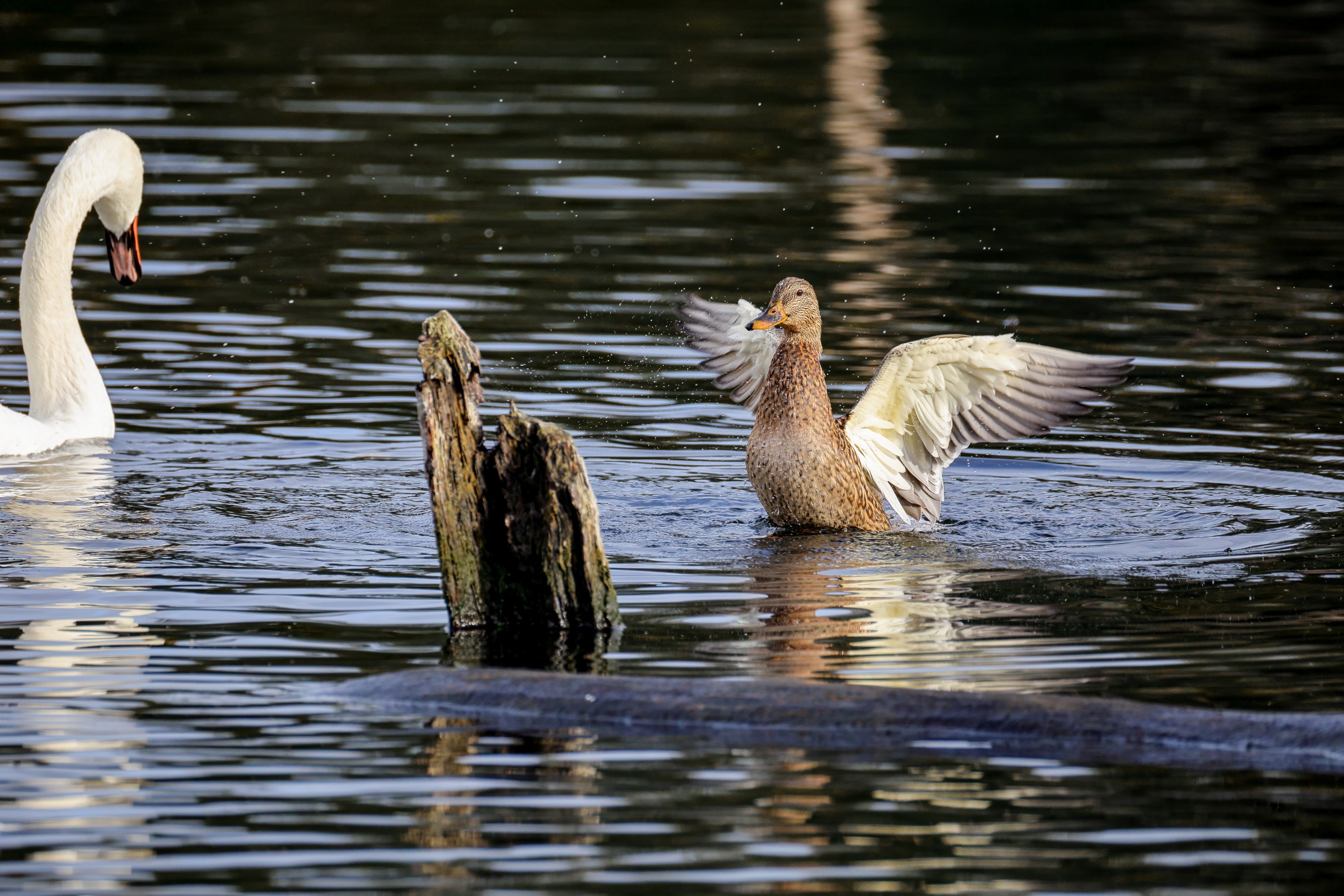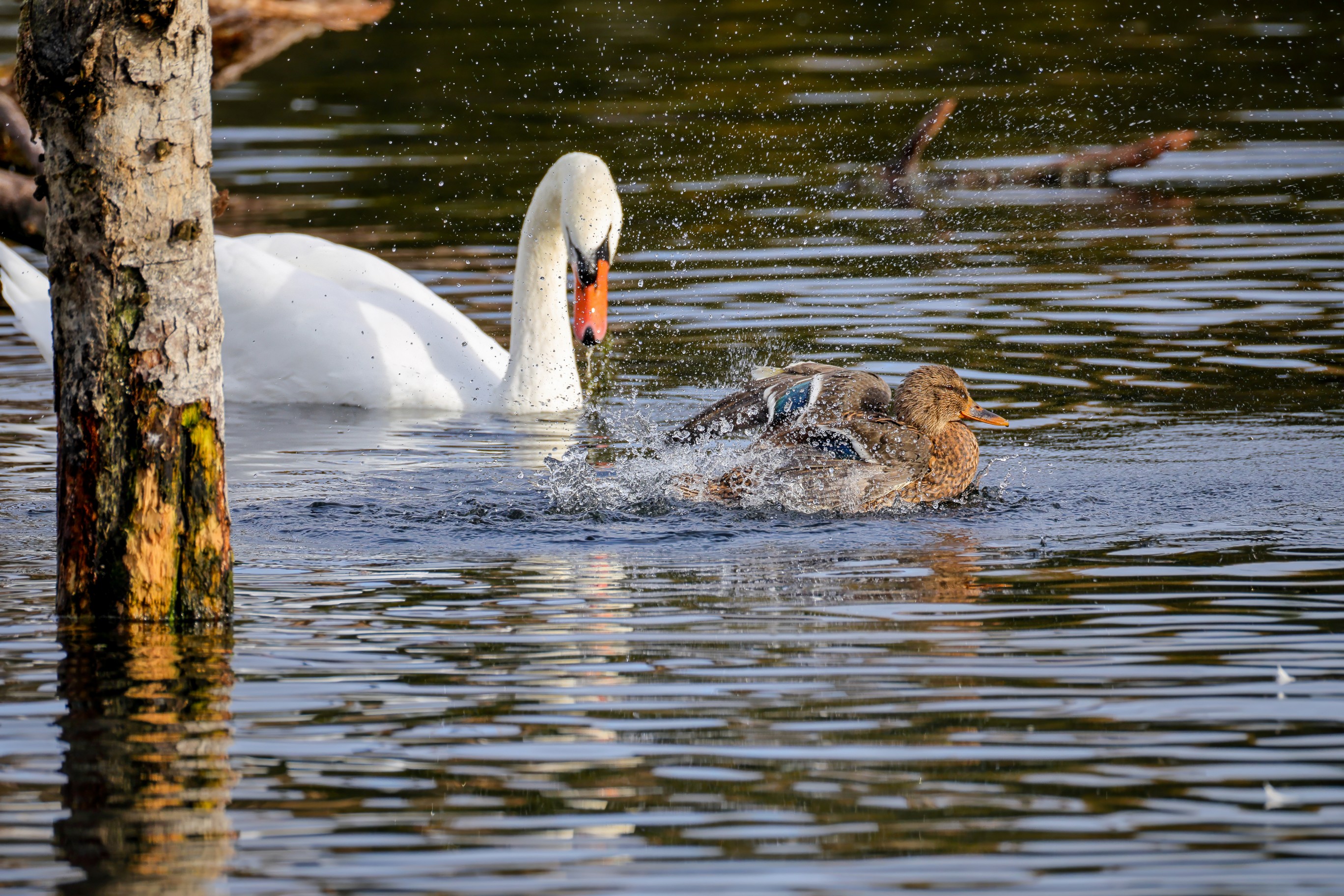Höckerschwan vertreibt Trauerschwan