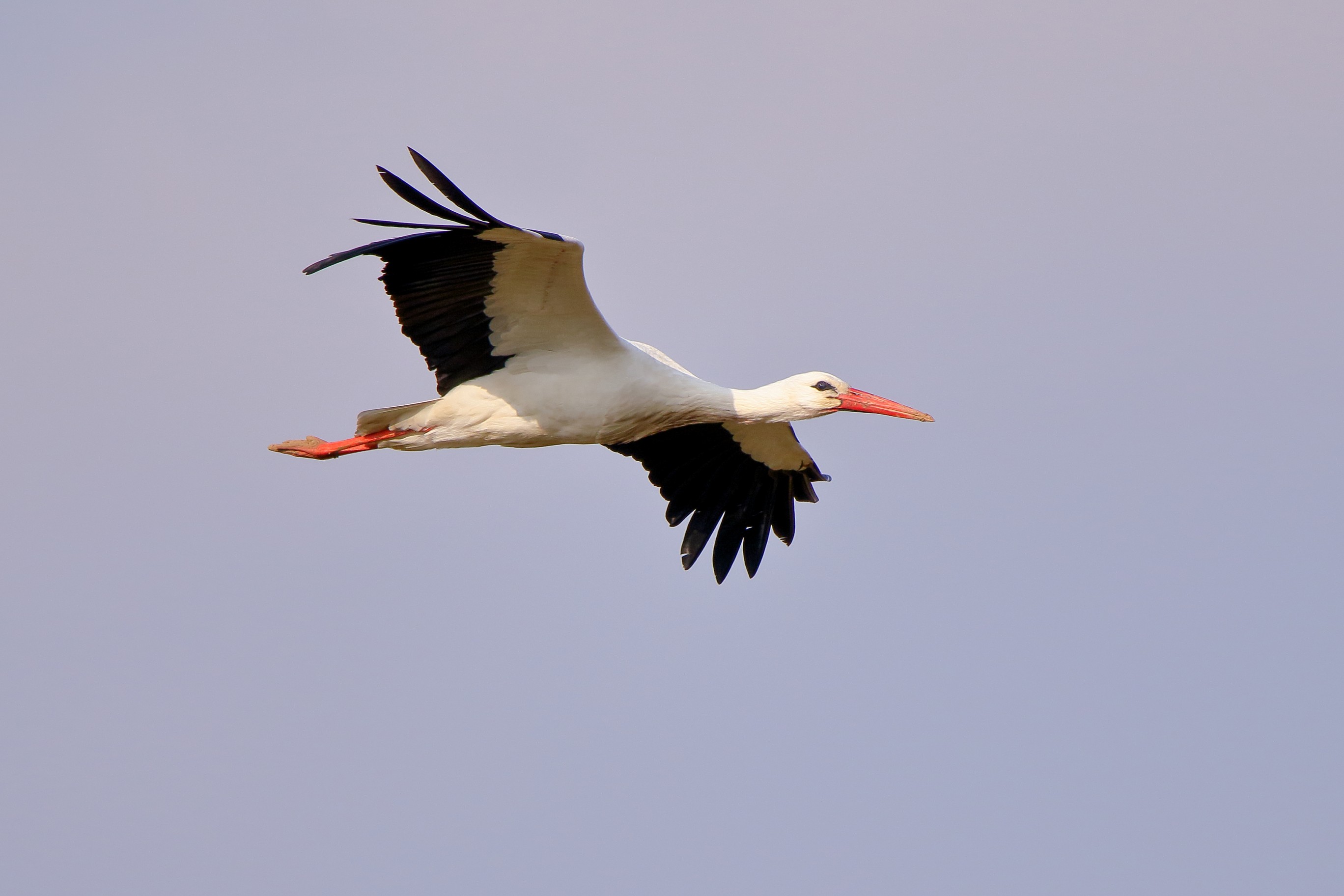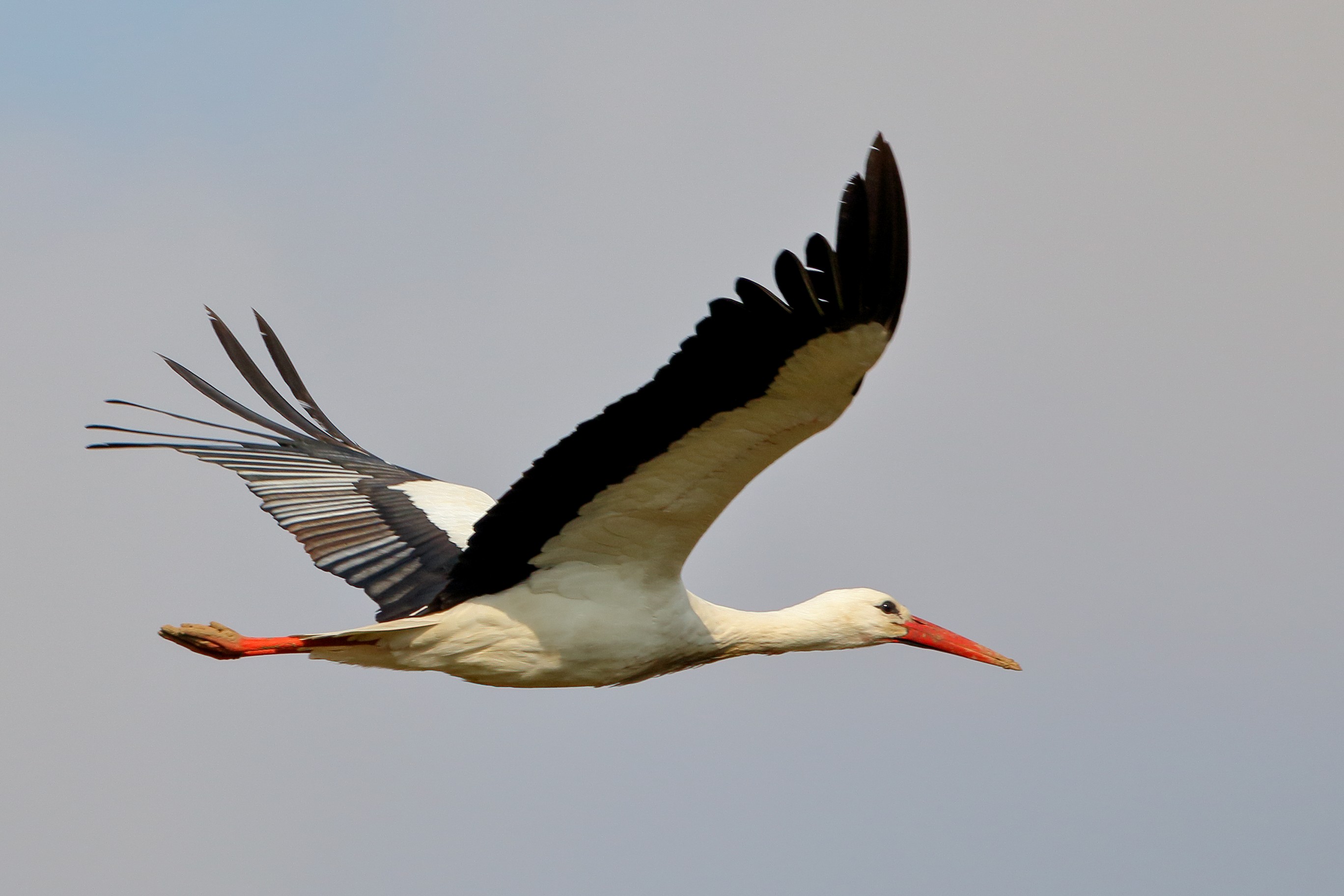 Storch im Transportflug