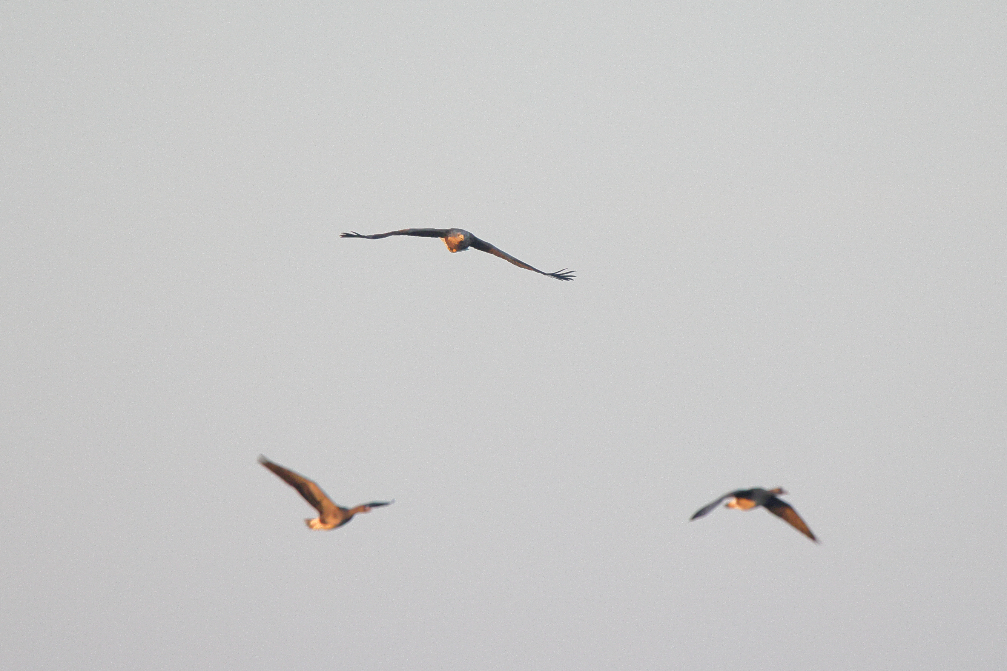 Rohrweihe und junger Rotmilan