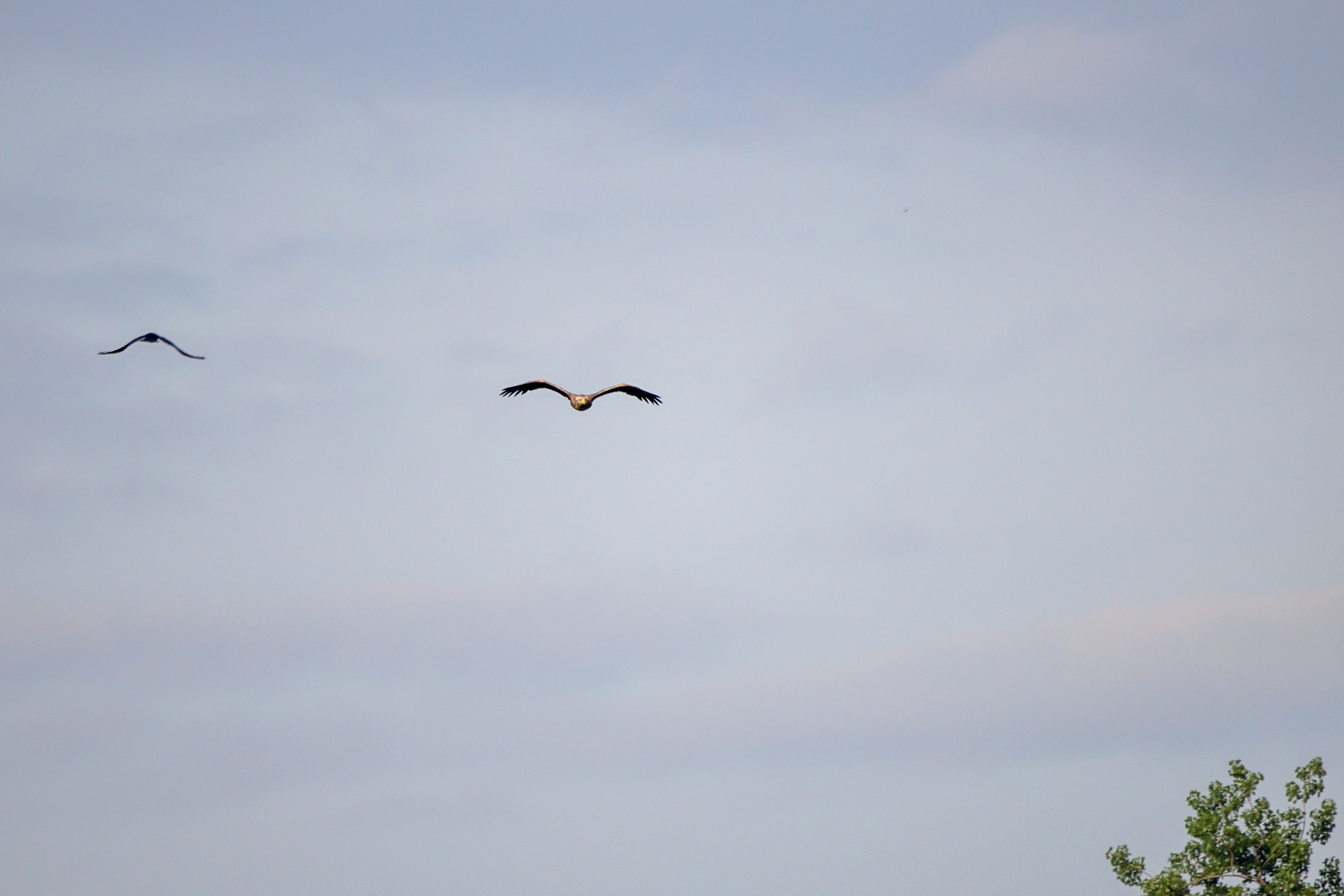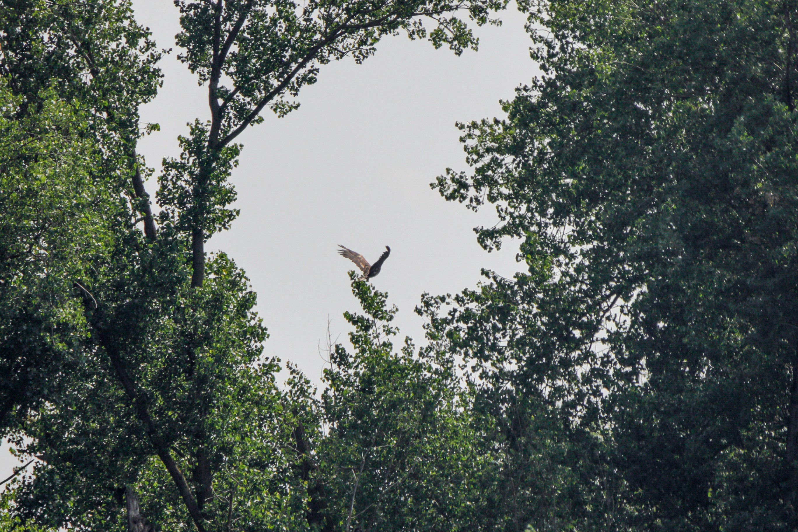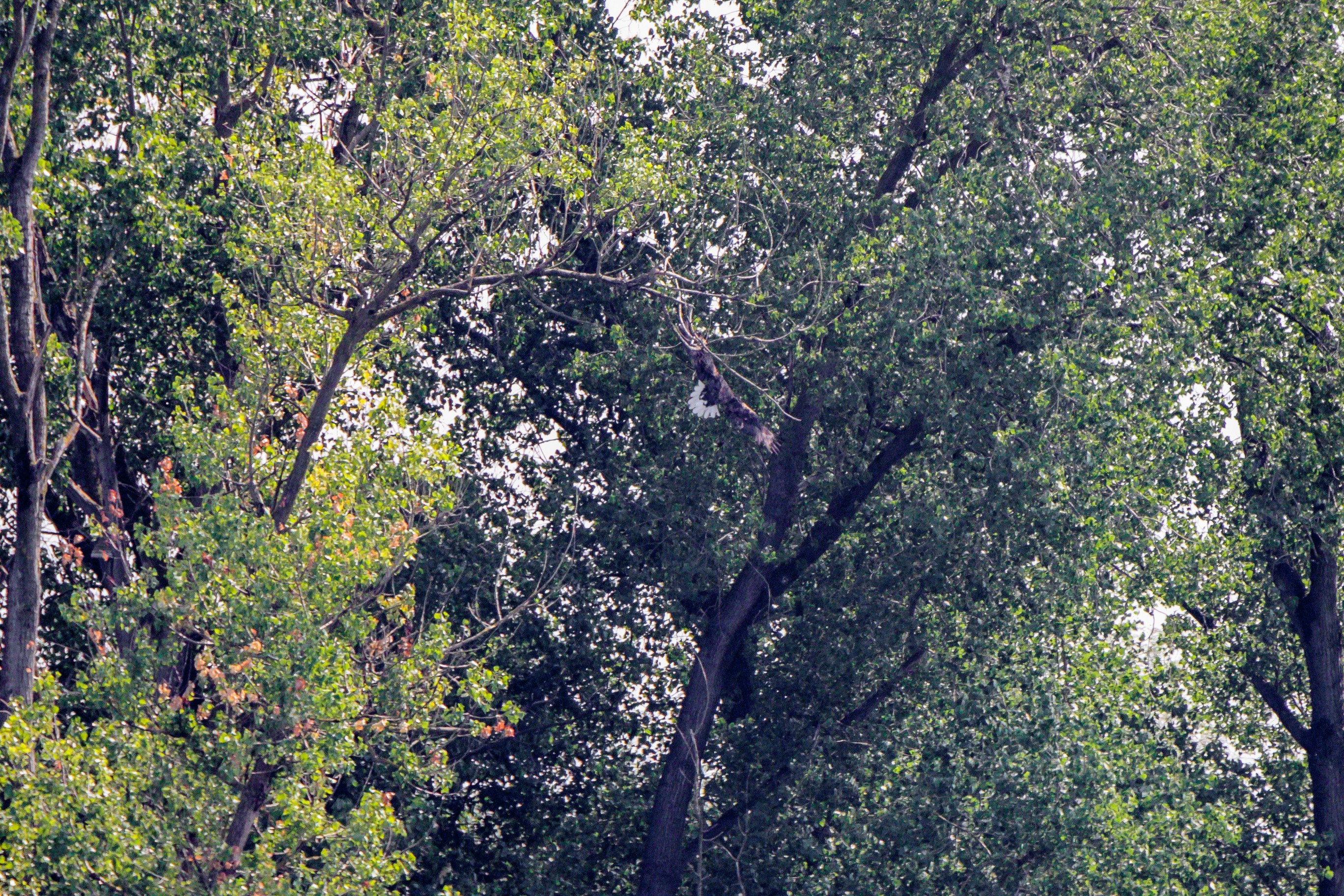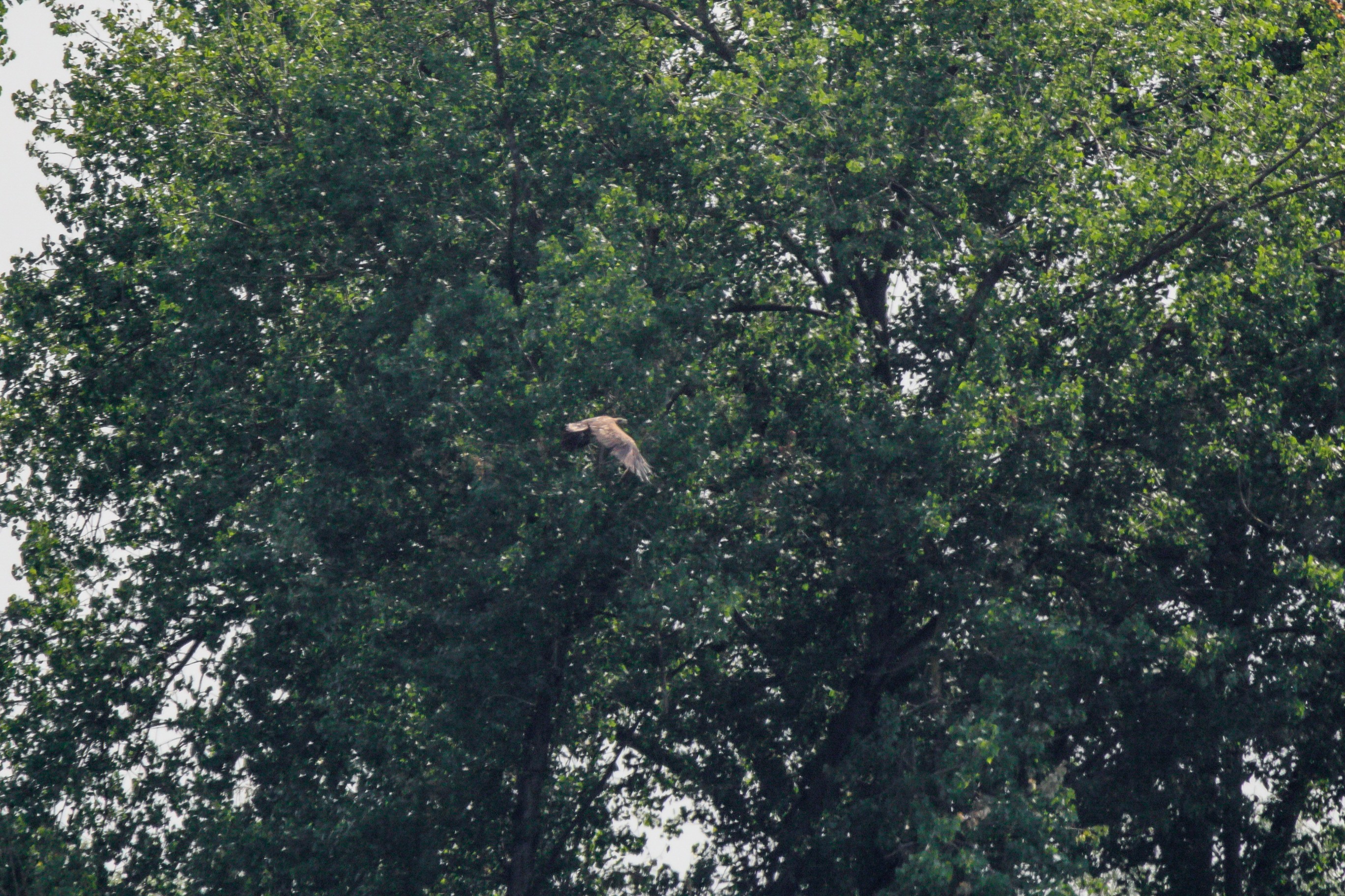 Das Seeadlerweib konnte die Versorgung des Nachwuches allein sicherstellen. Am 19. Juni zeigte sich der erste Jungseeadler in den Abendstunden, begleitet von der Seeadlermutter, mit einem kurzen Rundflug.