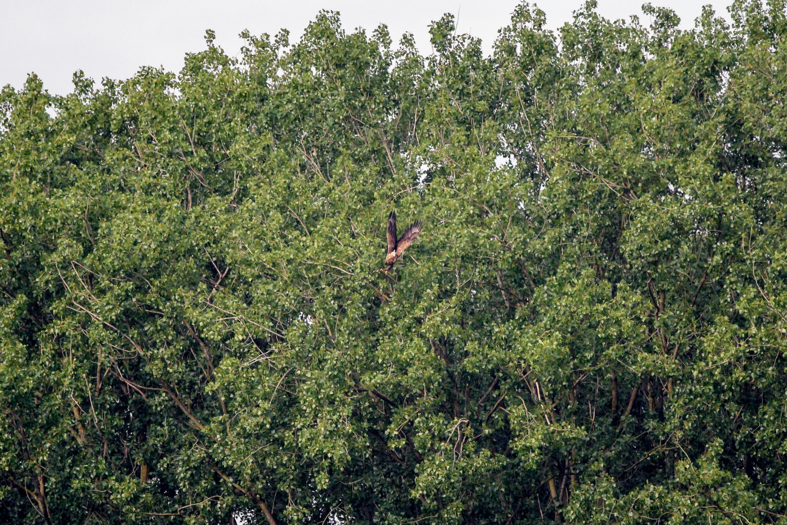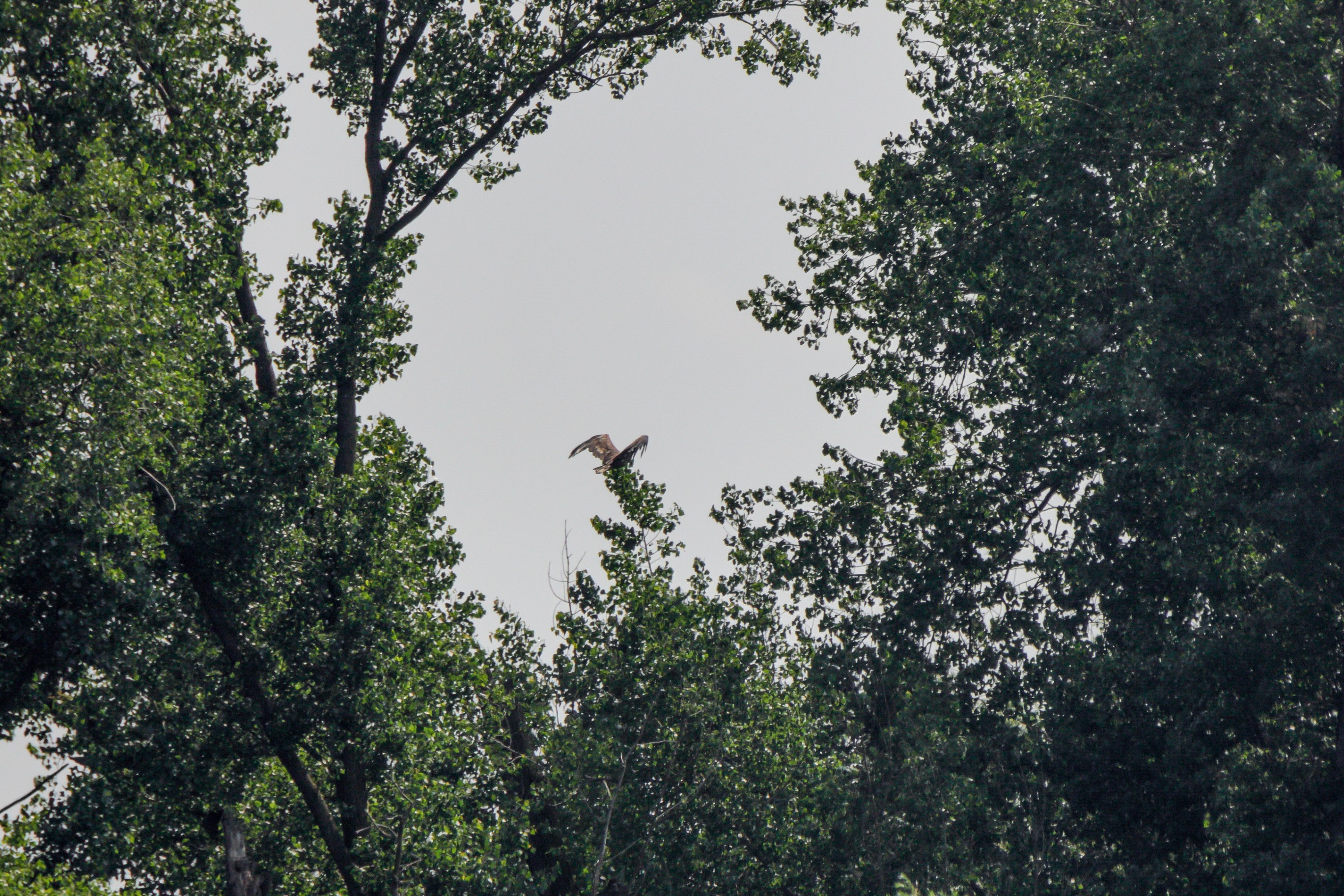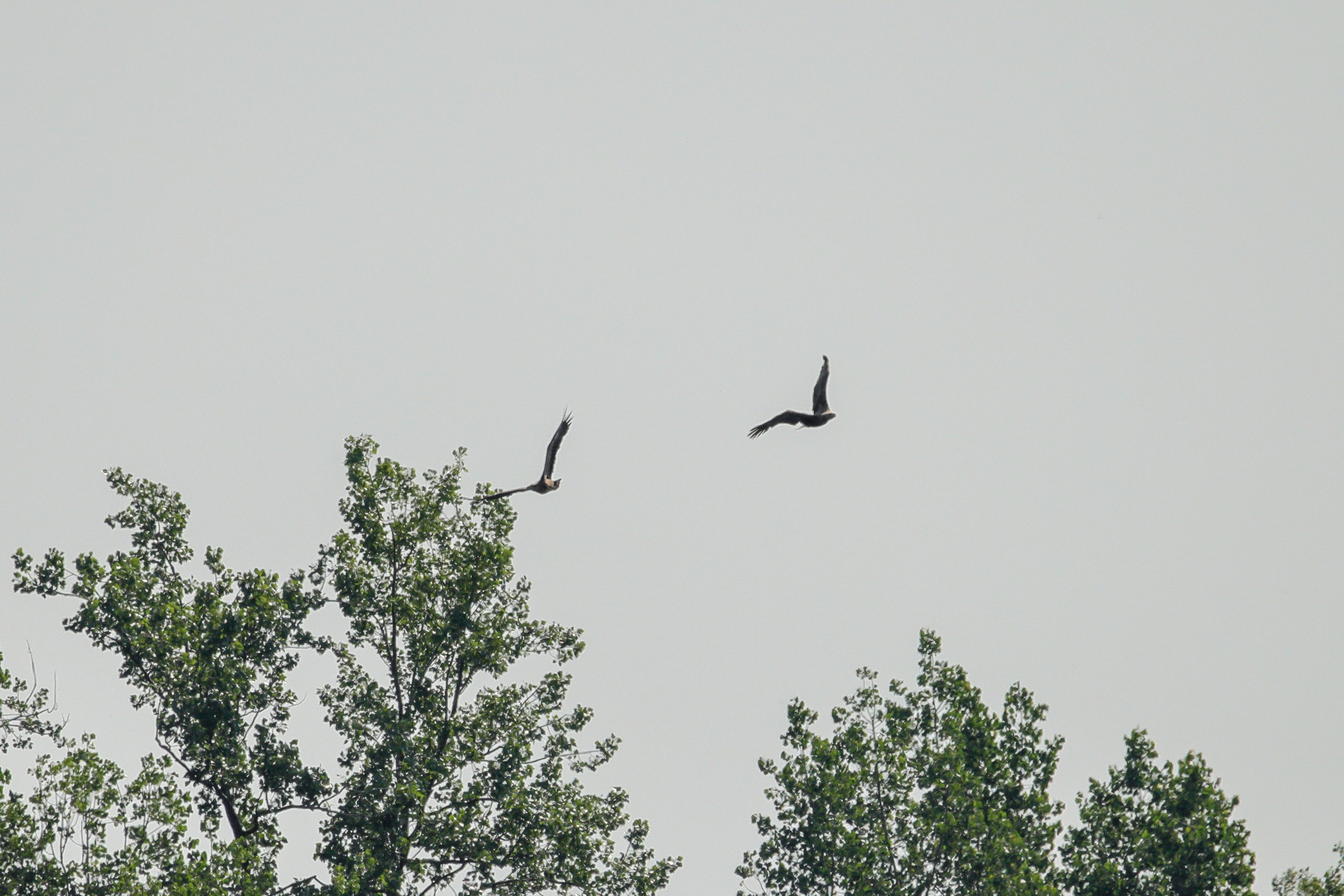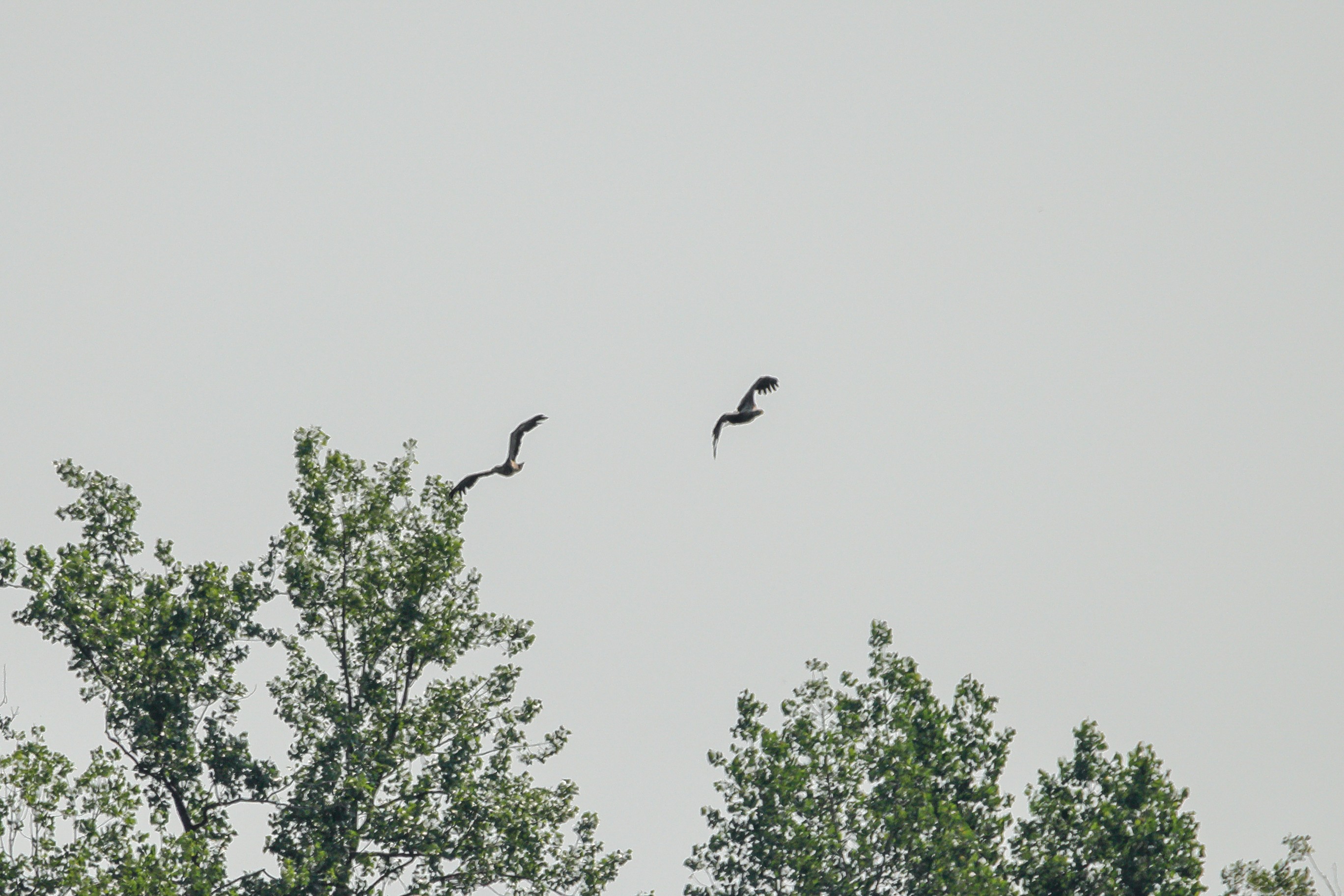 Das Seeadlerweib konnte die Versorgung des Nachwuches allein sicherstellen. Am 19. Juni zeigte sich der erste Jungseeadler in den Abendstunden, begleitet von der Seeadlermutter, mit einem kurzen Rundflug.