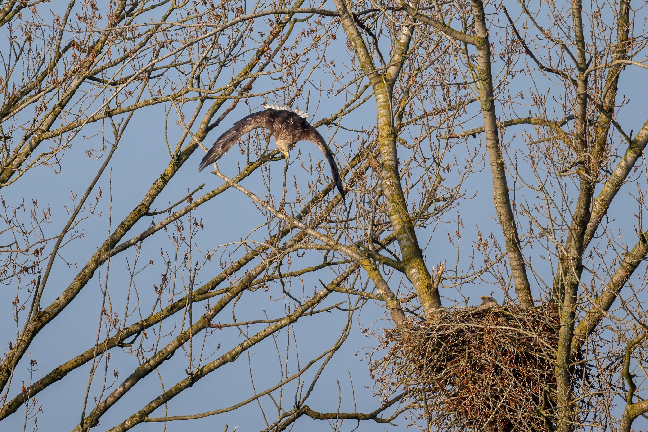 Weißer Bussard an der Beobachtungshütte II