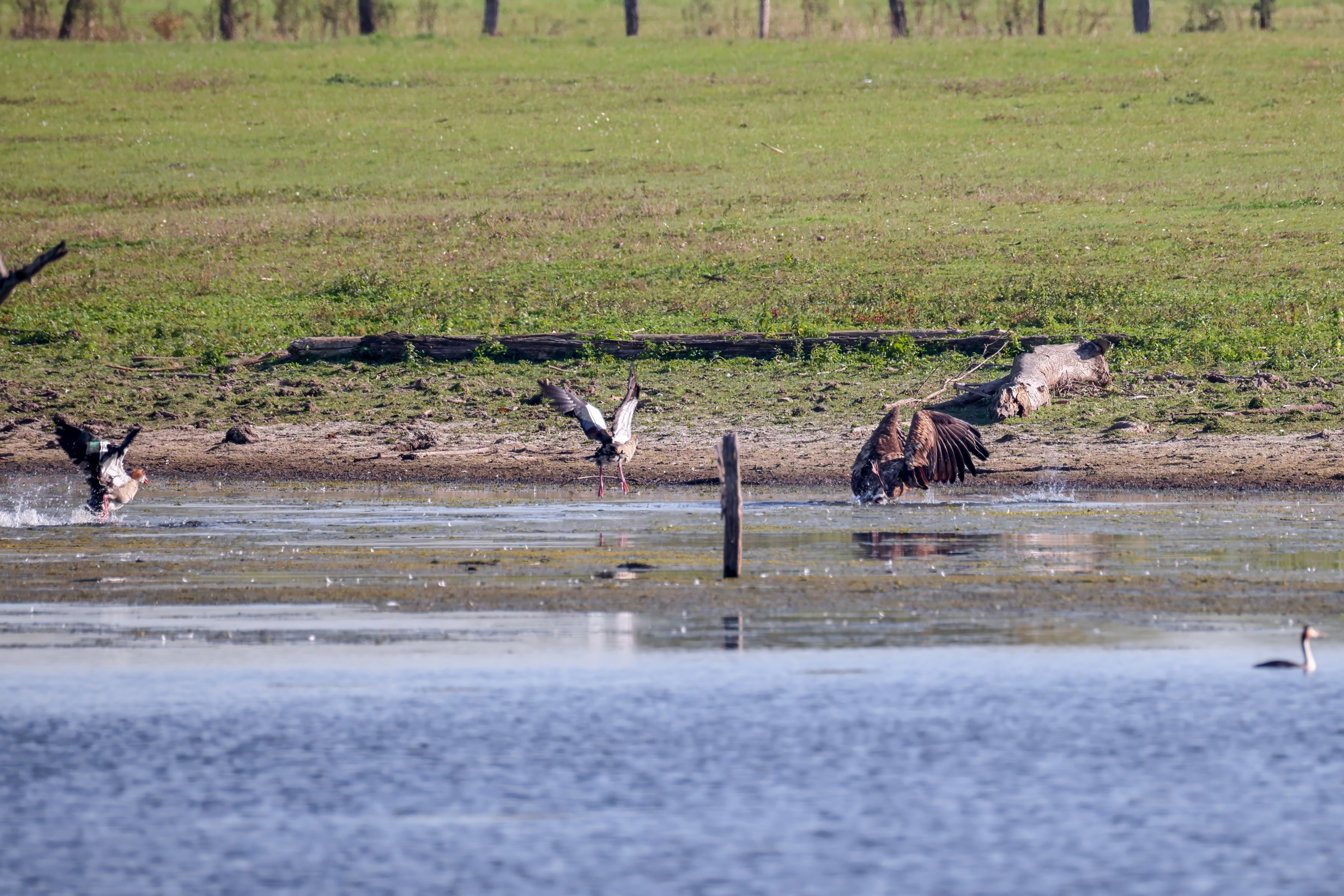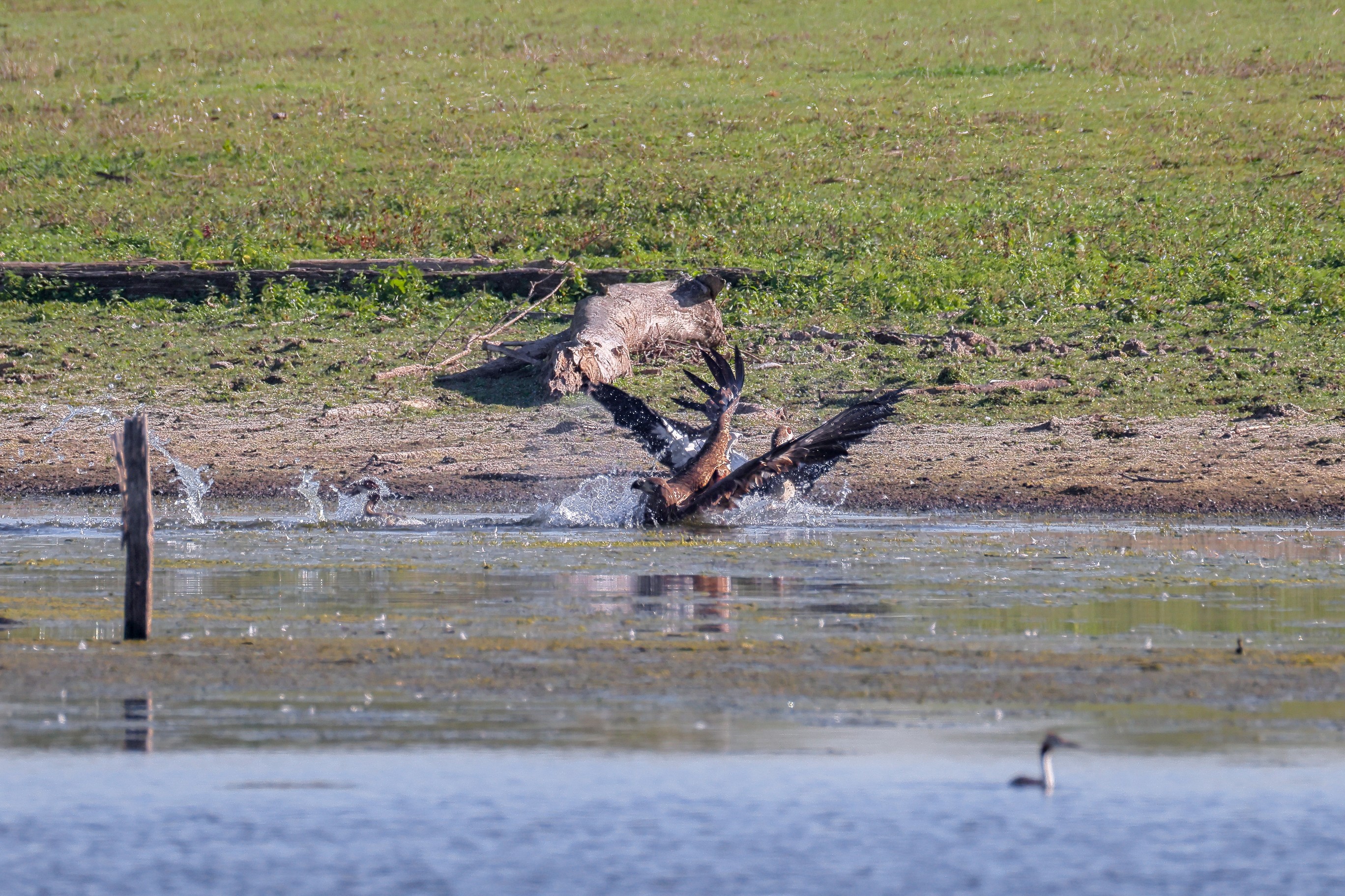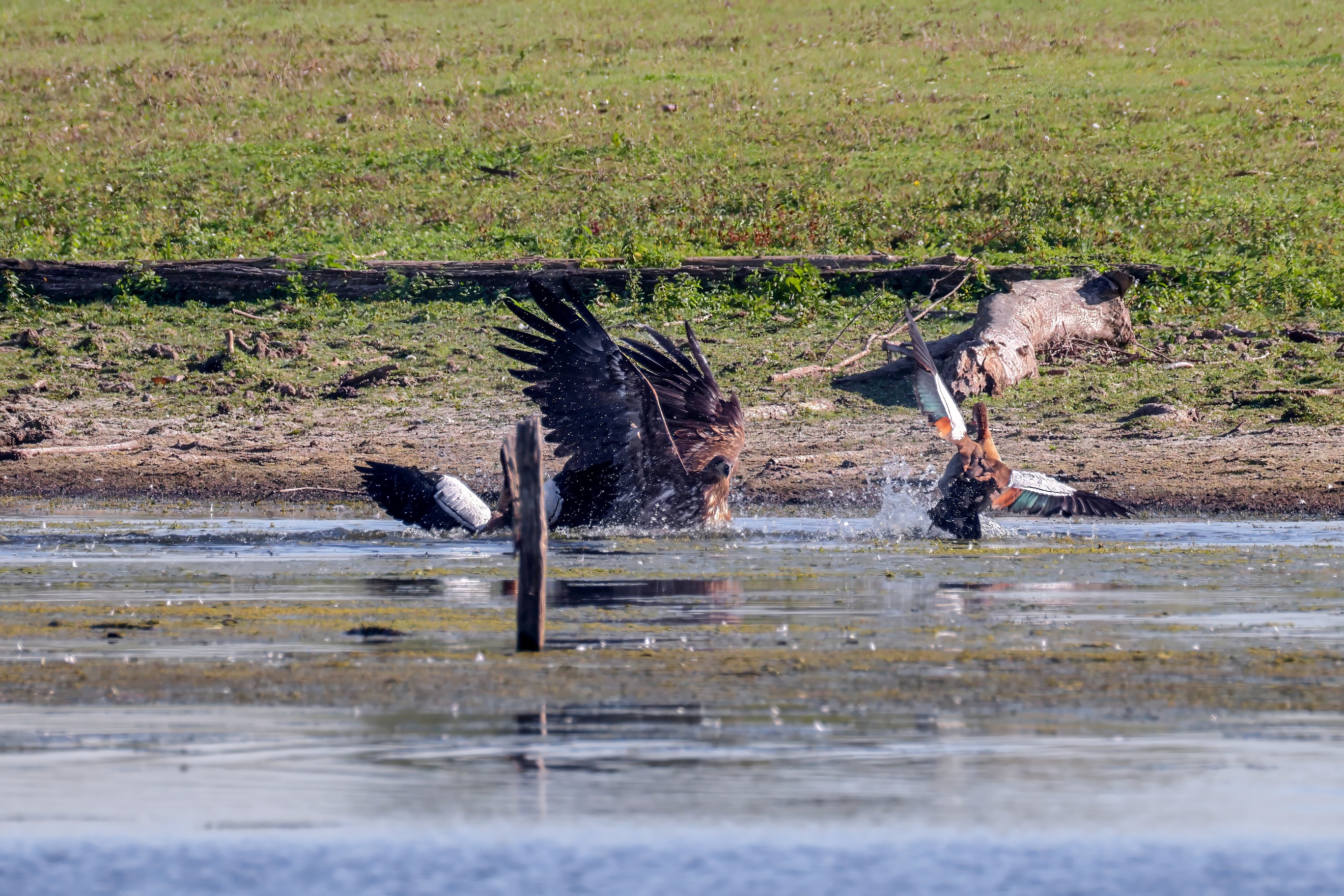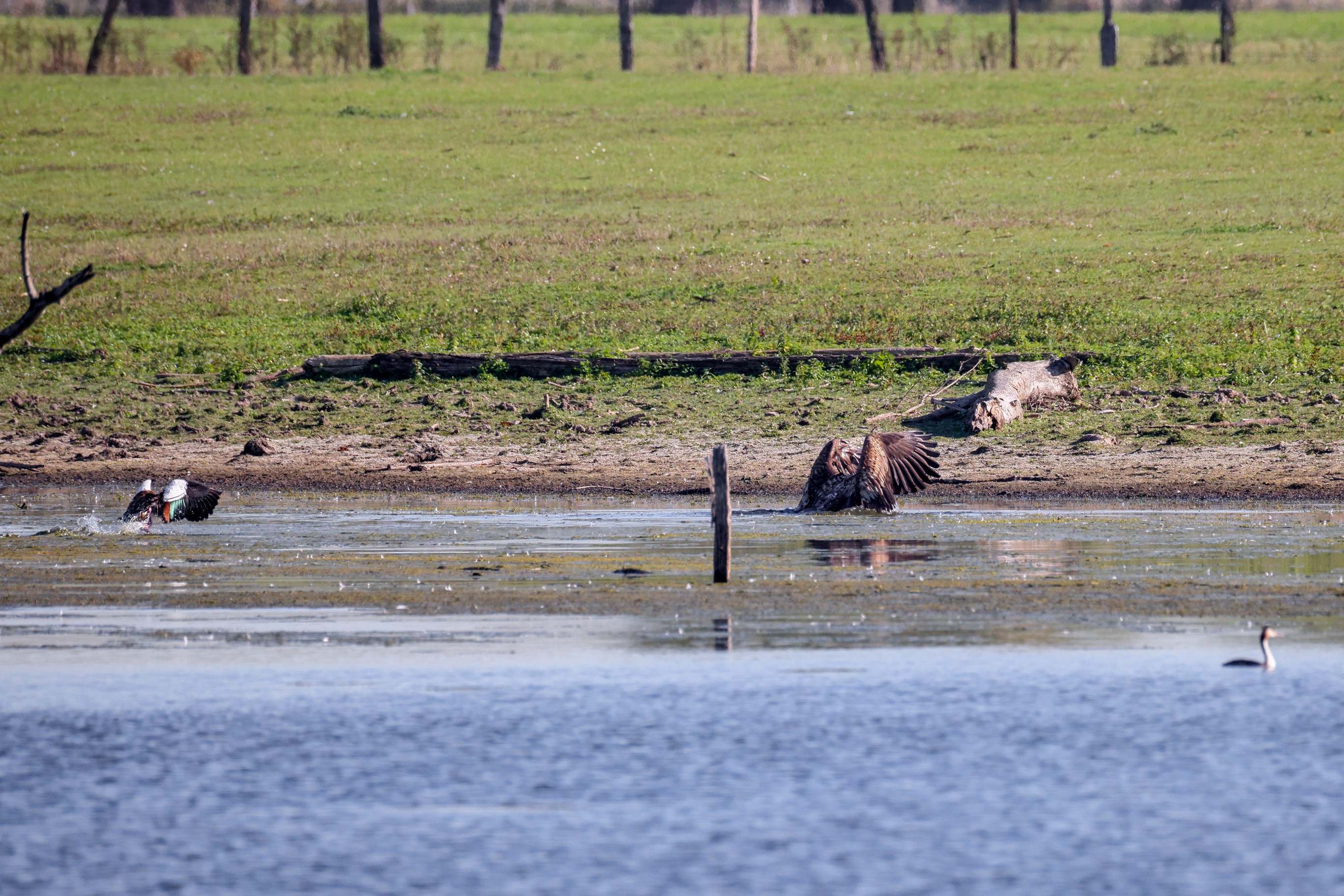 Ein besonders eindrucksvolles Erlebnis bot sich beim Versuch eine junge Nilgans zu erbeuten. Die entschlossene Abwehr der Nilganseltern überraschte den jungen Adler sichtlich und brachte ihm eine deutliche Lektion ein. Aus dieser Niederlage wird er lernen müssen künftig eine überlegtere Strategie zu wählen, wenn er sich an wehrhaft umsorgte Beute heranwagt.