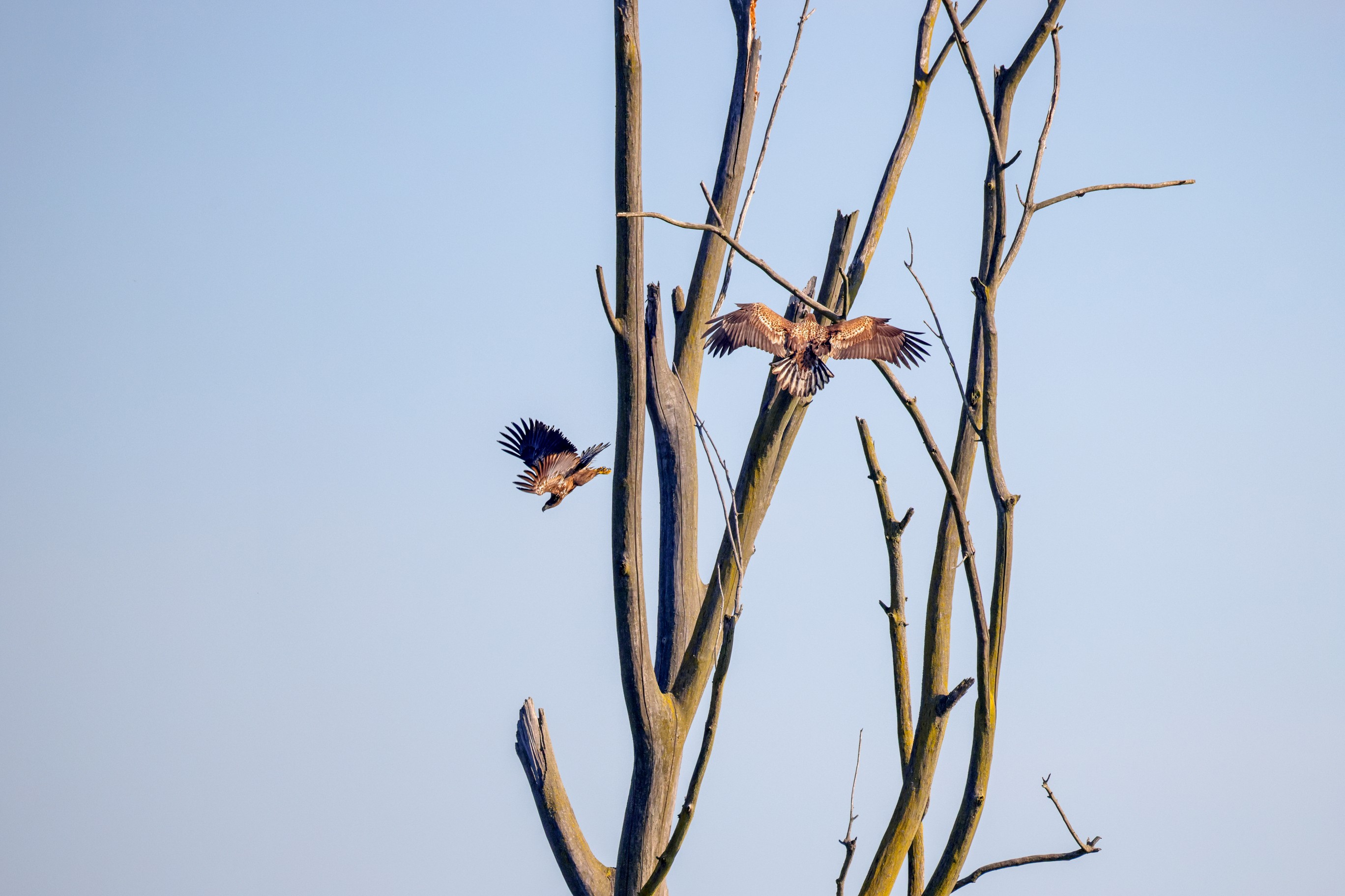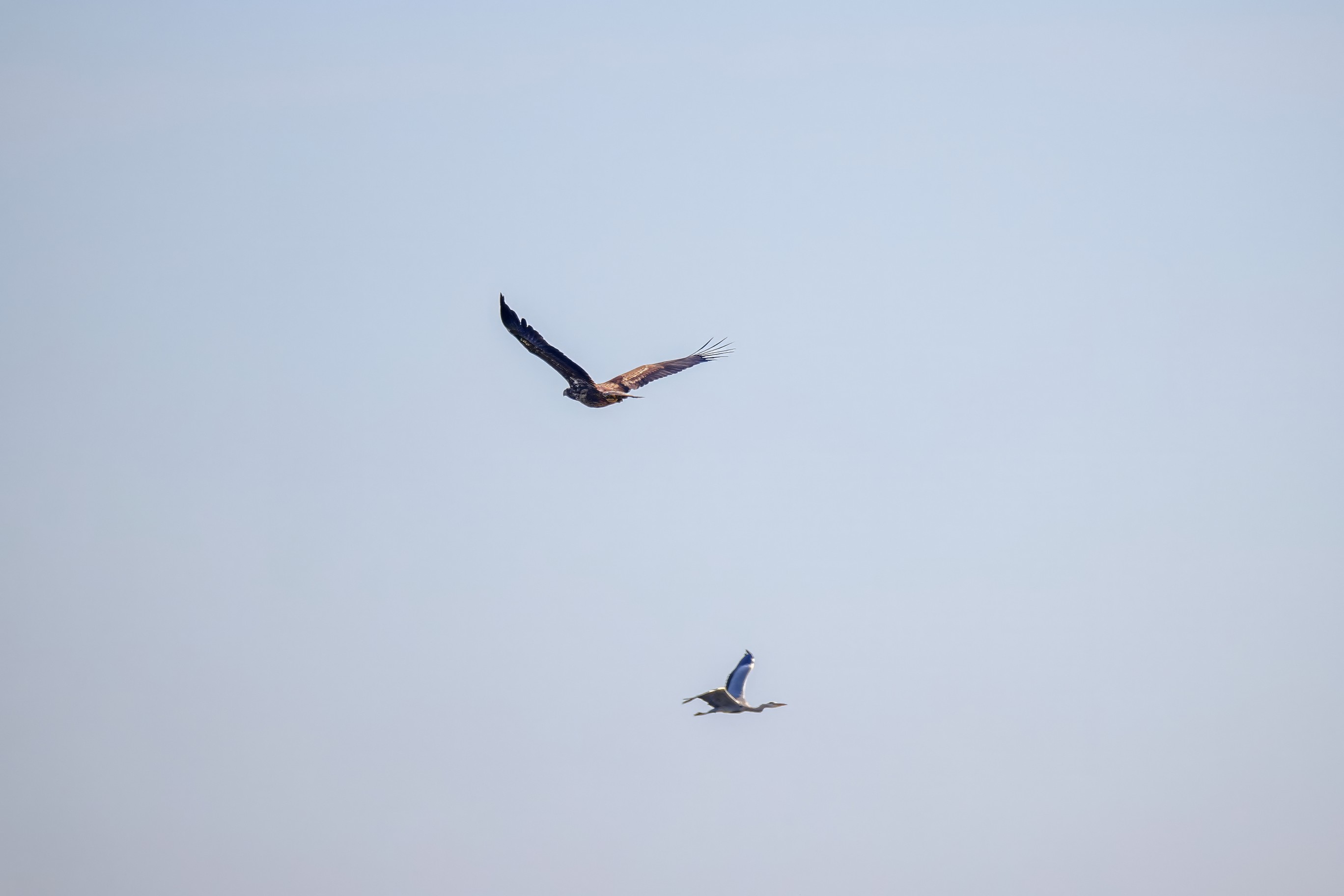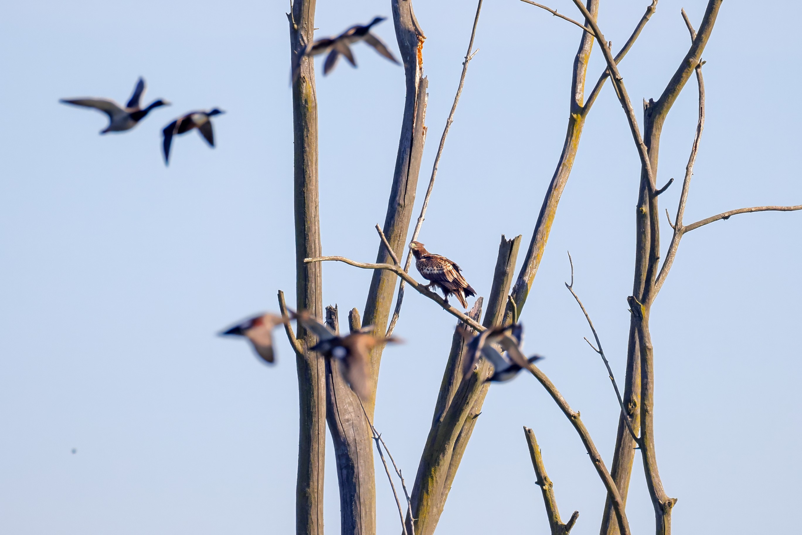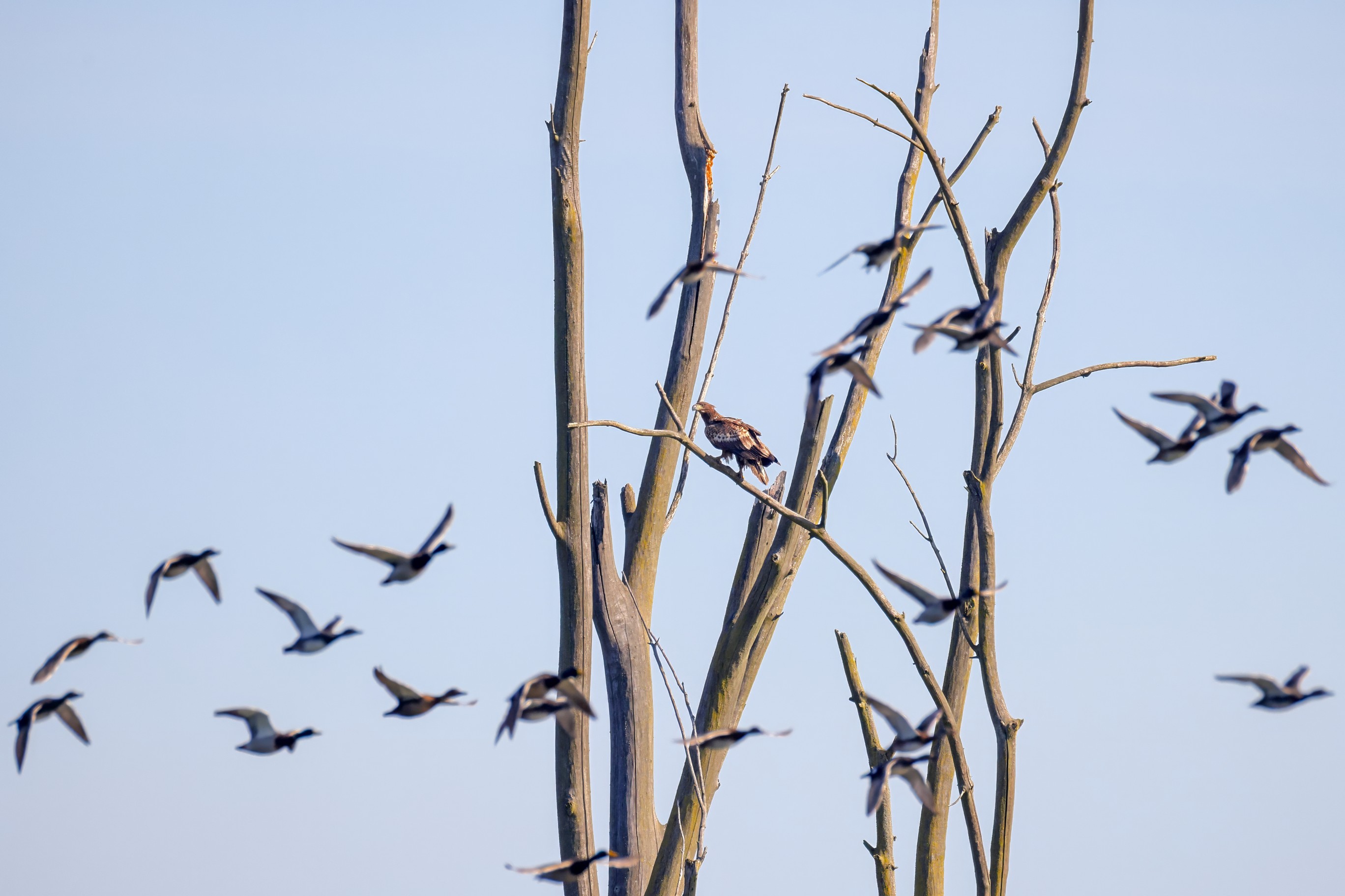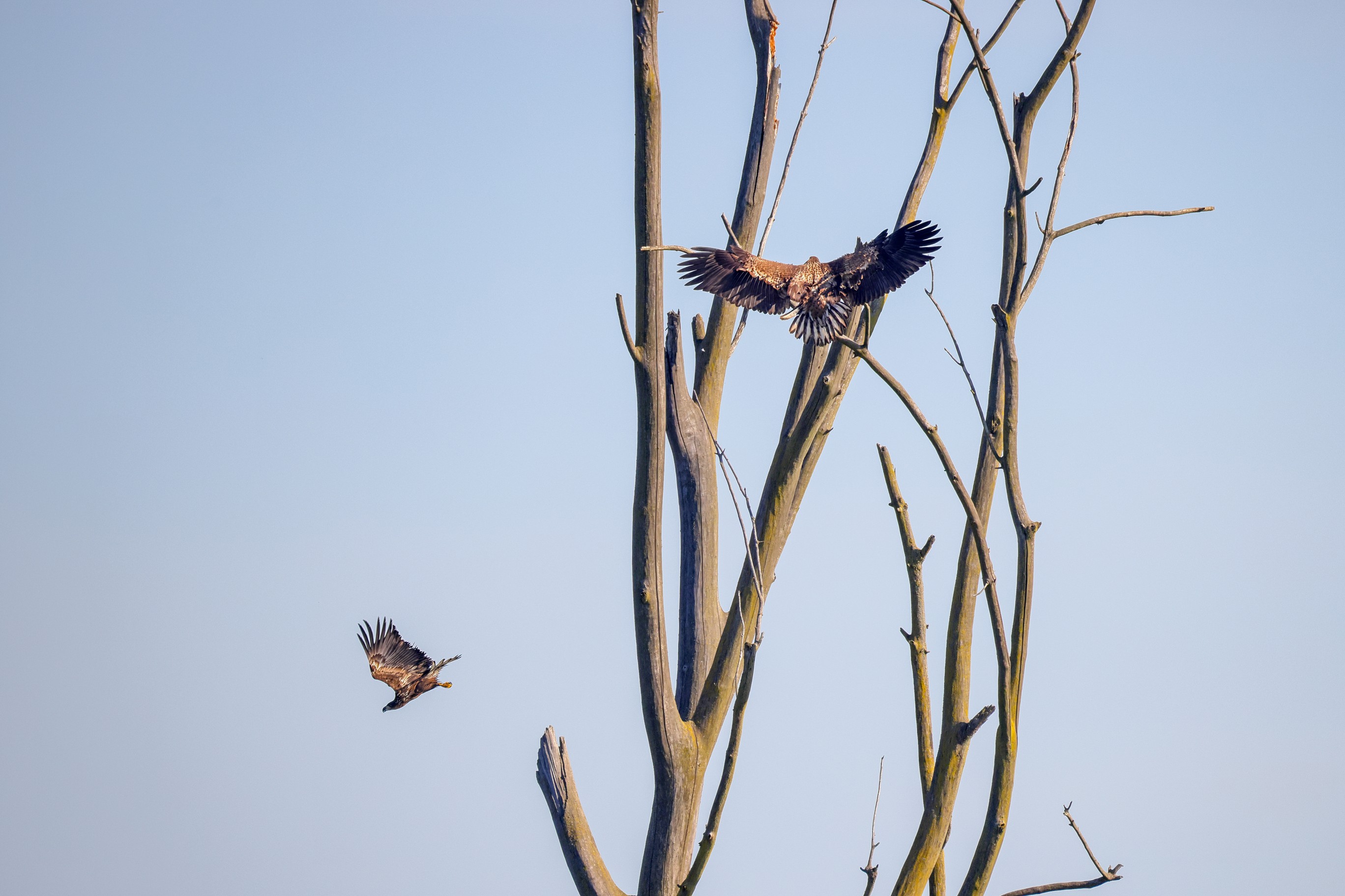 Ein besonders eindrucksvolles Erlebnis bot sich beim Versuch eine junge Nilgans zu erbeuten. Die entschlossene Abwehr der Nilganseltern überraschte den jungen Adler sichtlich und brachte ihm eine deutliche Lektion ein. Aus dieser Niederlage wird er lernen müssen künftig eine überlegtere Strategie zu wählen, wenn er sich an wehrhaft umsorgte Beute heranwagt.