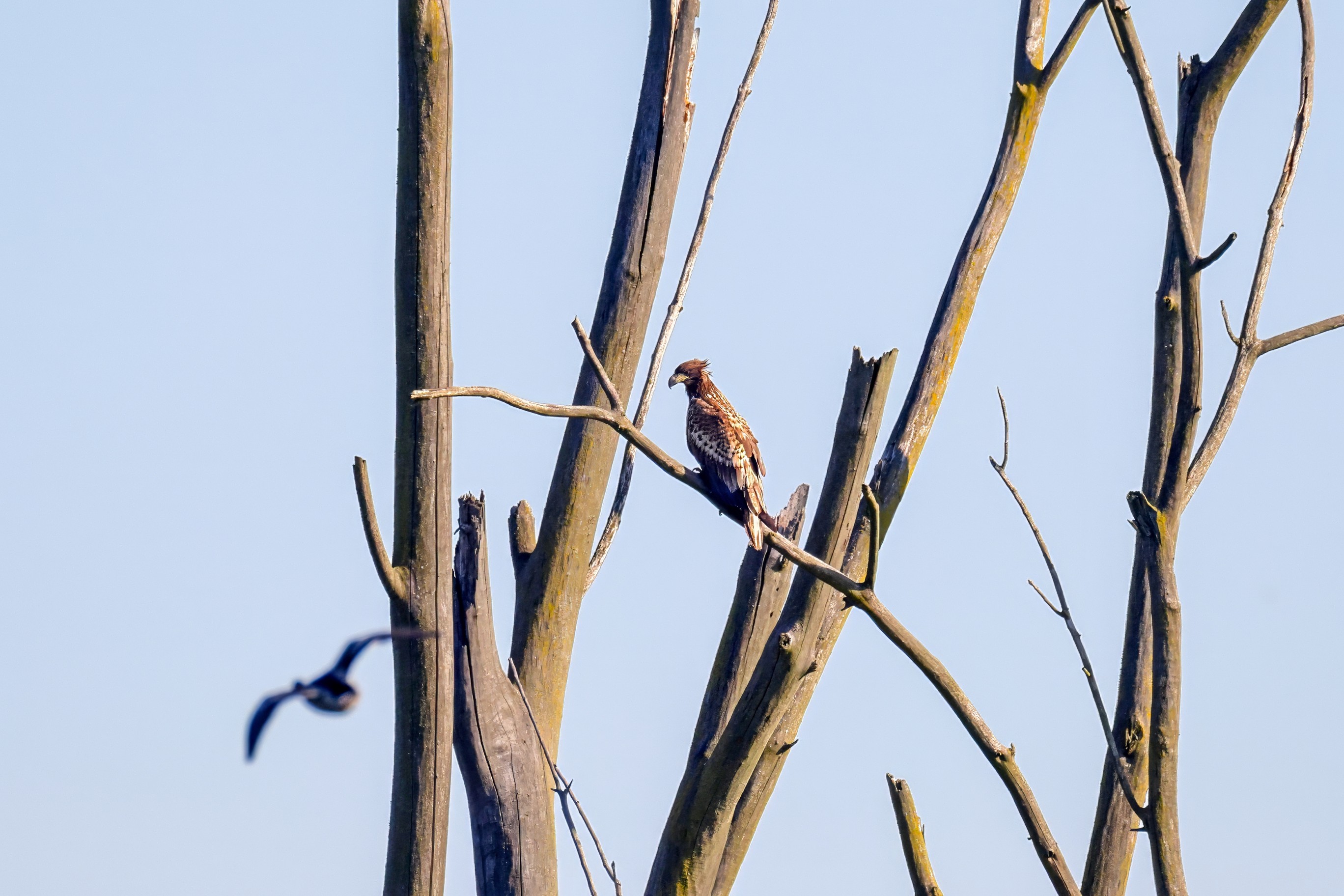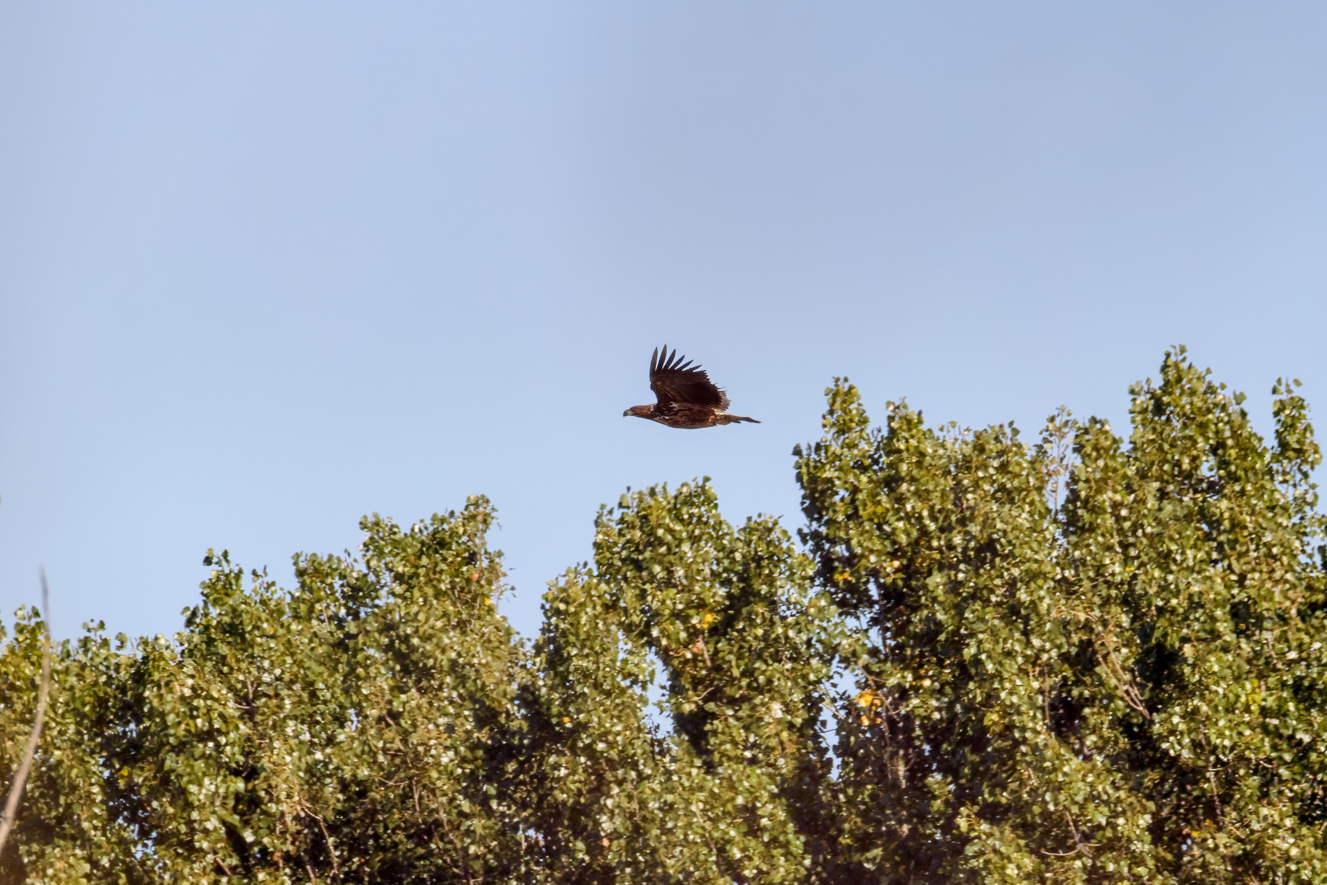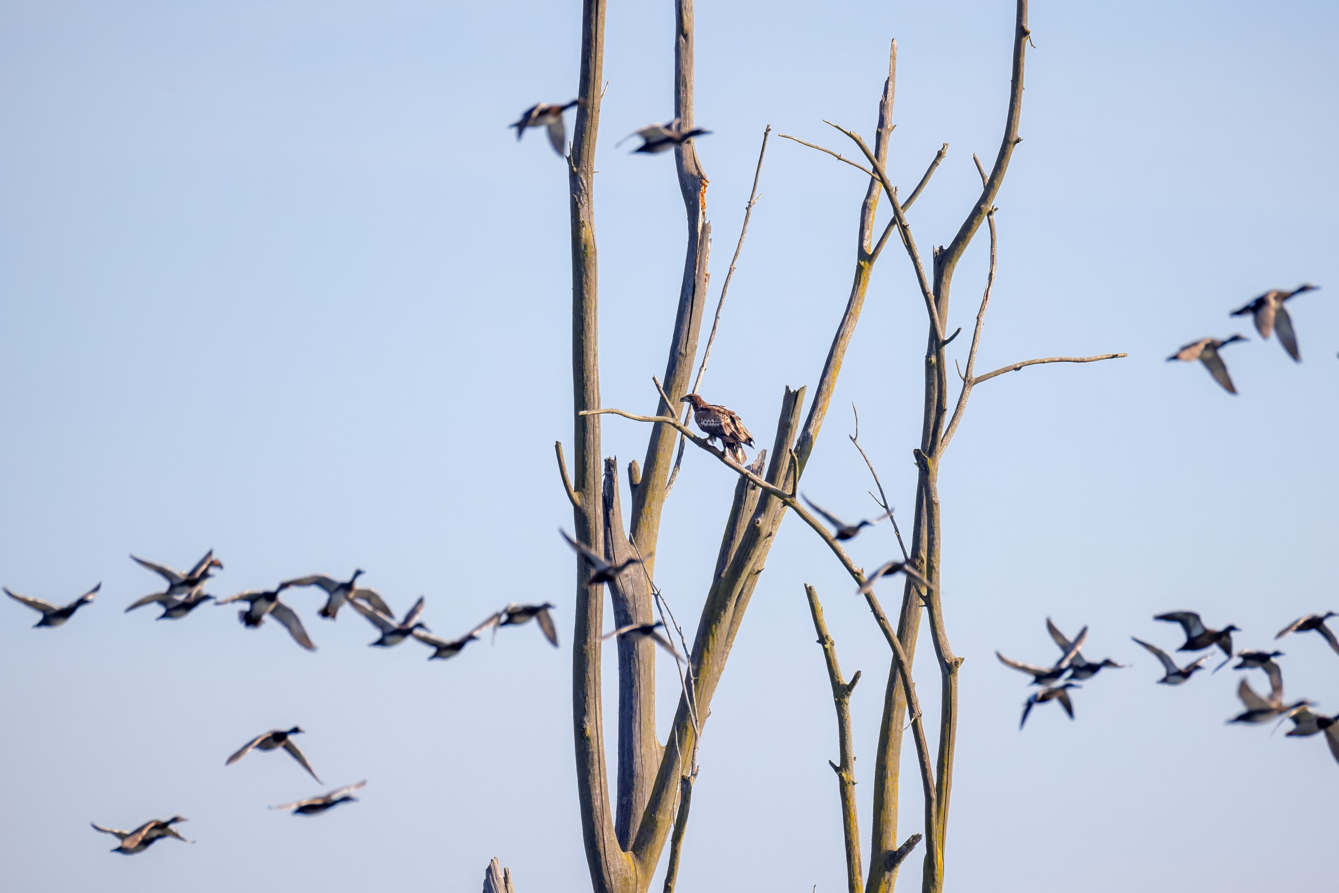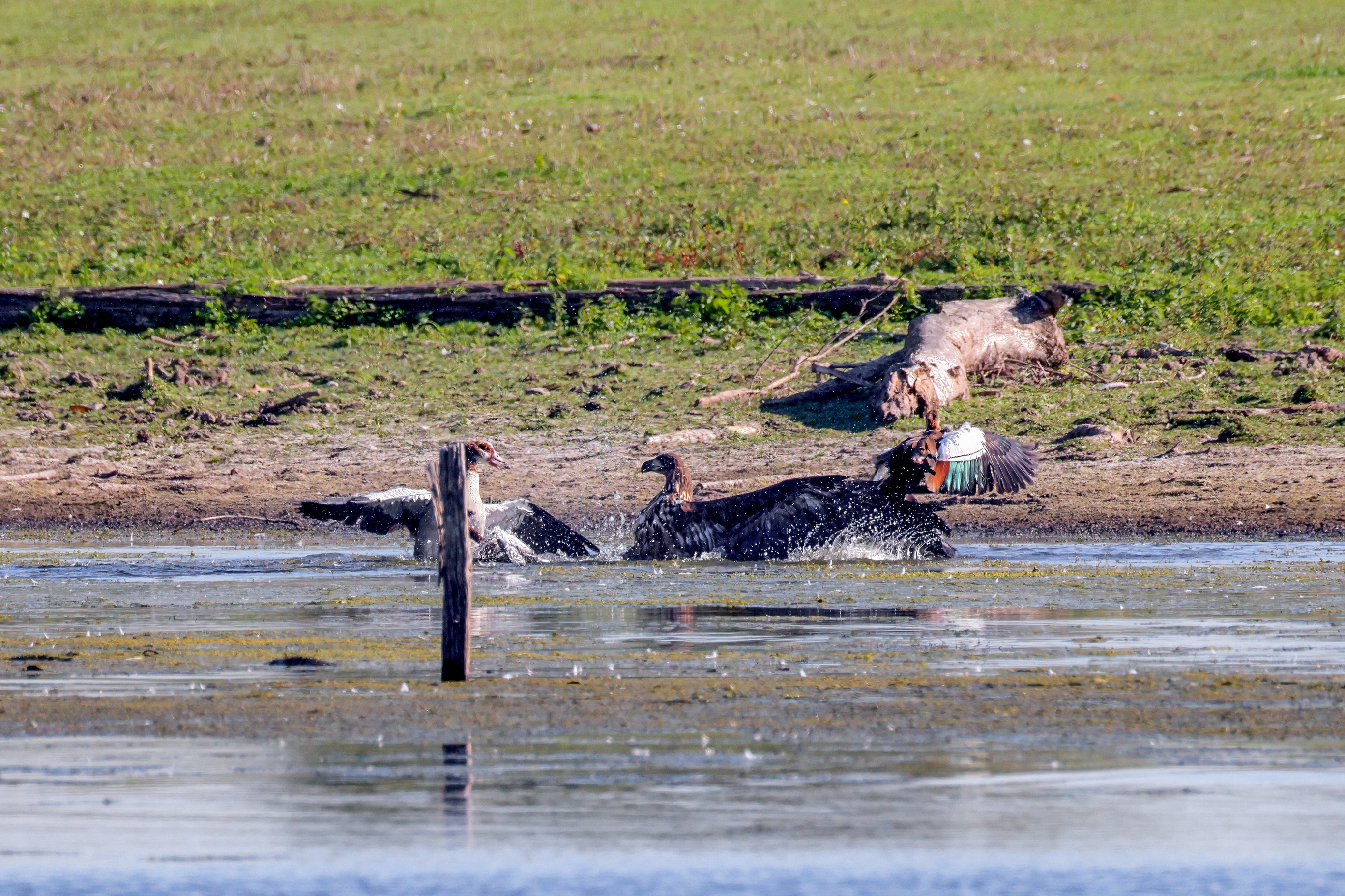 Ein besonders eindrucksvolles Erlebnis bot sich beim Versuch eine junge Nilgans zu erbeuten. Die entschlossene Abwehr der Nilganseltern überraschte den jungen Adler sichtlich und brachte ihm eine deutliche Lektion ein. Aus dieser Niederlage wird er lernen müssen künftig eine überlegtere Strategie zu wählen, wenn er sich an wehrhaft umsorgte Beute heranwagt.