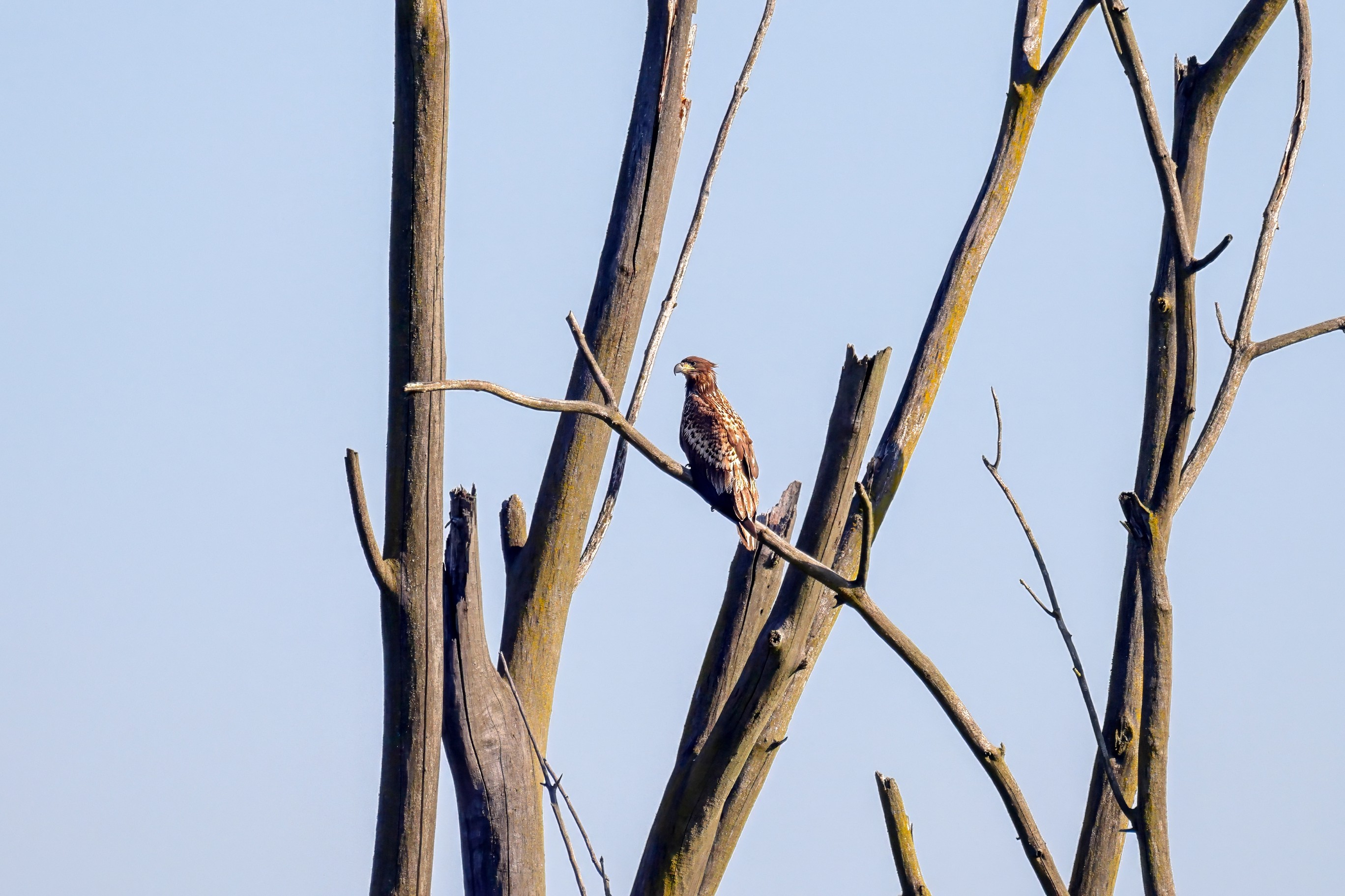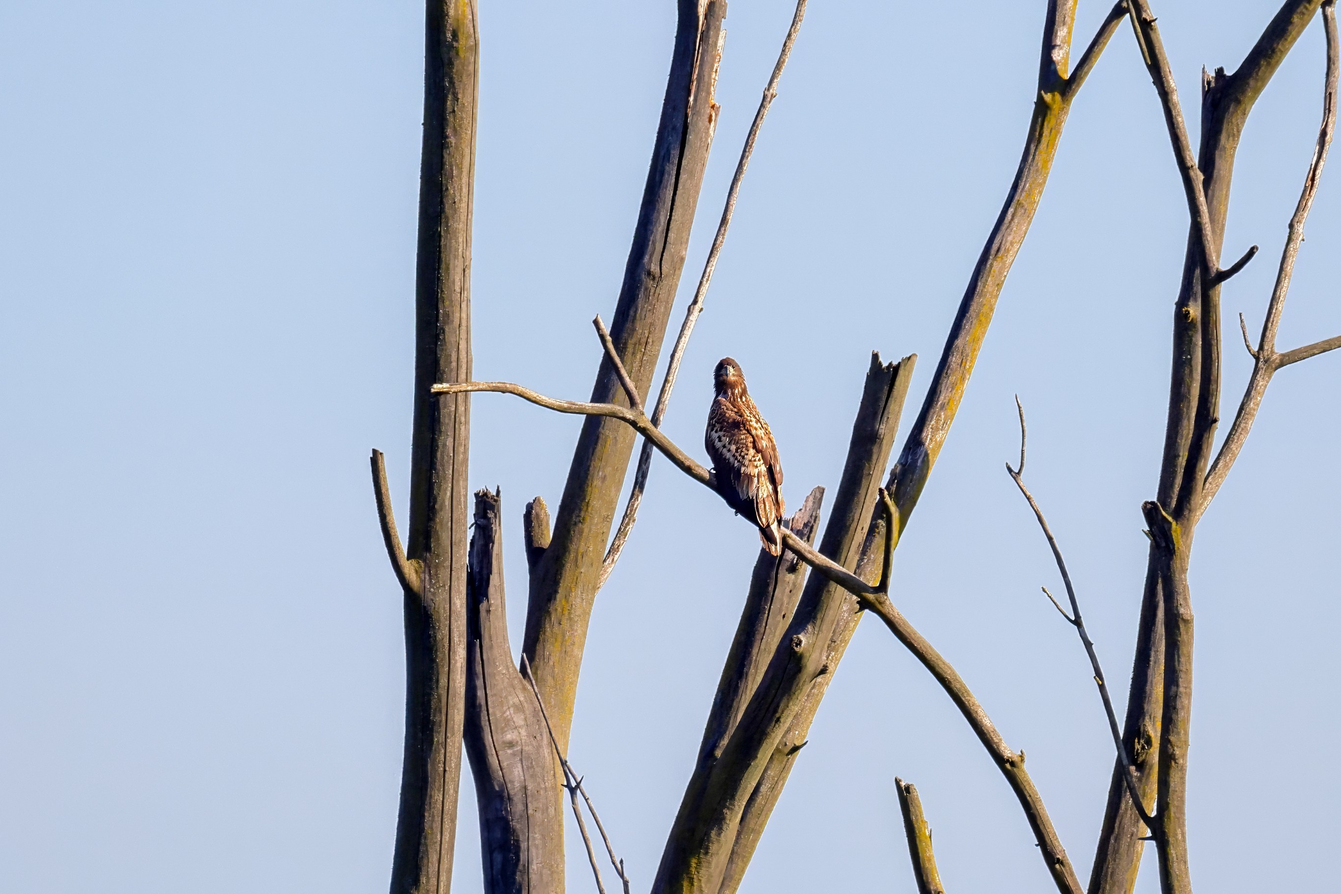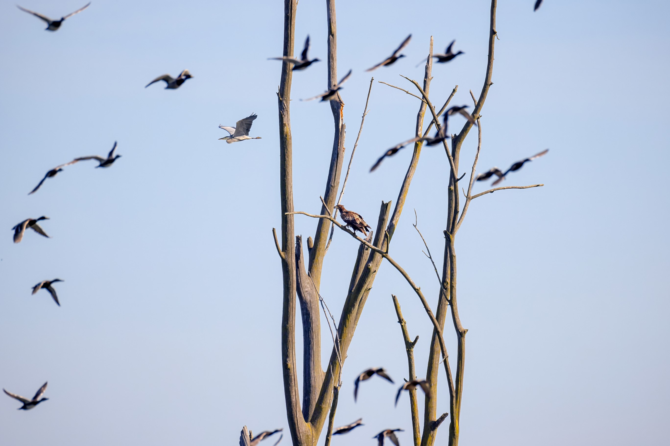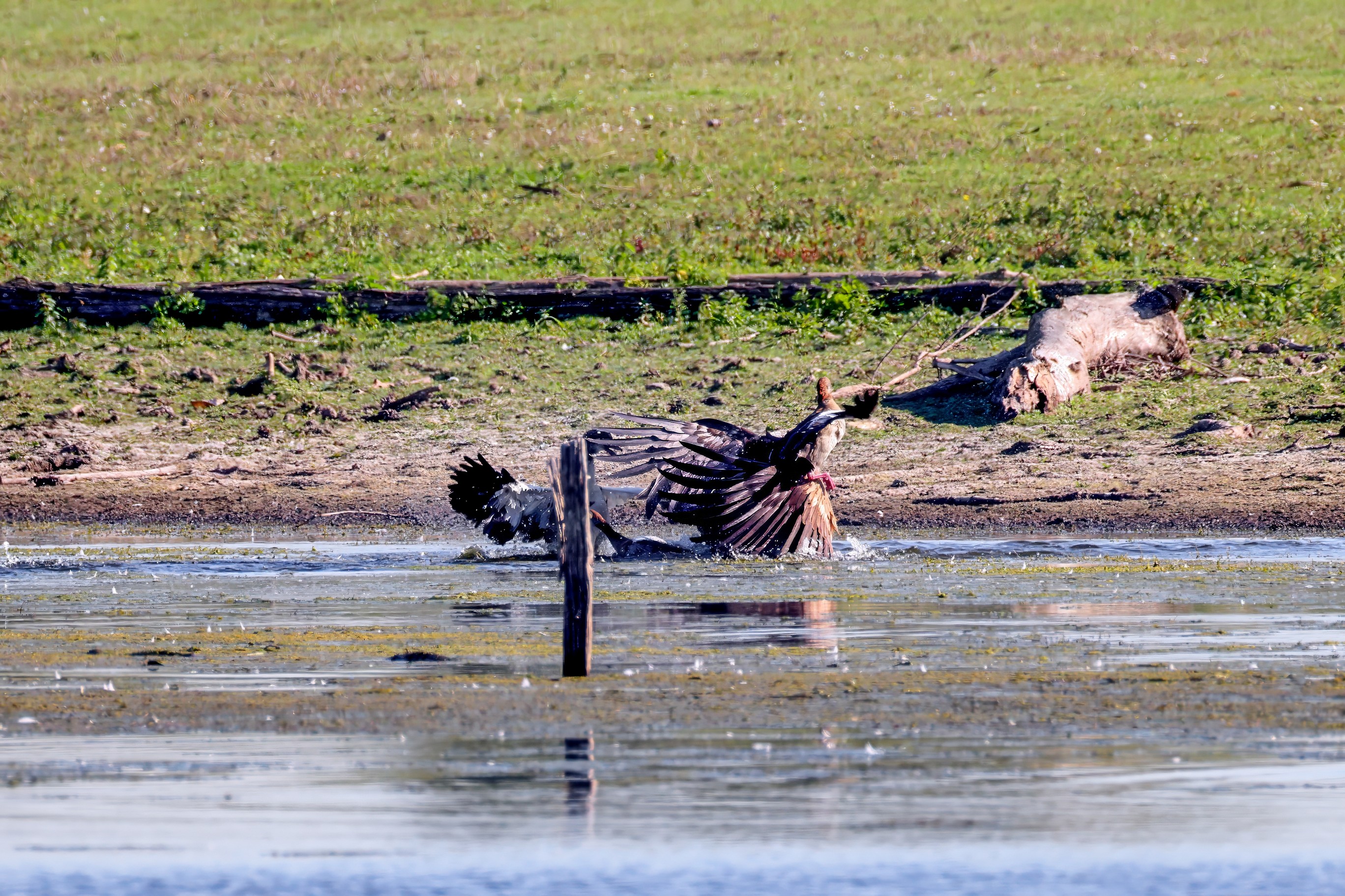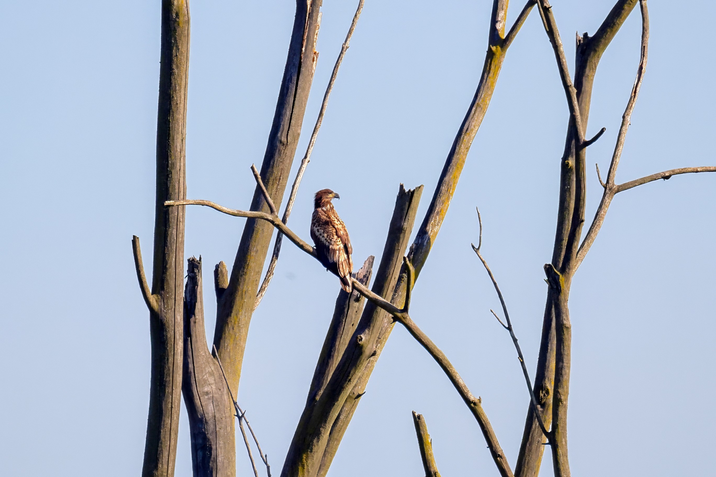 Ein besonders eindrucksvolles Erlebnis bot sich beim Versuch eine junge Nilgans zu erbeuten. Die entschlossene Abwehr der Nilganseltern überraschte den jungen Adler sichtlich und brachte ihm eine deutliche Lektion ein. Aus dieser Niederlage wird er lernen müssen künftig eine überlegtere Strategie zu wählen, wenn er sich an wehrhaft umsorgte Beute heranwagt.