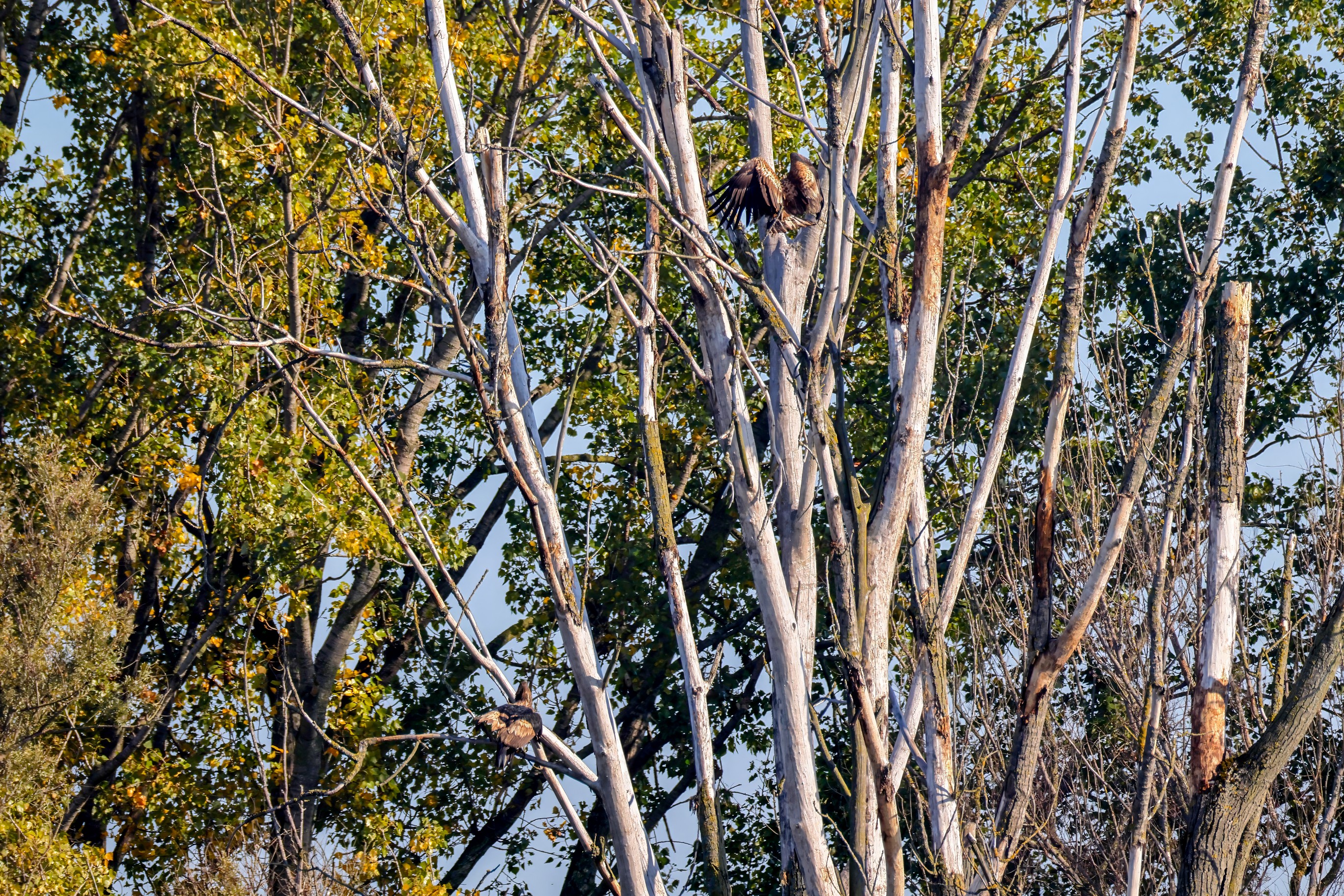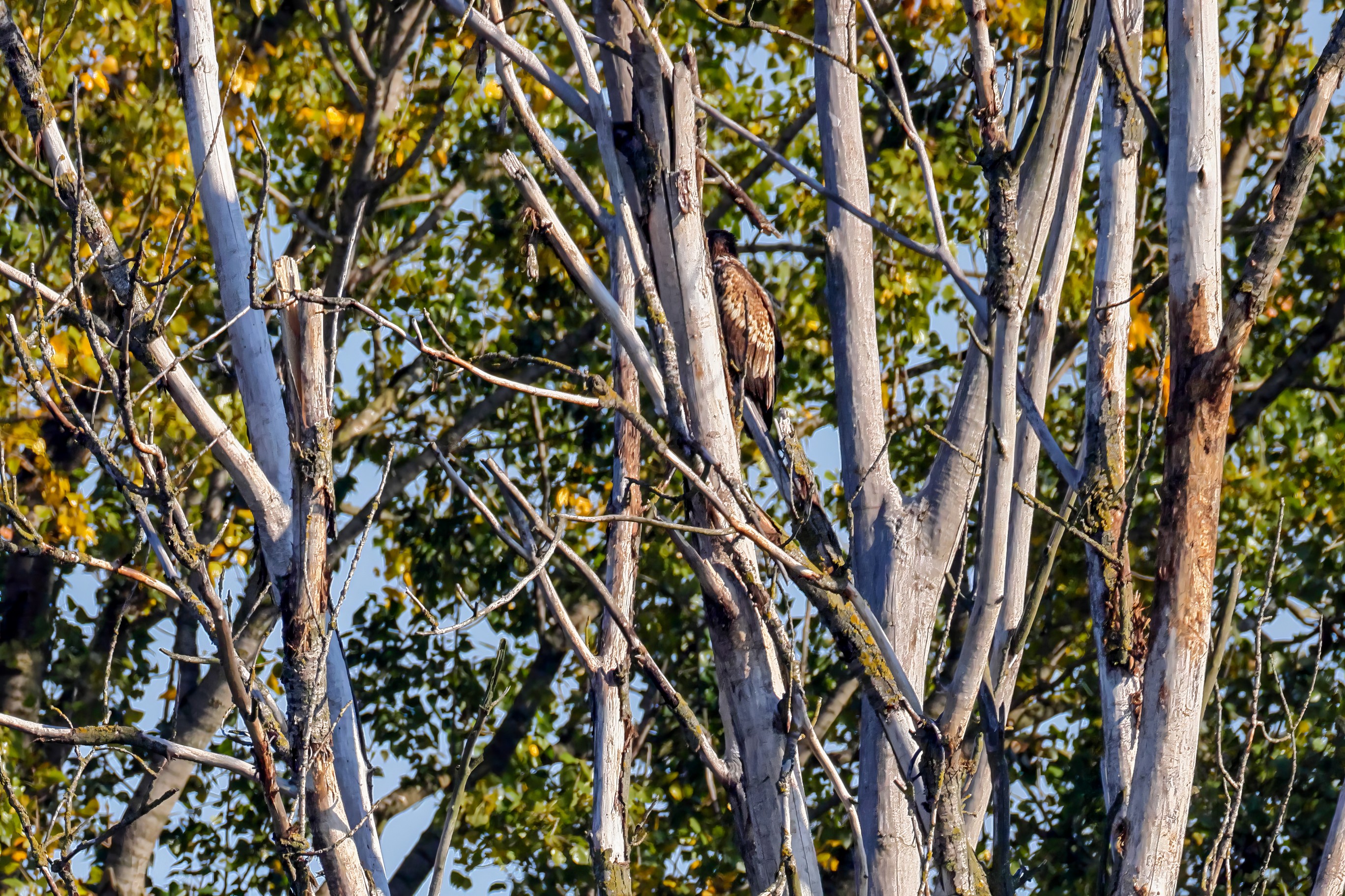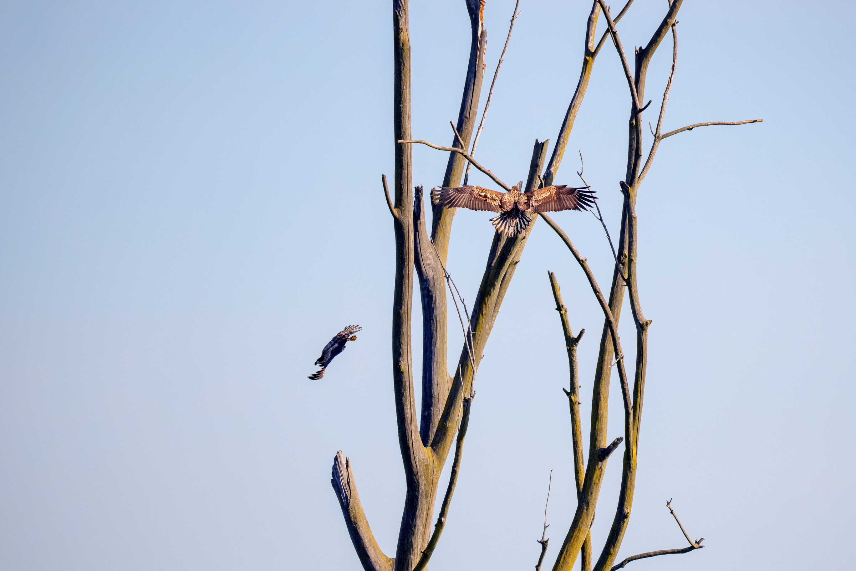 Die jungen Seeadler haben sich prächtig entwickelt. Mit wachsendem Selbstvertrauen kümmern sie sich nun zunehmend um ihre eigene Versorgung. Noch vor ihrem Abflug in die große Freiheit, der für das Monatsende erwartet wird, kann man sie dabei beobachten wie sie wertvolle Erfahrungen sammeln.
