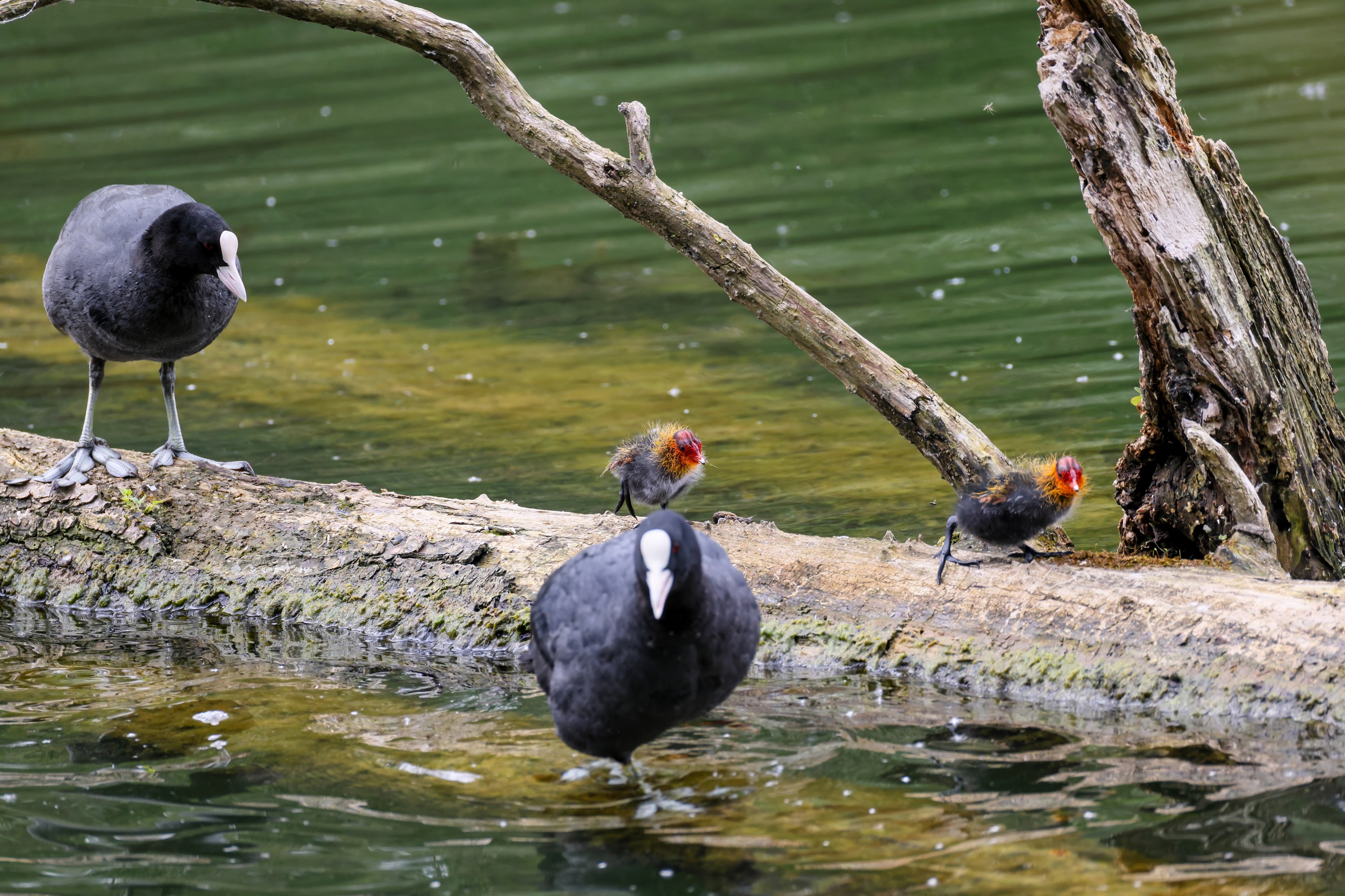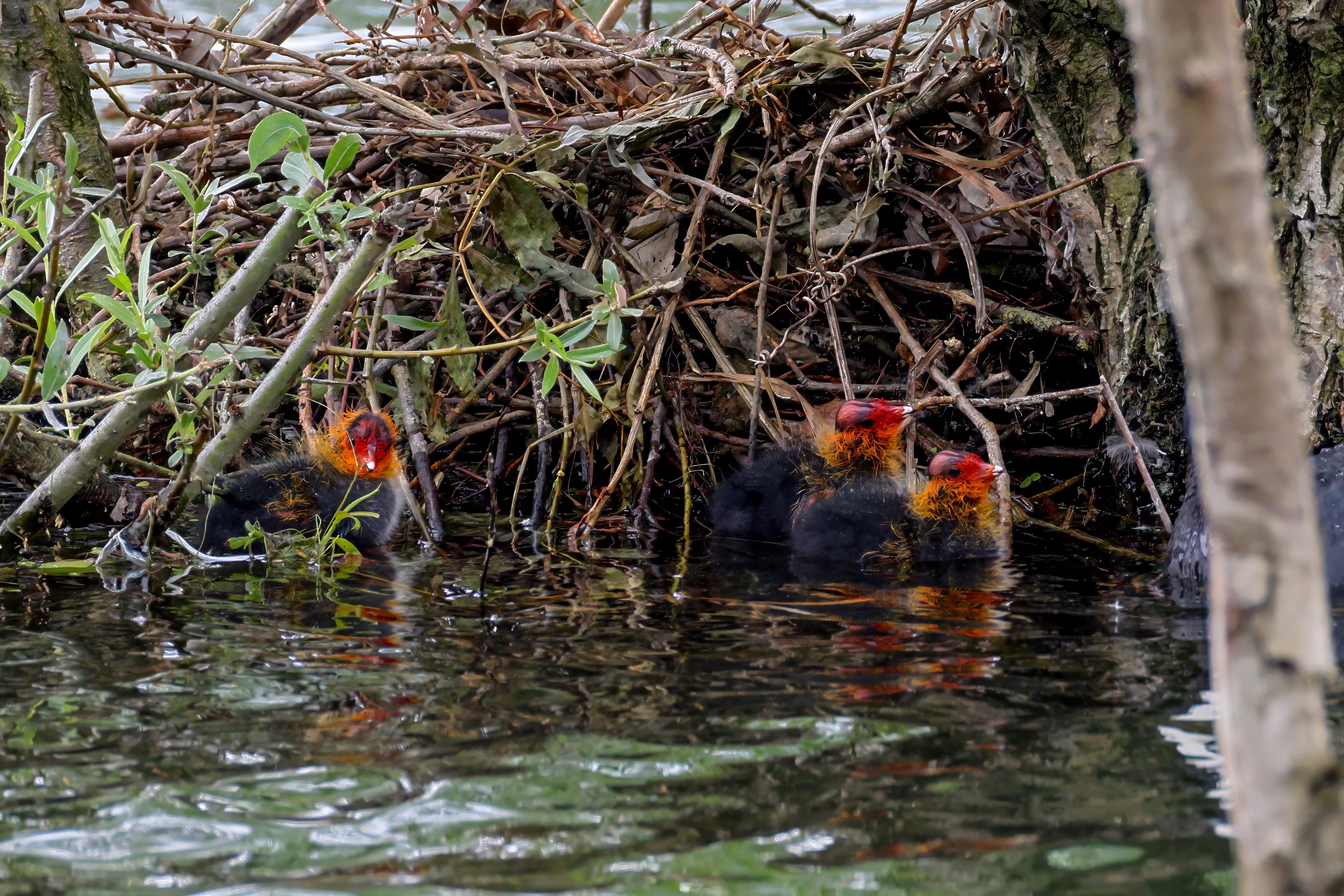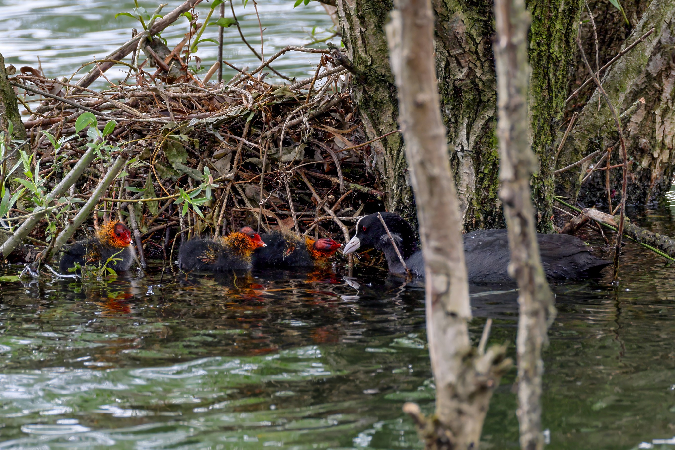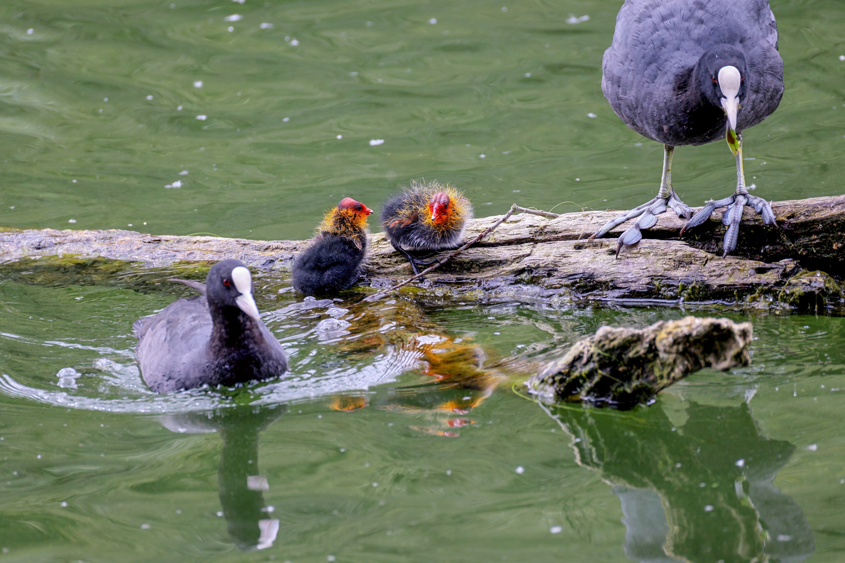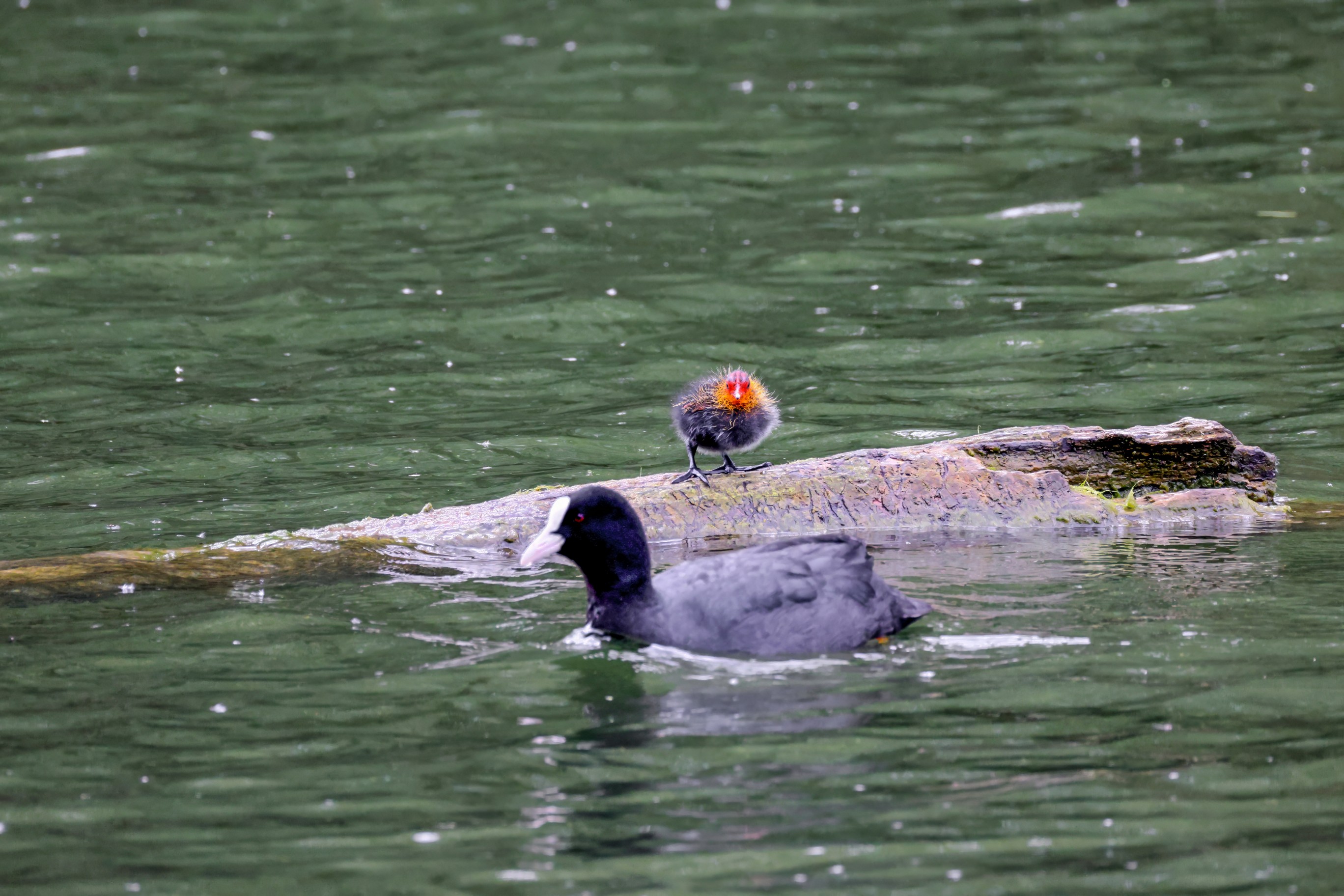 Erster Ausflug der jungen Blässrallen