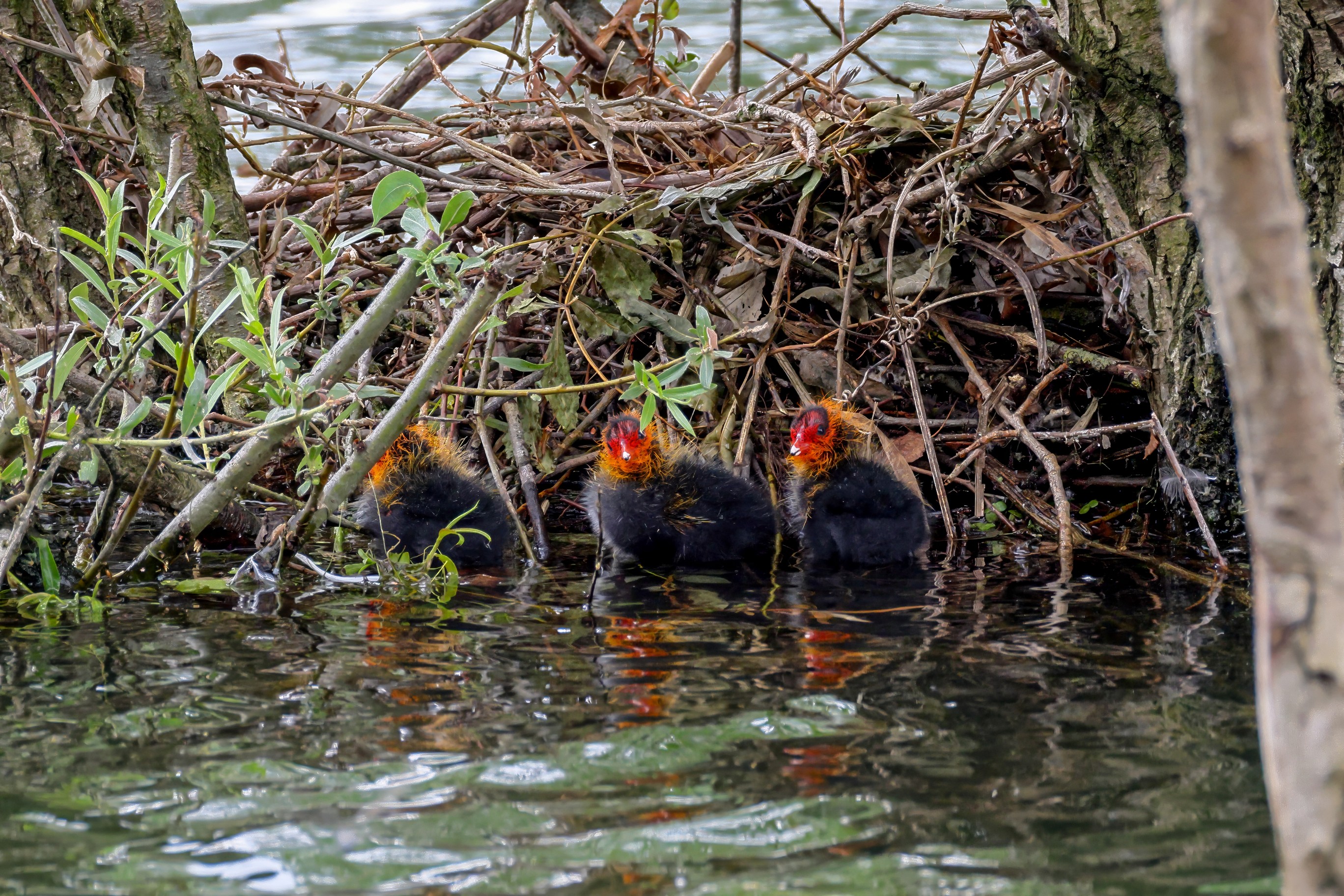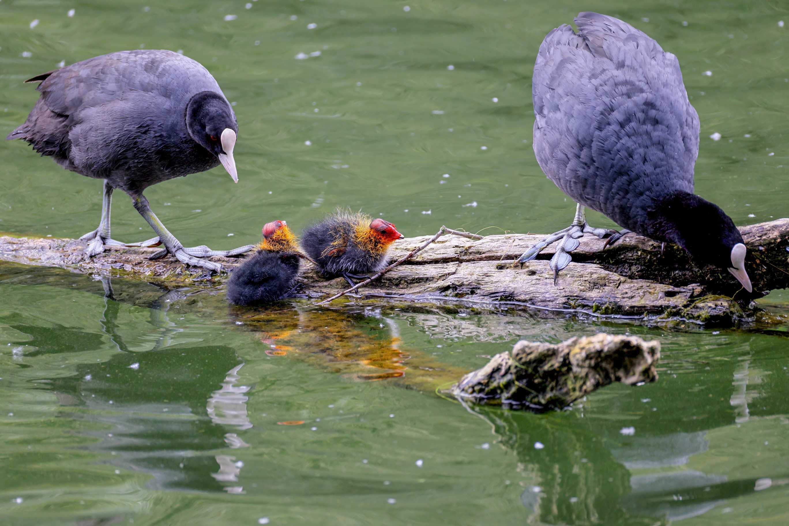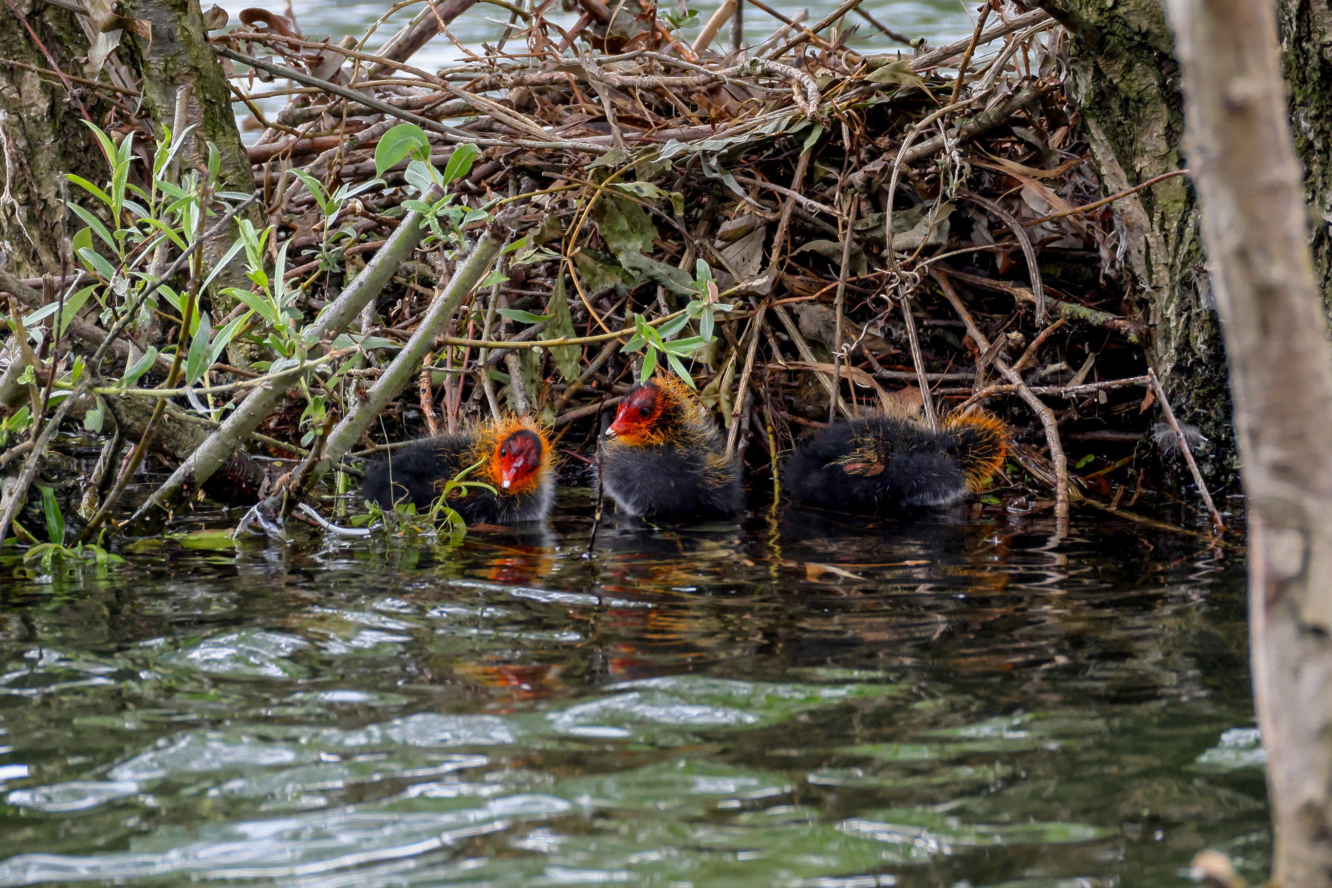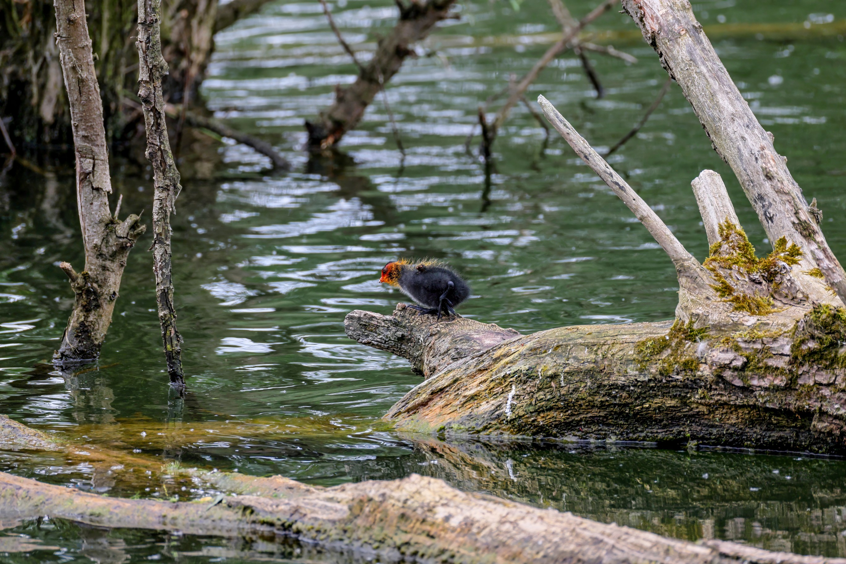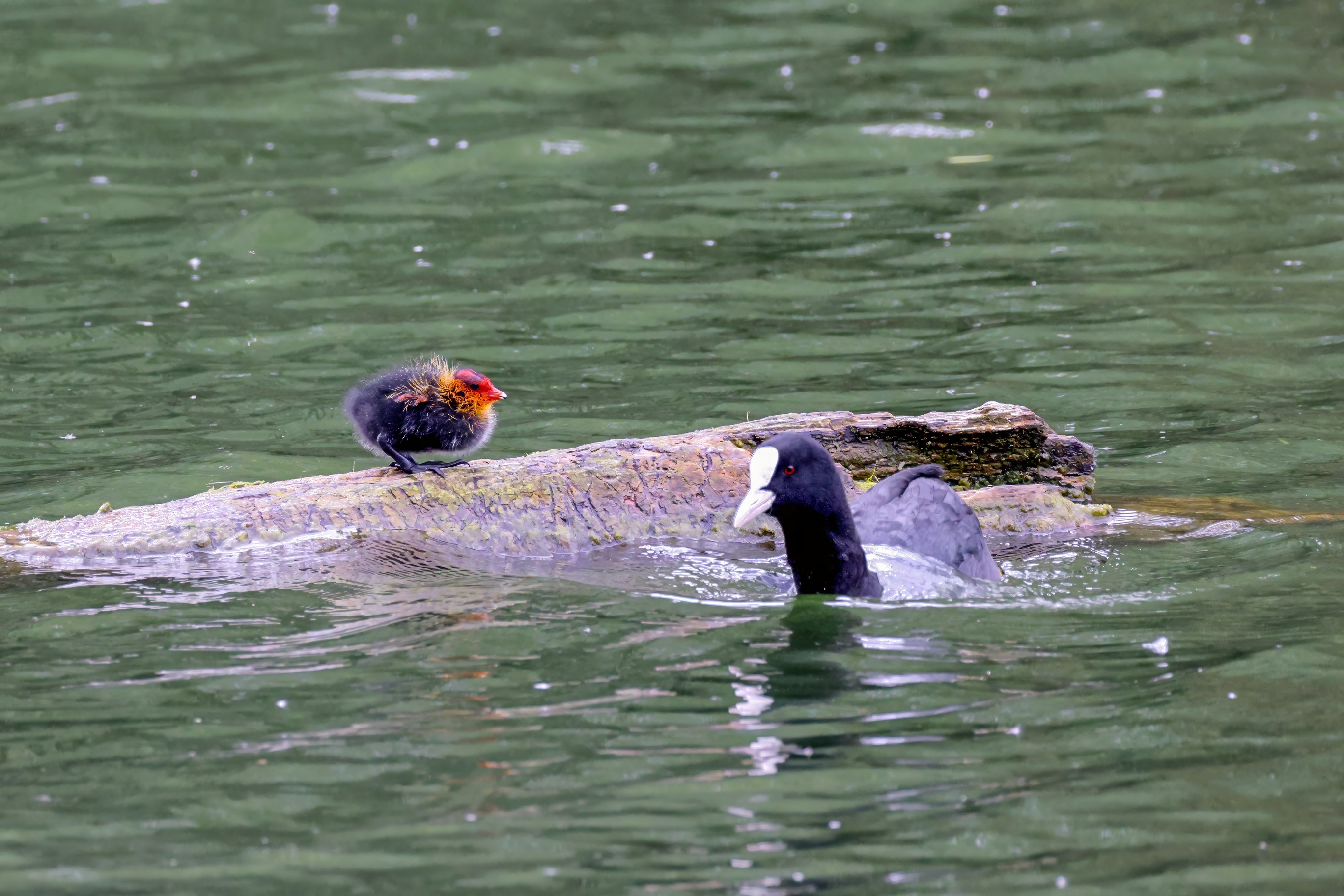 Erster Ausflug der jungen Blässrallen