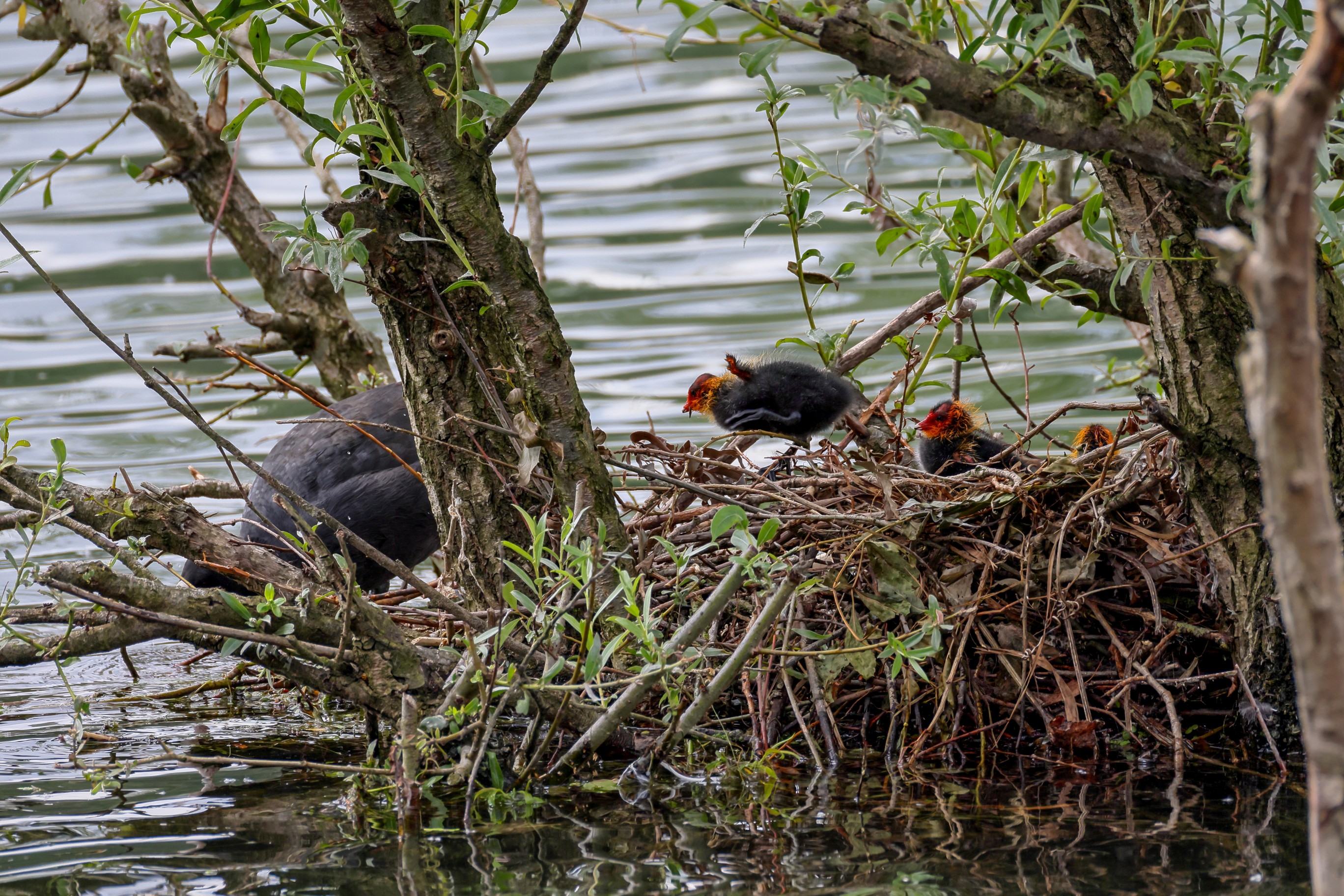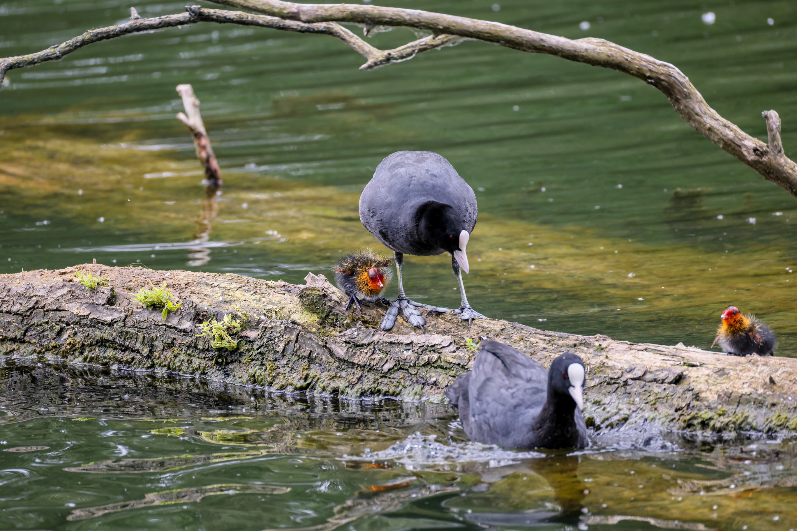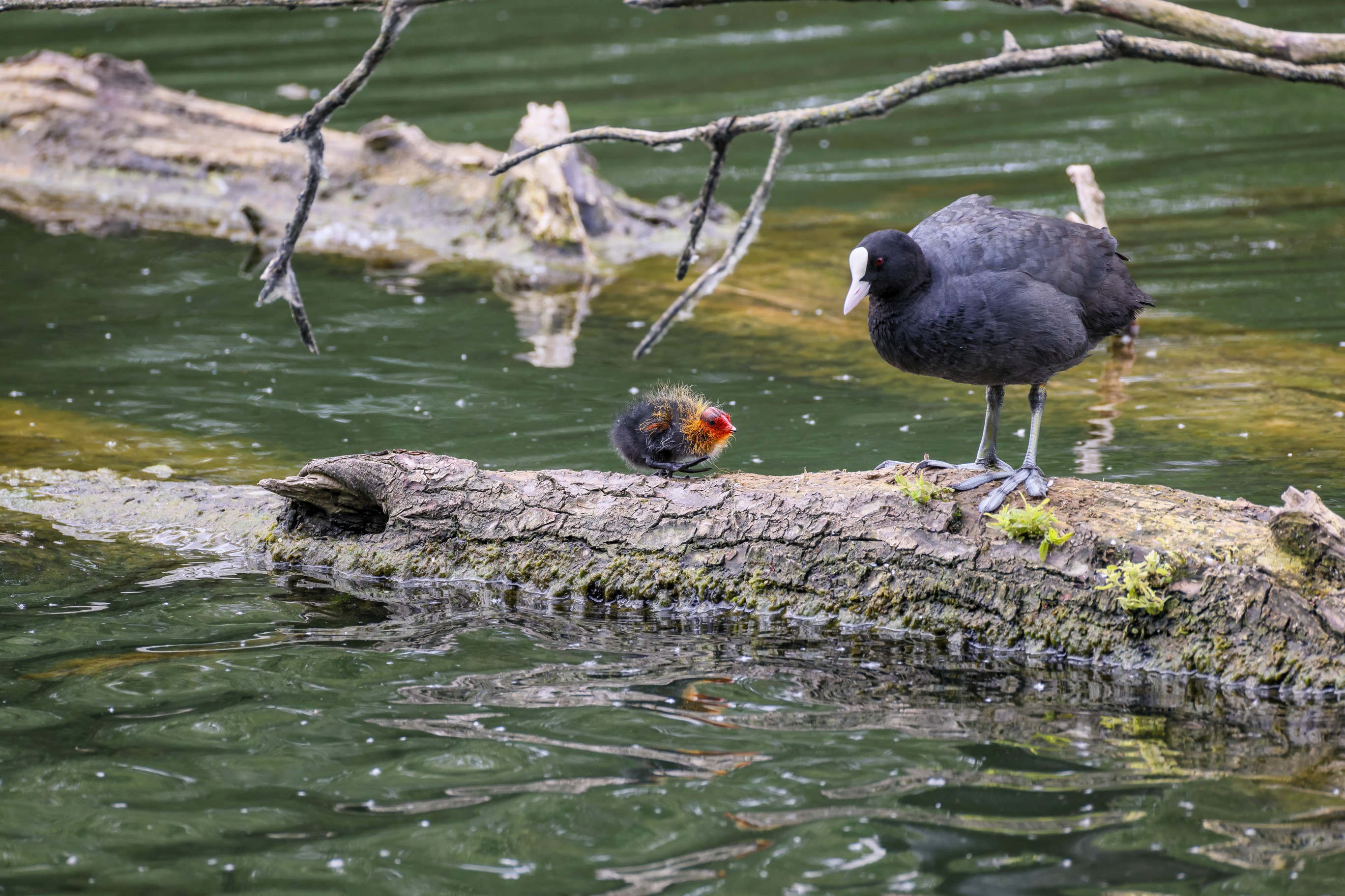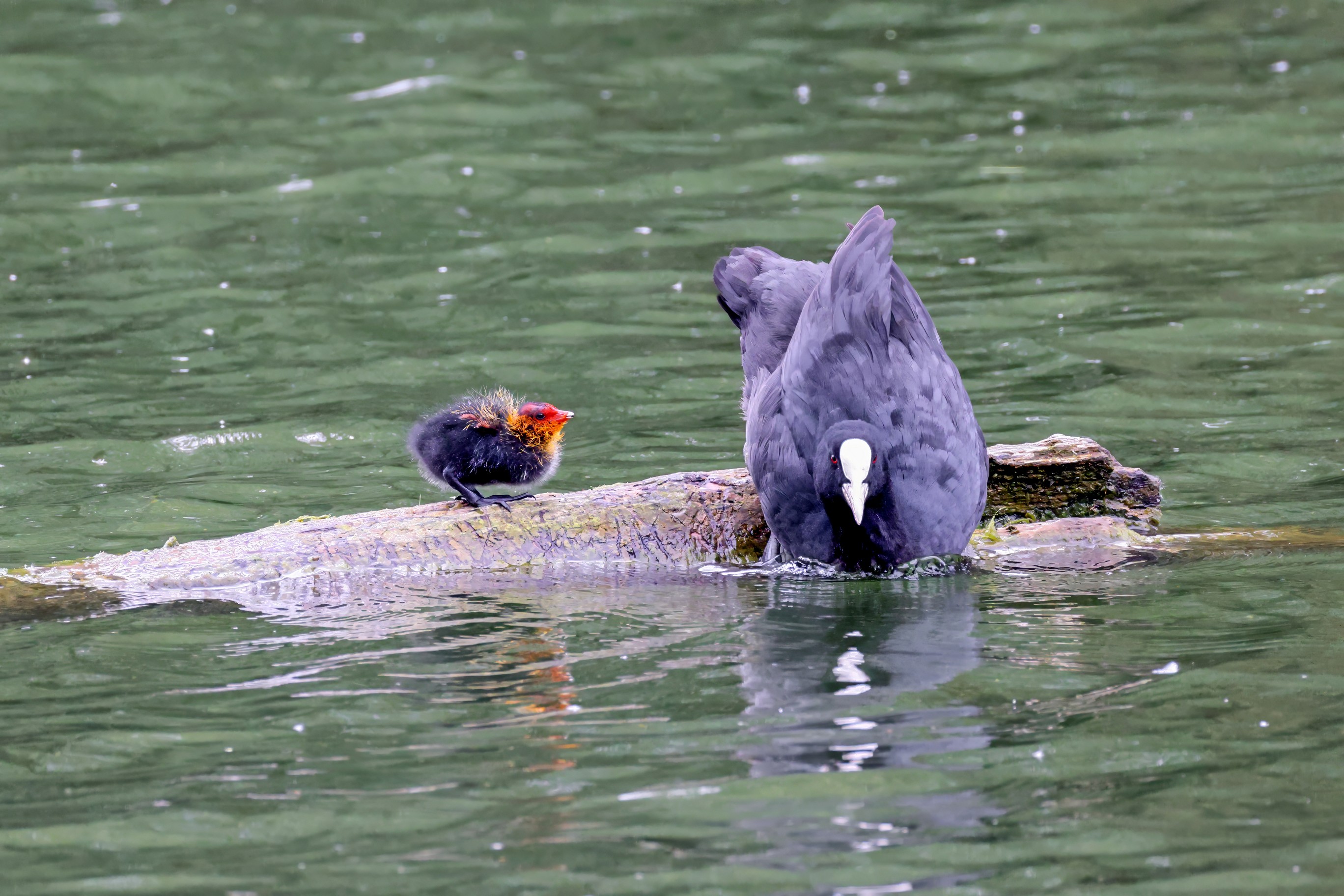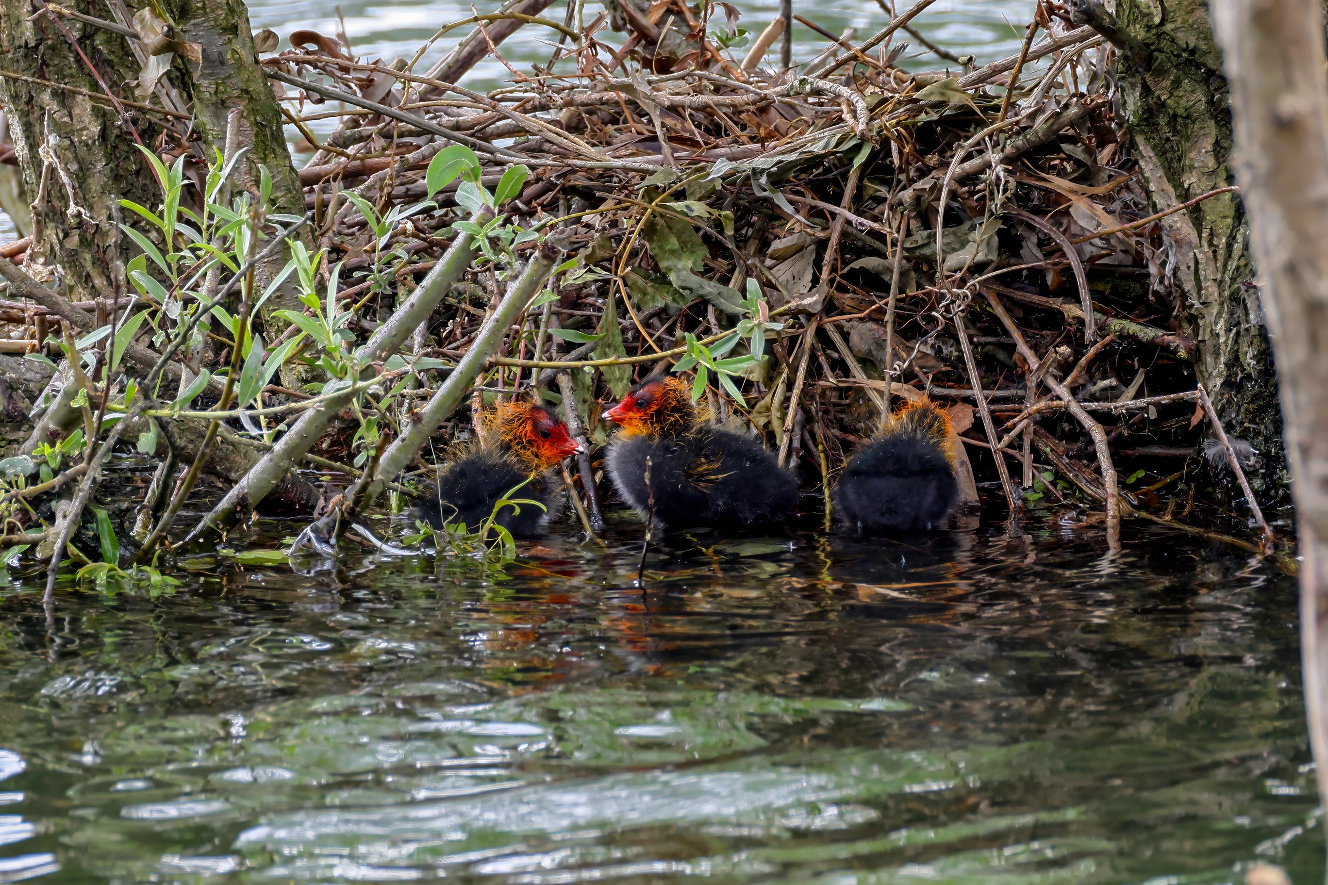 Erster Ausflug der jungen Blässrallen