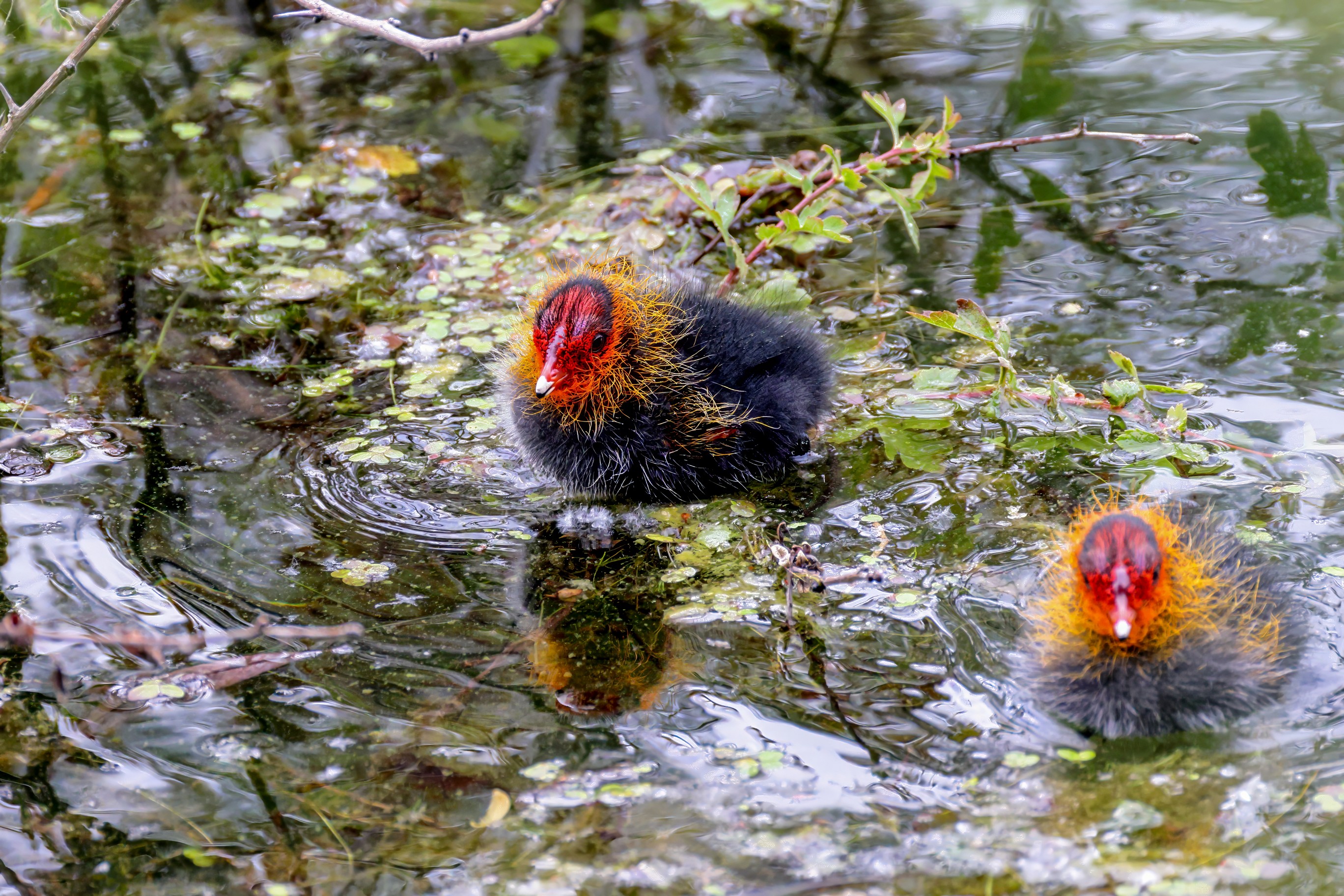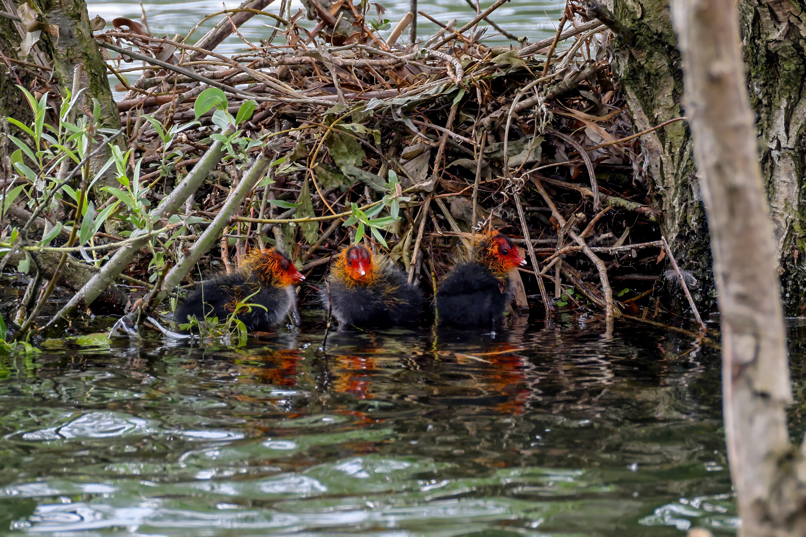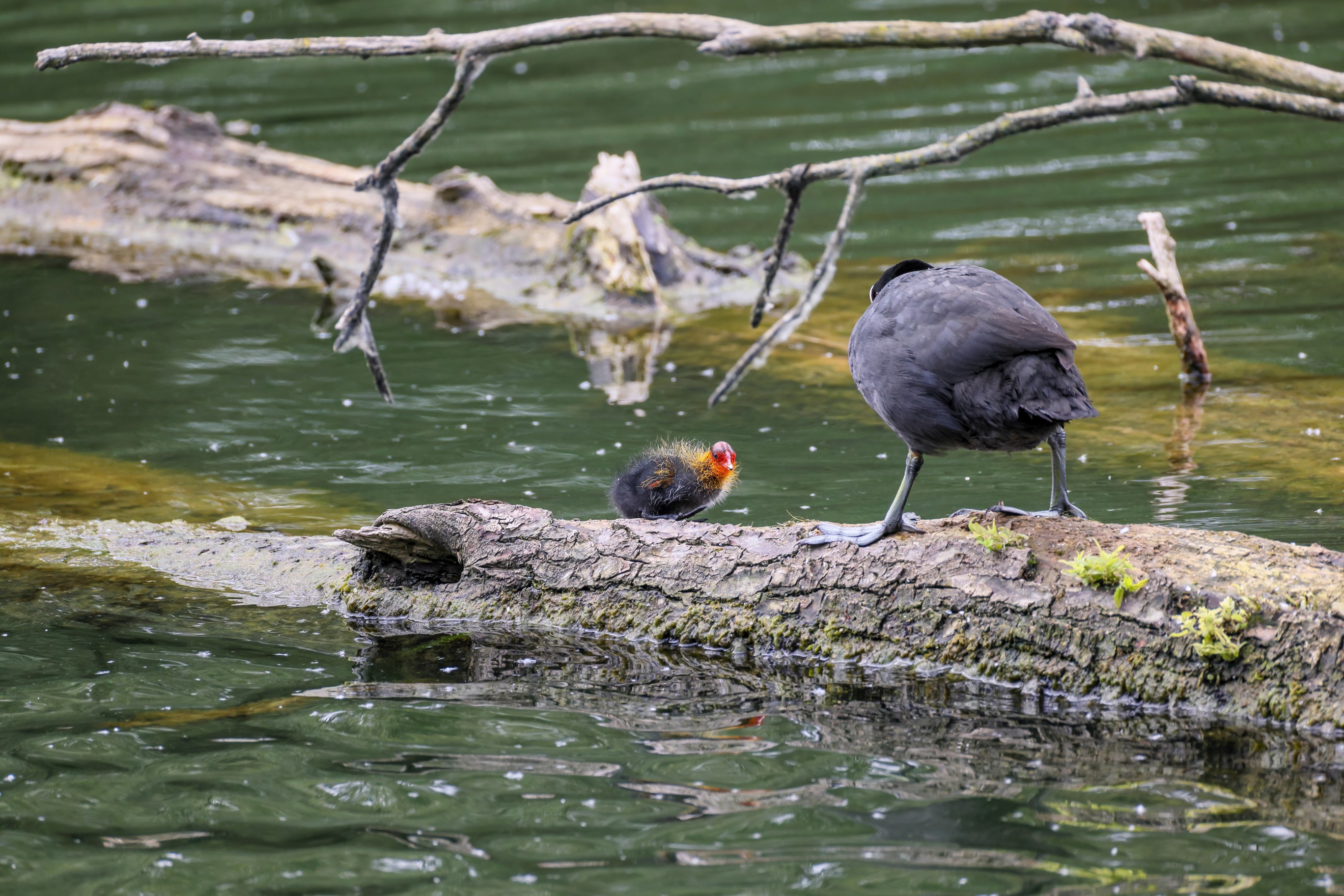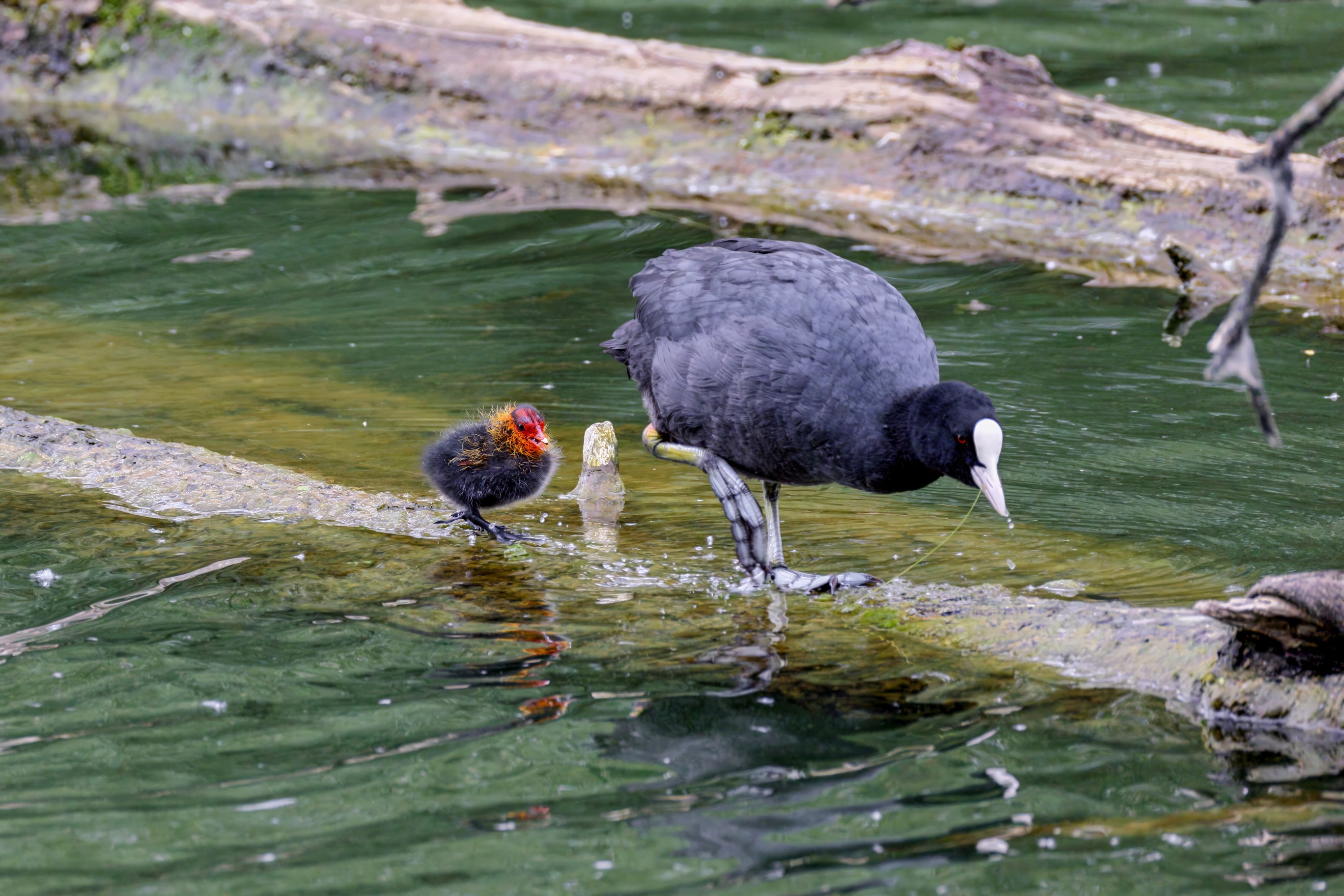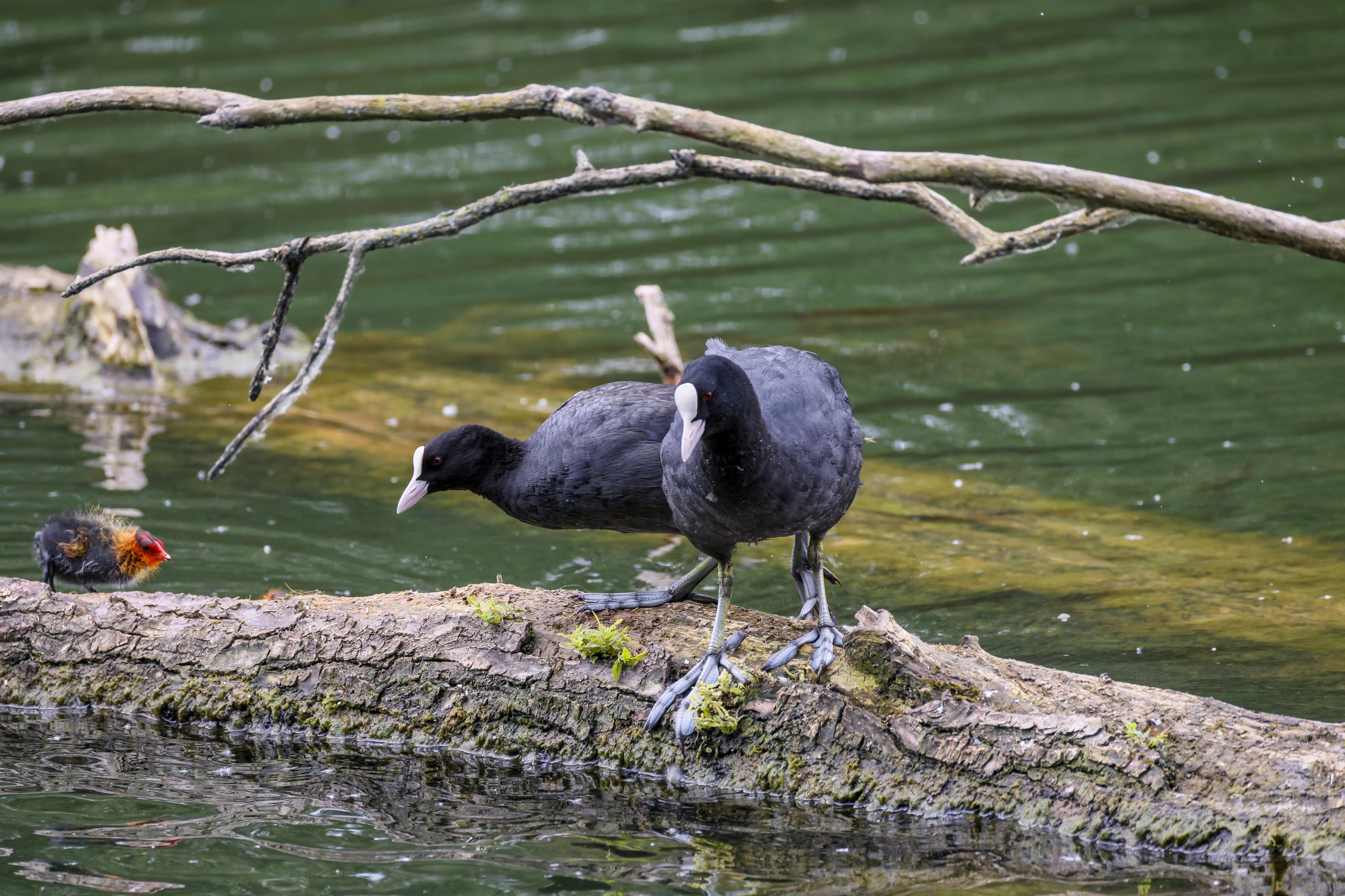 Erster Ausflug der jungen Blässrallen