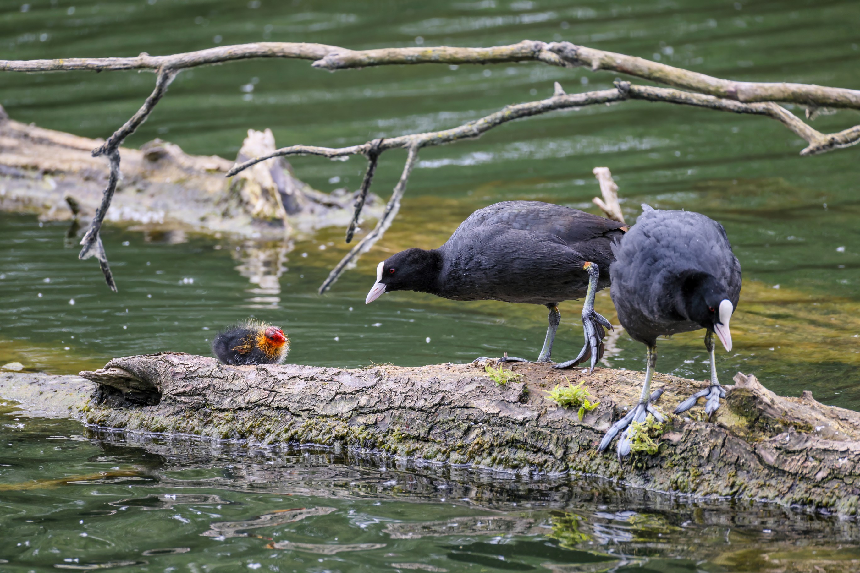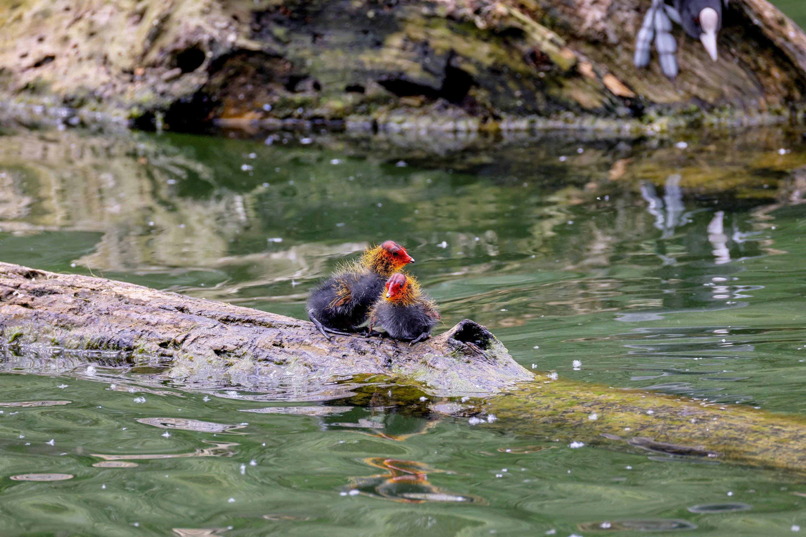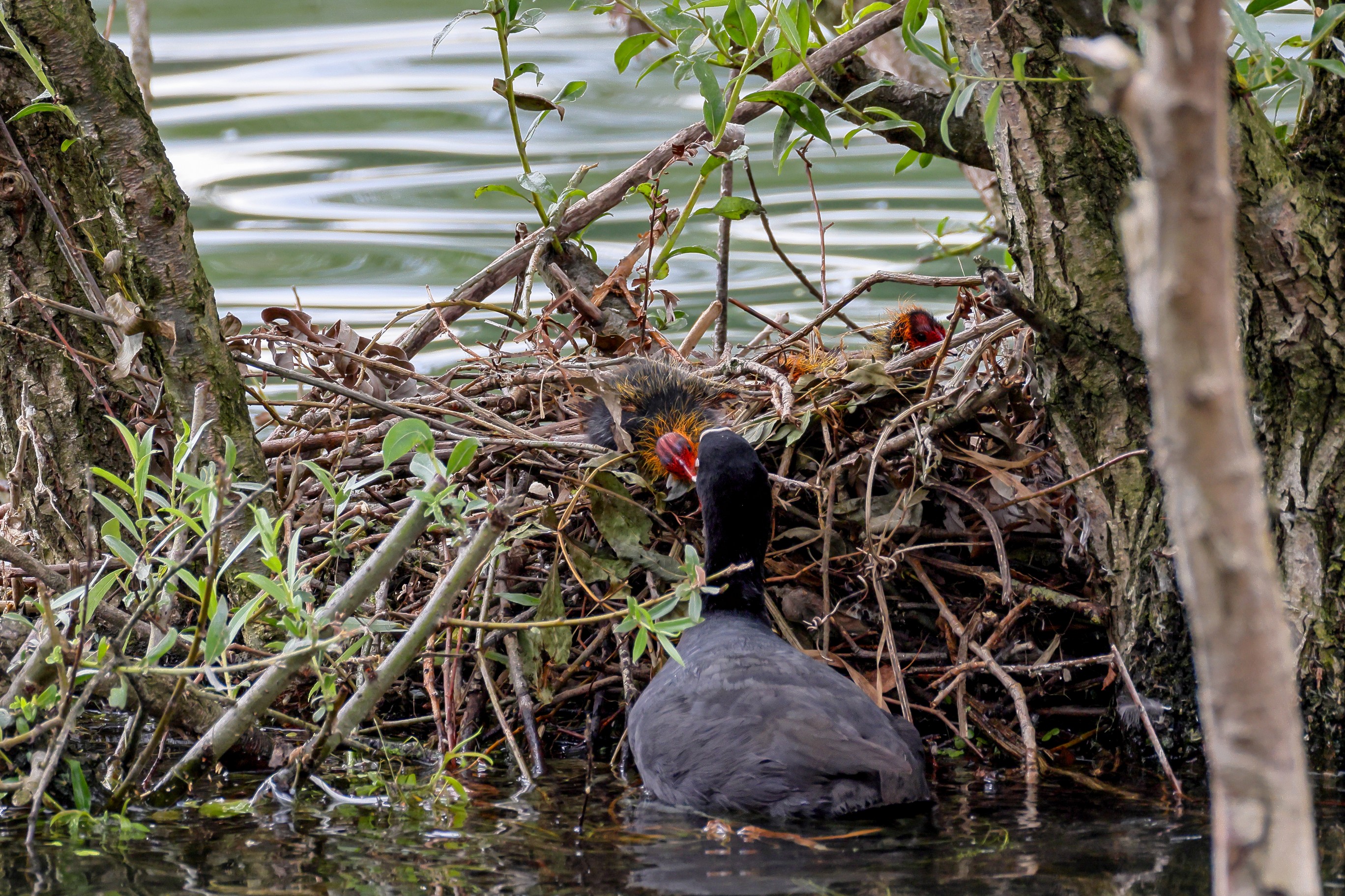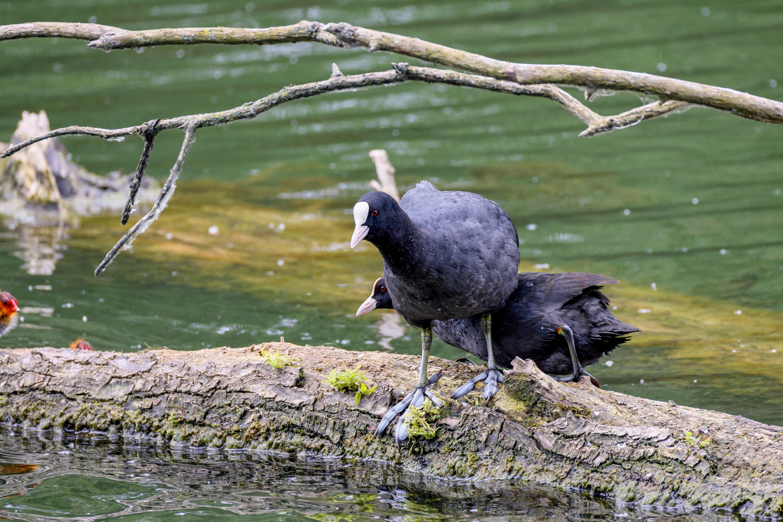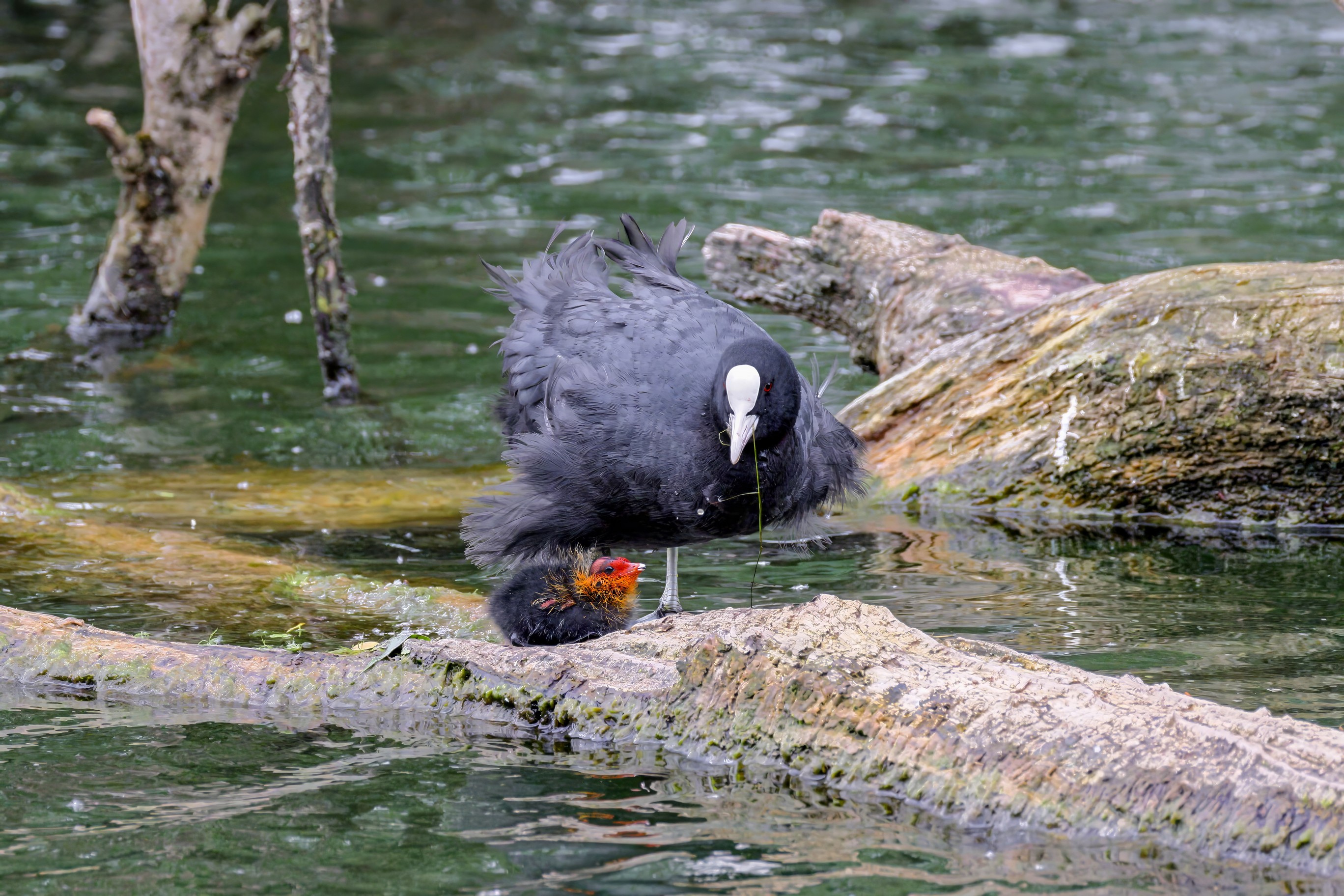 Erster Ausflug der jungen Blässrallen
