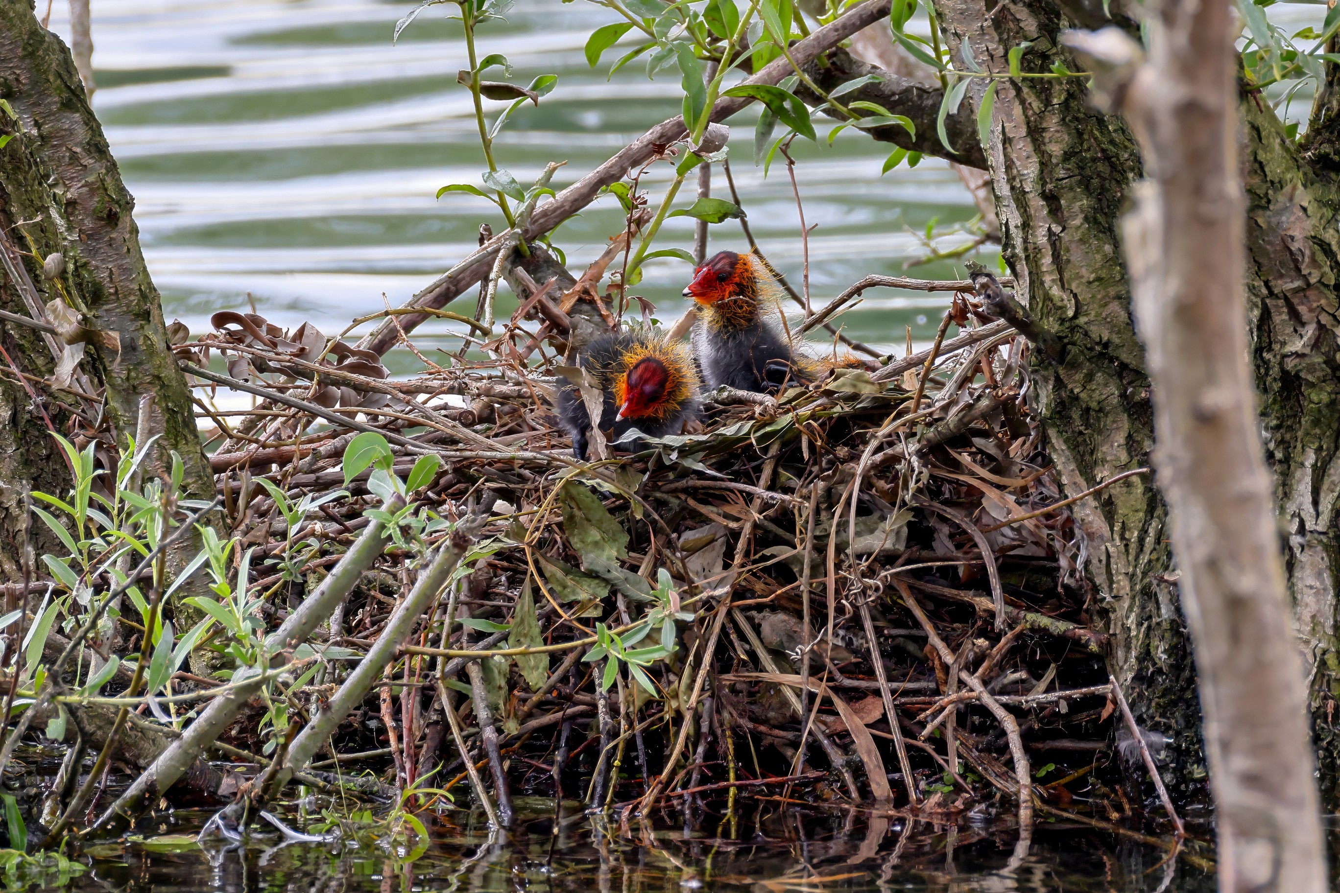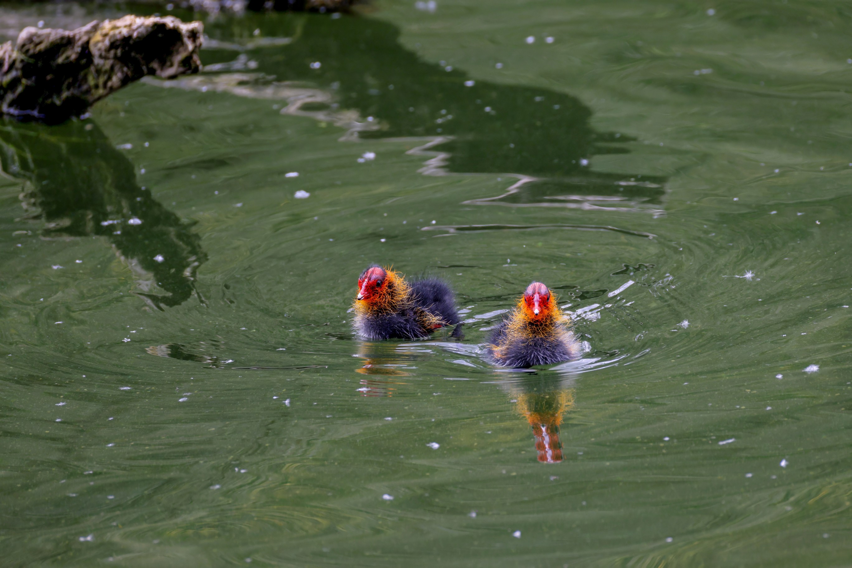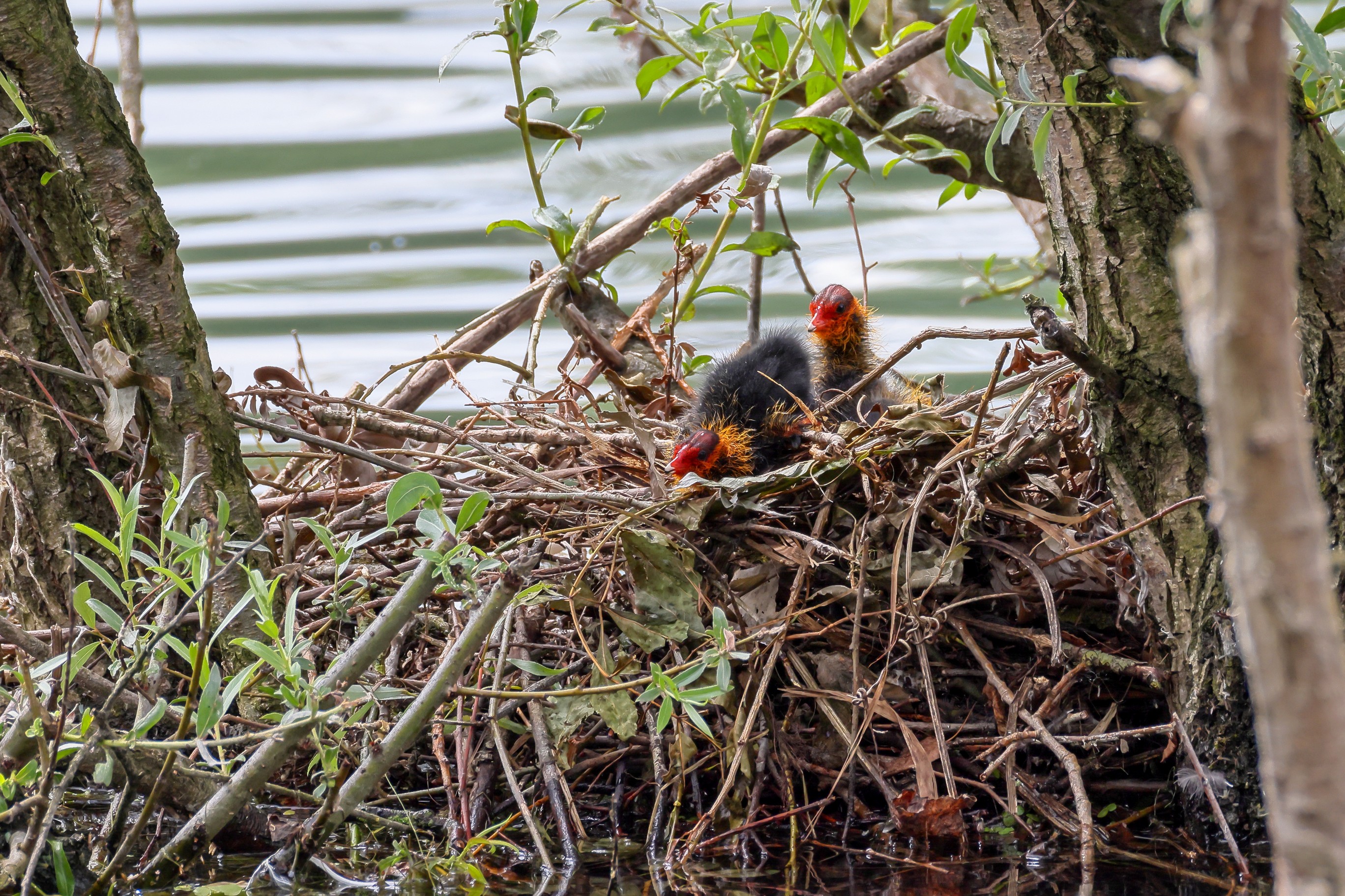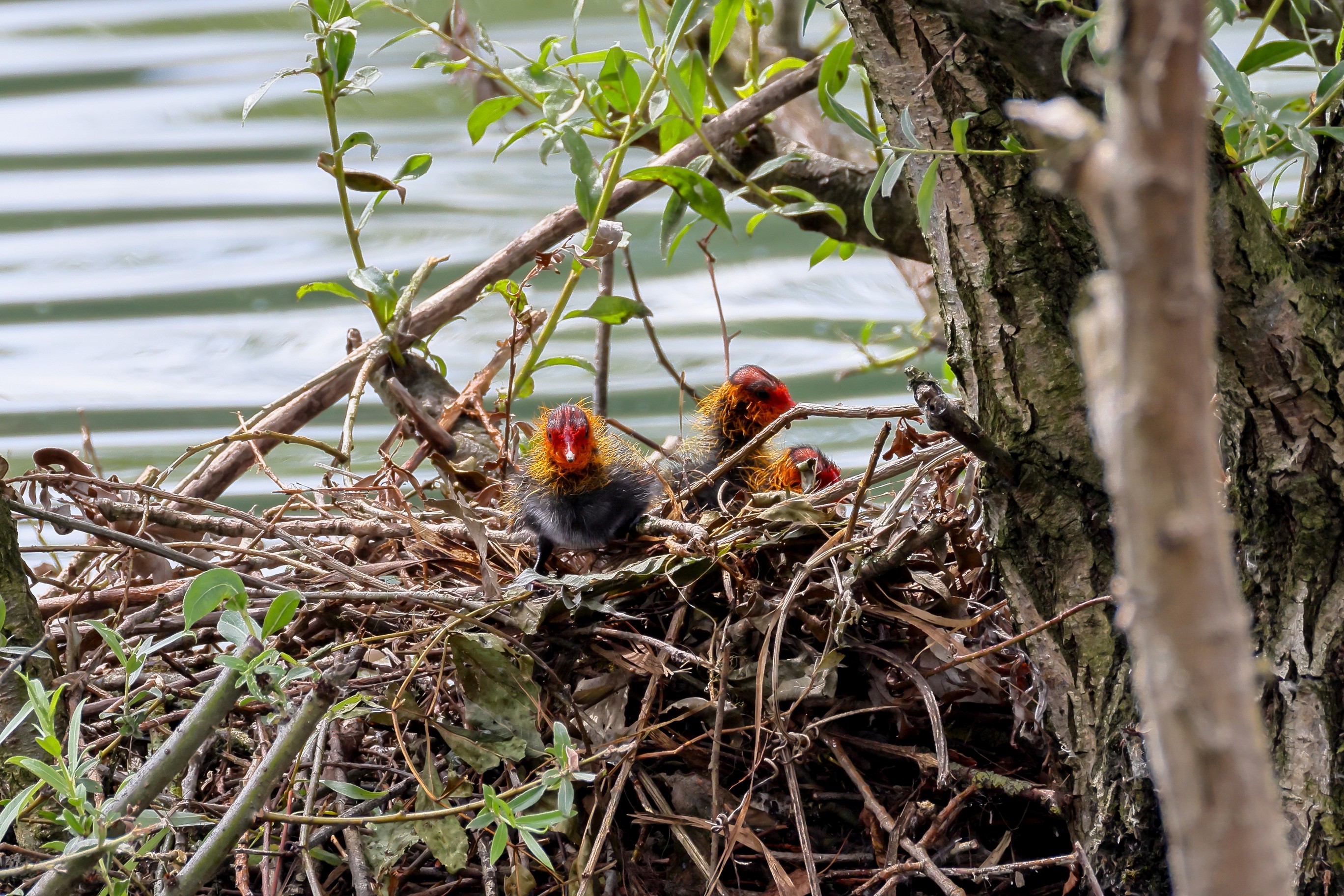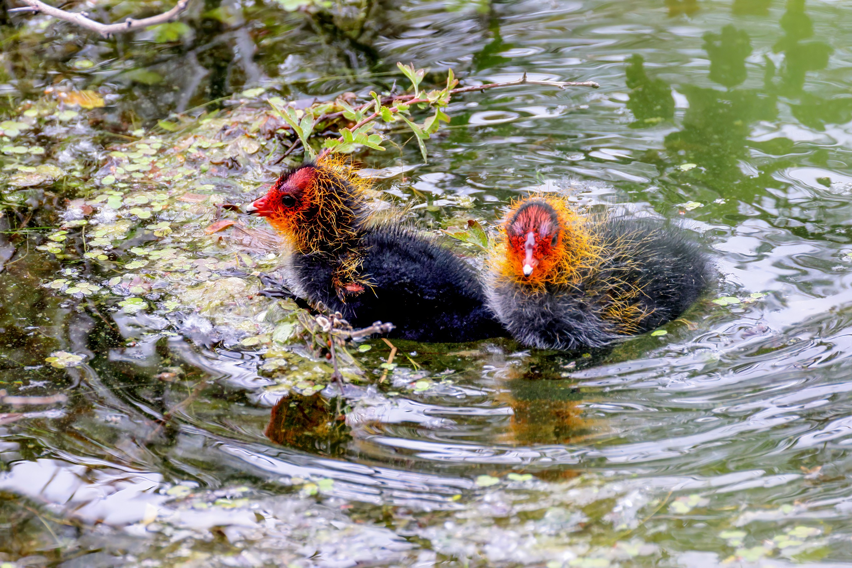 Erster Ausflug der jungen Blässrallen
