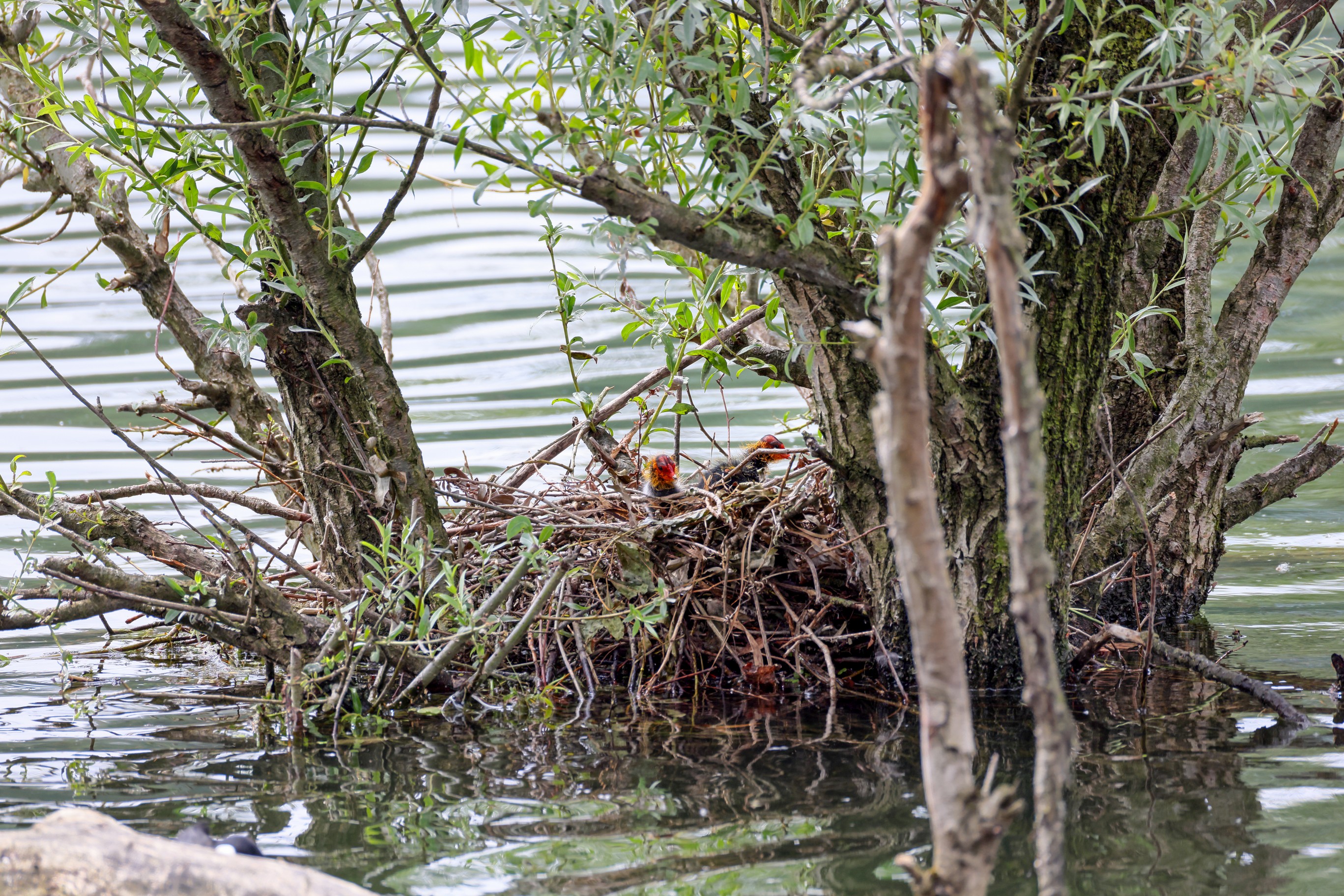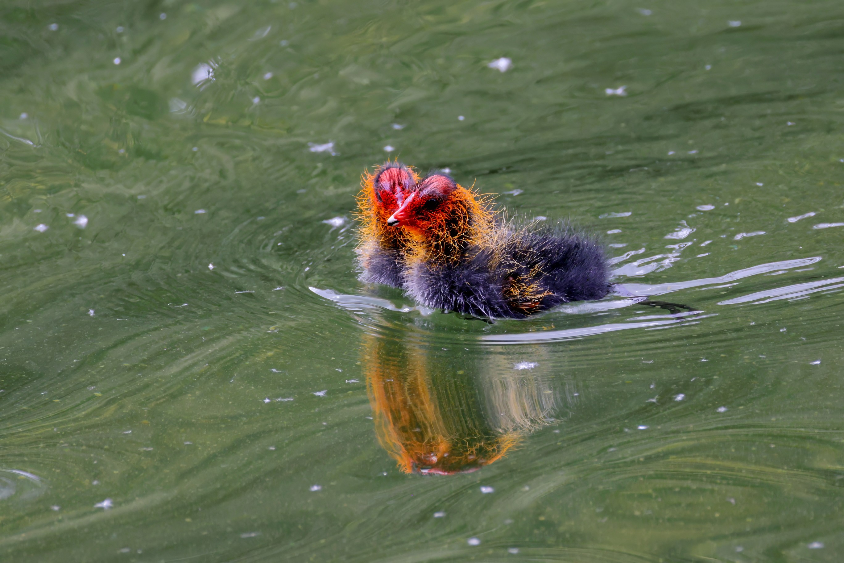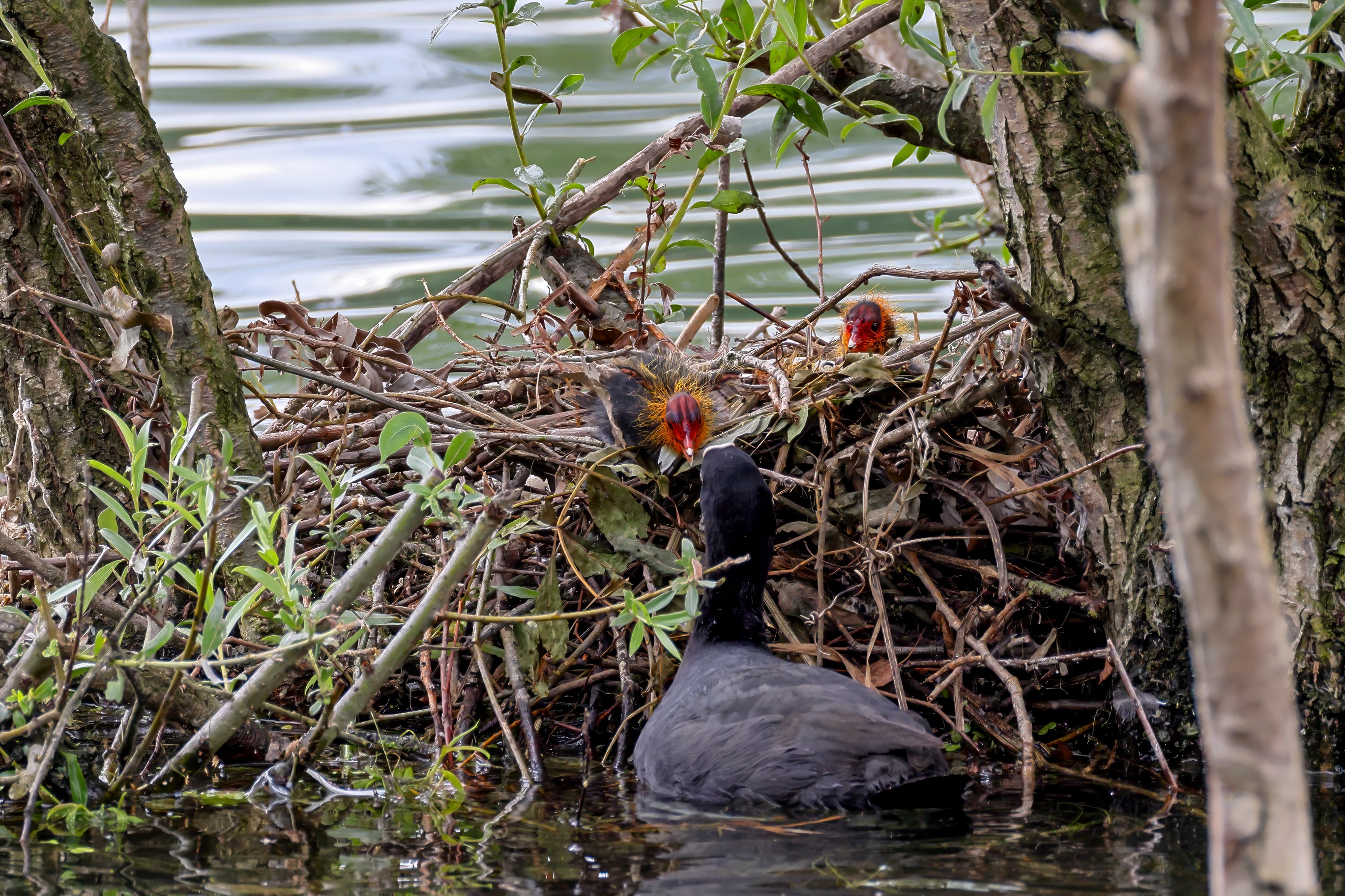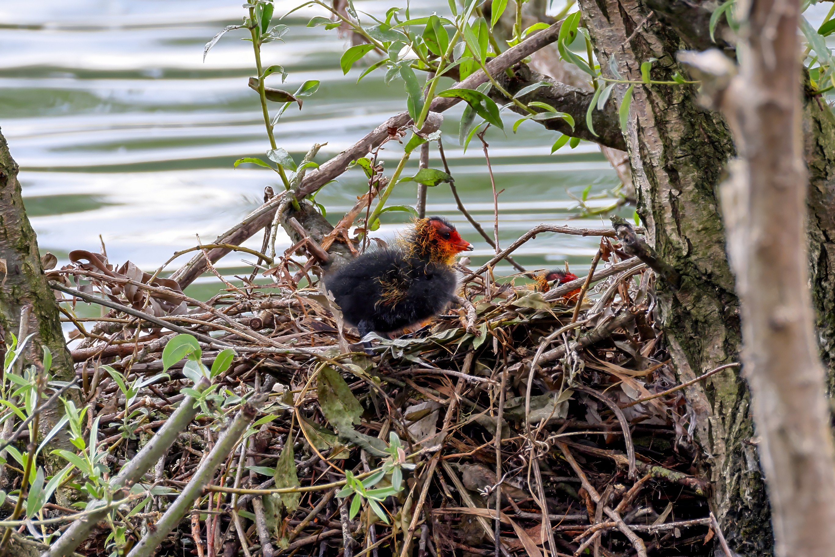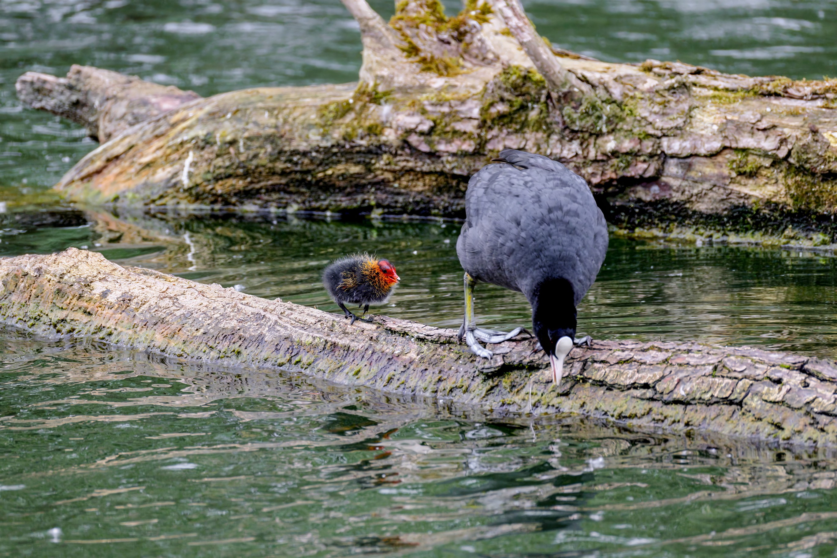 Erster Ausflug der jungen Blässrallen