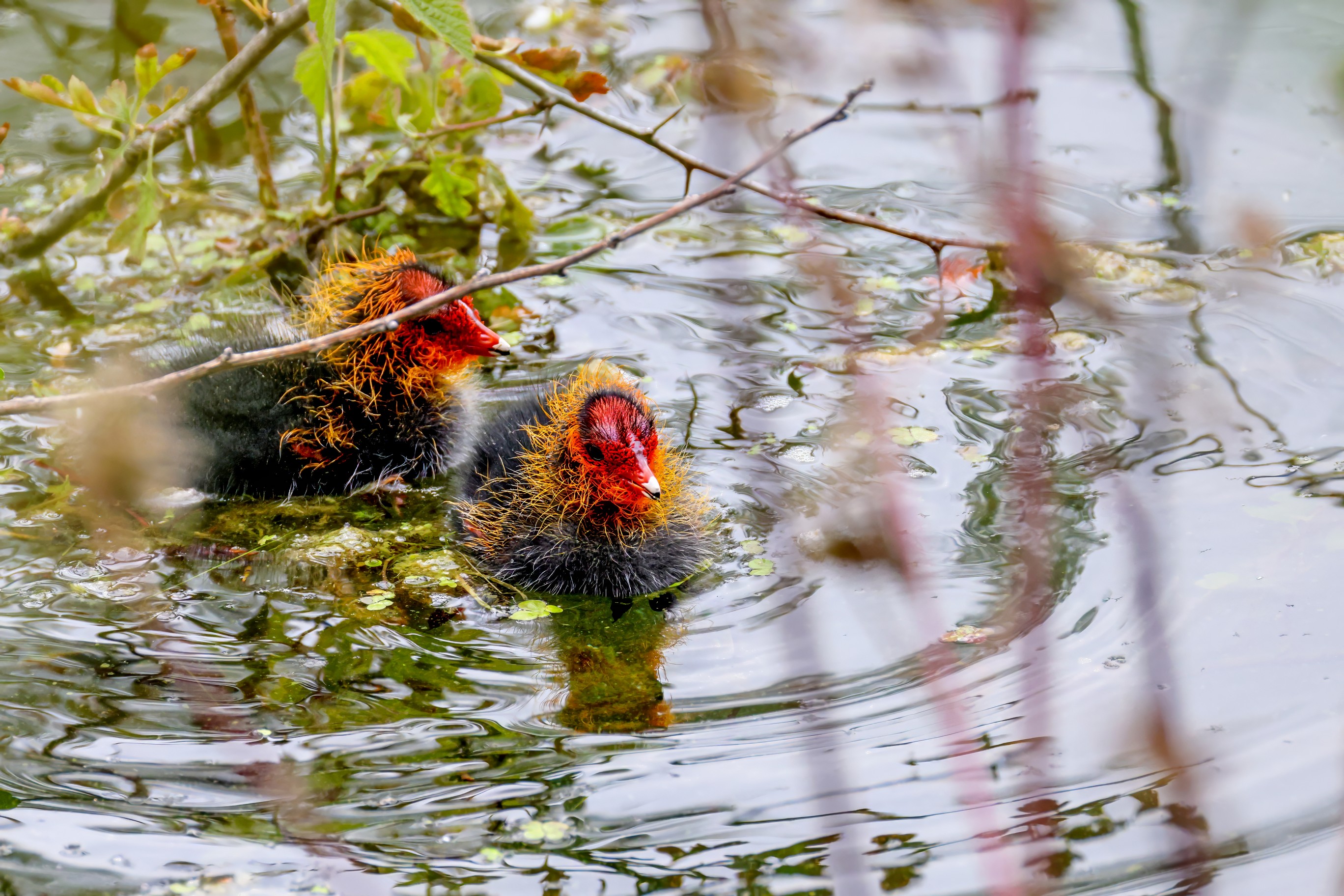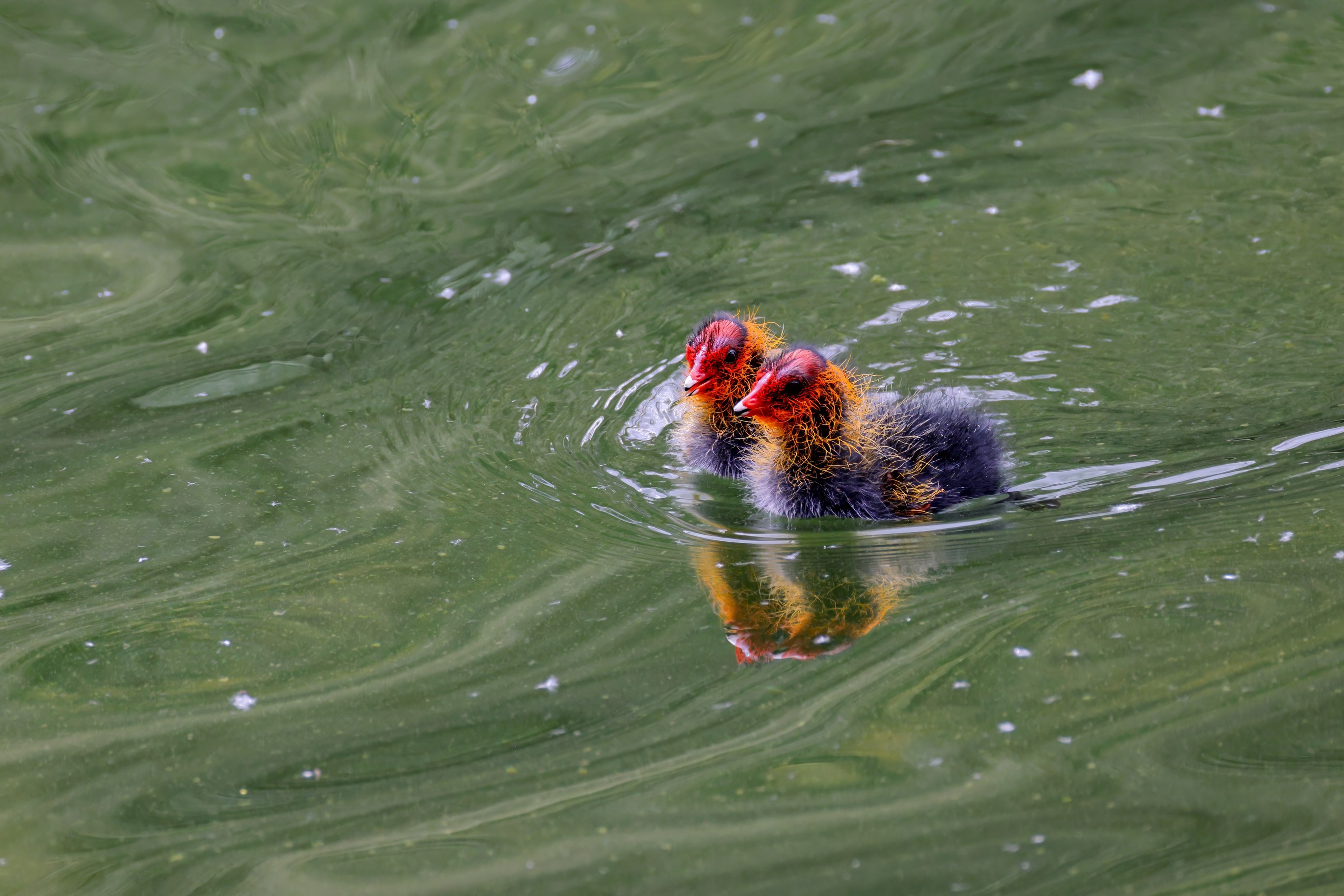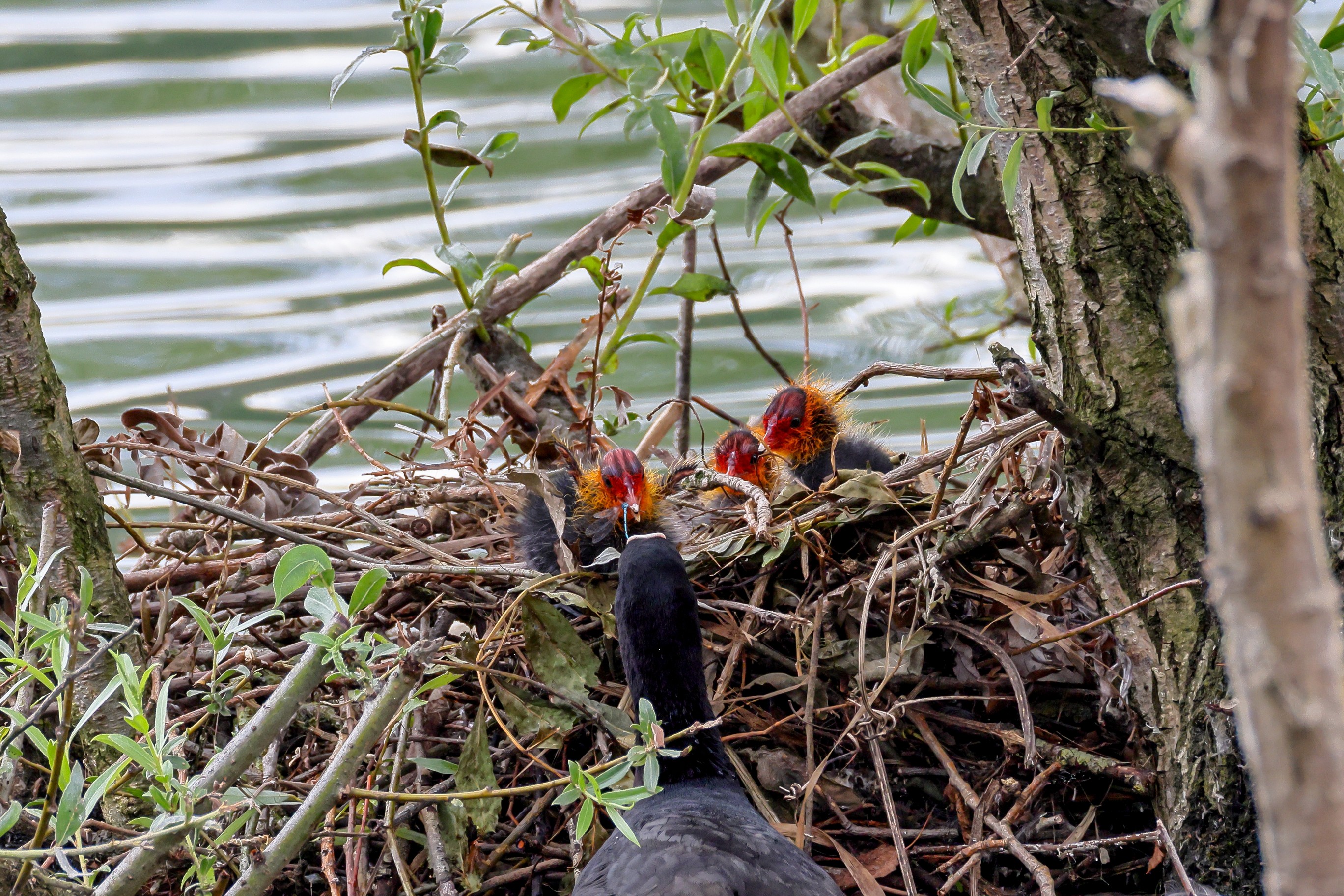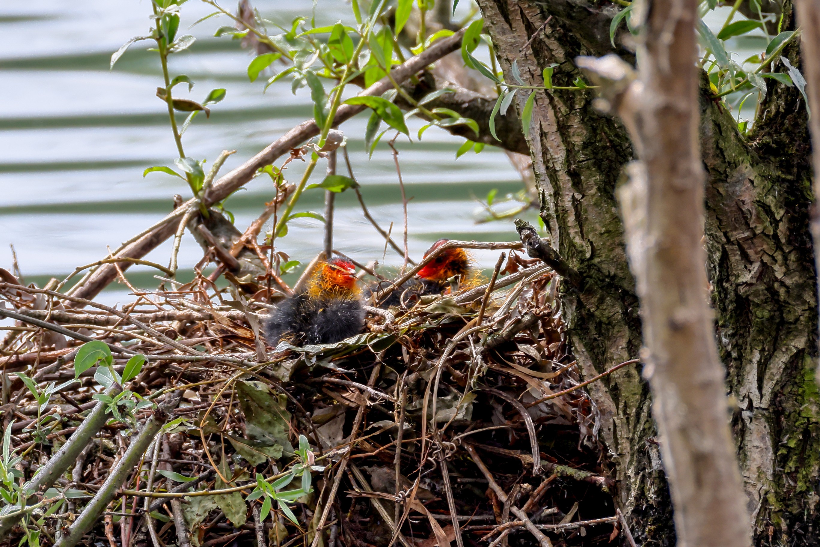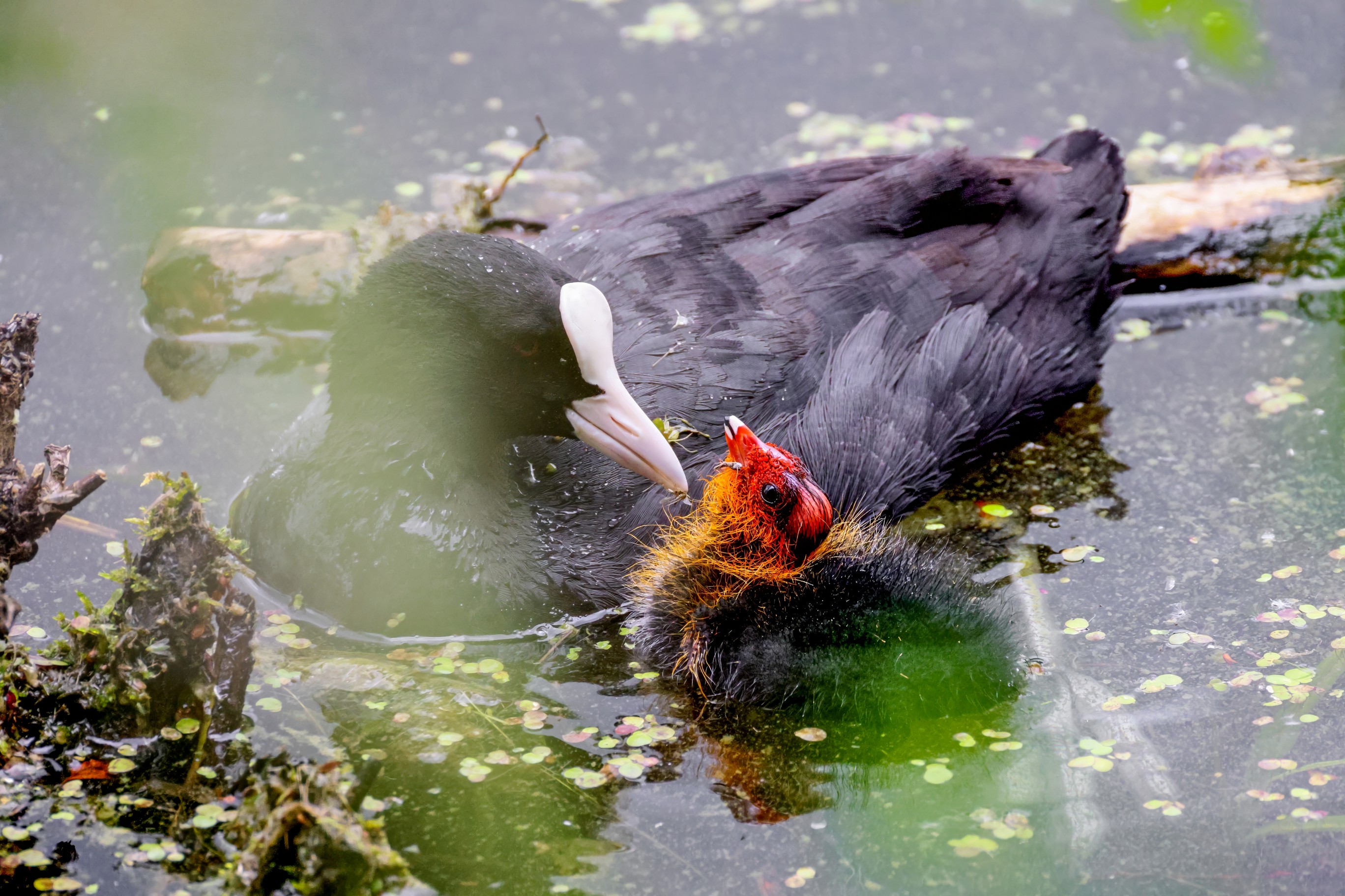 Erster Ausflug der jungen Blässrallen